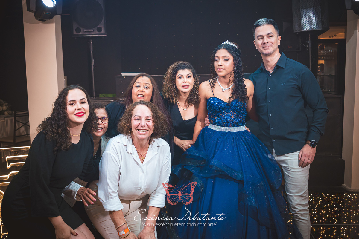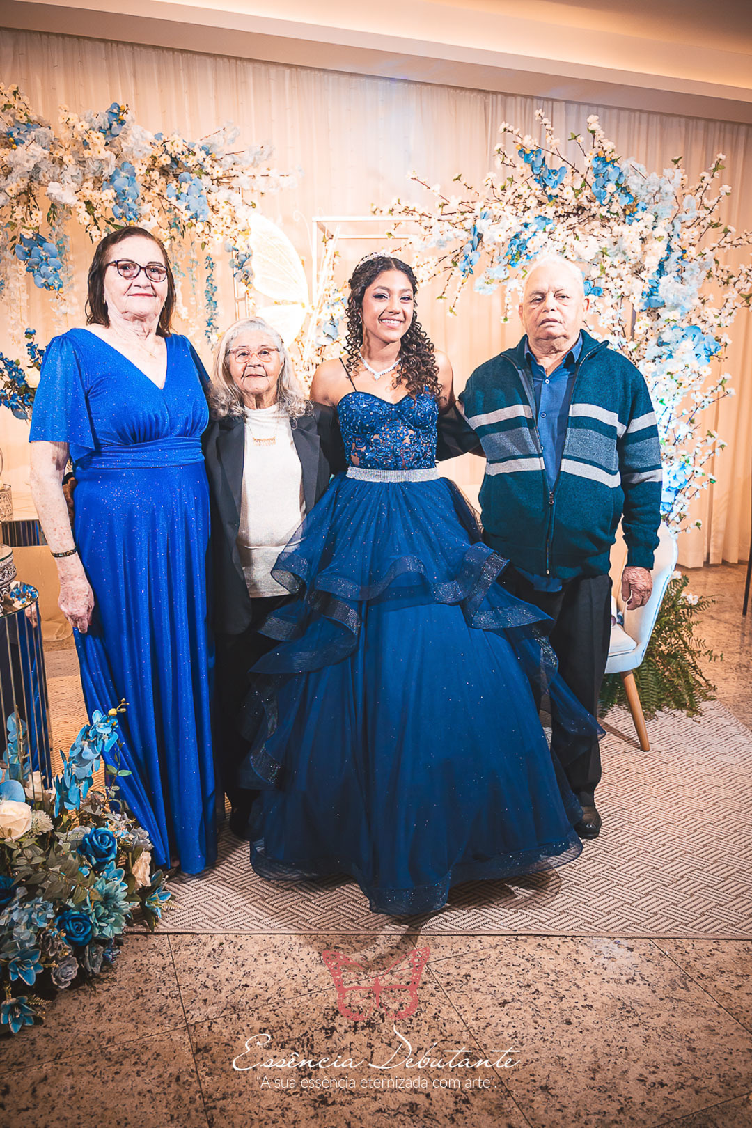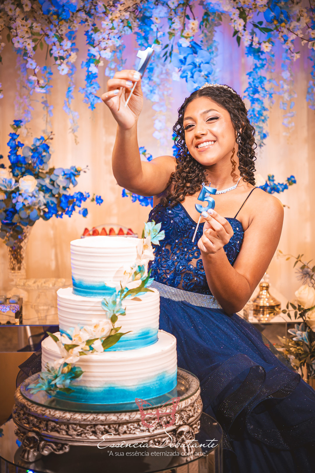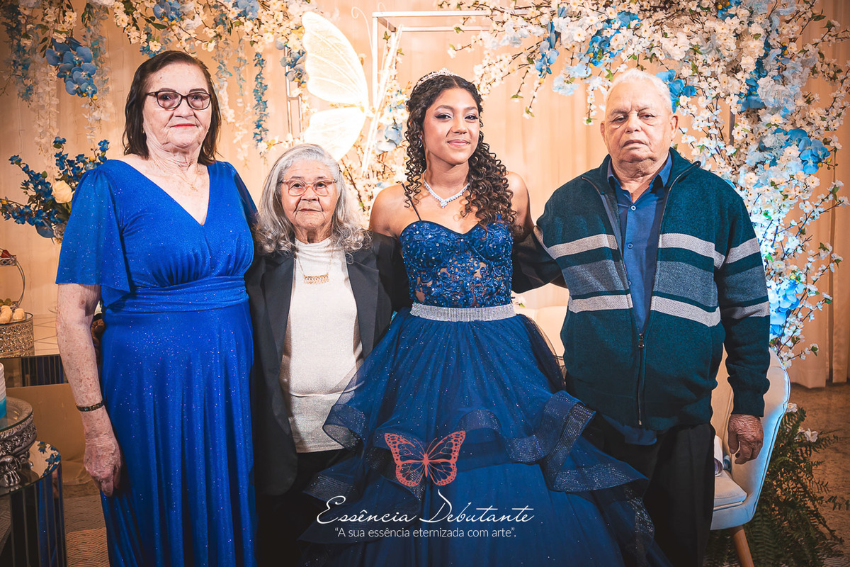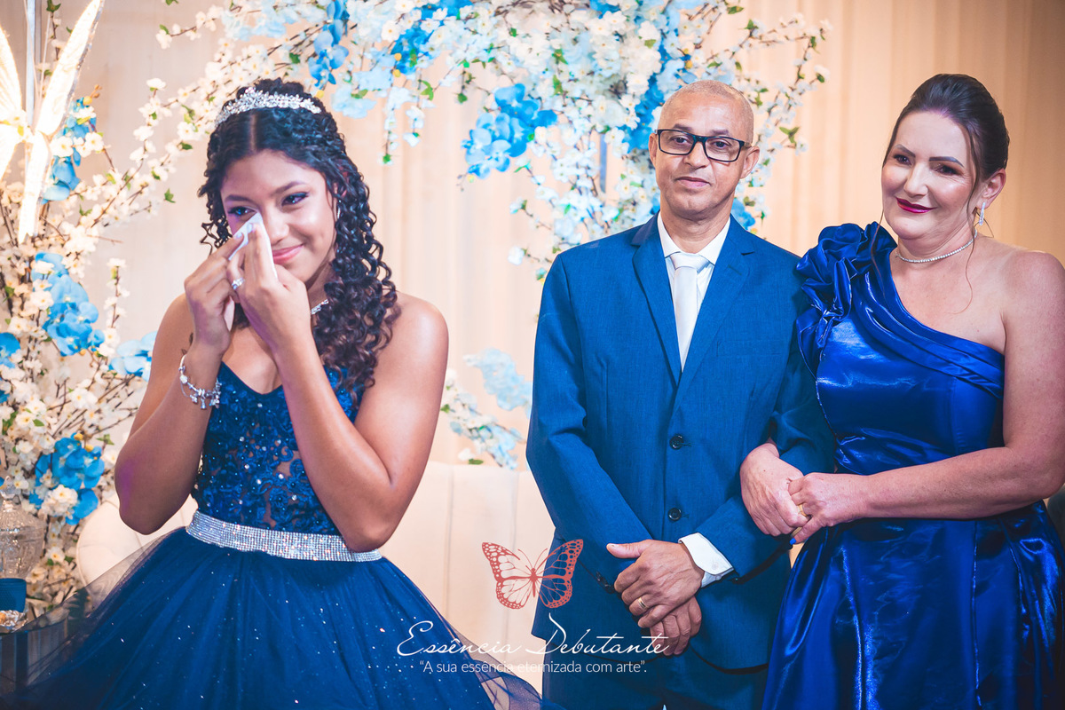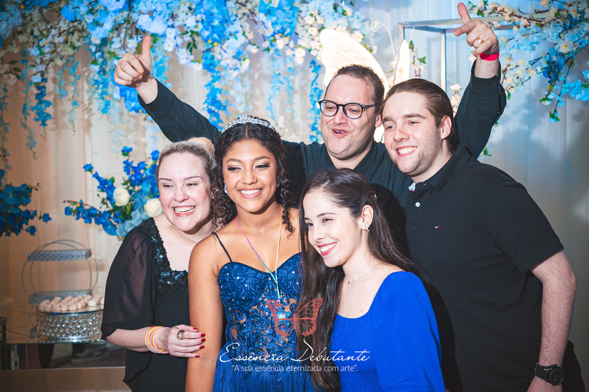 Vestida de azul royal e cercada de amor, Maria celebrou seus 15 anos em grande estilo.