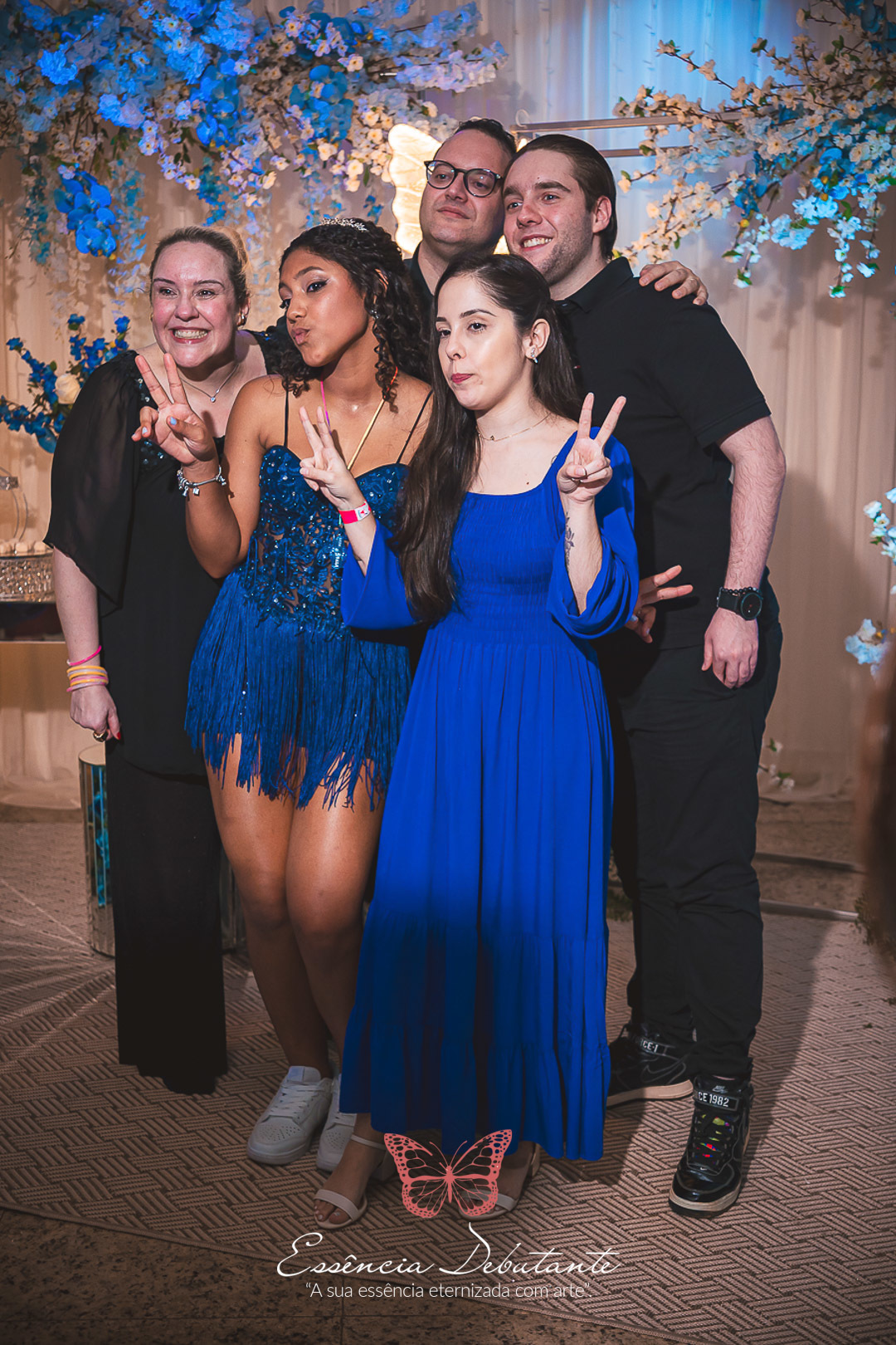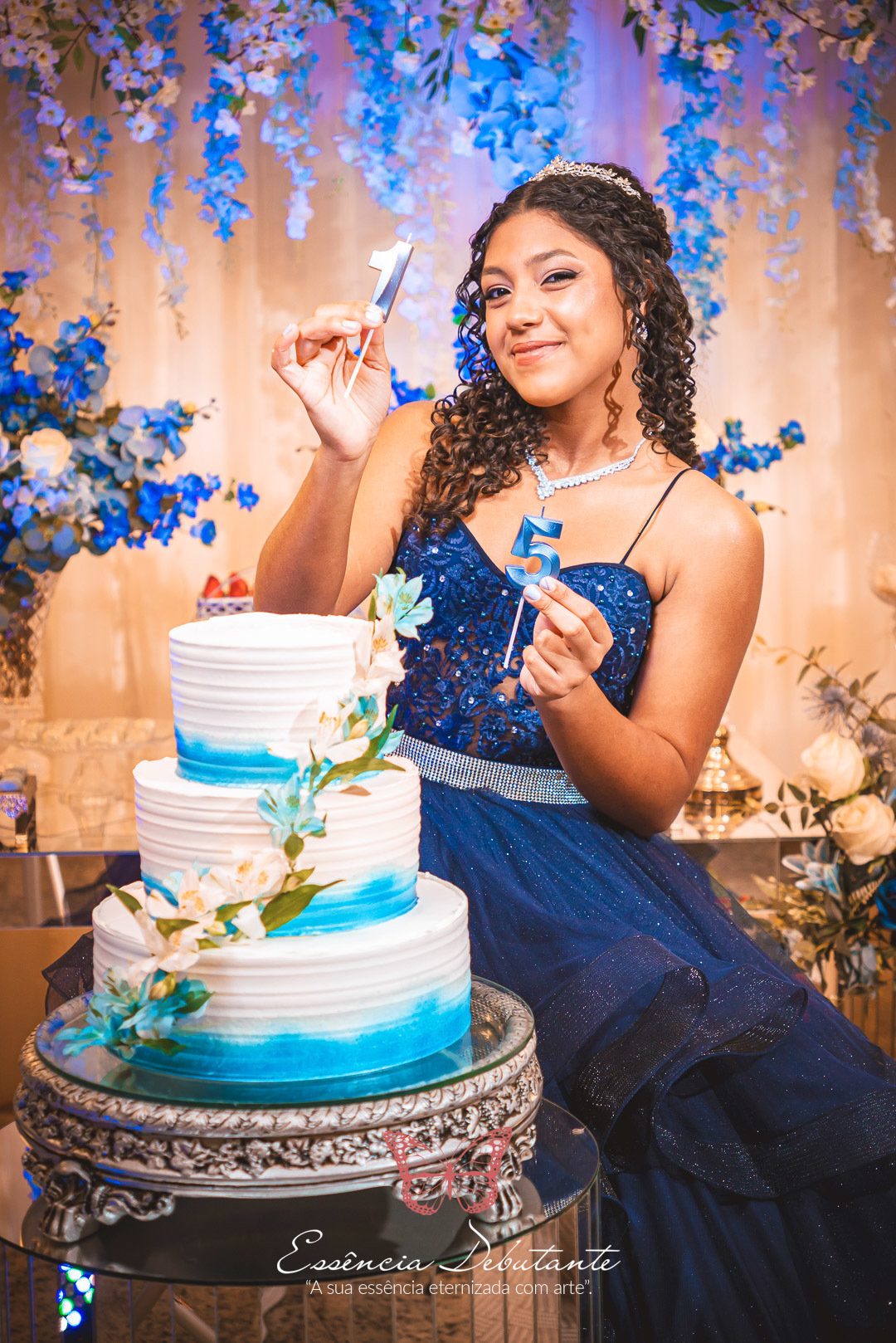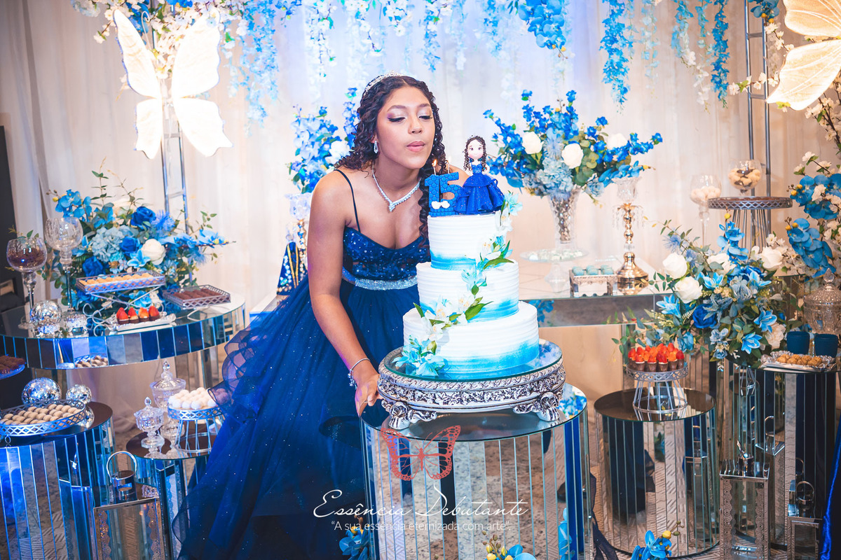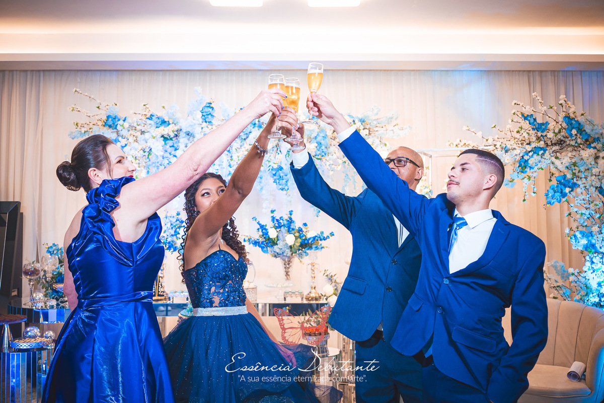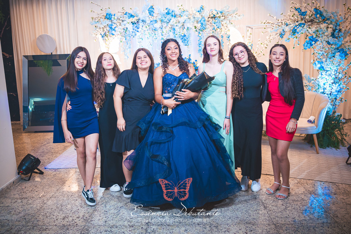 Vestida de azul royal e cercada de amor, Maria celebrou seus 15 anos em grande estilo.