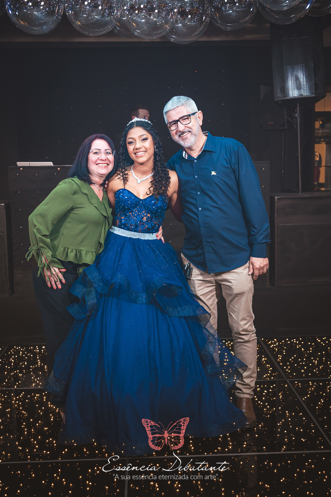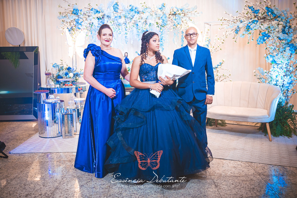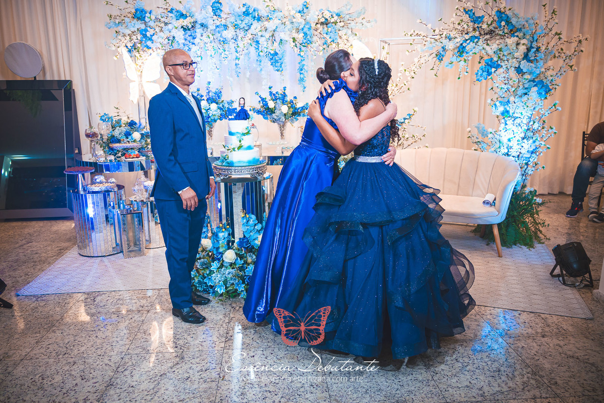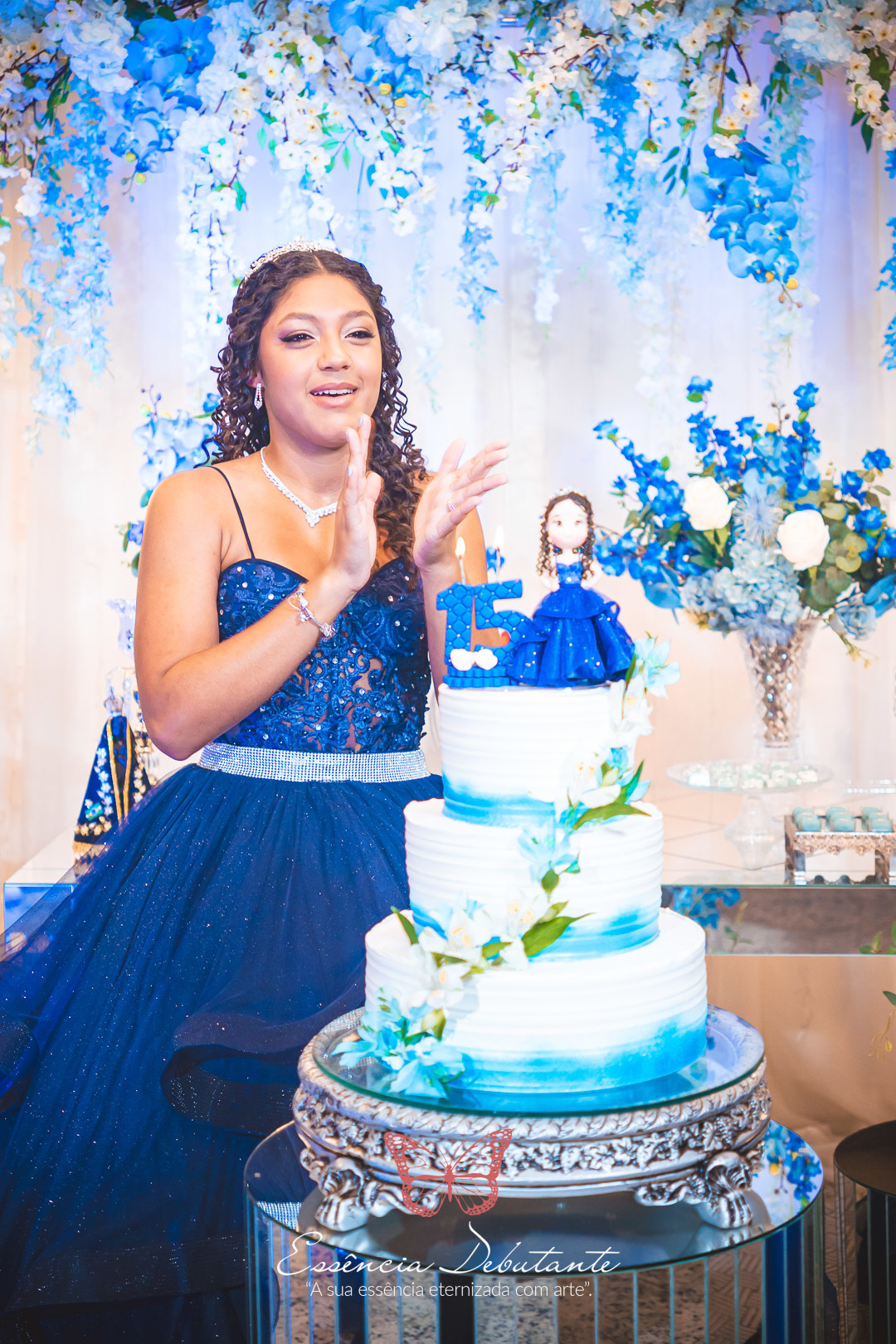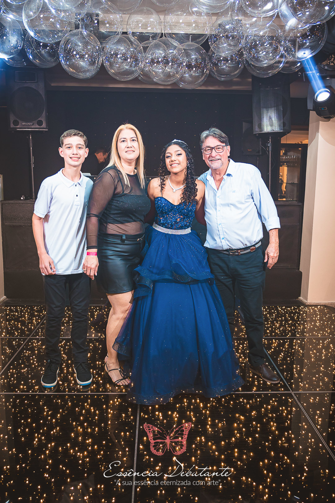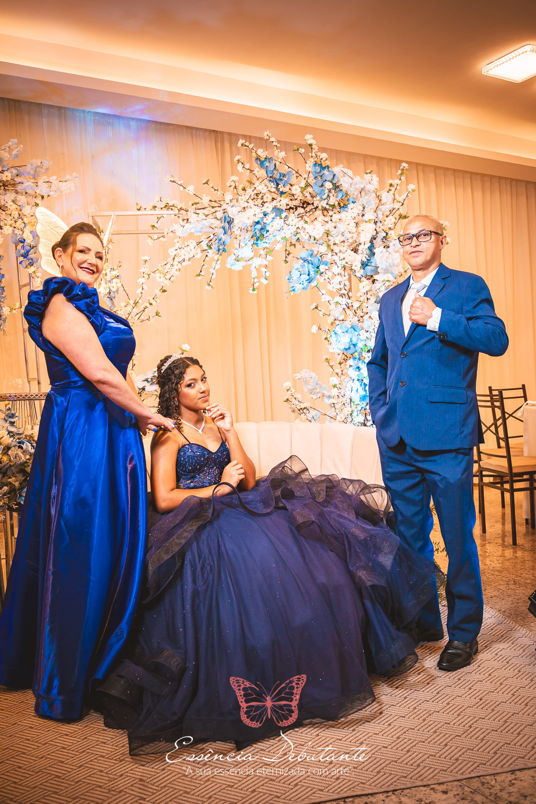 Vestida de azul royal e cercada de amor, Maria celebrou seus 15 anos em grande estilo.