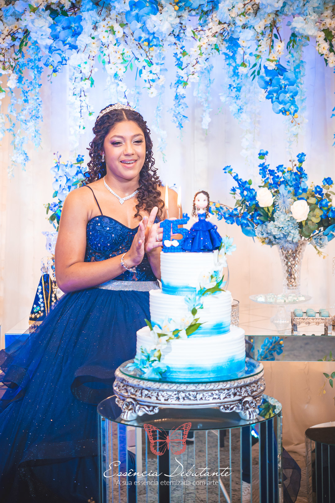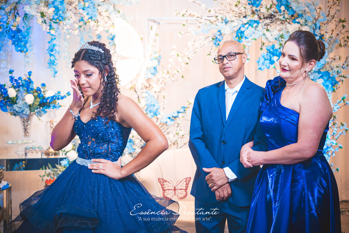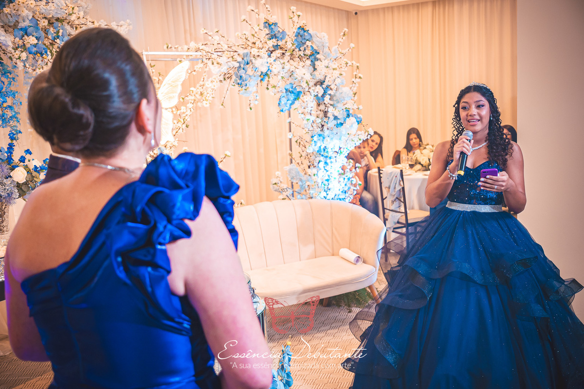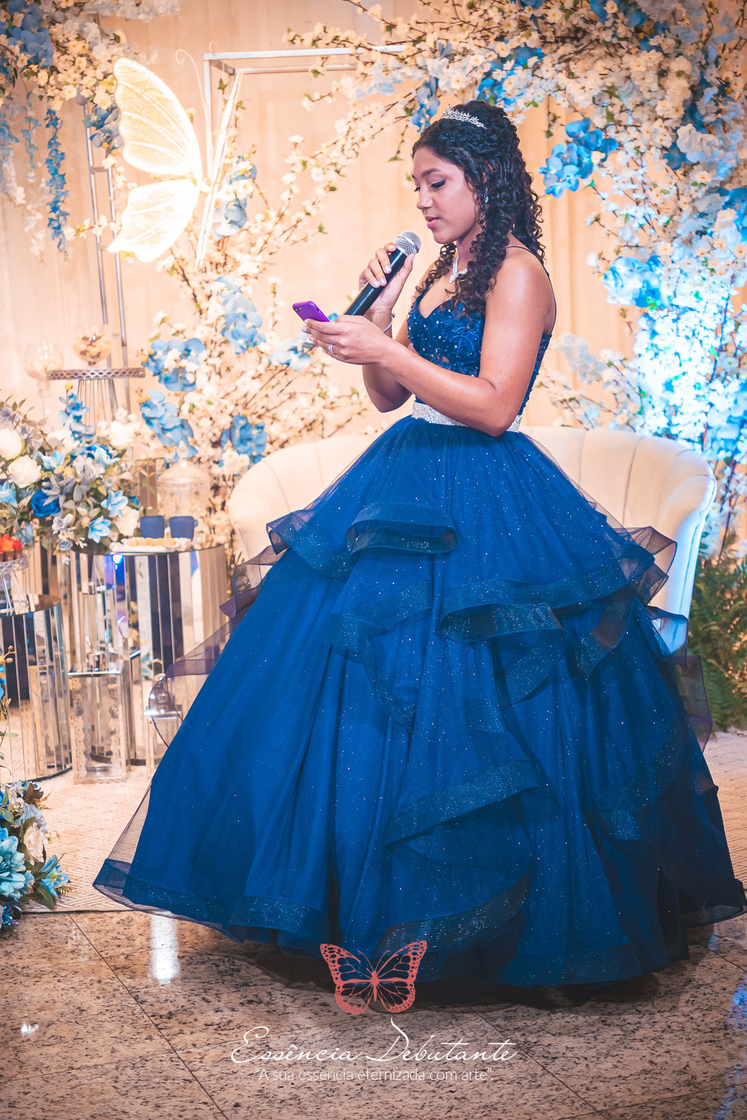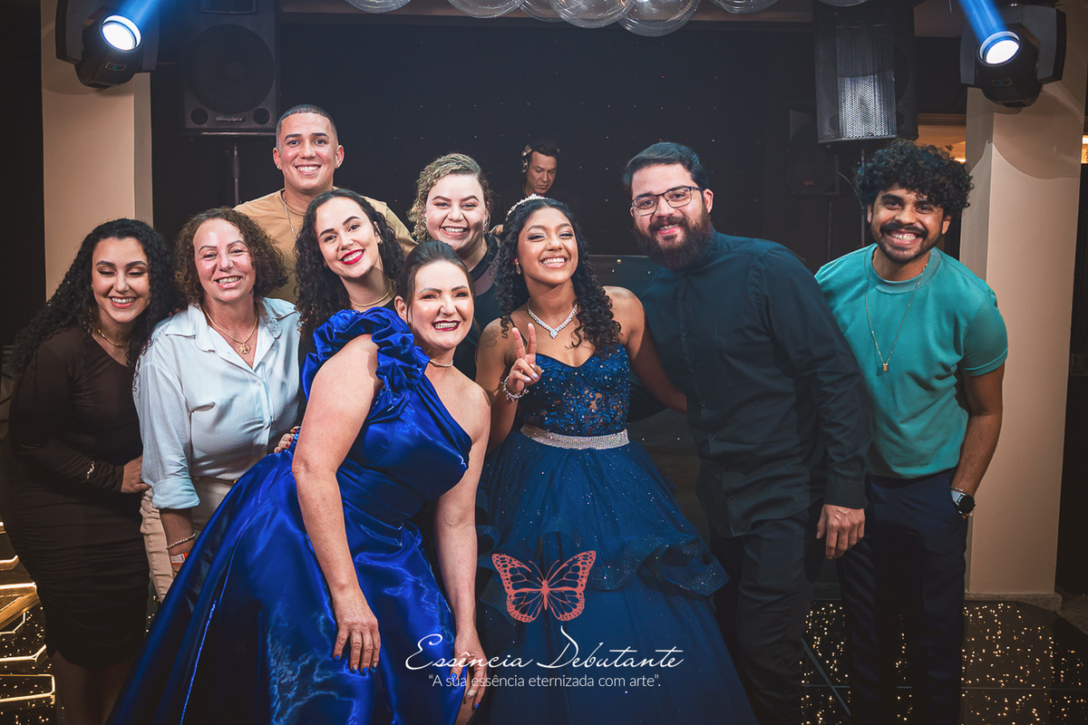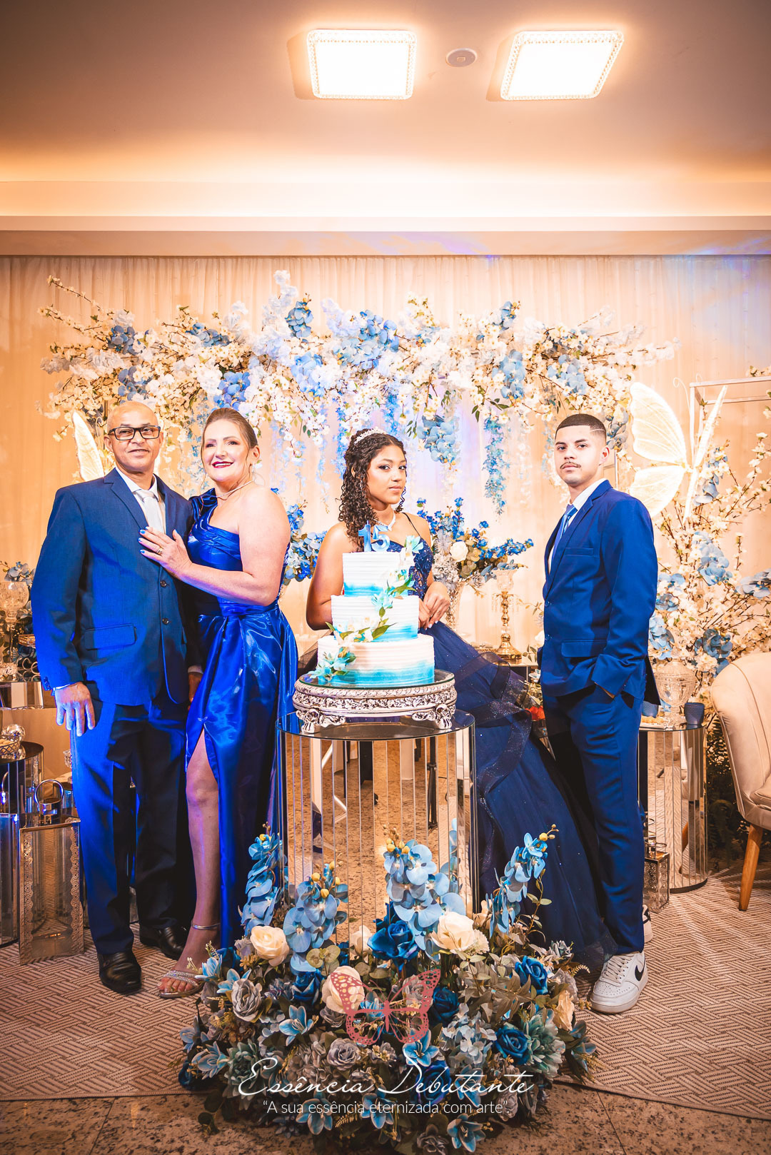 Vestida de azul royal e cercada de amor, Maria celebrou seus 15 anos em grande estilo.