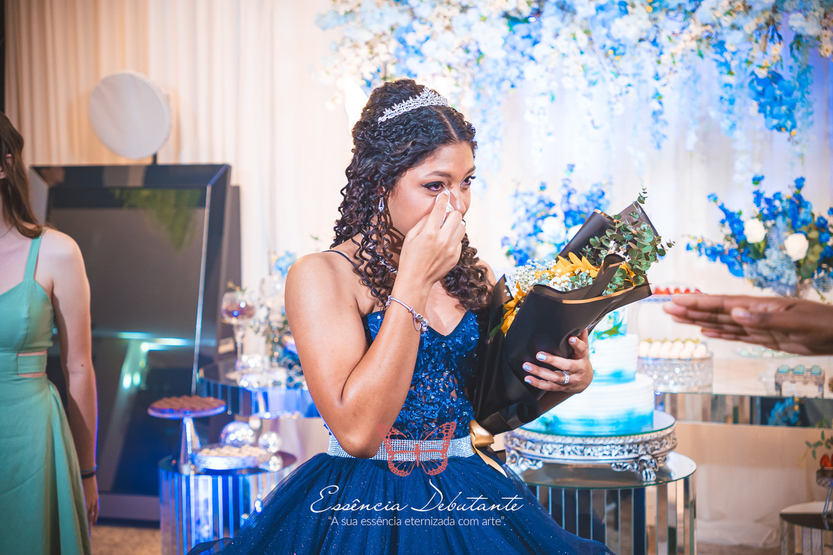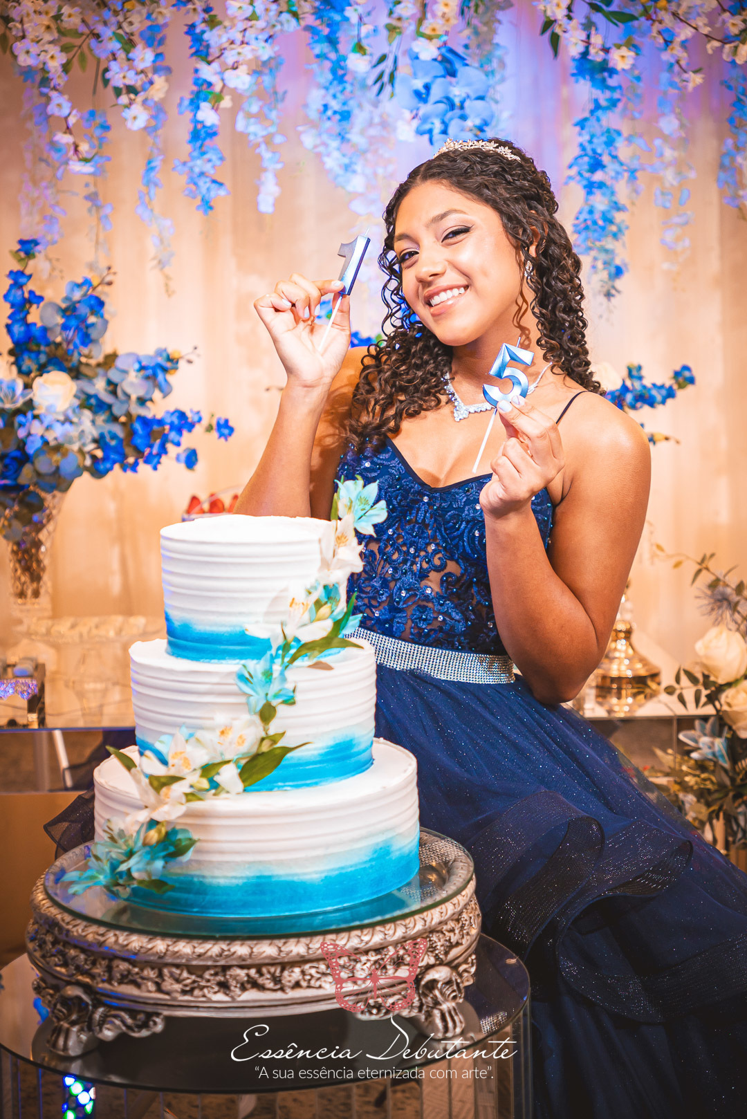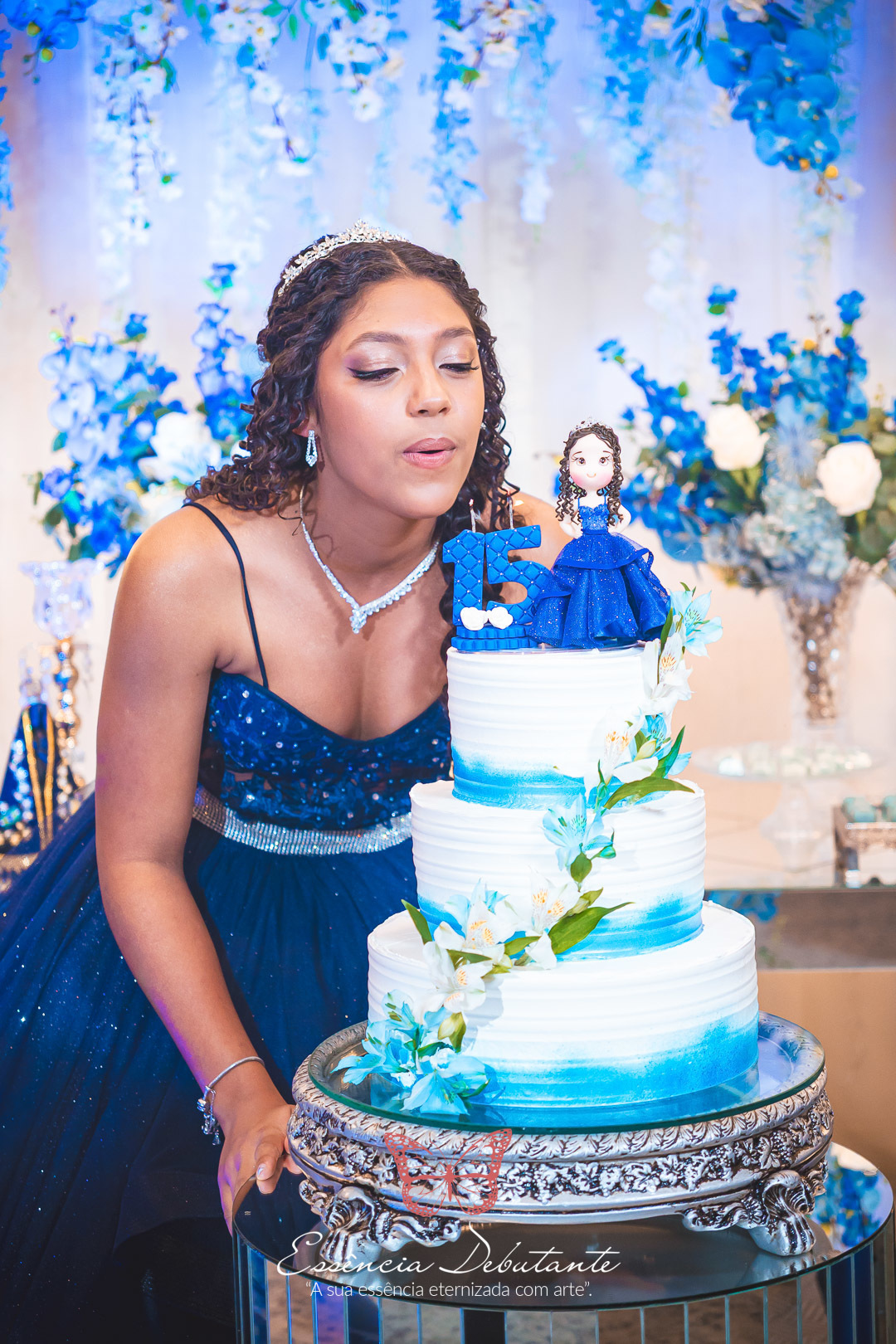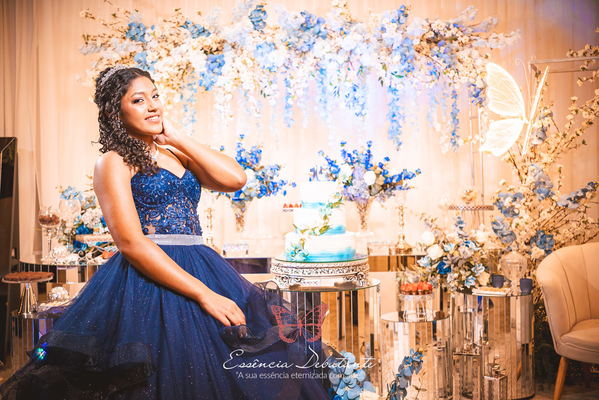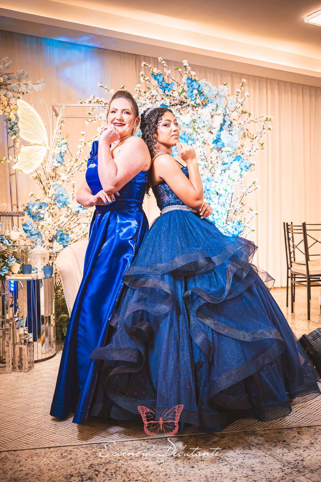 Vestida de azul royal e cercada de amor, Maria celebrou seus 15 anos em grande estilo.