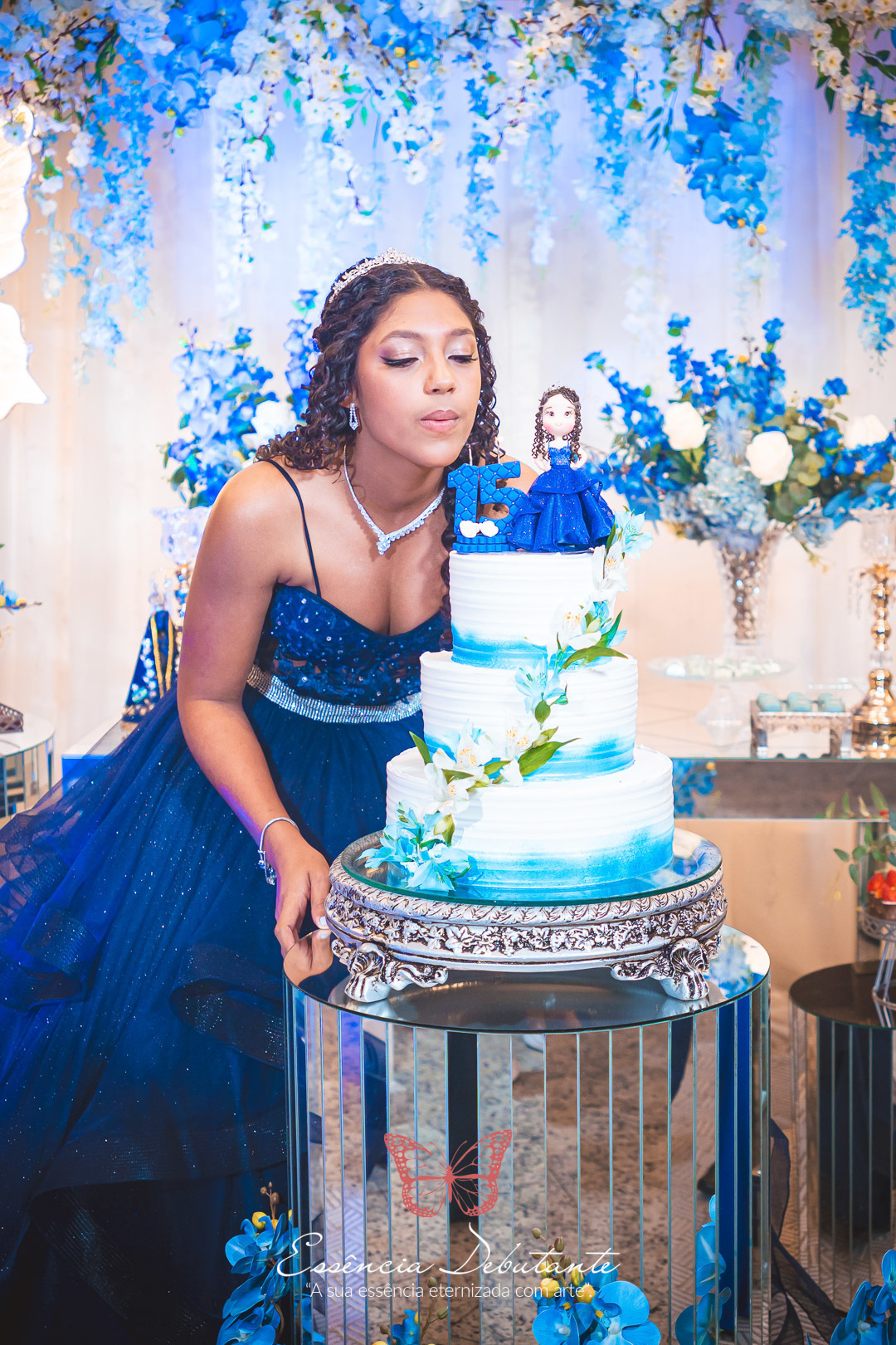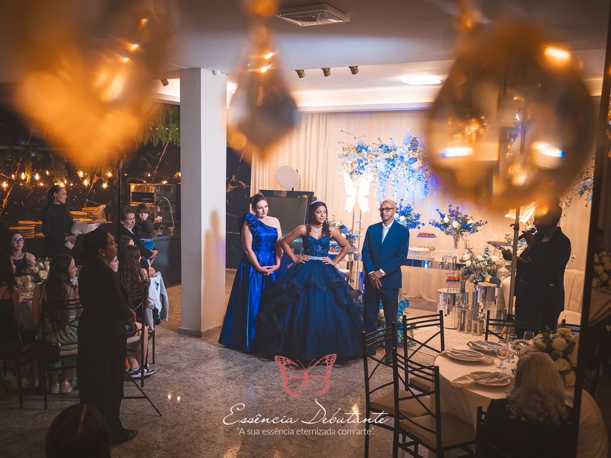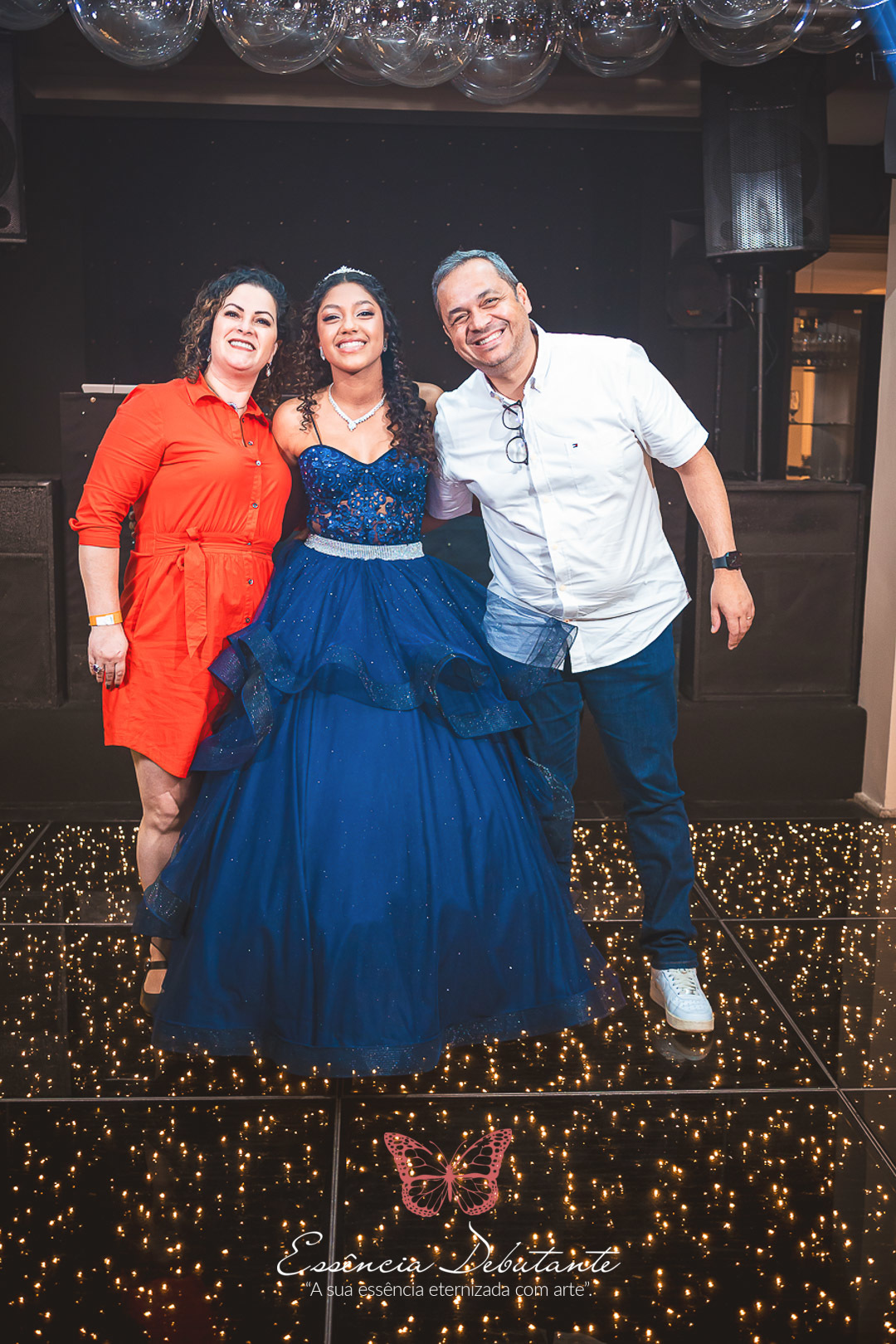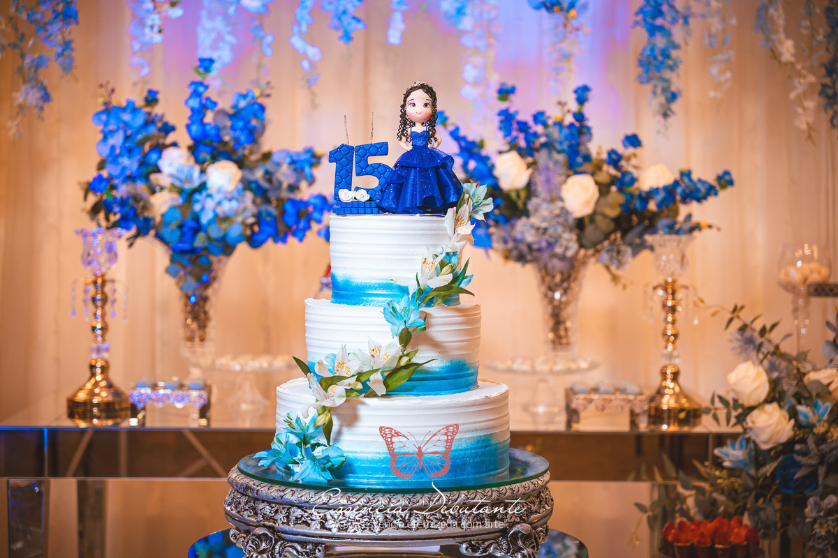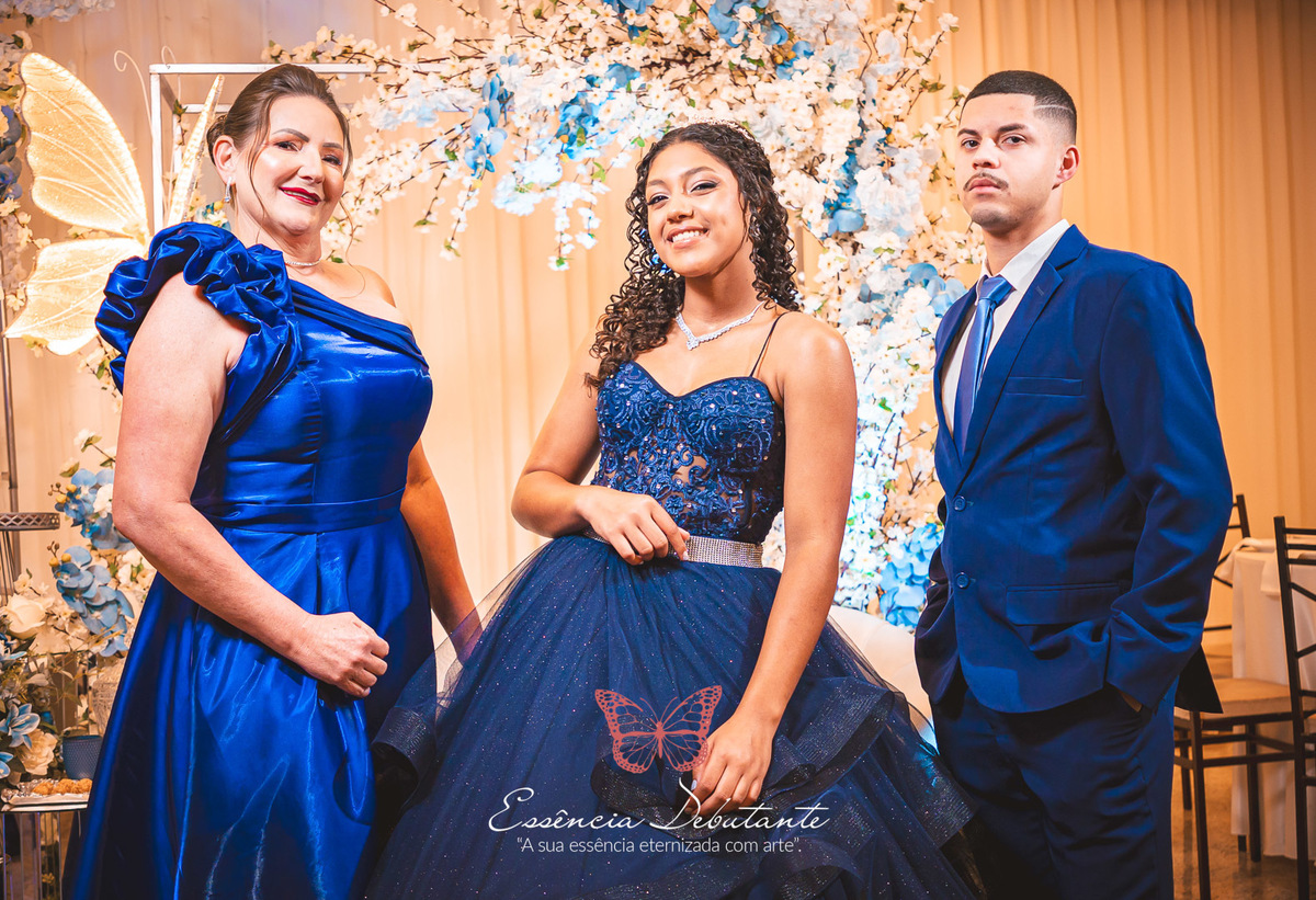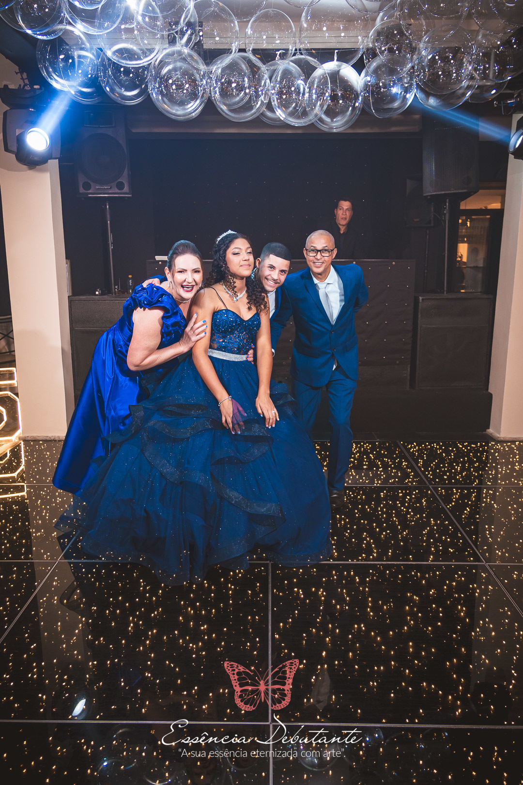 Vestida de azul royal e cercada de amor, Maria celebrou seus 15 anos em grande estilo.