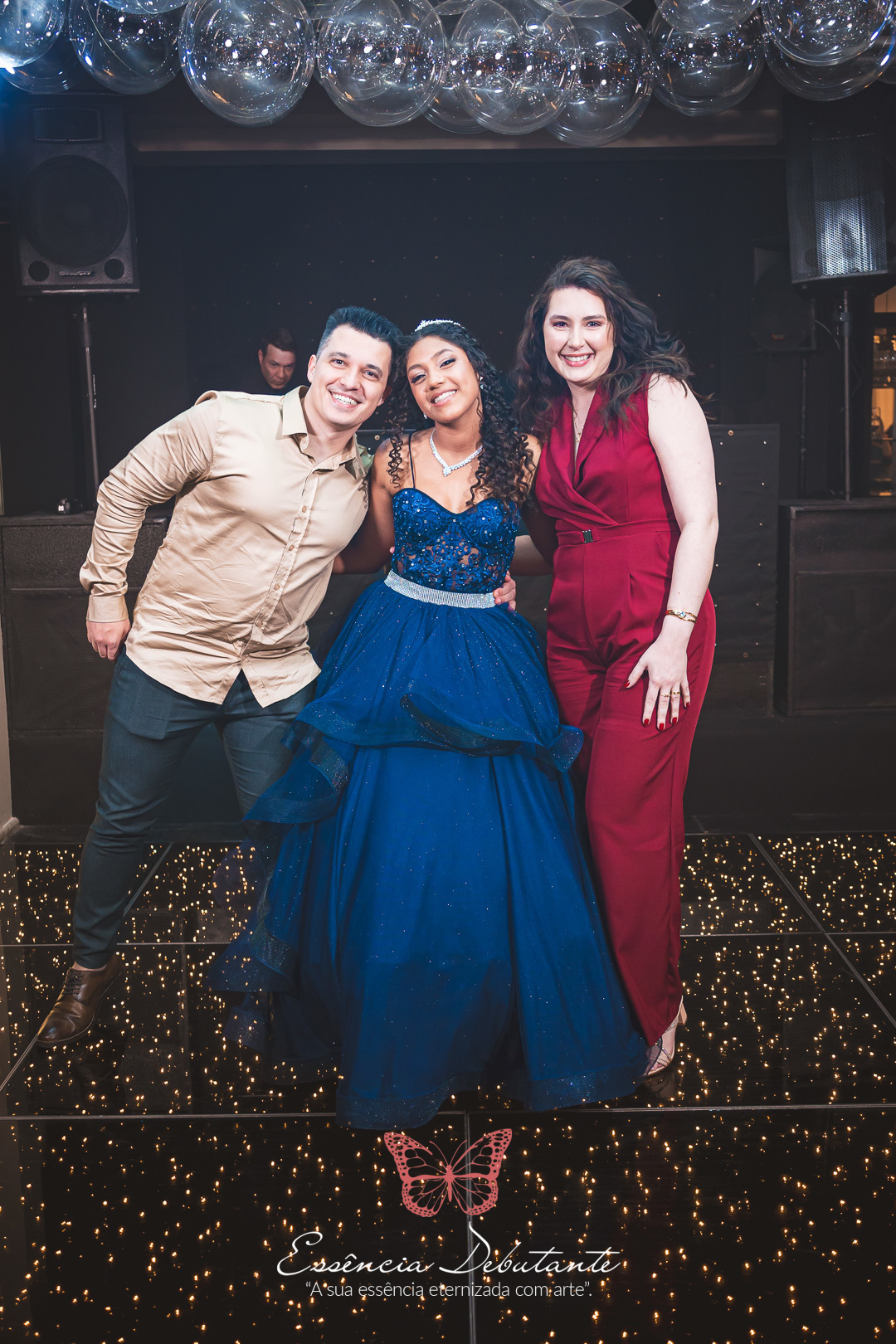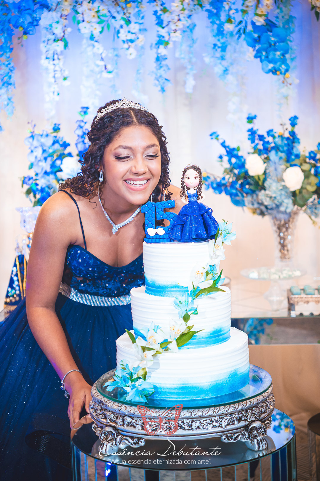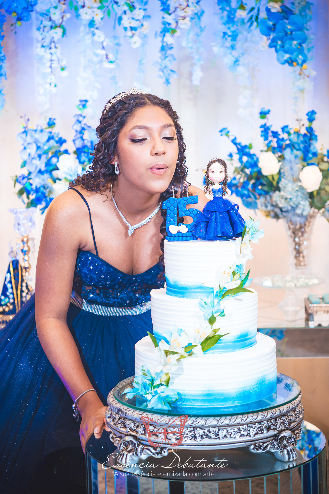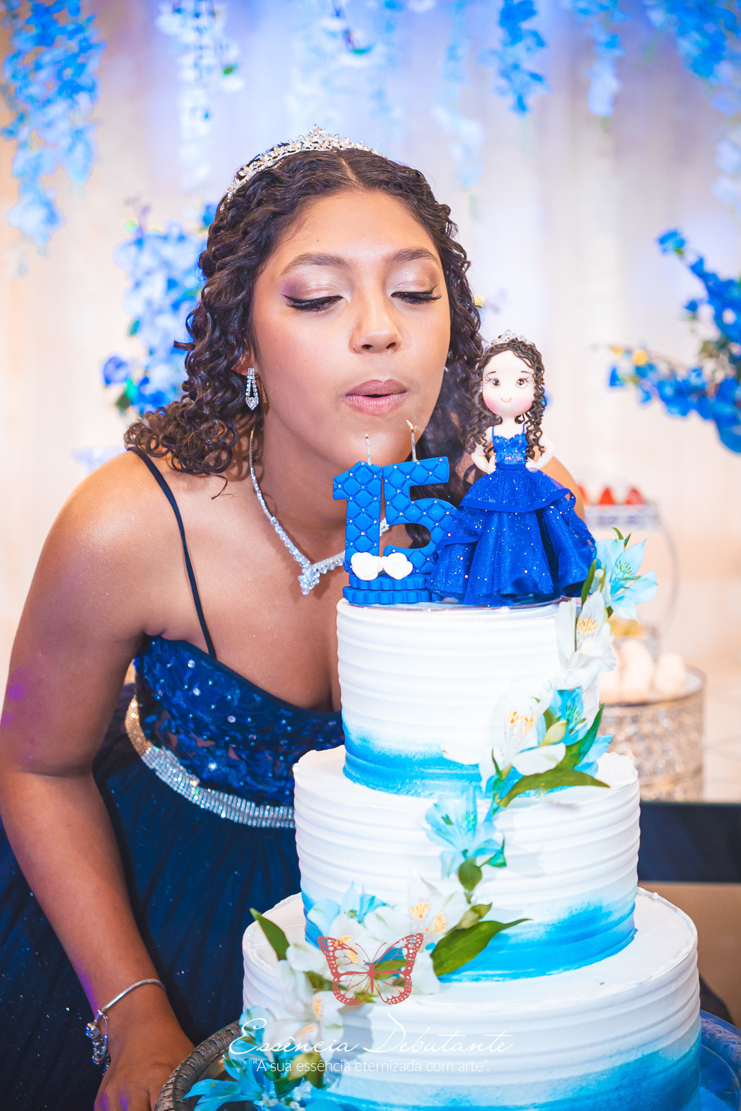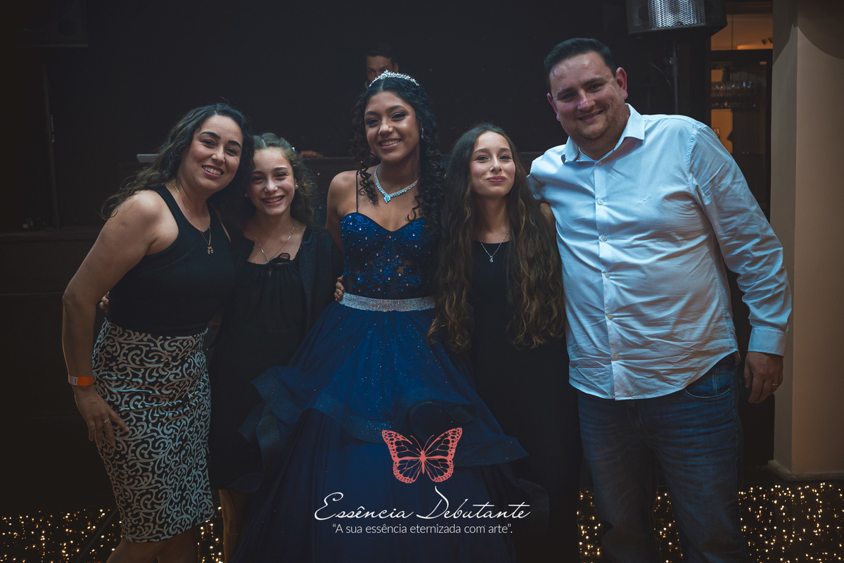 Vestida de azul royal e cercada de amor, Maria celebrou seus 15 anos em grande estilo.