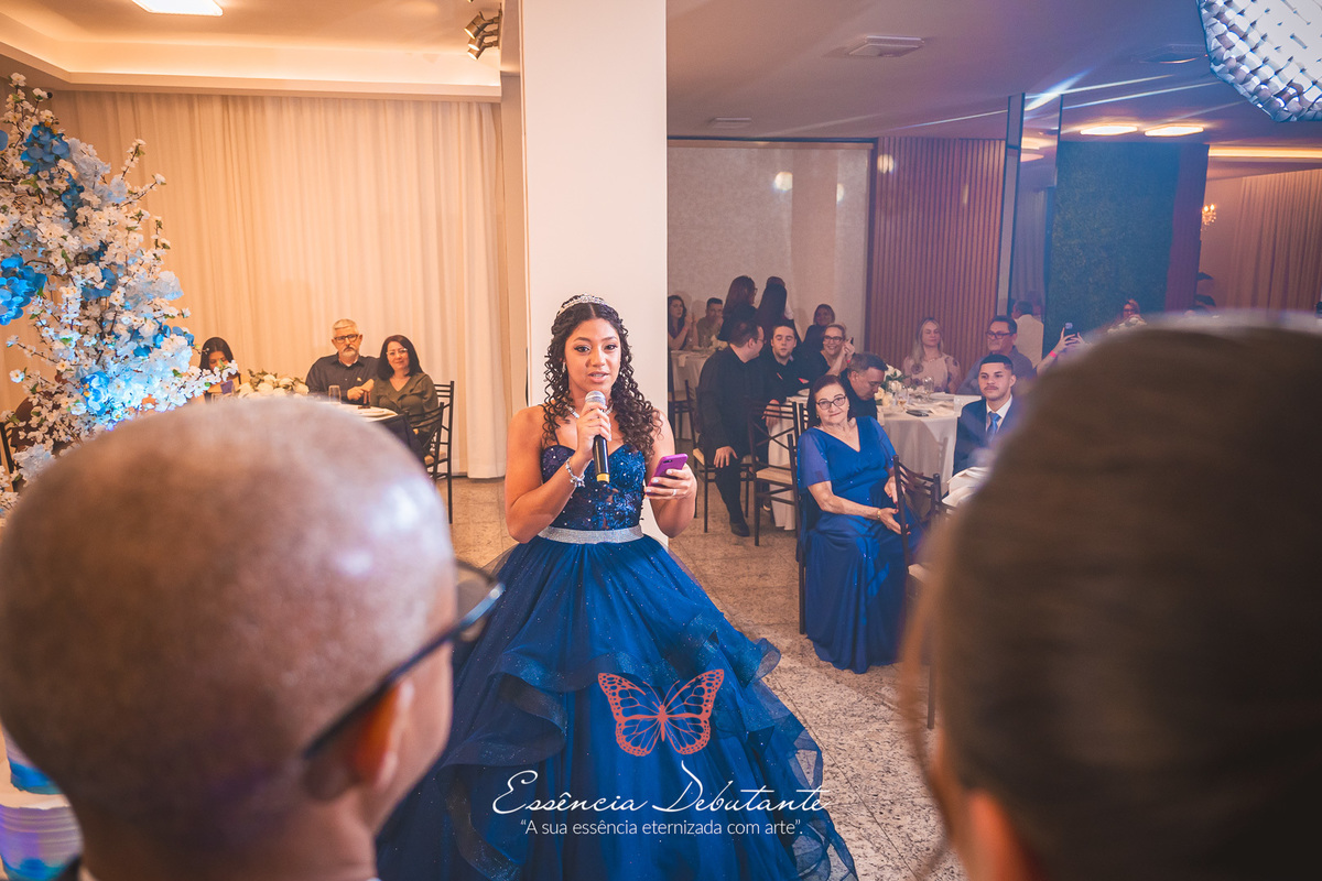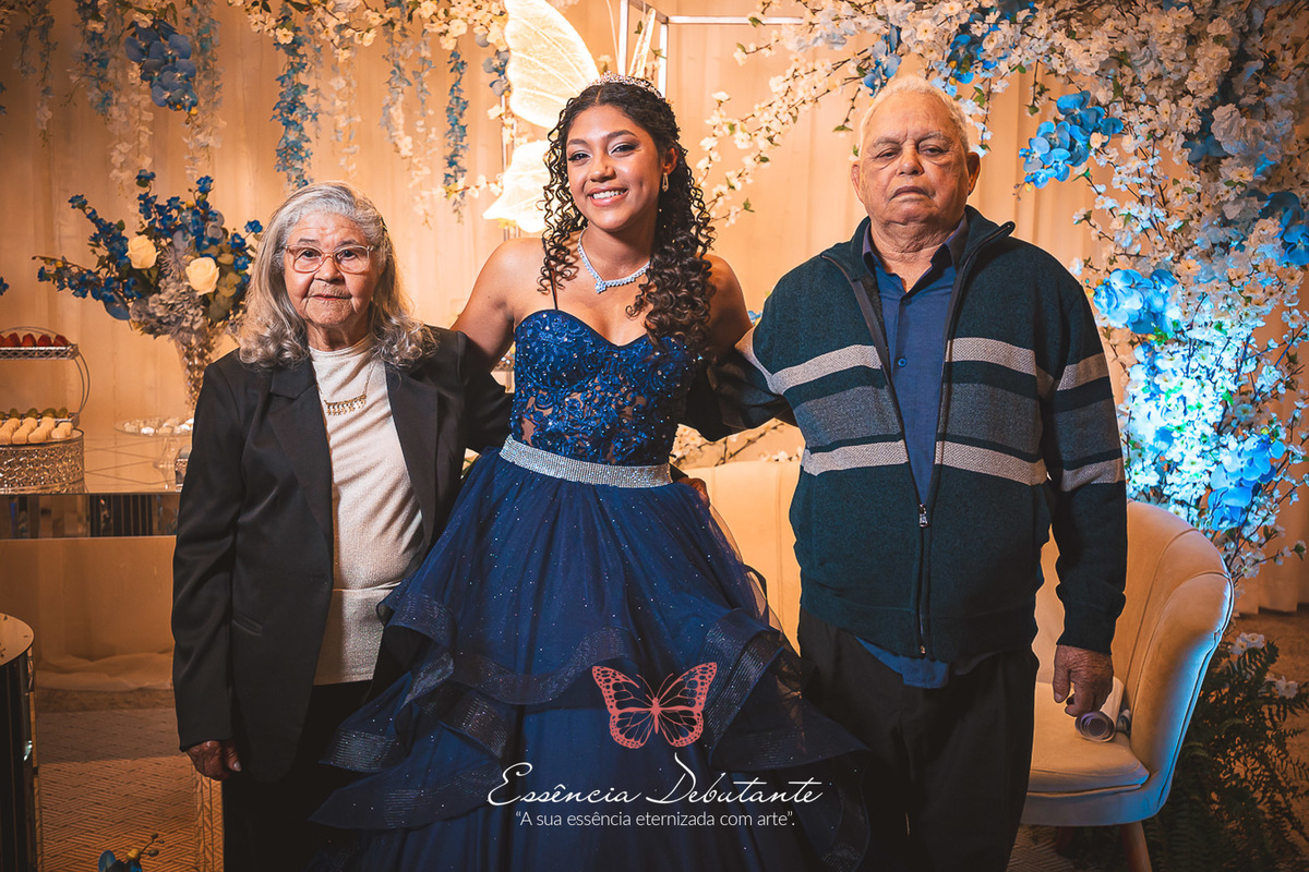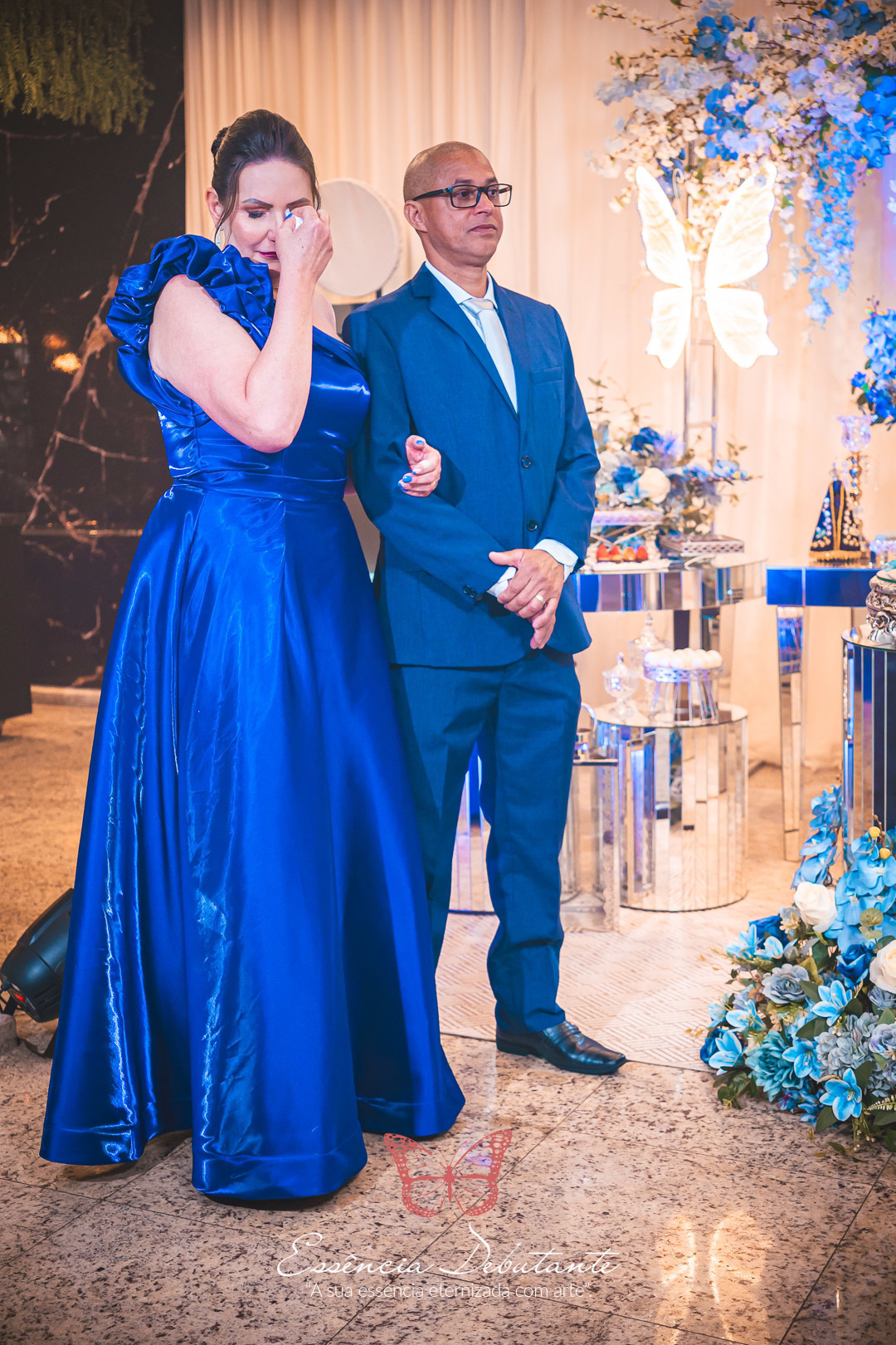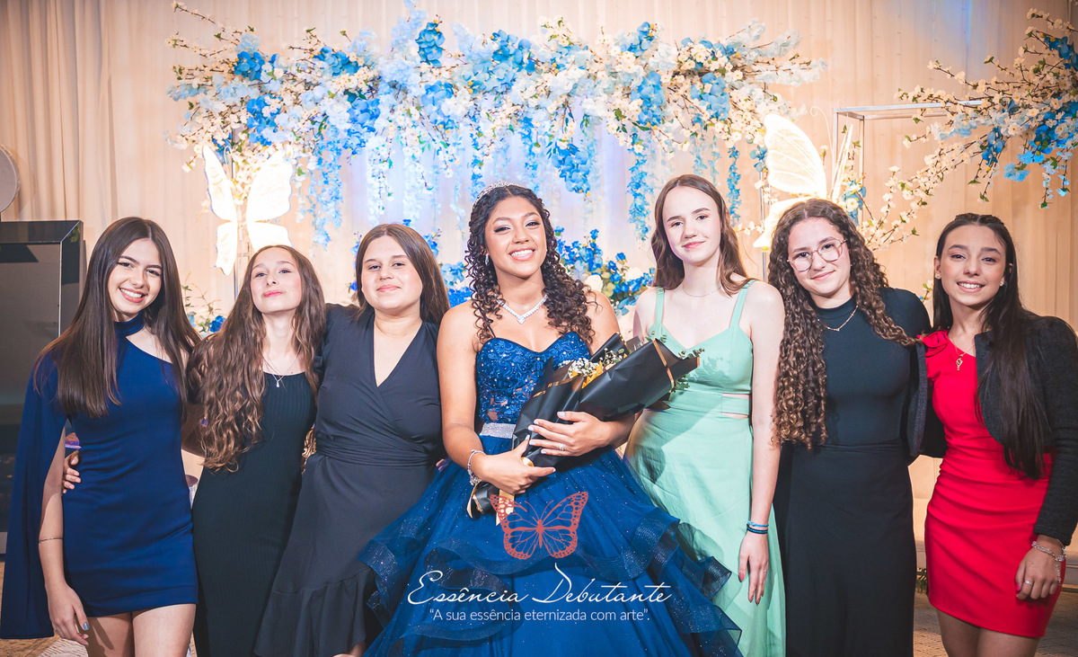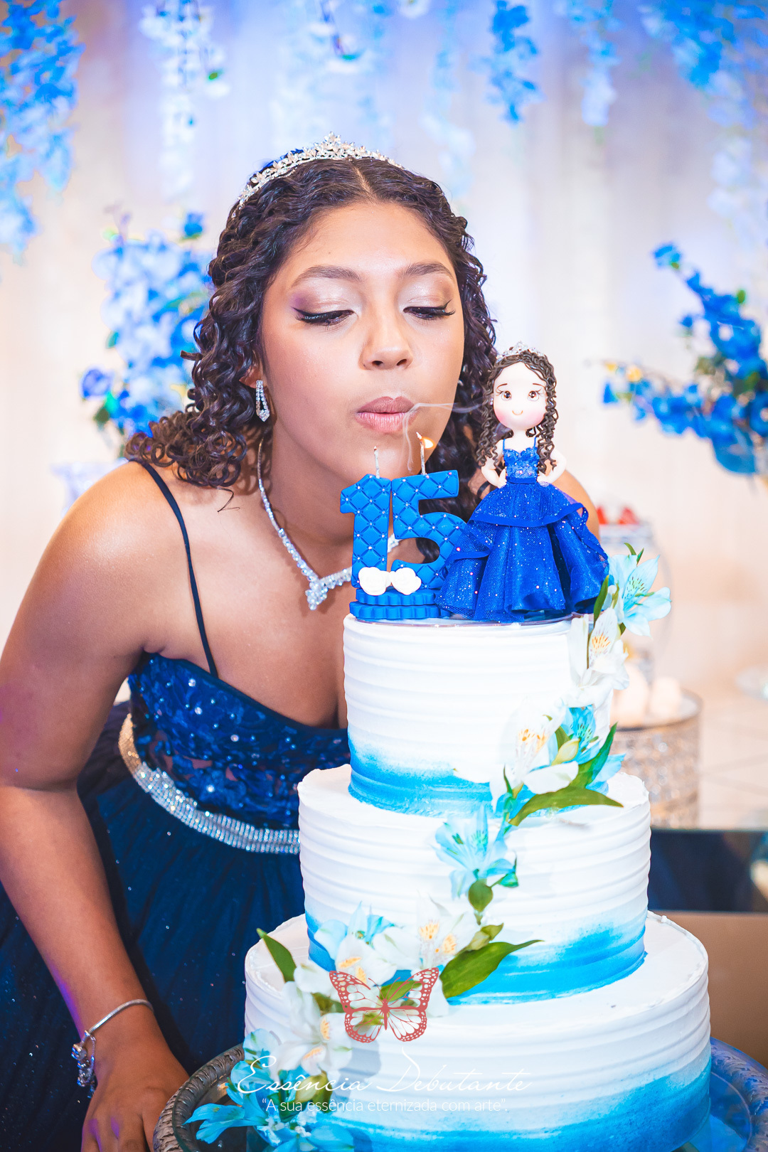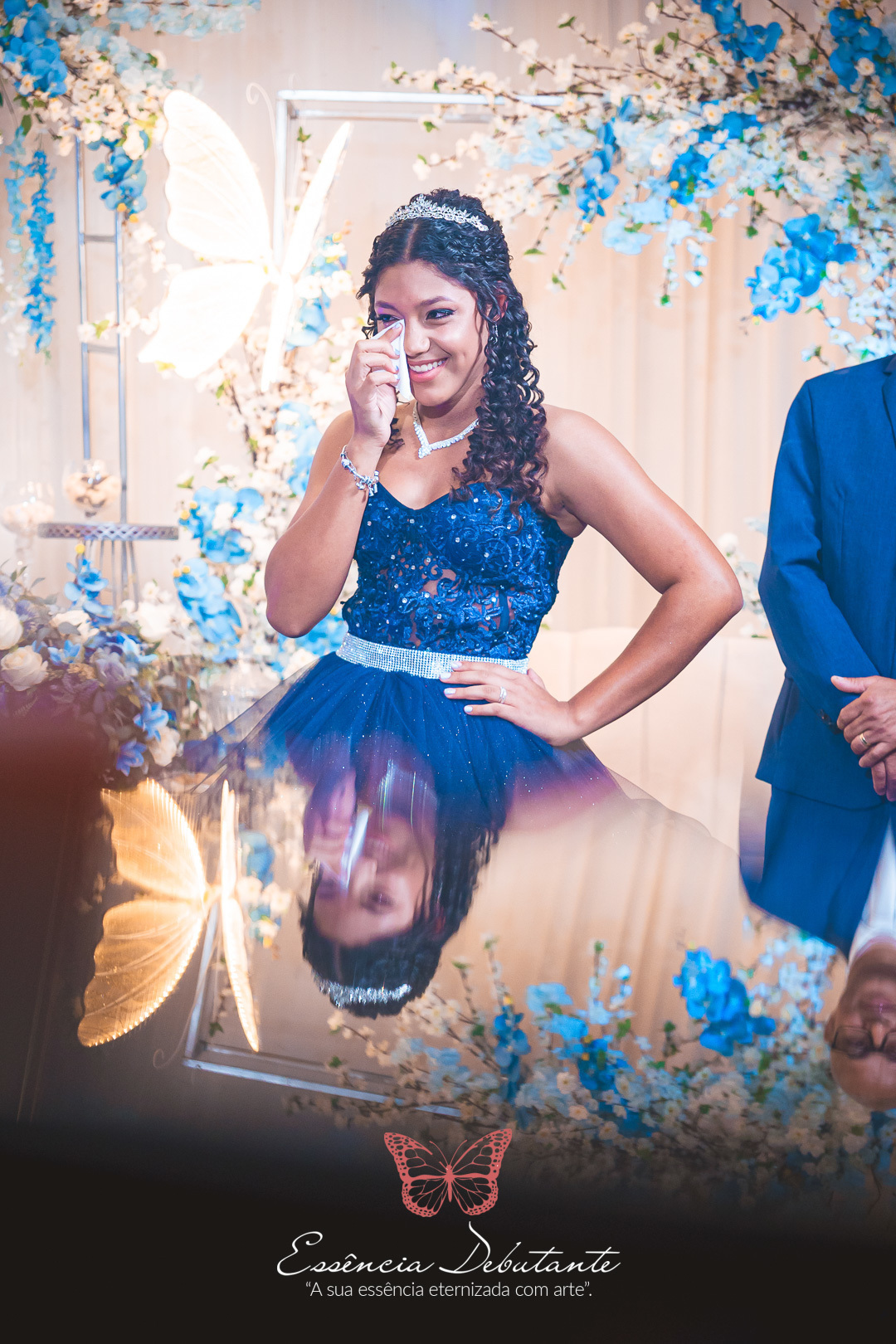 Vestida de azul royal e cercada de amor, Maria celebrou seus 15 anos em grande estilo.