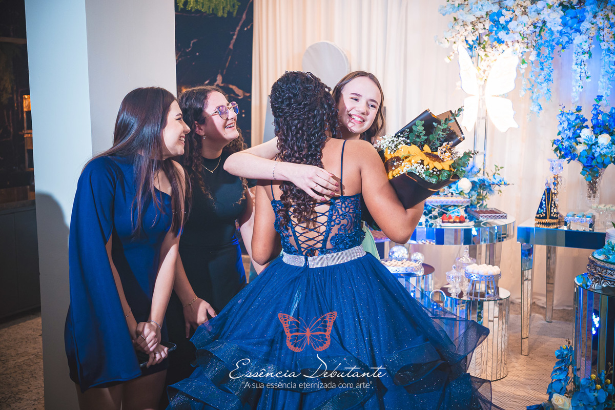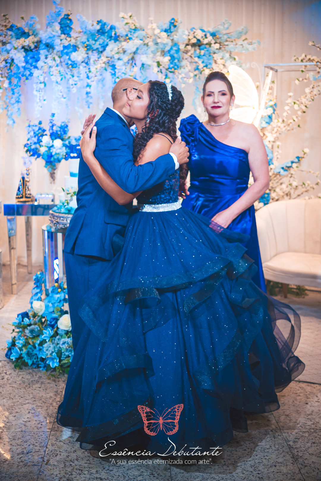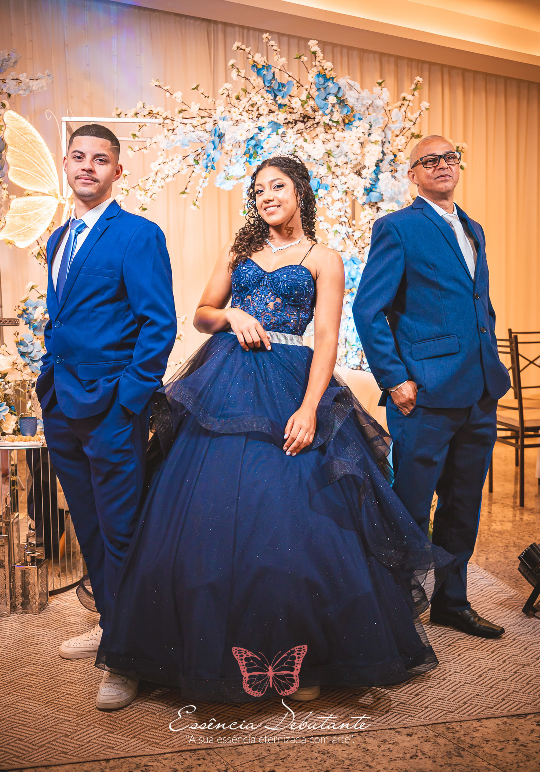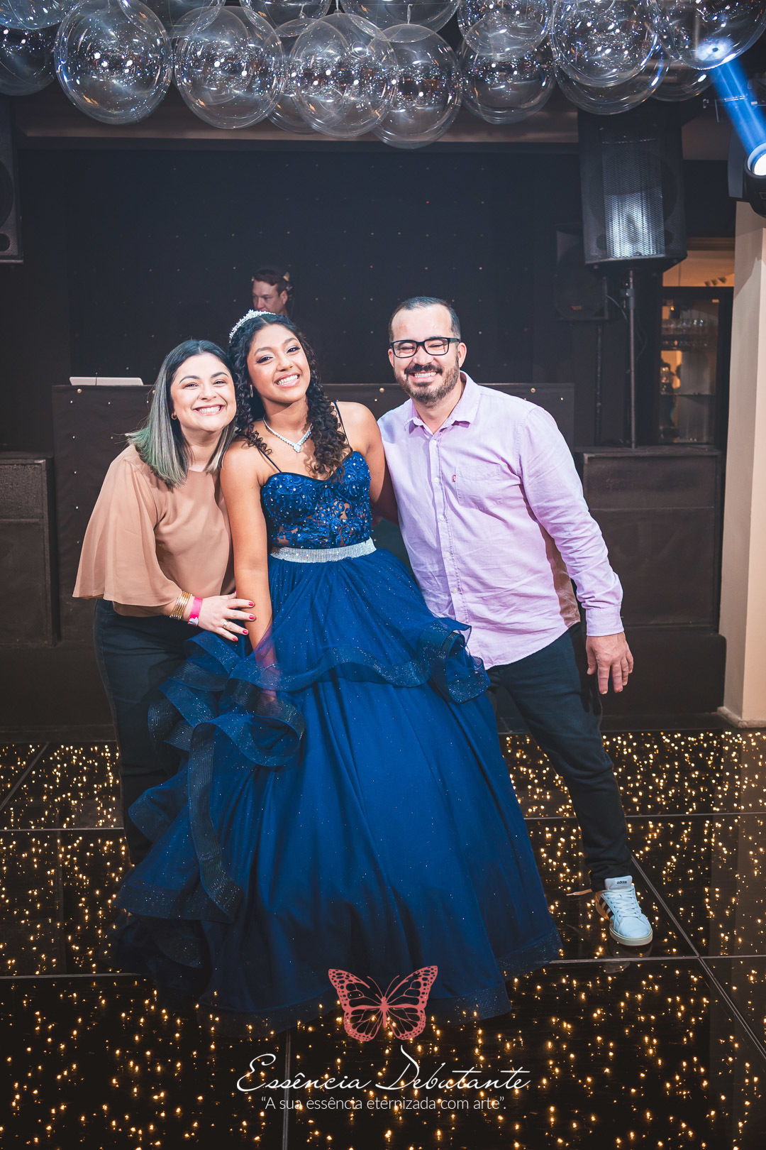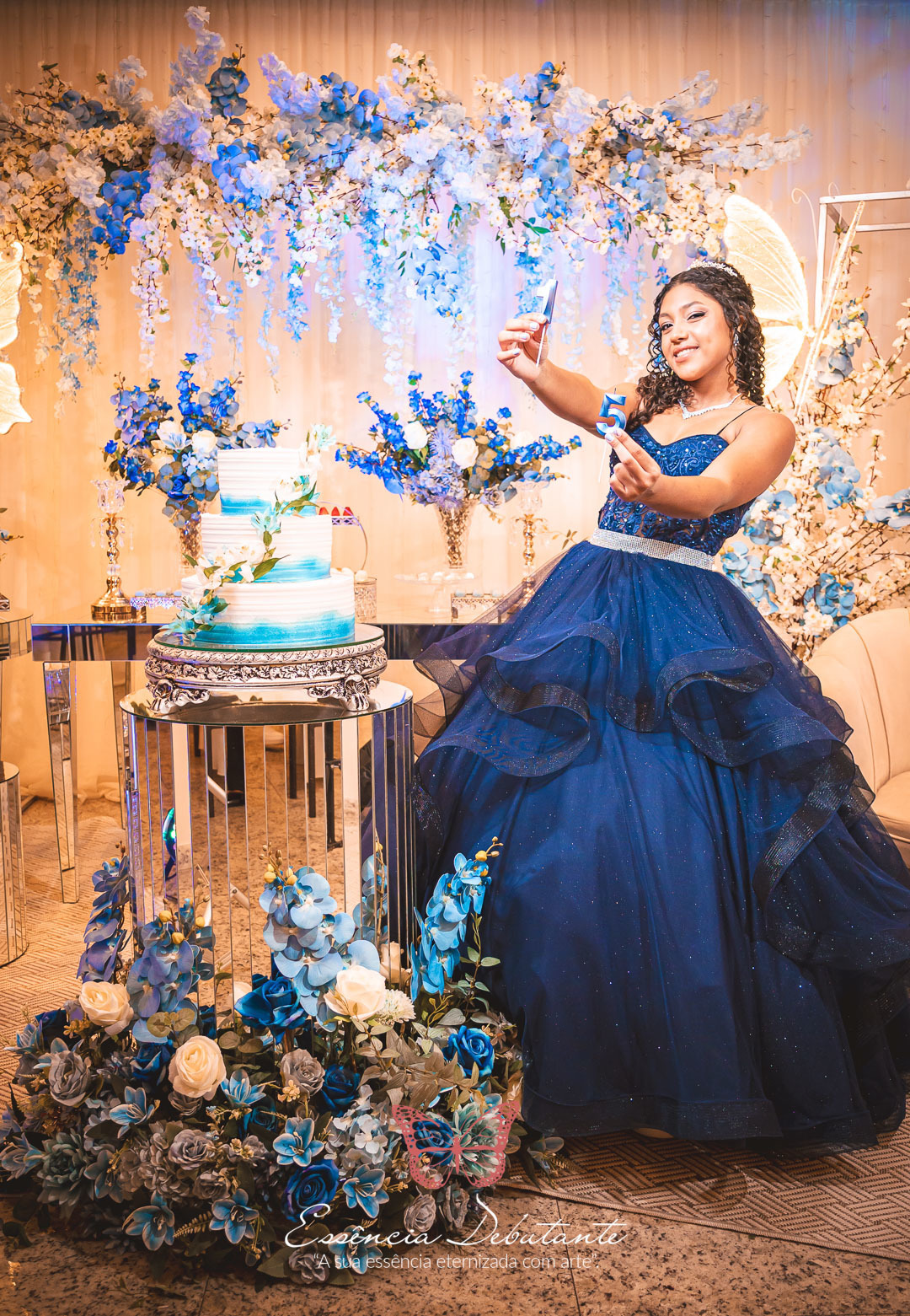 Vestida de azul royal e cercada de amor, Maria celebrou seus 15 anos em grande estilo.