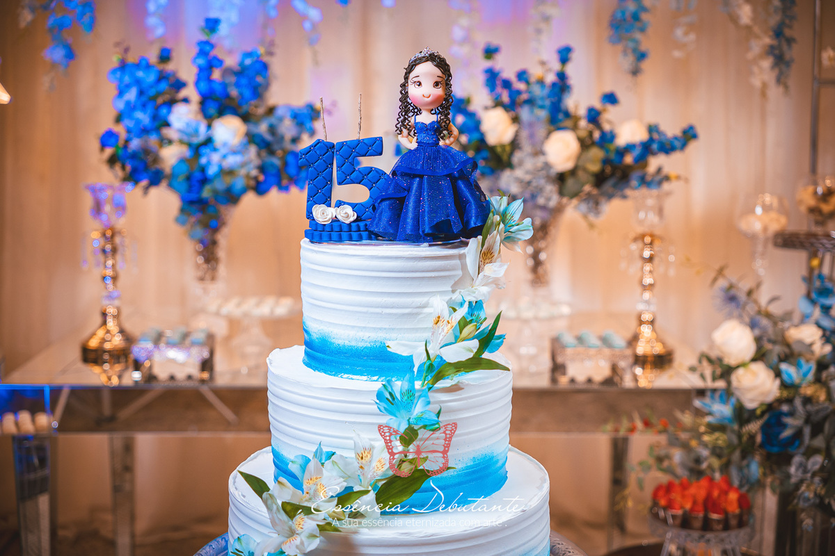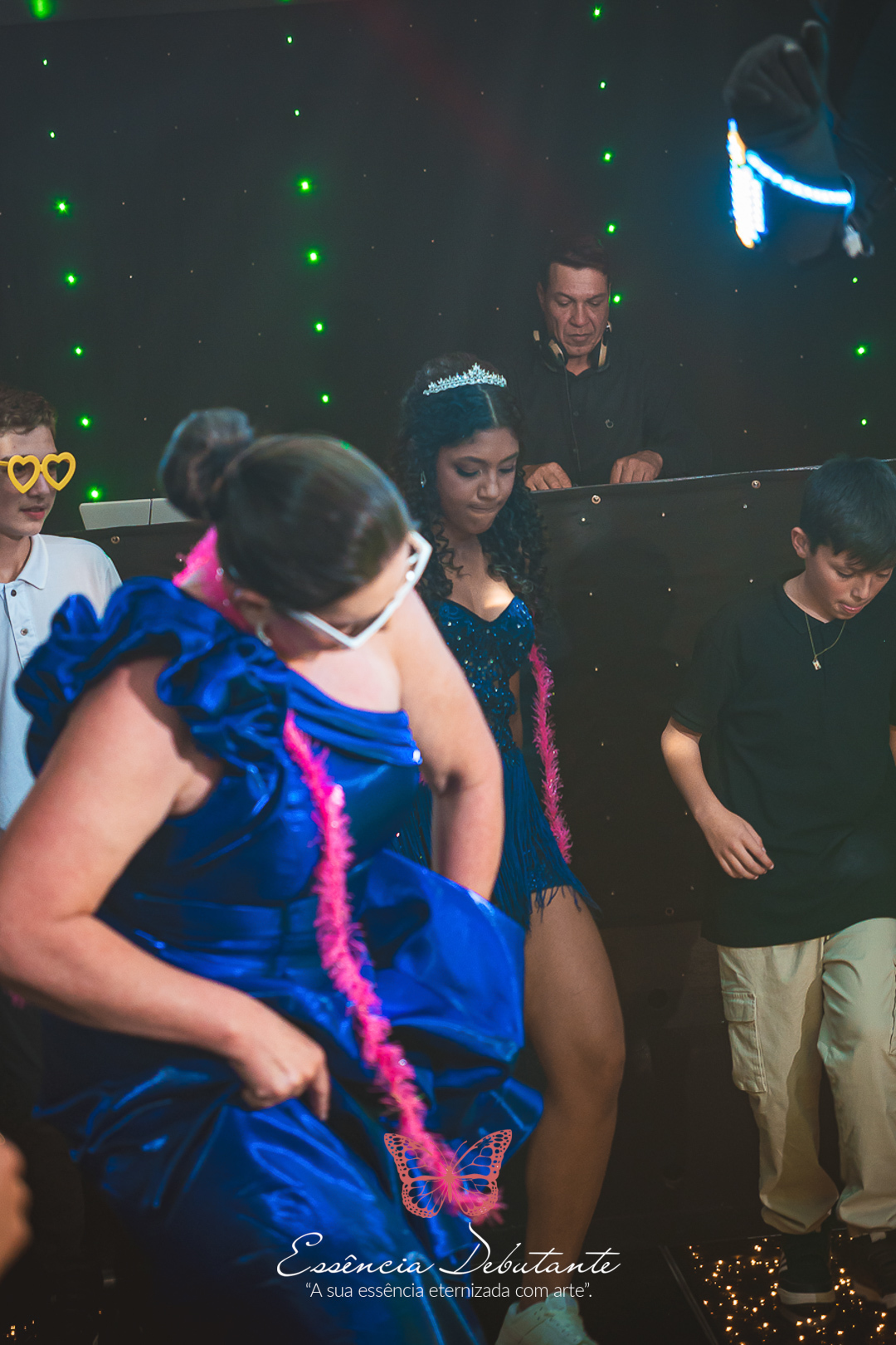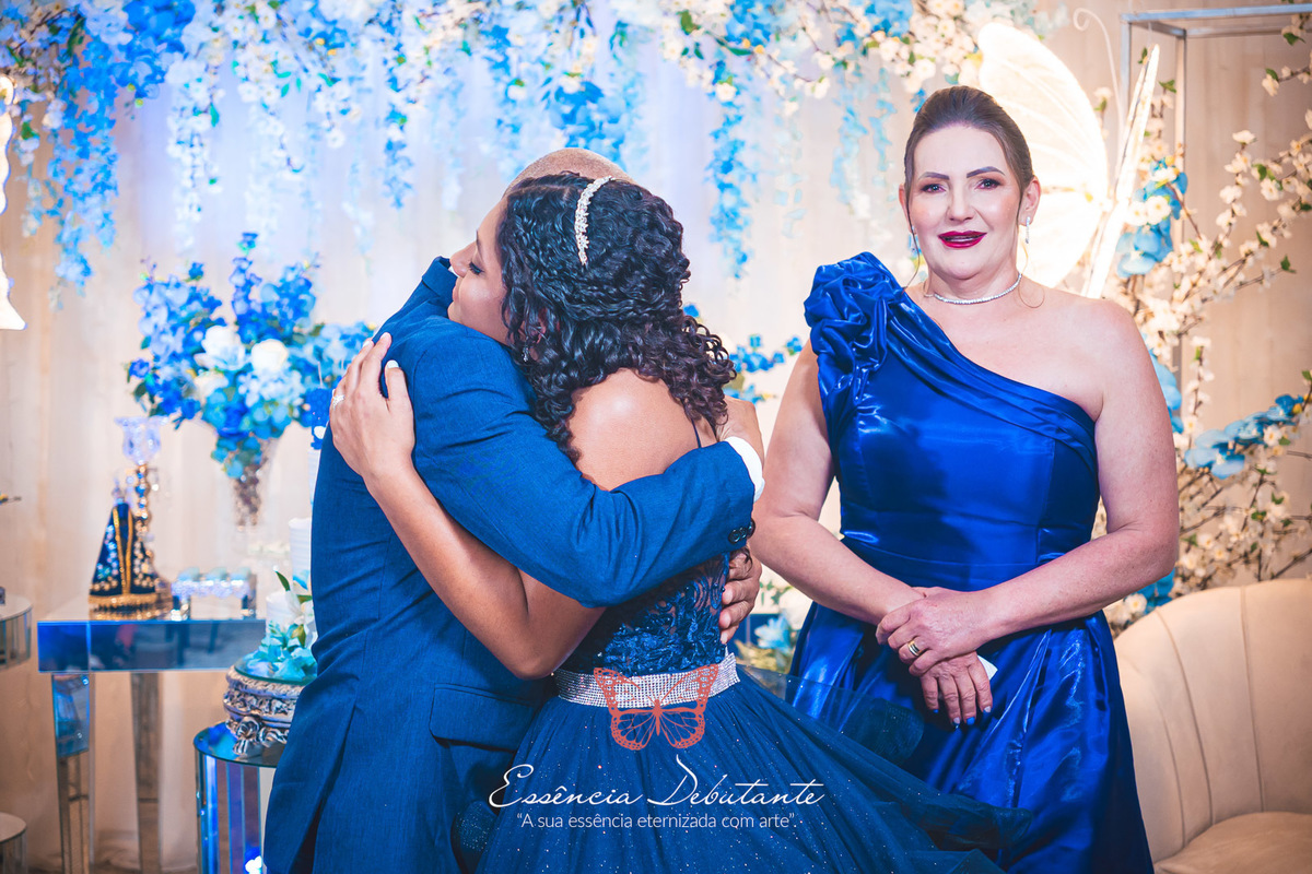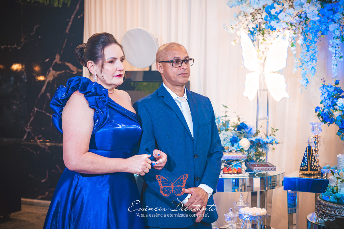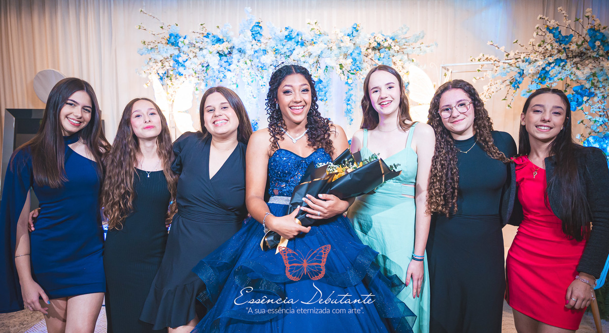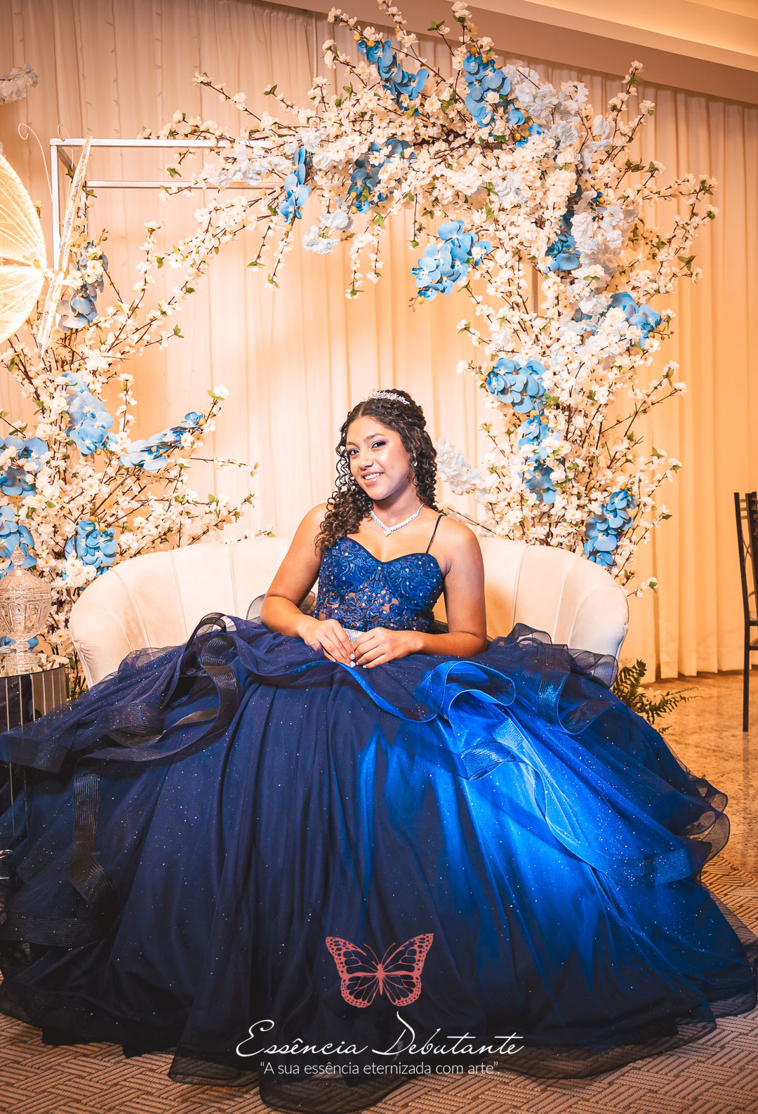 Vestida de azul royal e cercada de amor, Maria celebrou seus 15 anos em grande estilo.