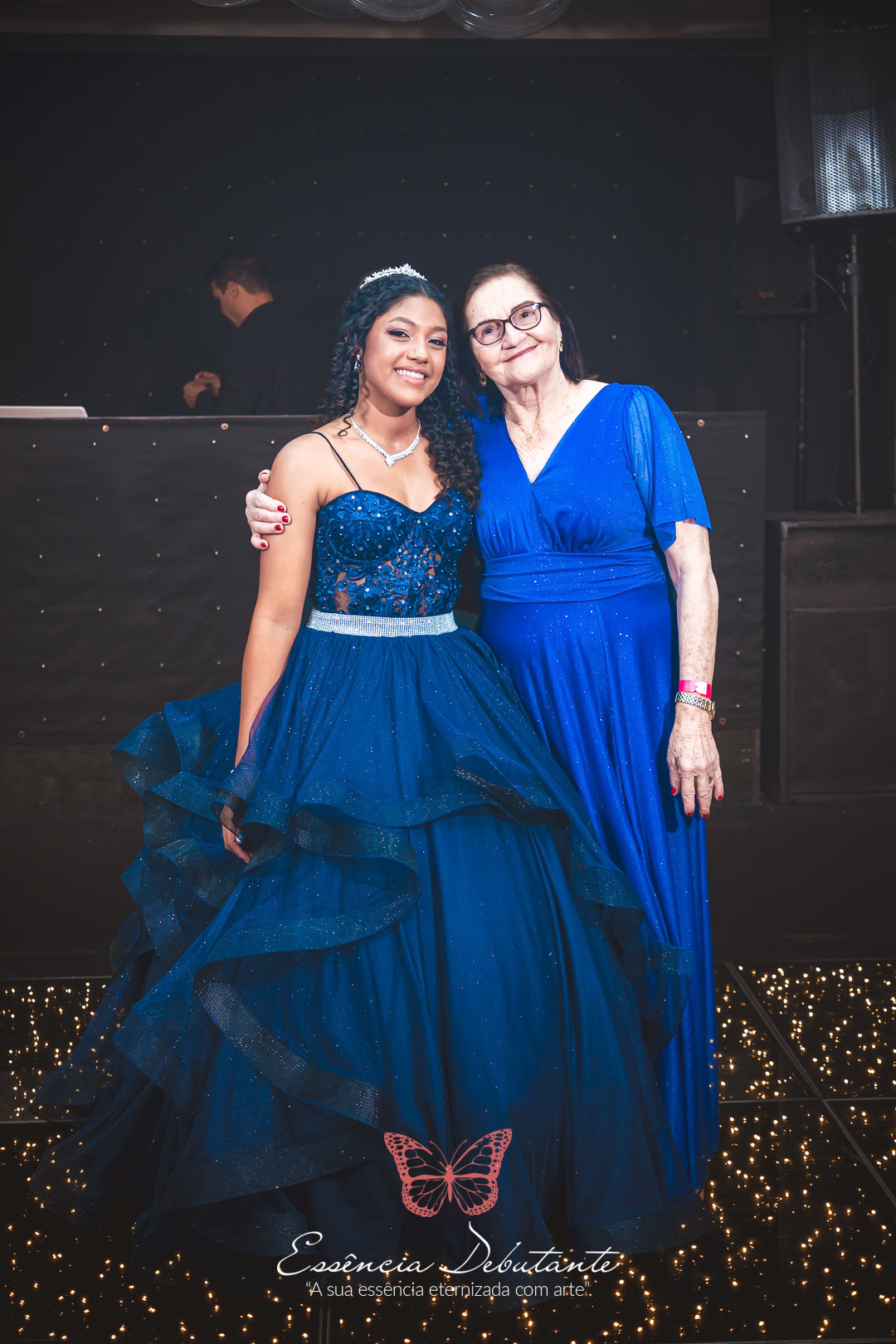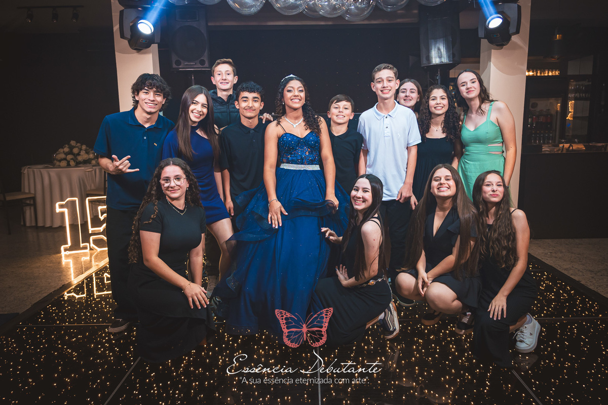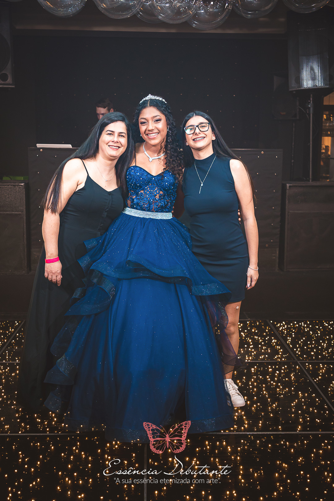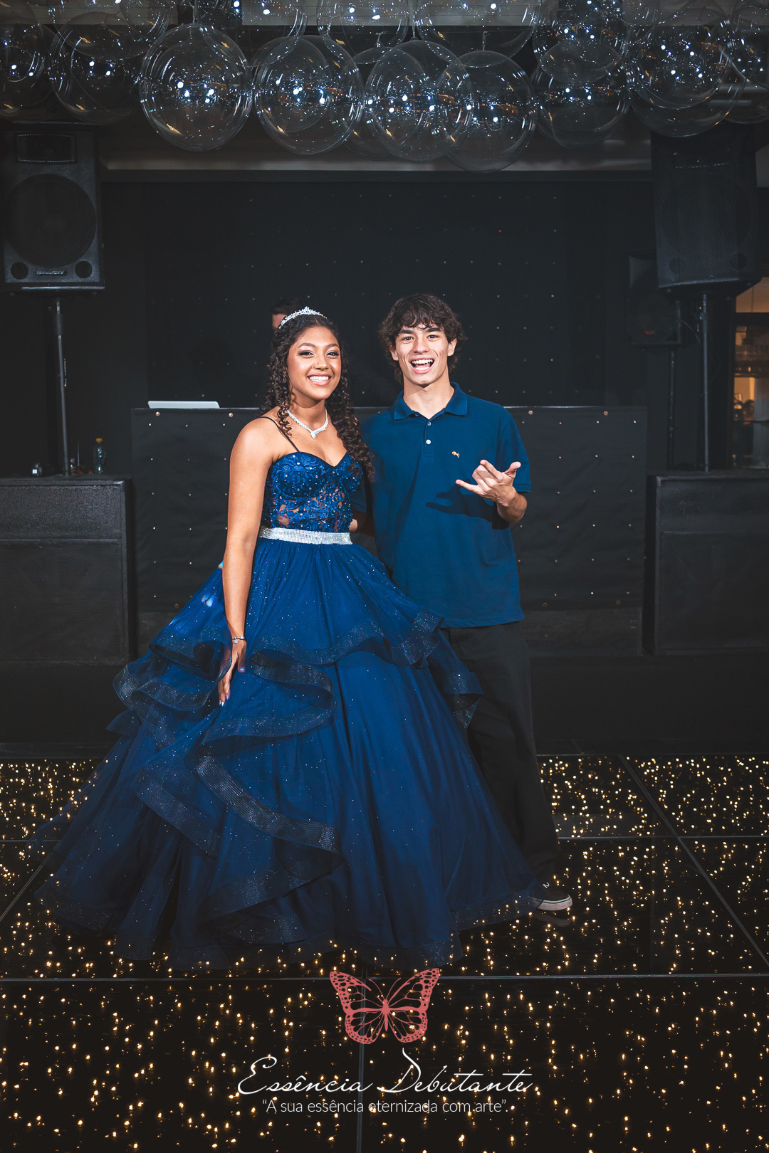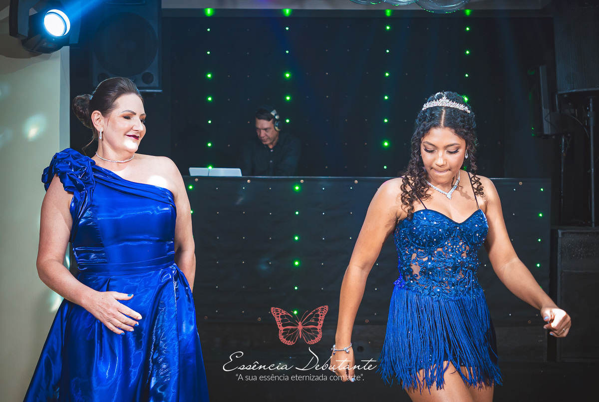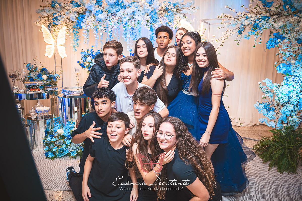 Vestida de azul royal e cercada de amor, Maria celebrou seus 15 anos em grande estilo.