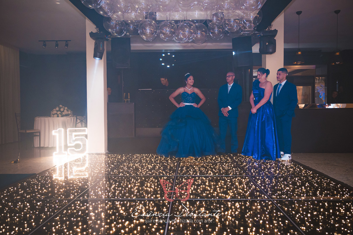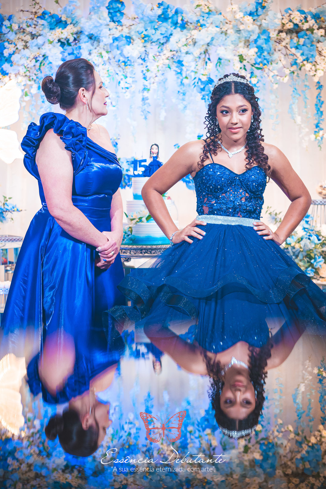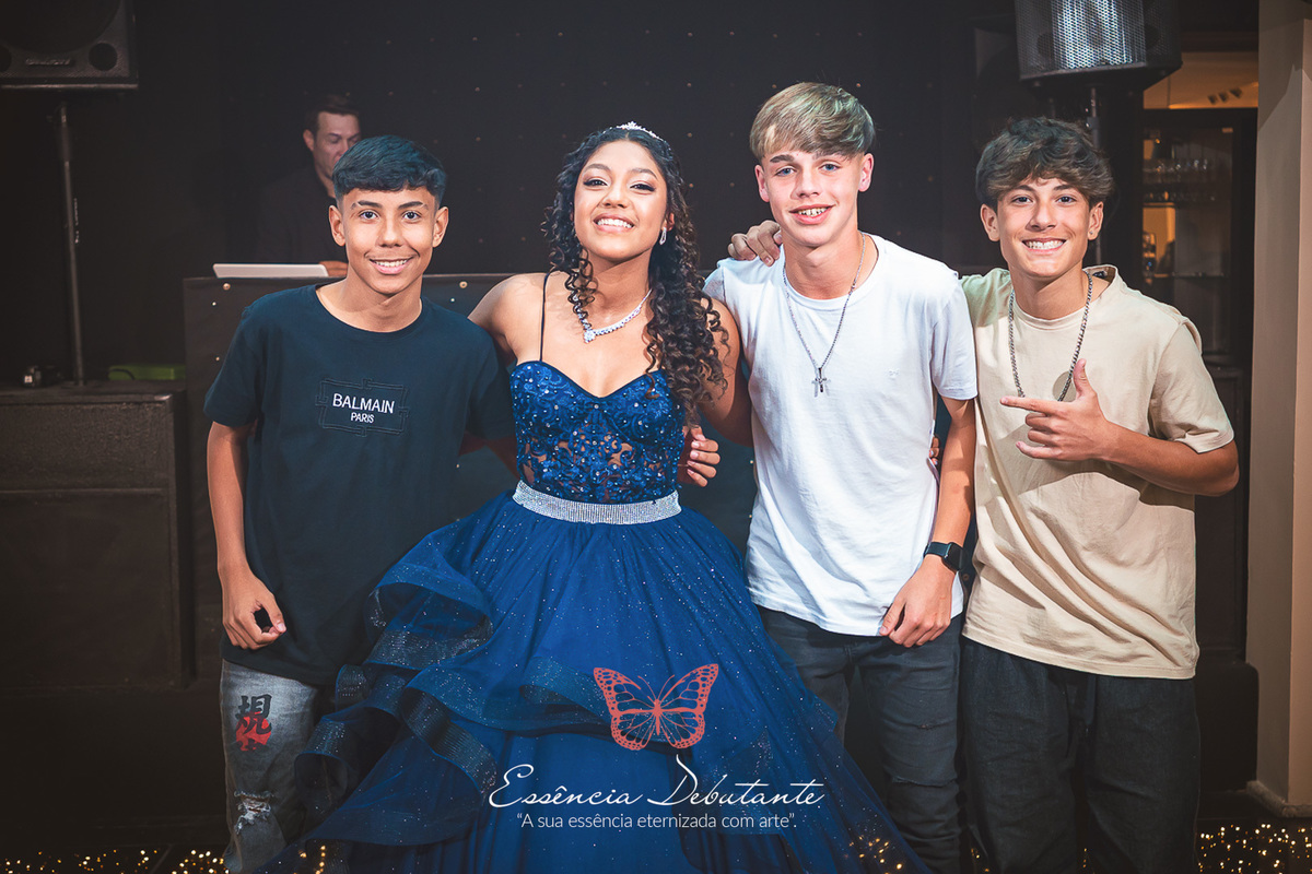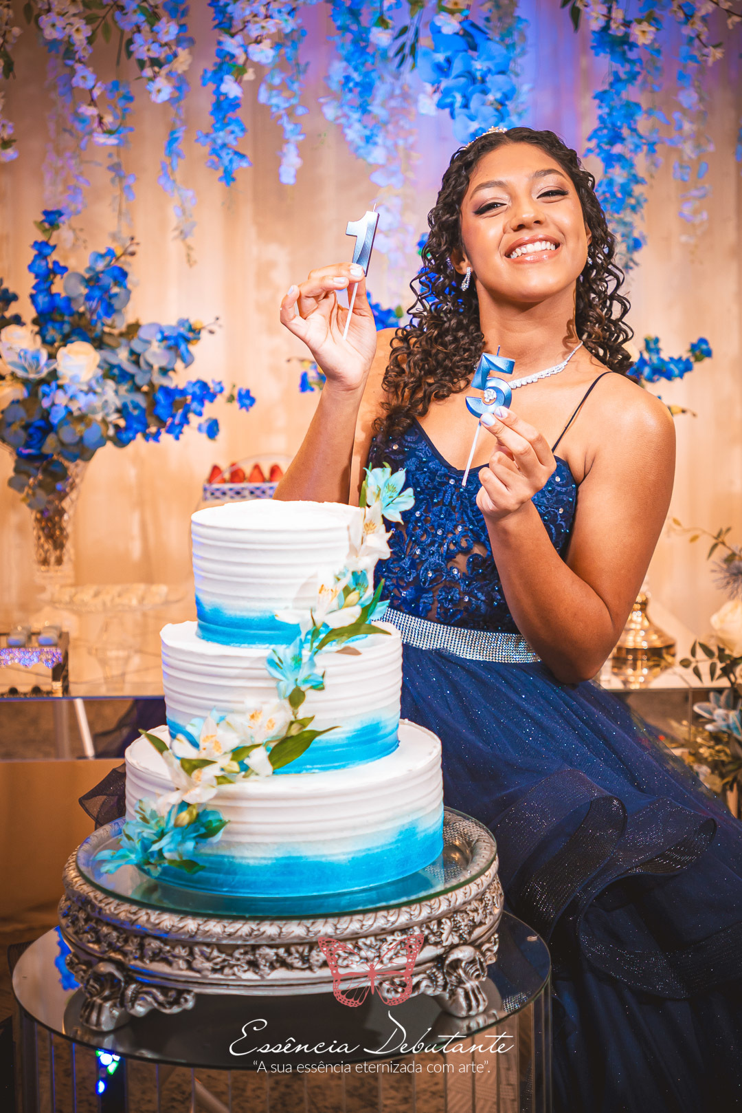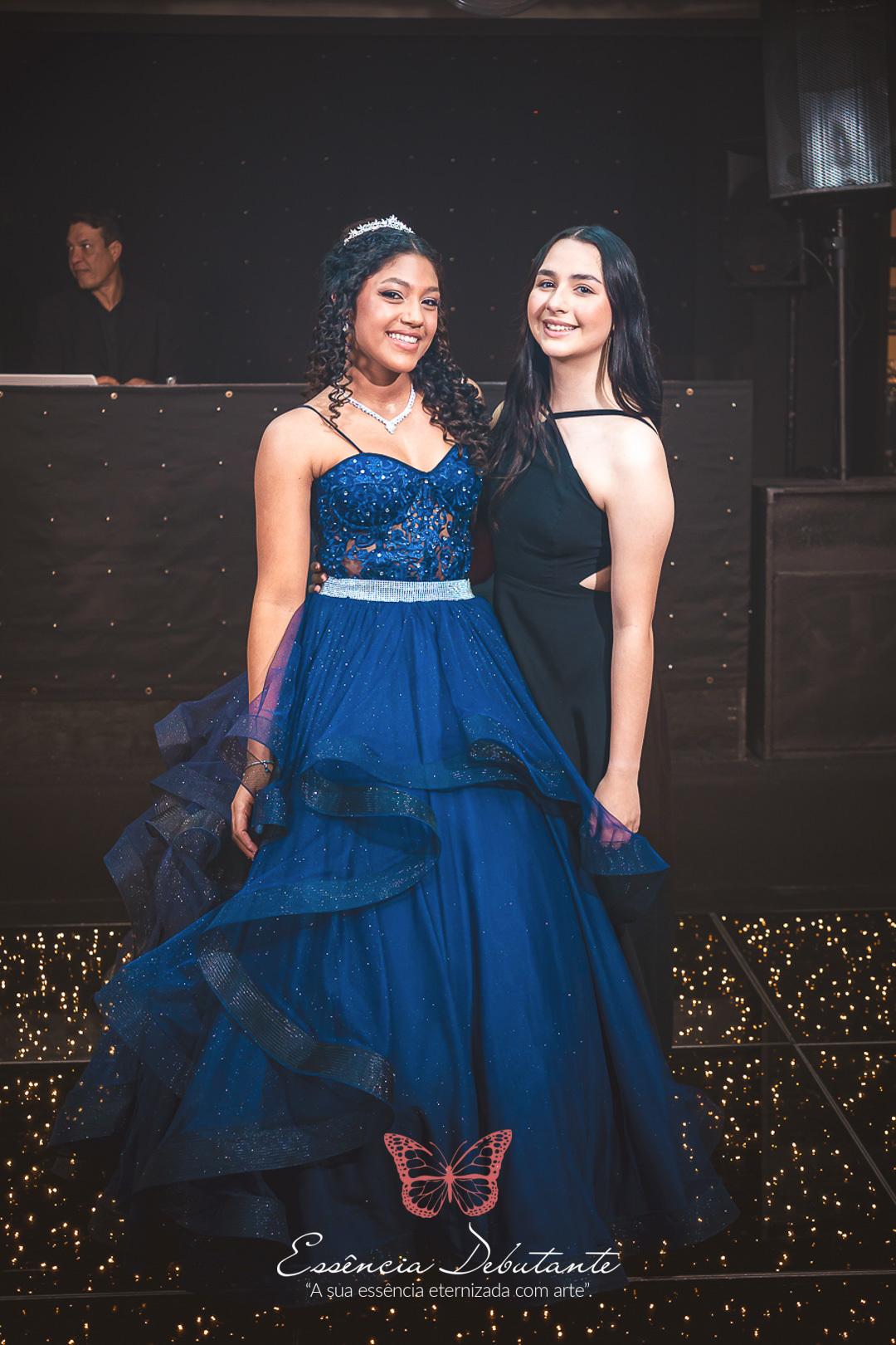 Vestida de azul royal e cercada de amor, Maria celebrou seus 15 anos em grande estilo.