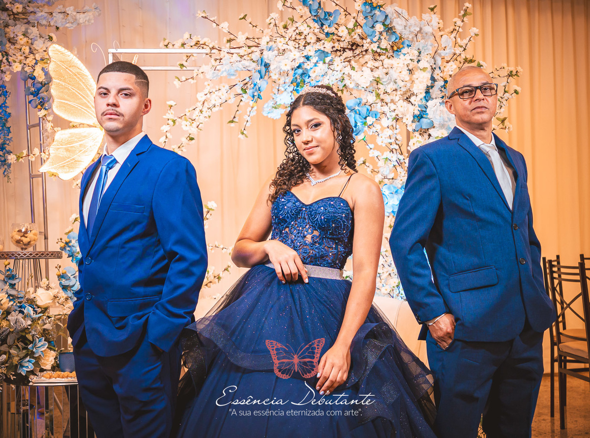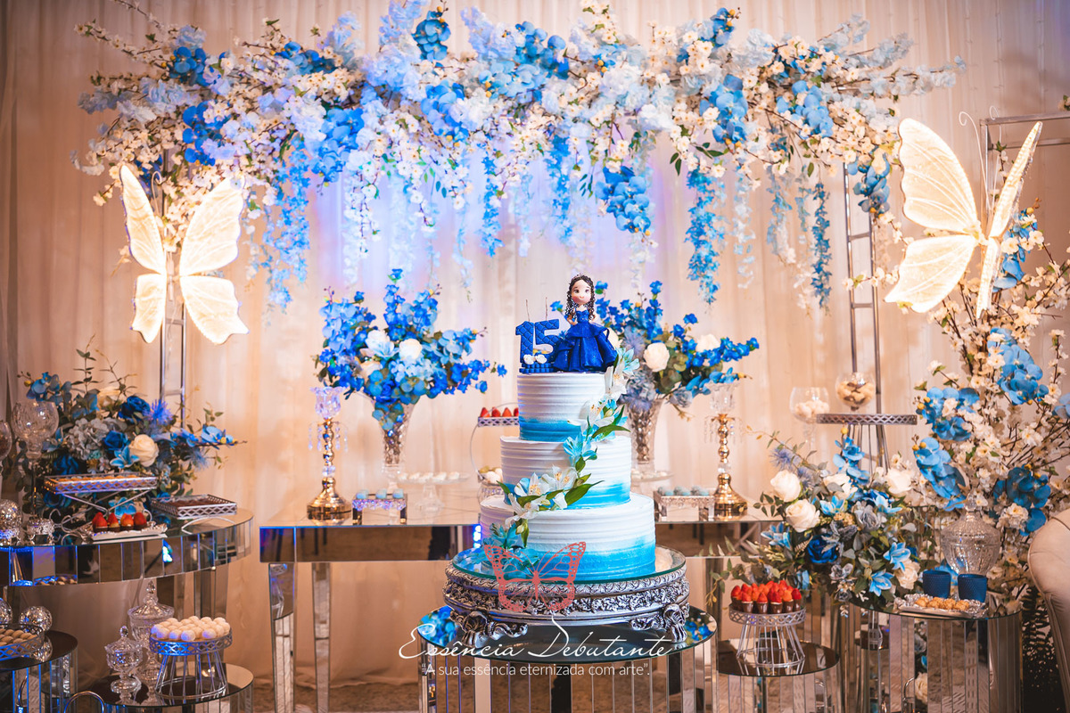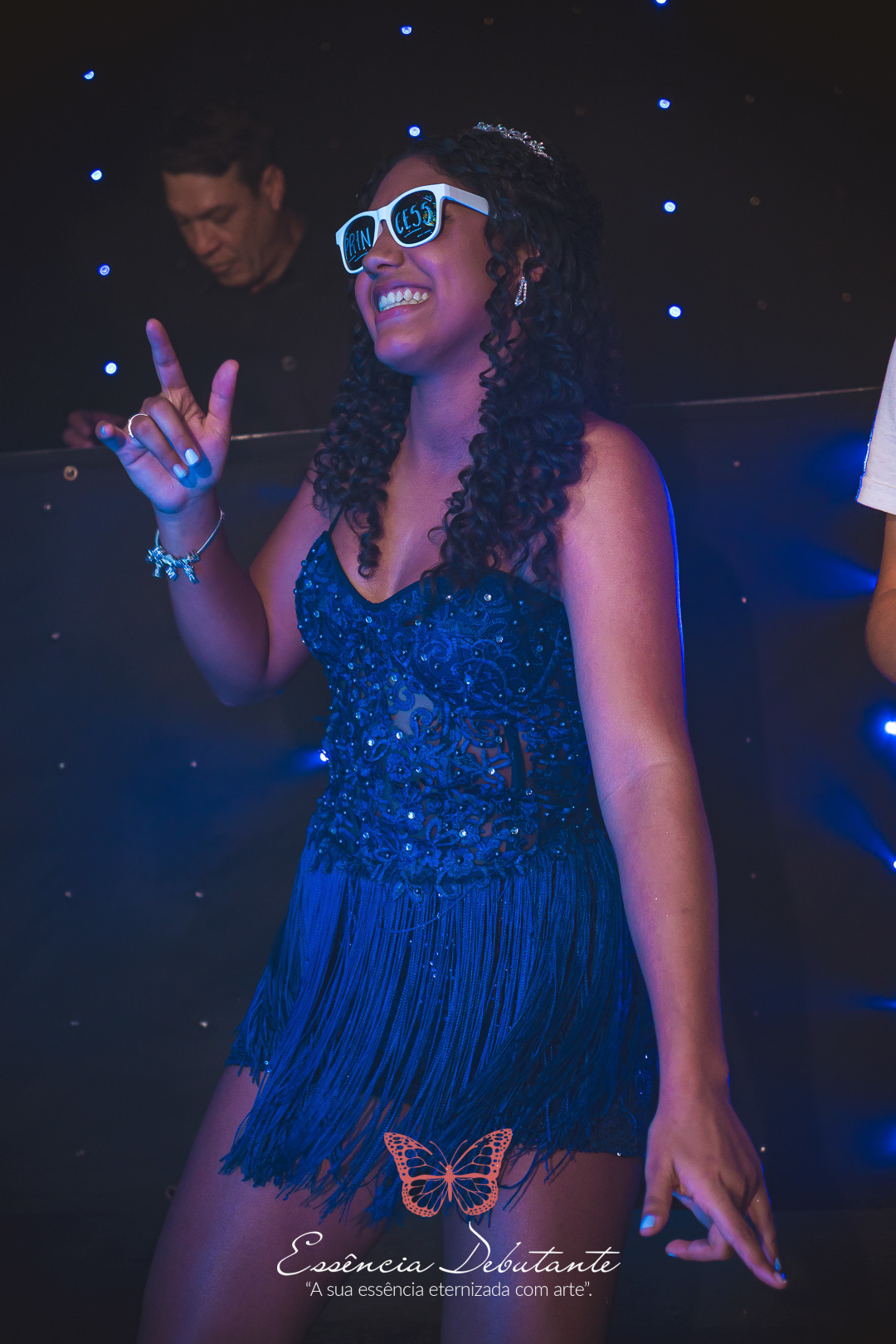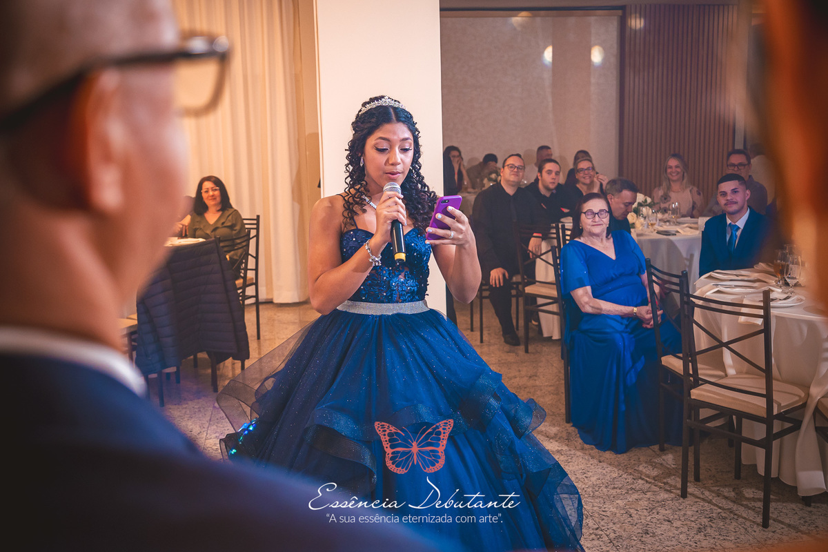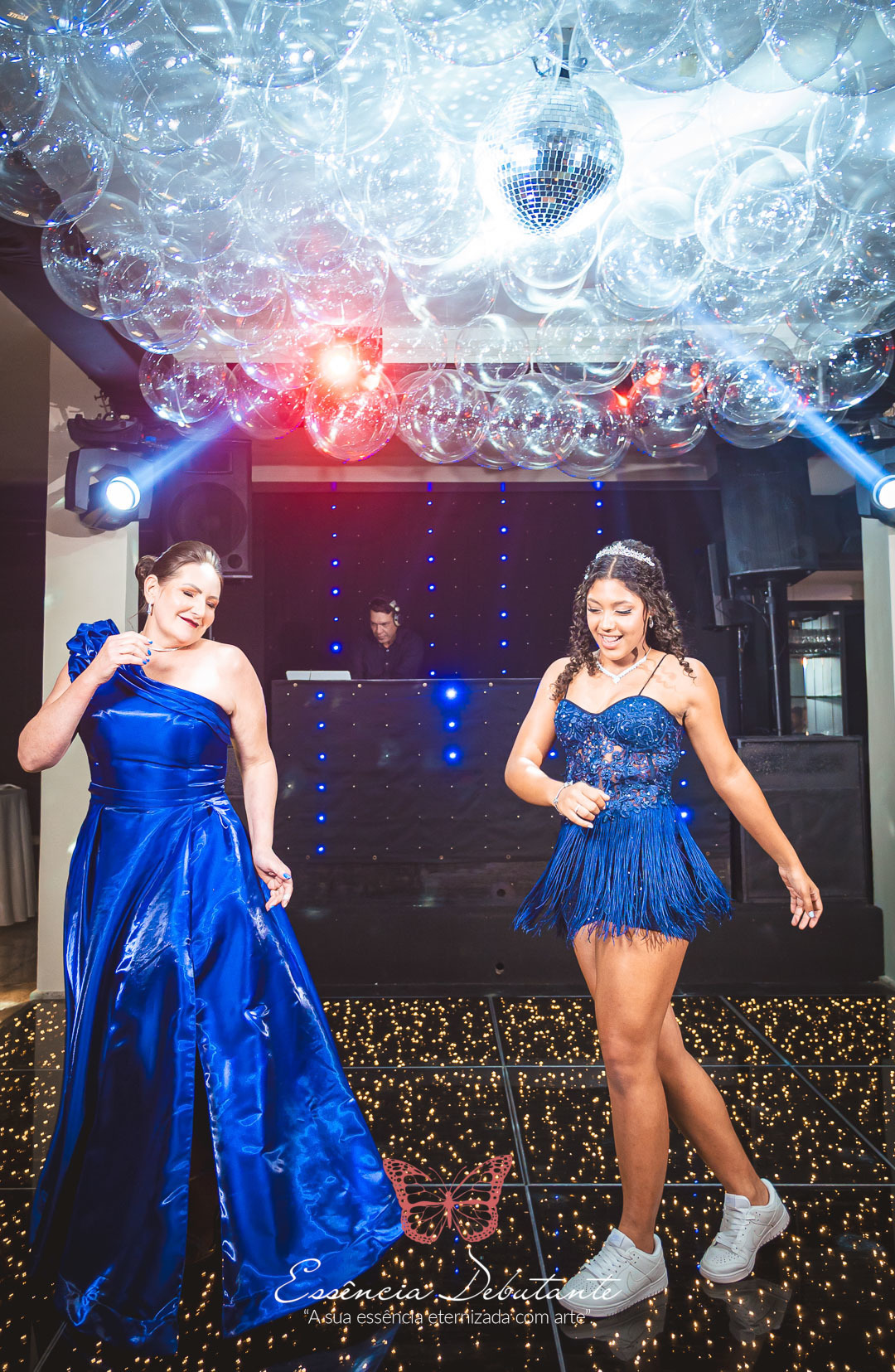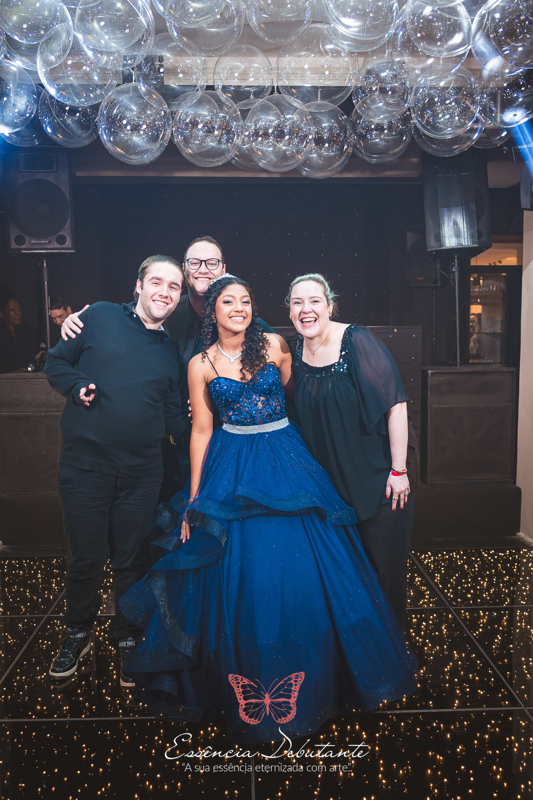 Vestida de azul royal e cercada de amor, Maria celebrou seus 15 anos em grande estilo.