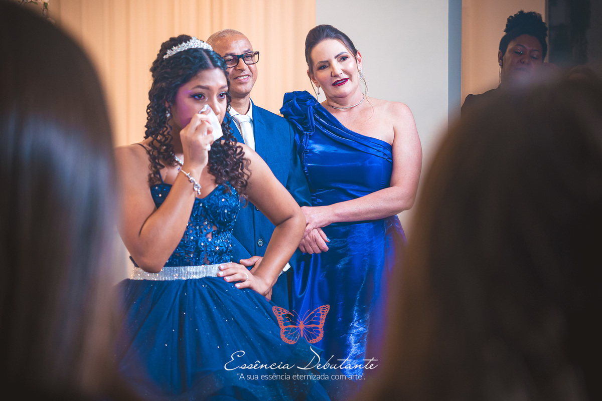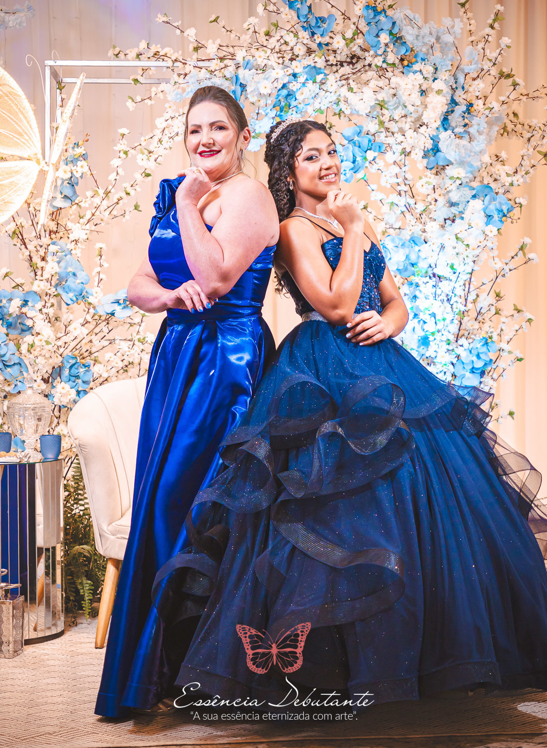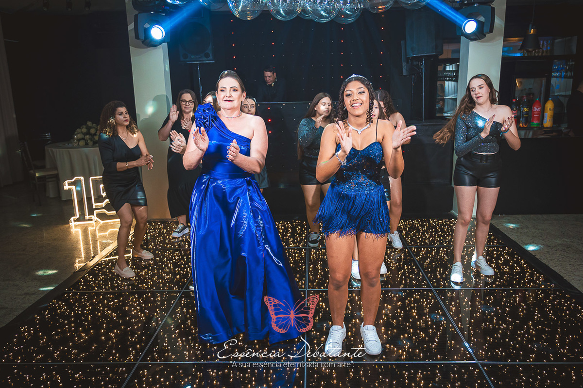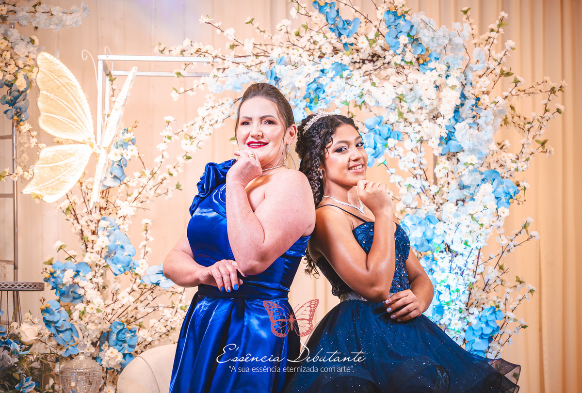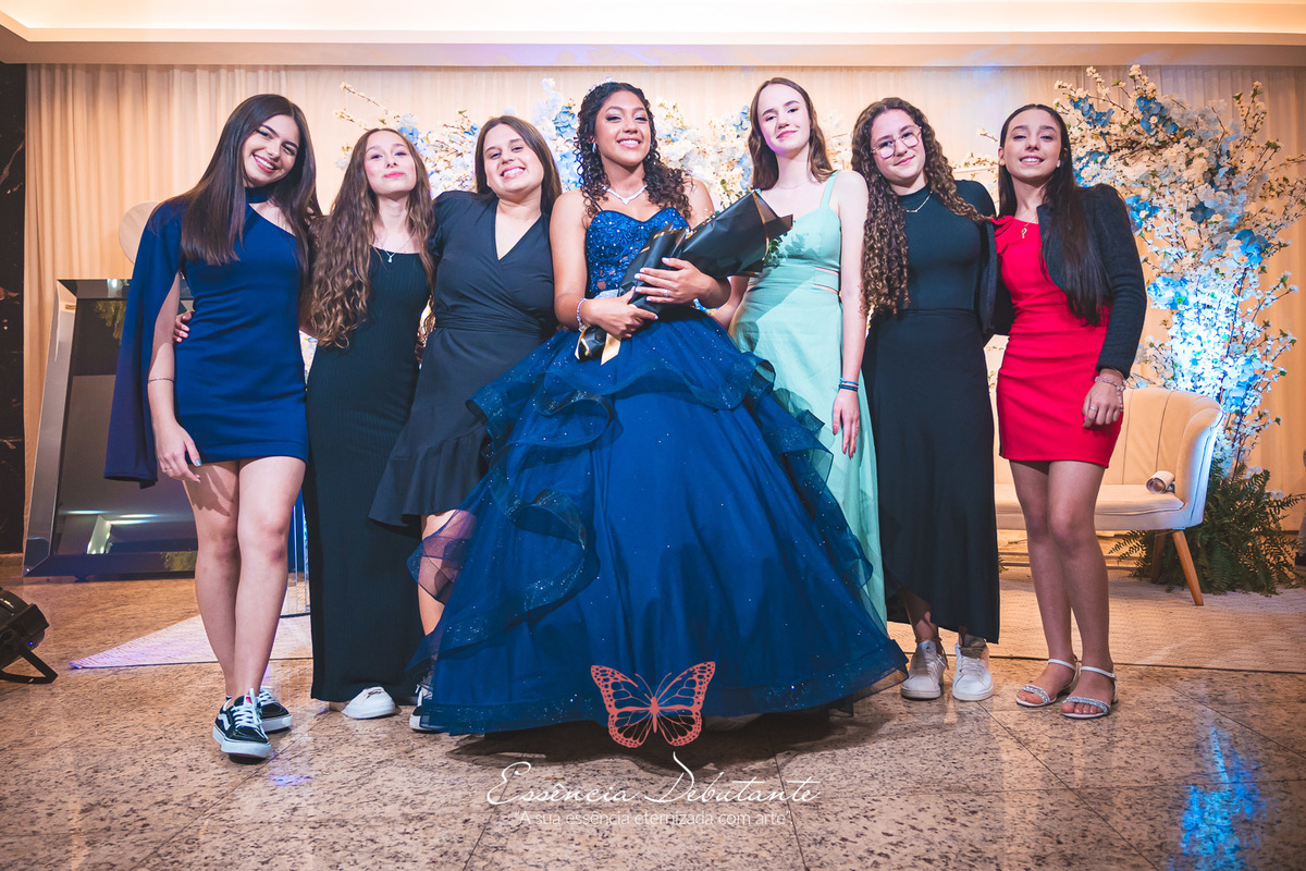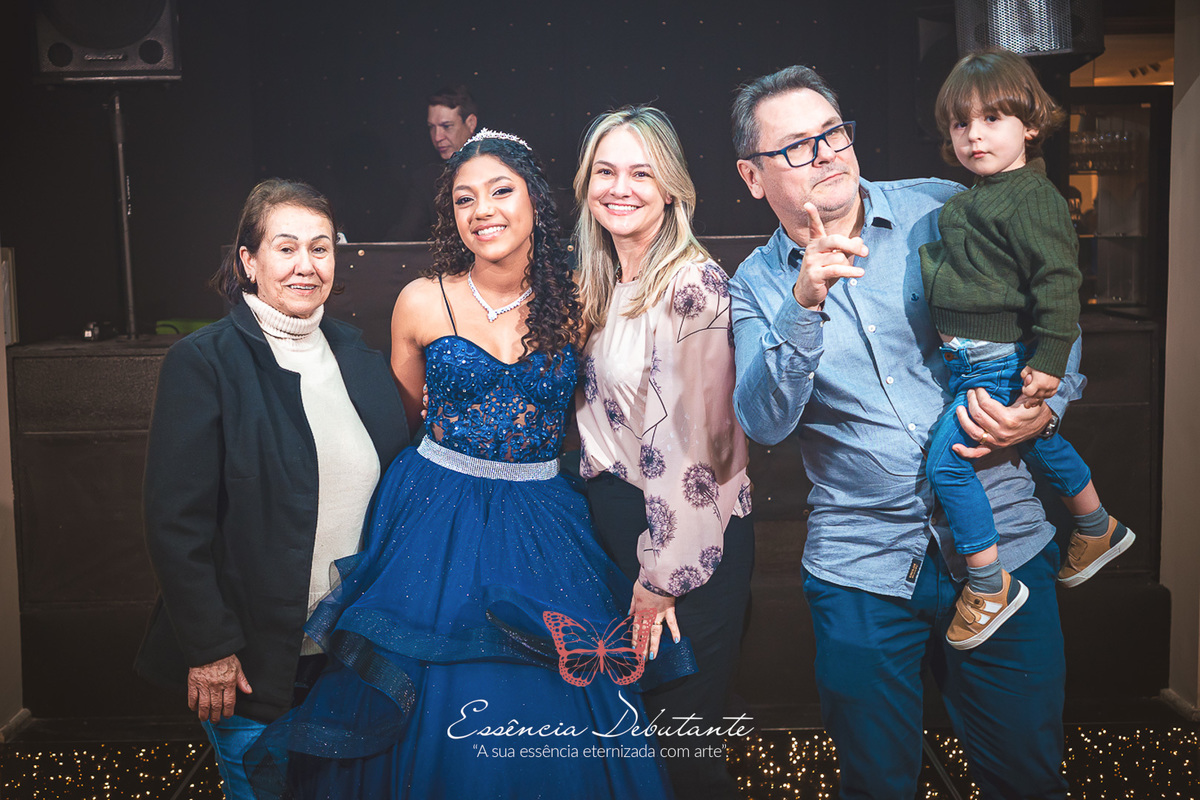 Vestida de azul royal e cercada de amor, Maria celebrou seus 15 anos em grande estilo.