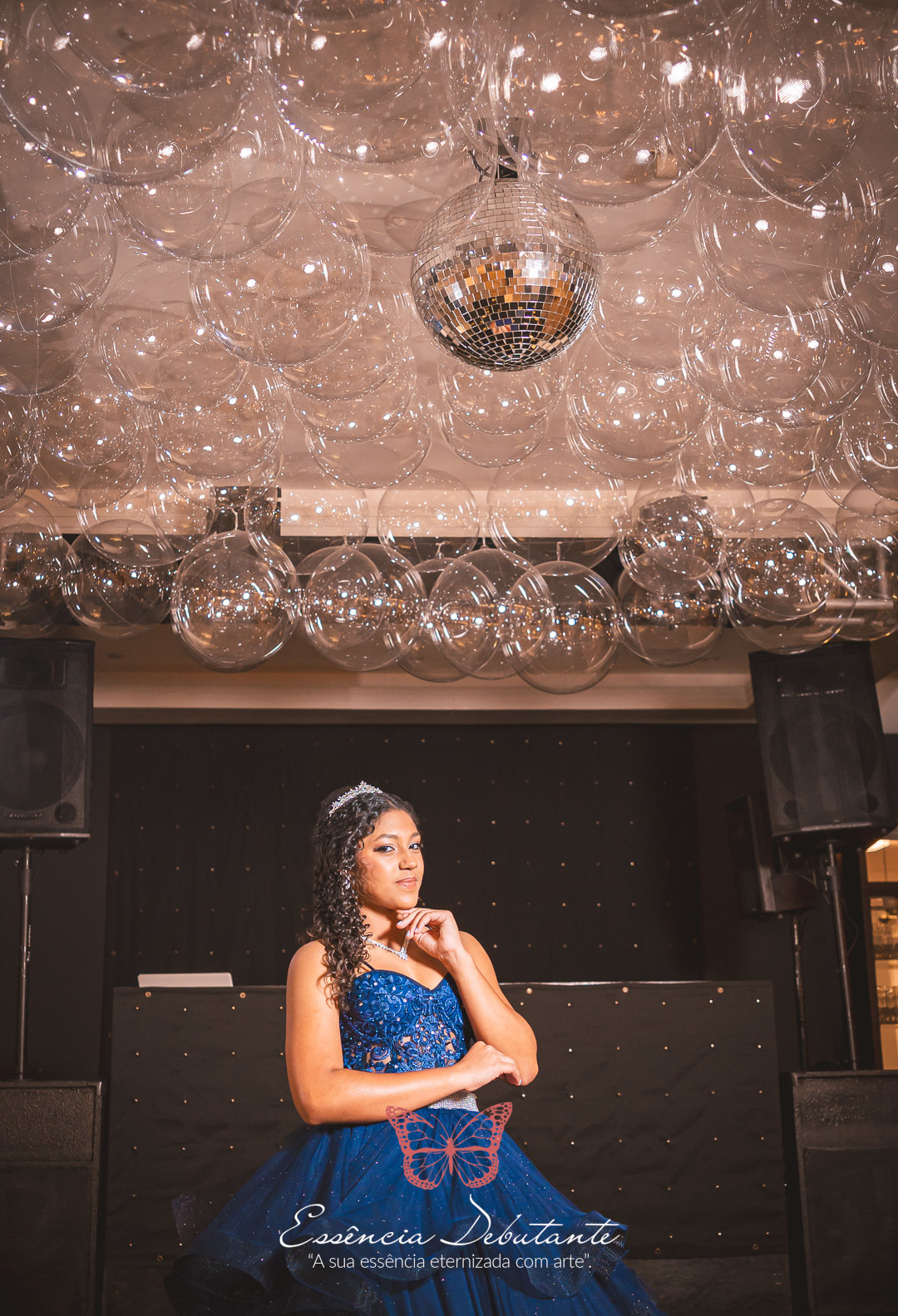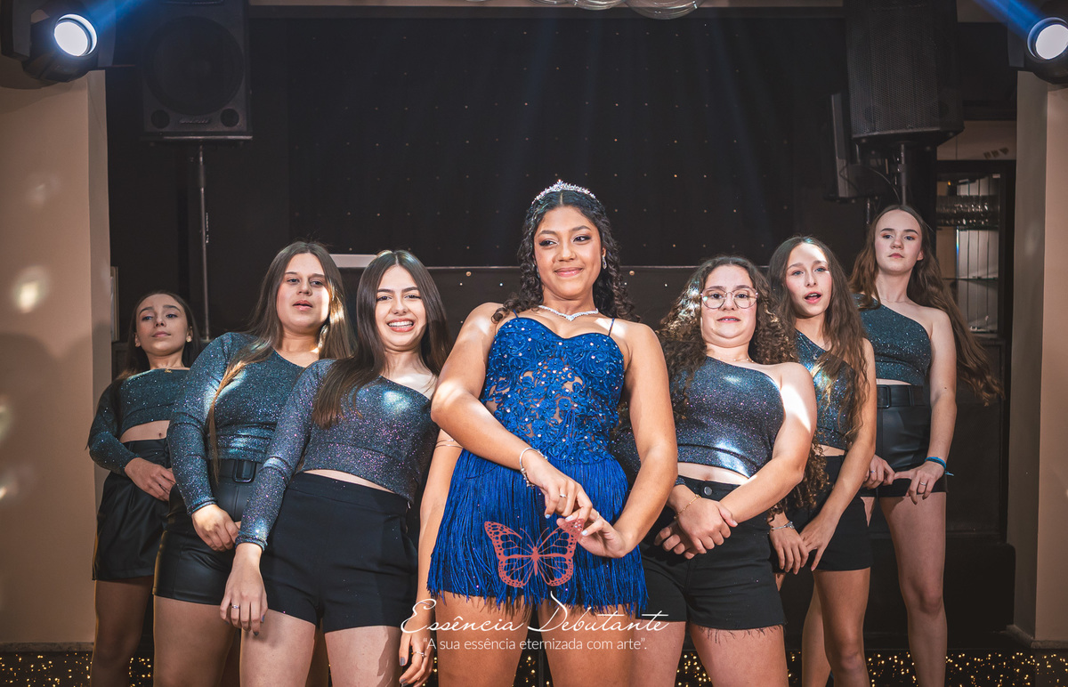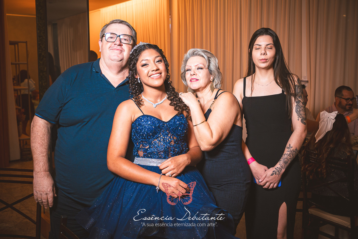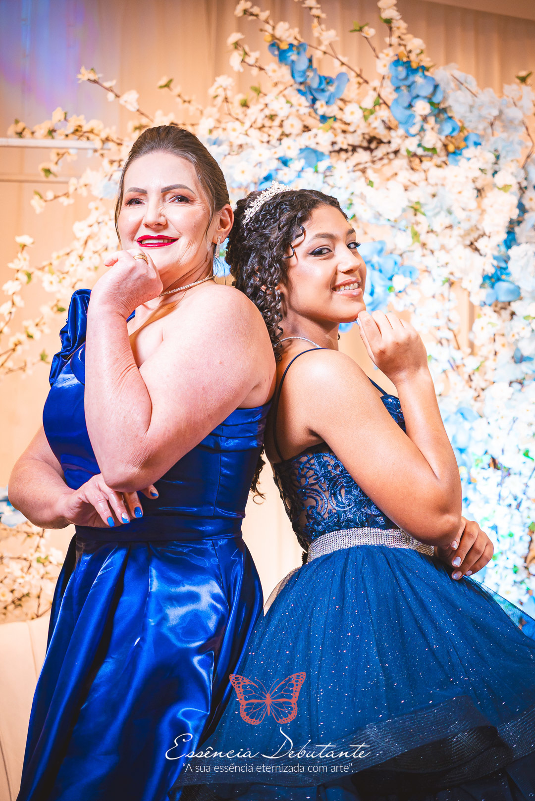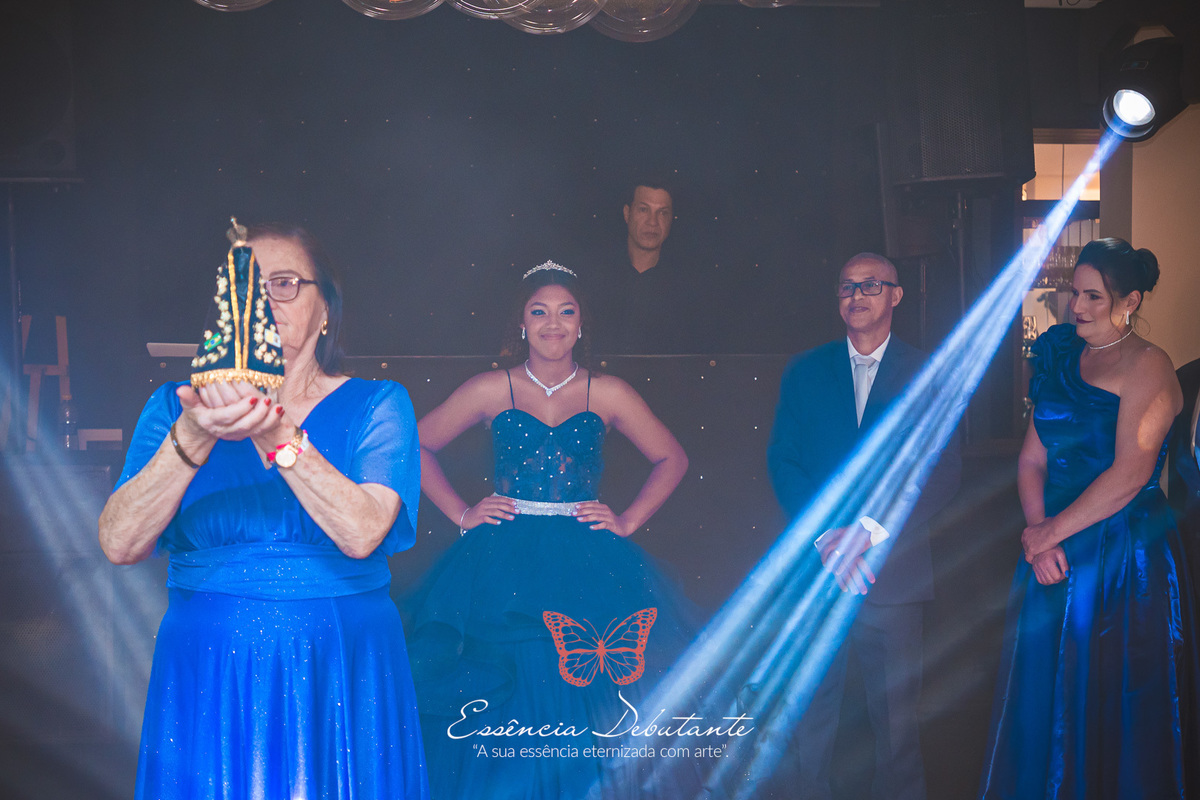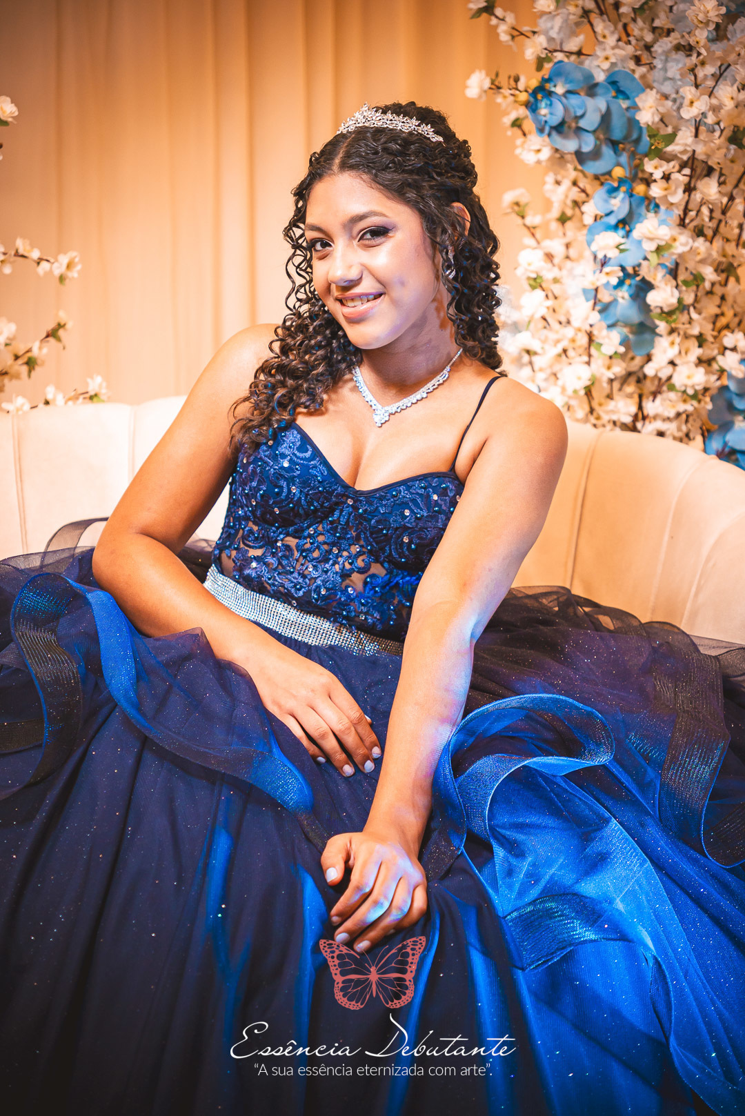Vestida de azul royal e cercada de amor, Maria celebrou seus 15 anos em grande estilo.