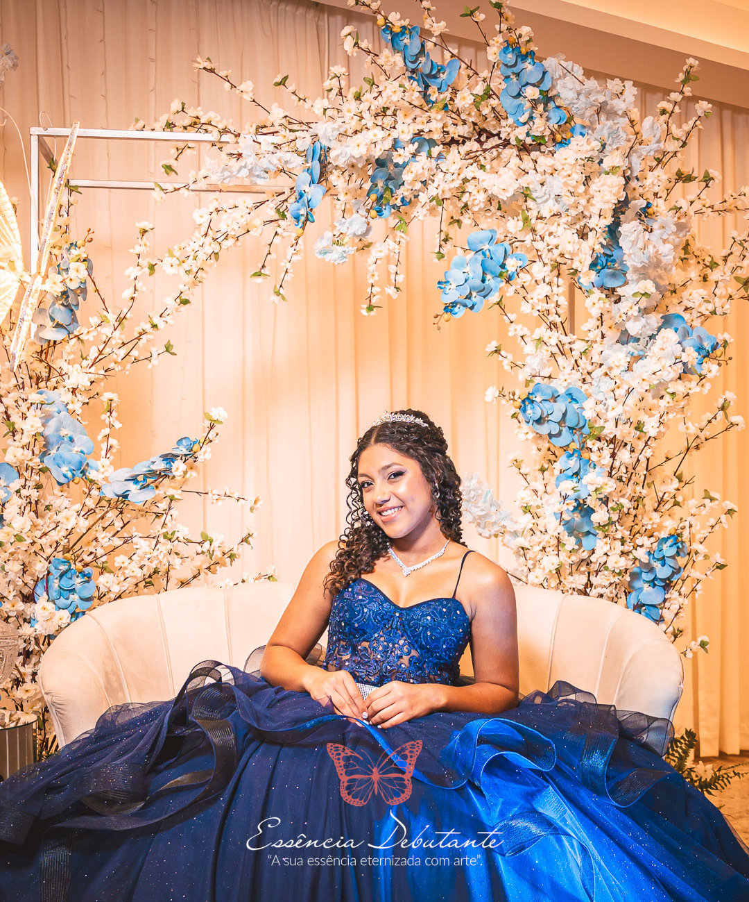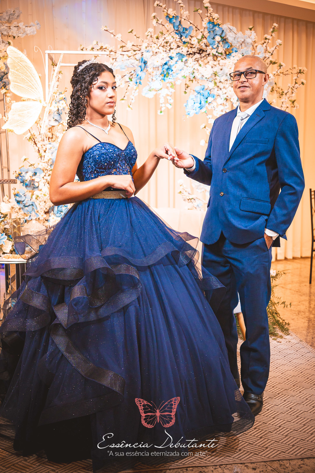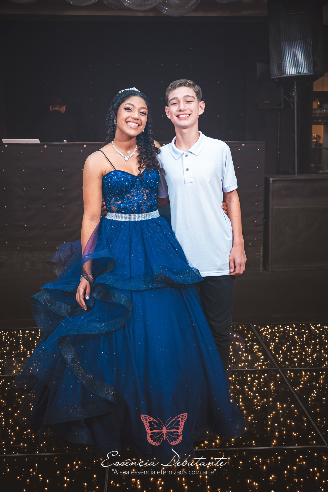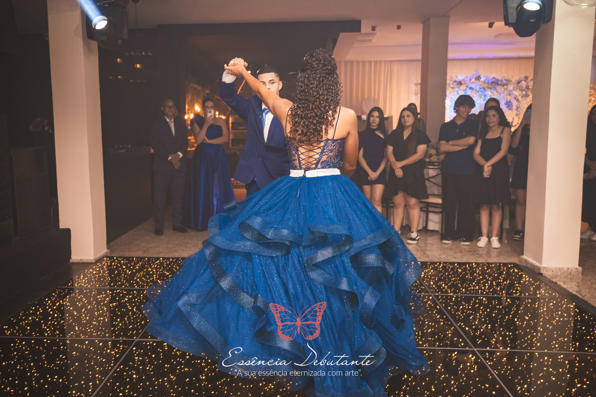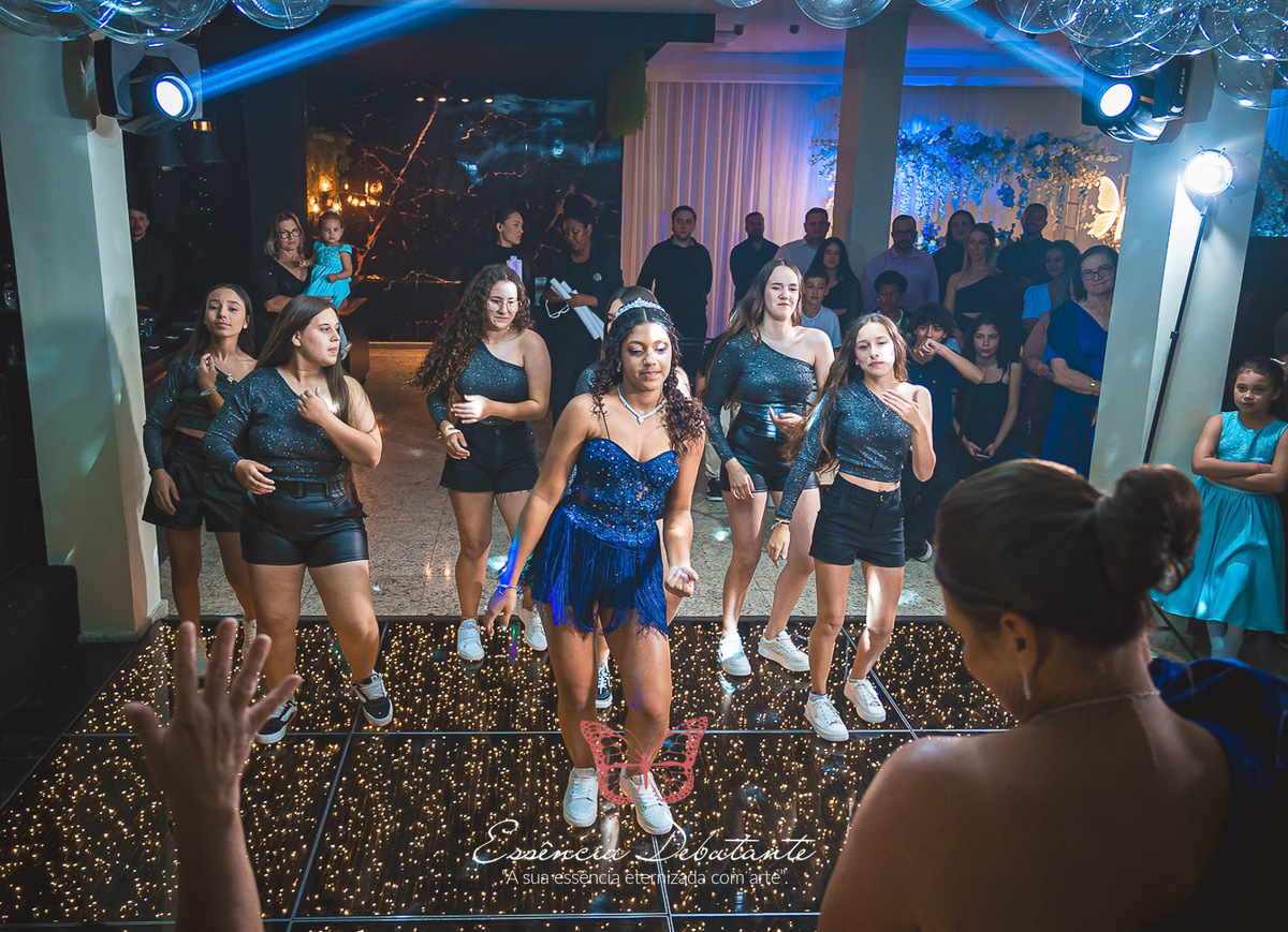 Vestida de azul royal e cercada de amor, Maria celebrou seus 15 anos em grande estilo.