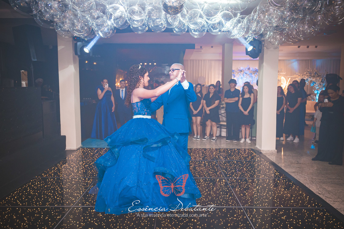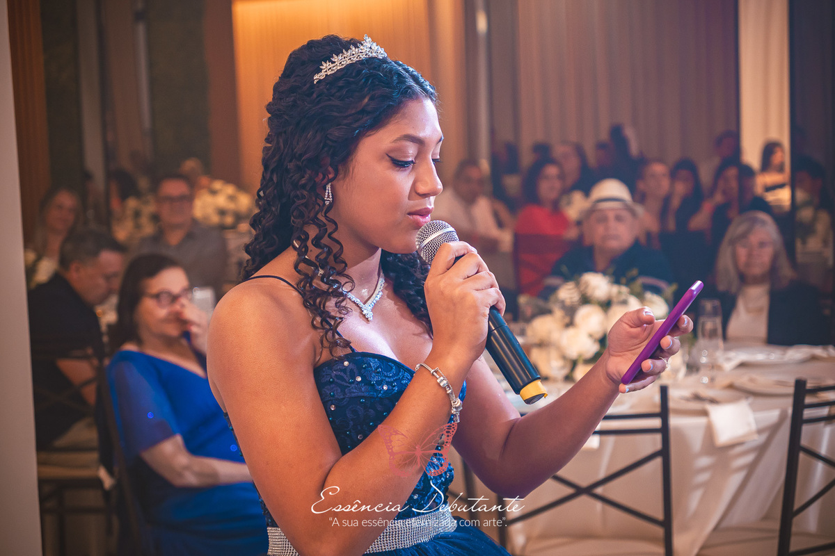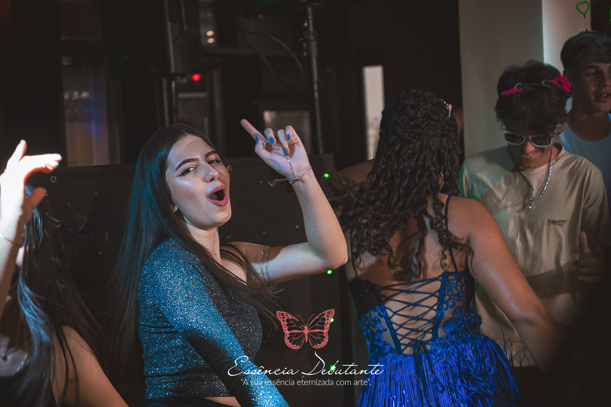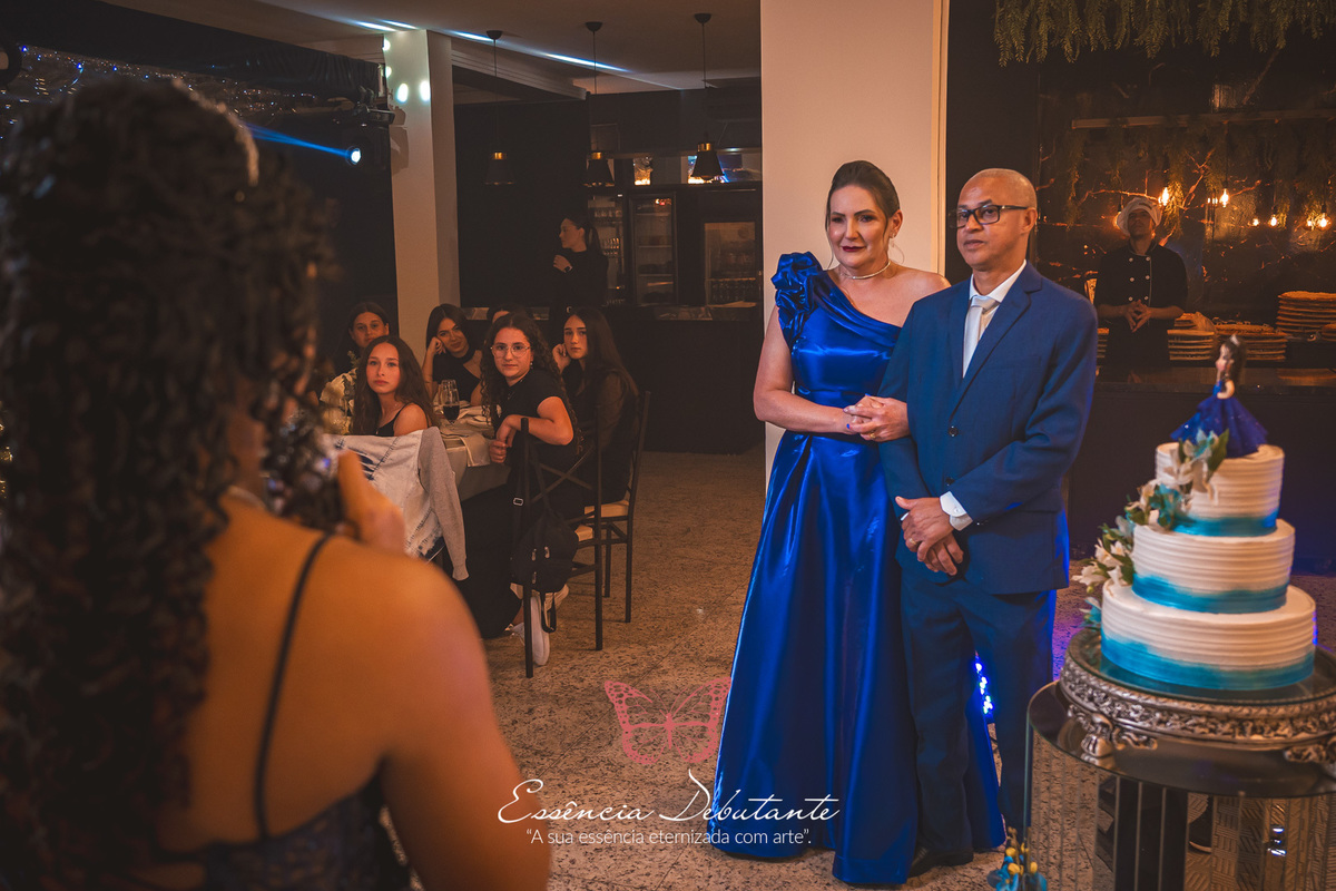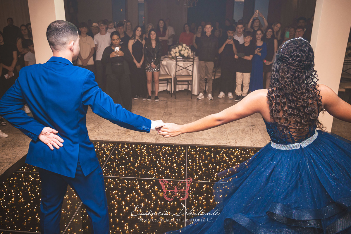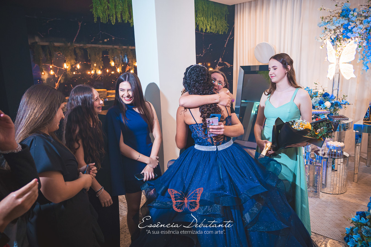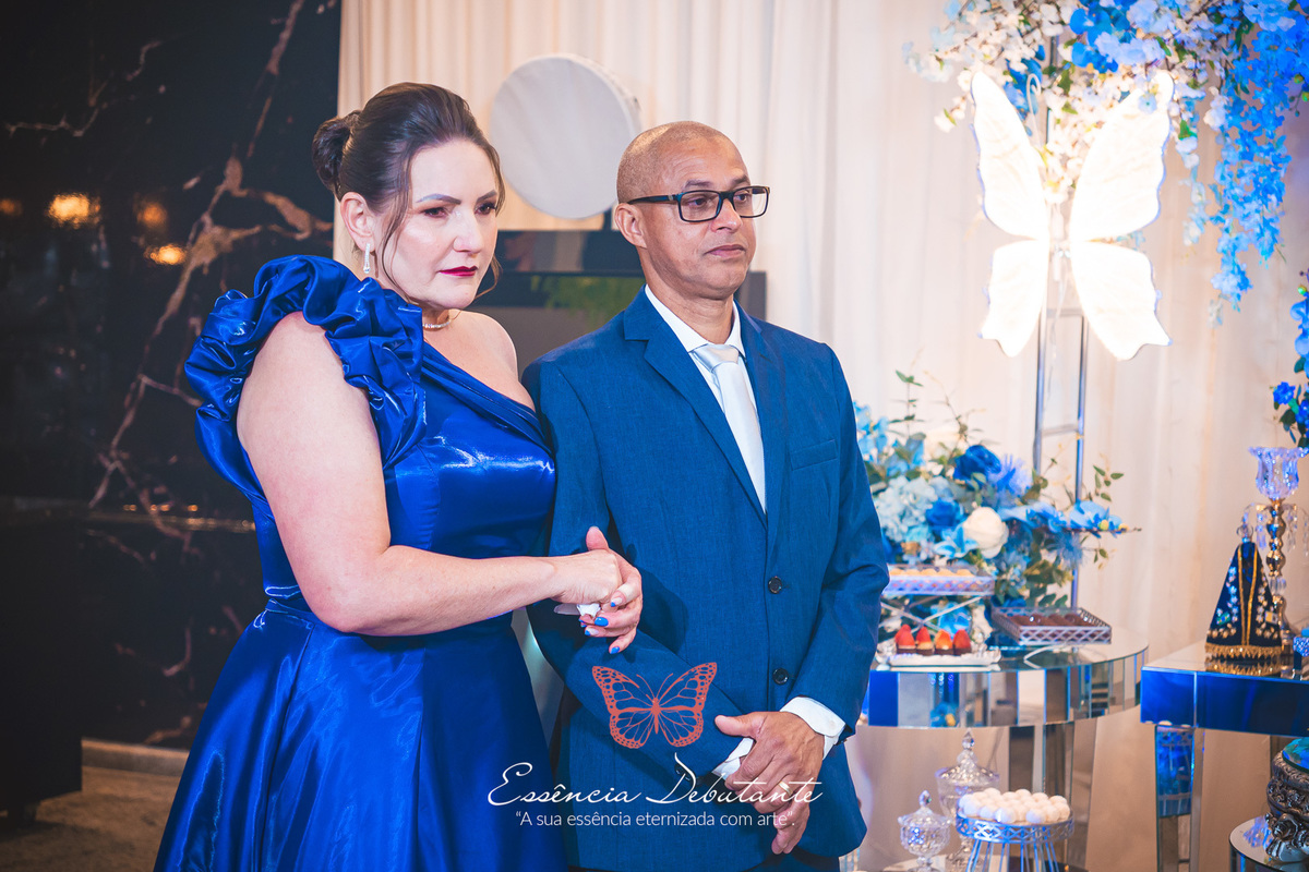 Vestida de azul royal e cercada de amor, Maria celebrou seus 15 anos em grande estilo.