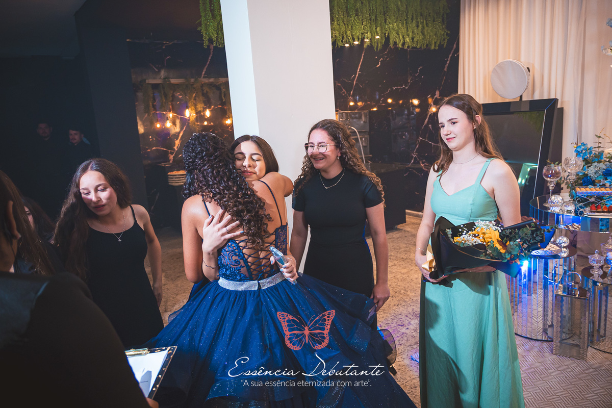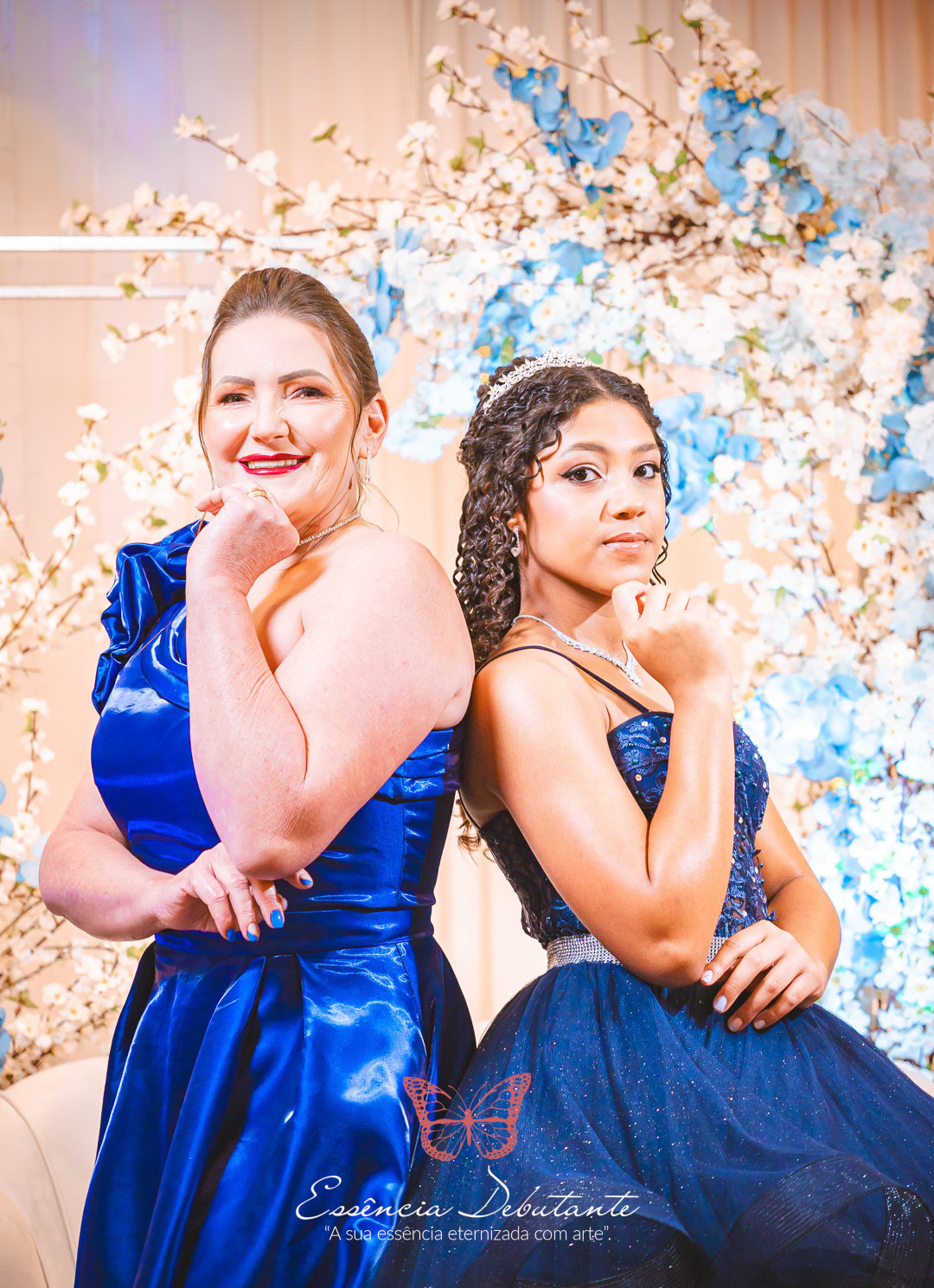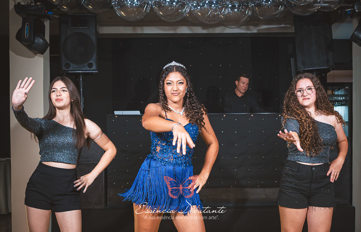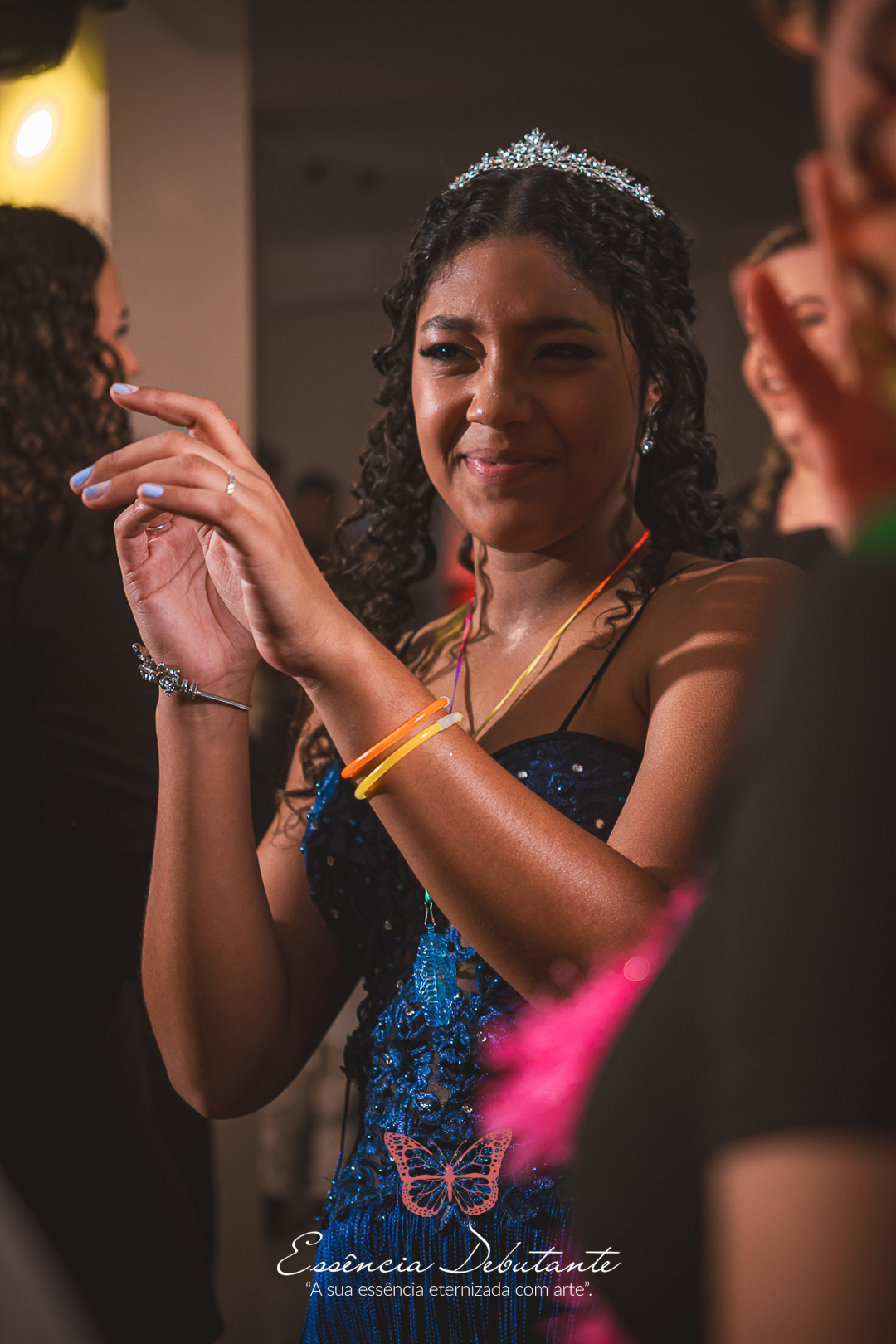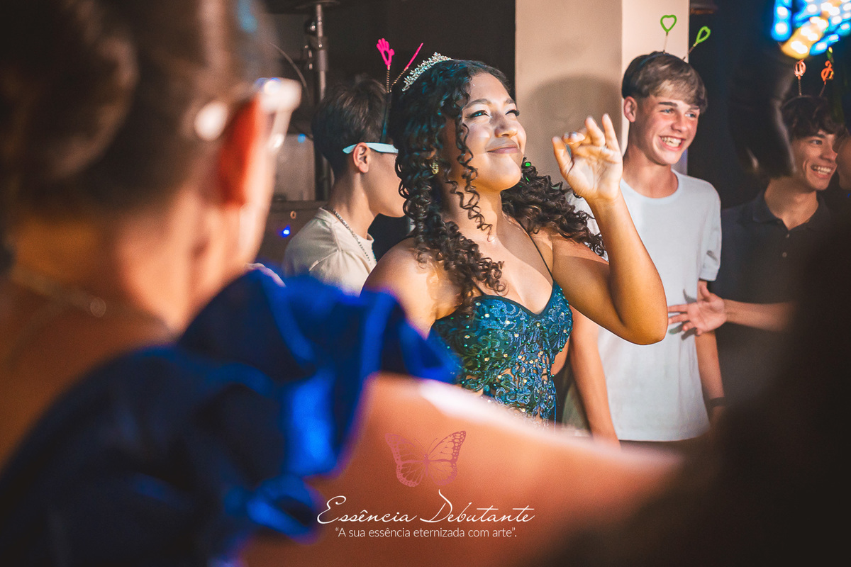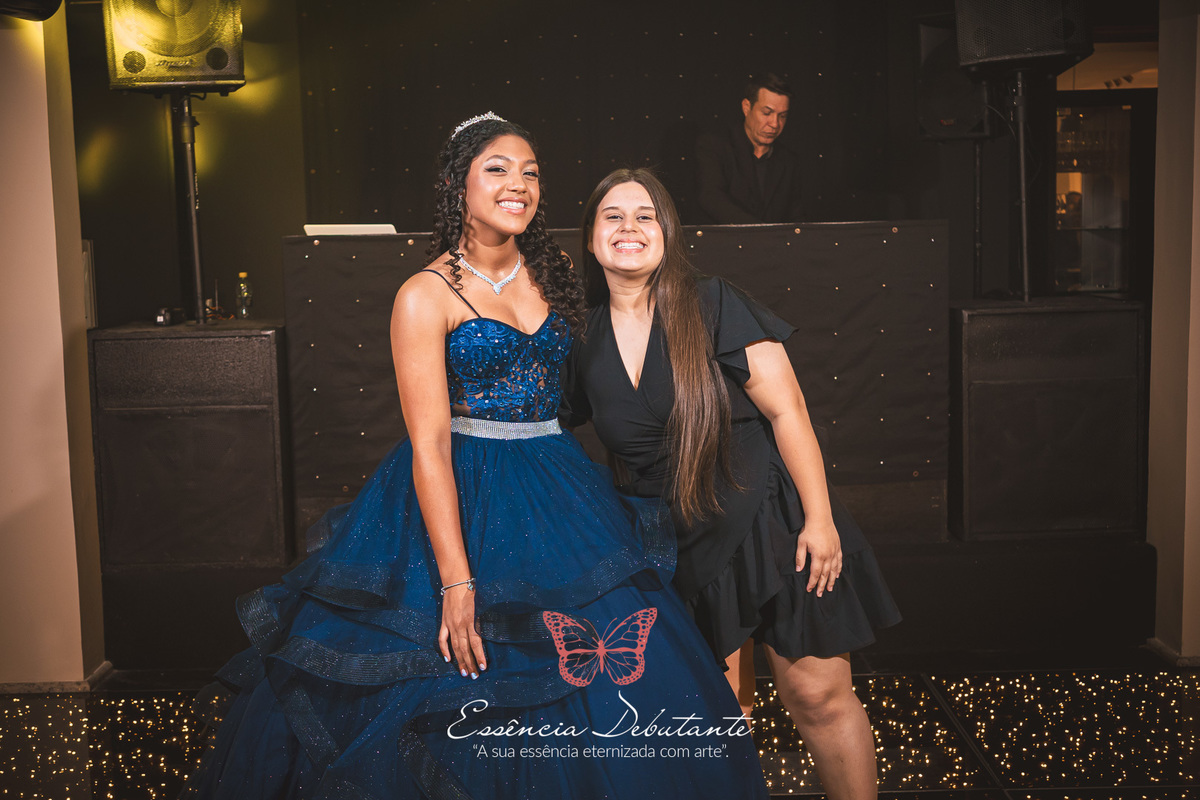Vestida de azul royal e cercada de amor, Maria celebrou seus 15 anos em grande estilo.