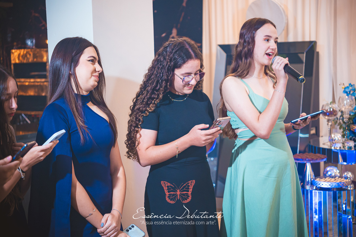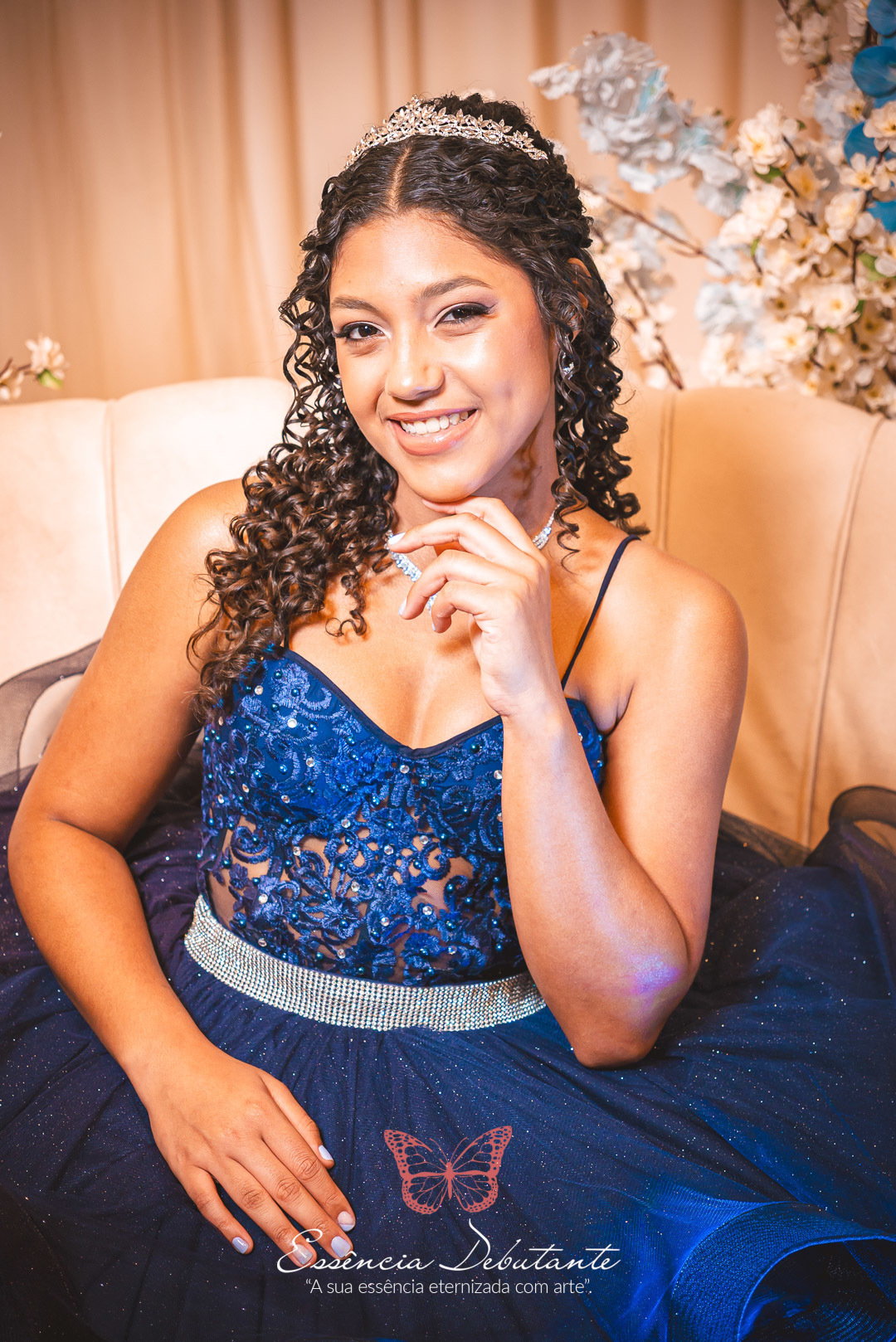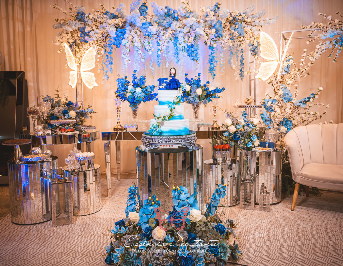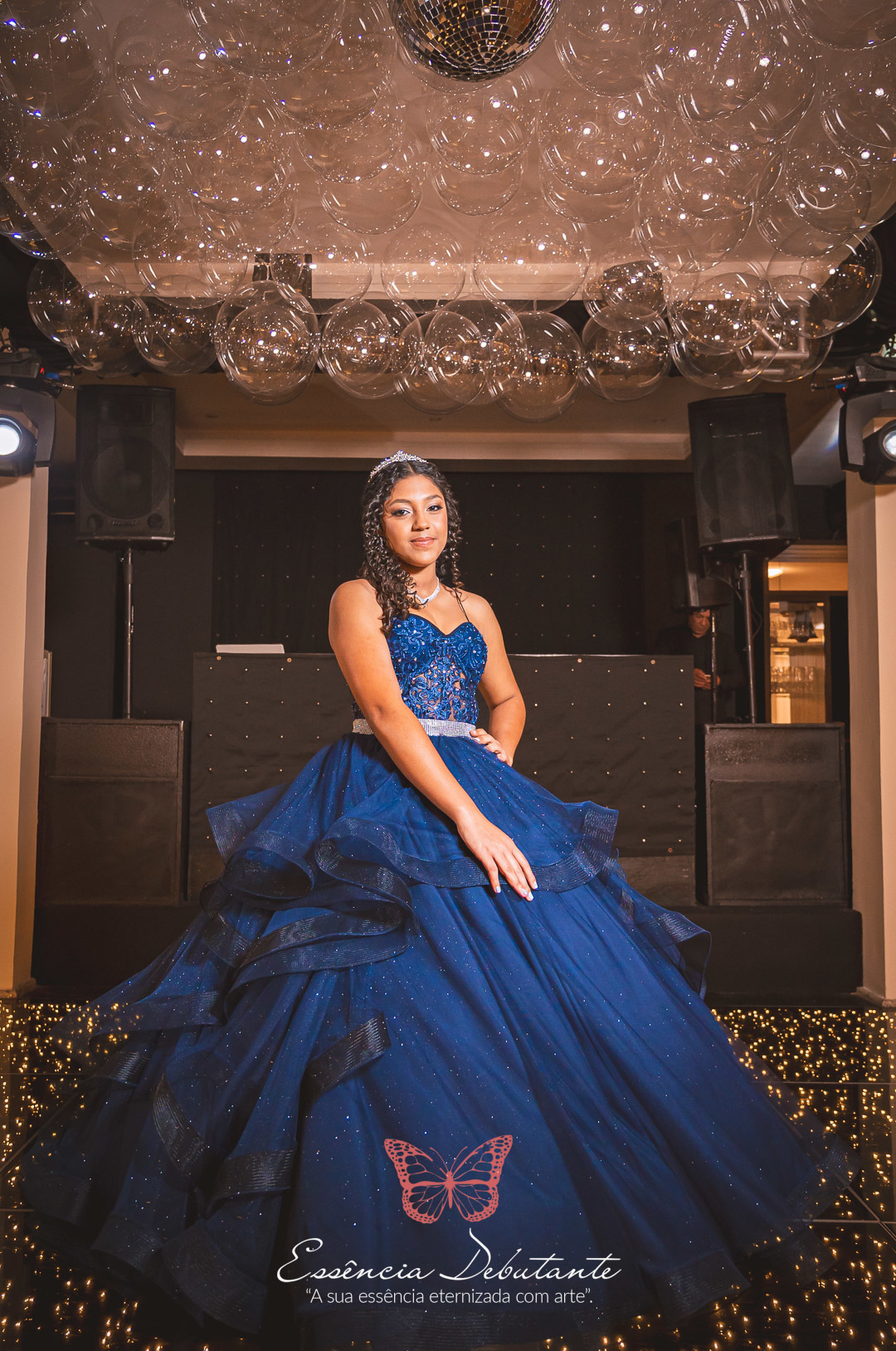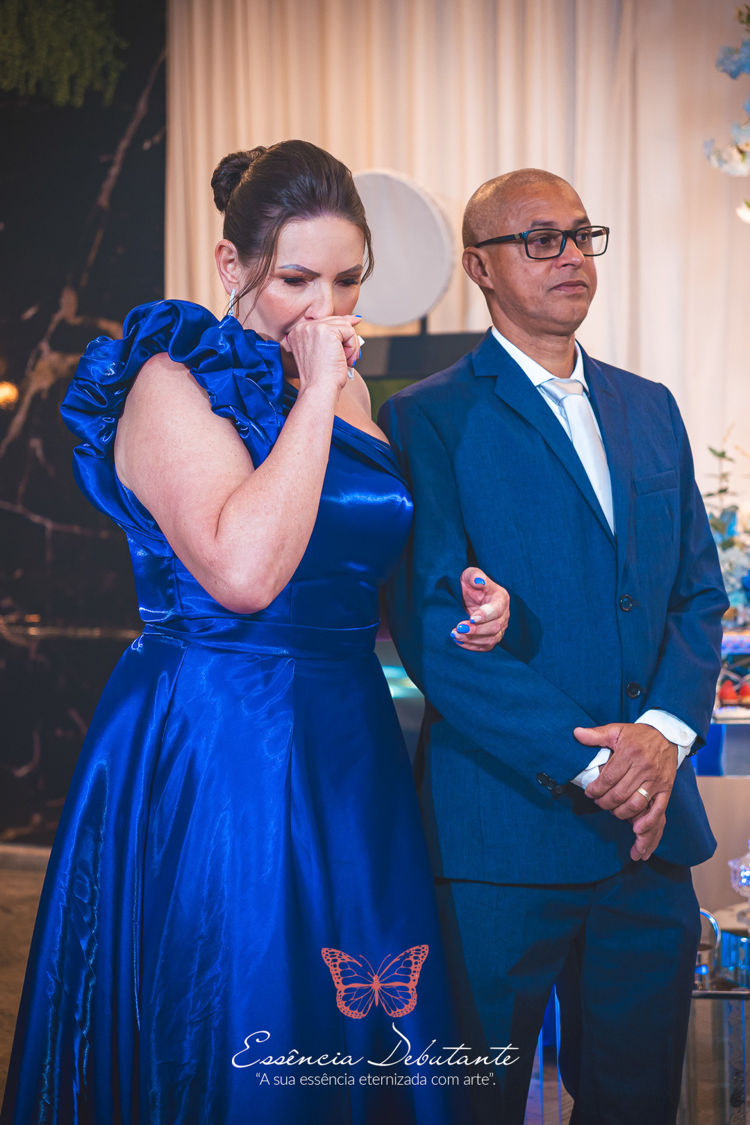 Vestida de azul royal e cercada de amor, Maria celebrou seus 15 anos em grande estilo.