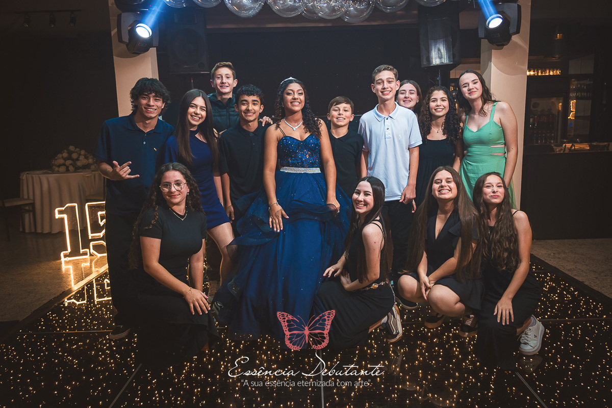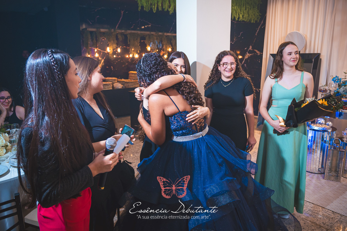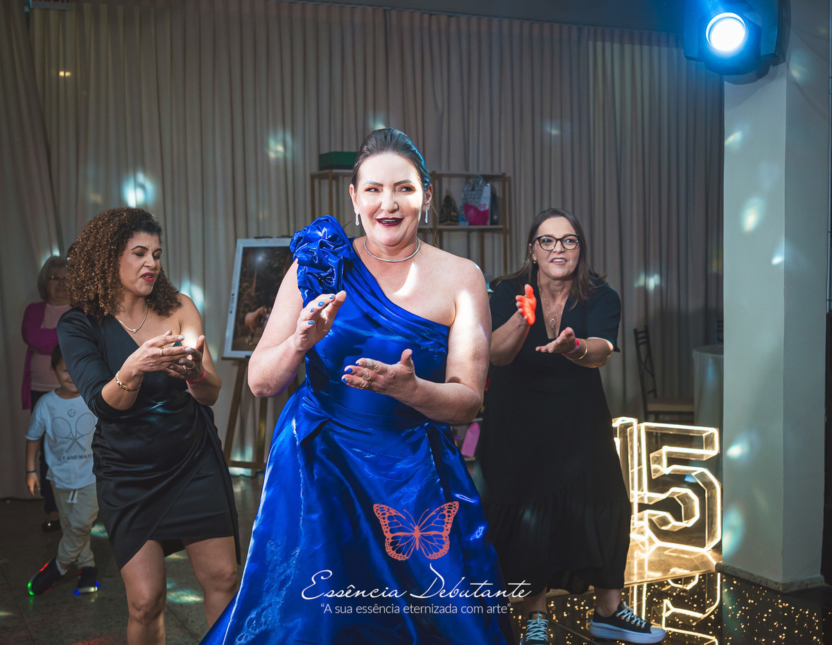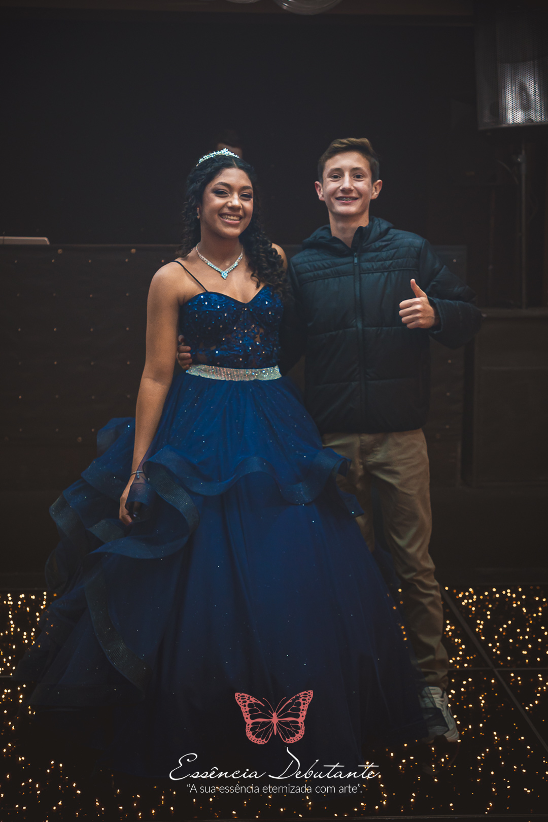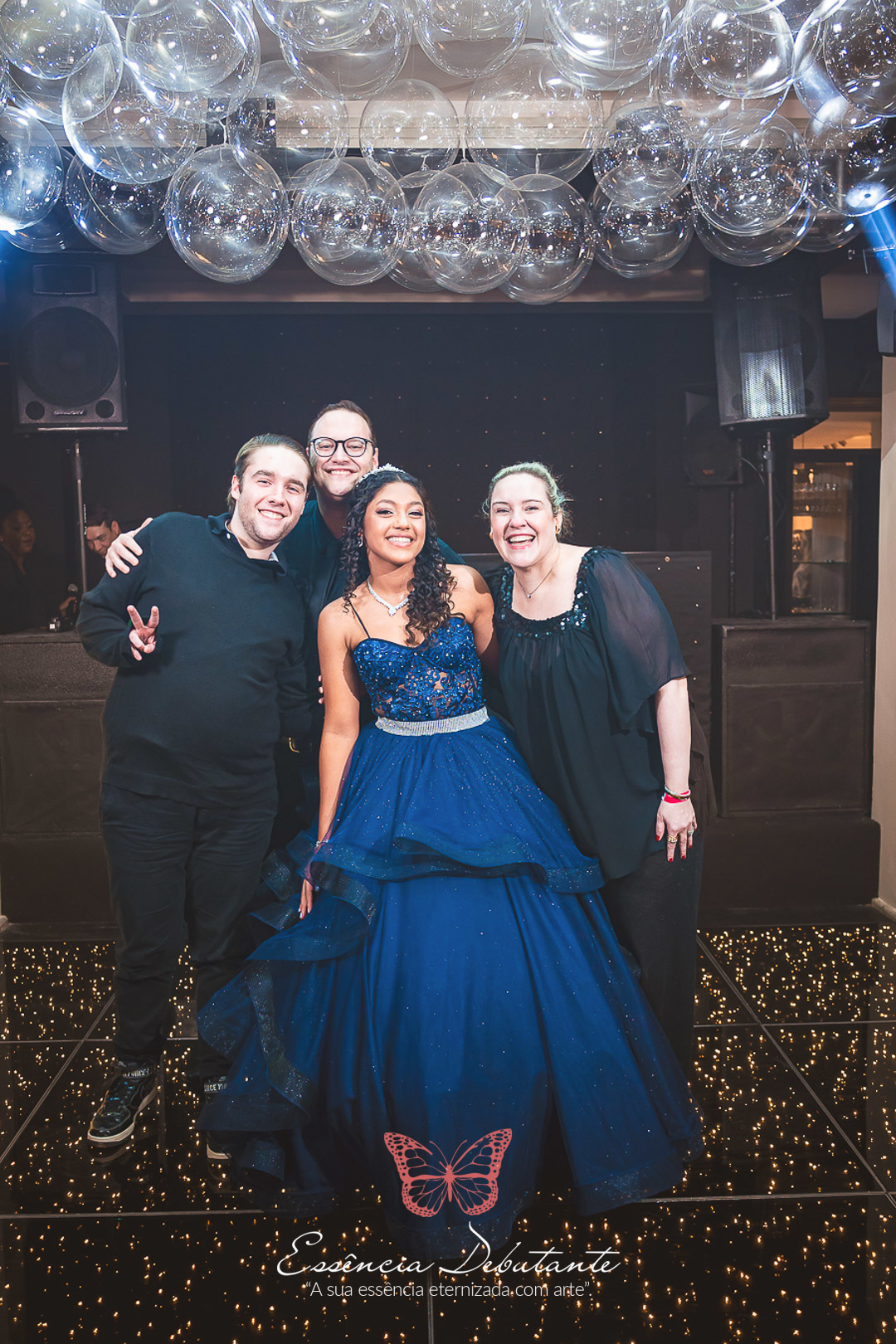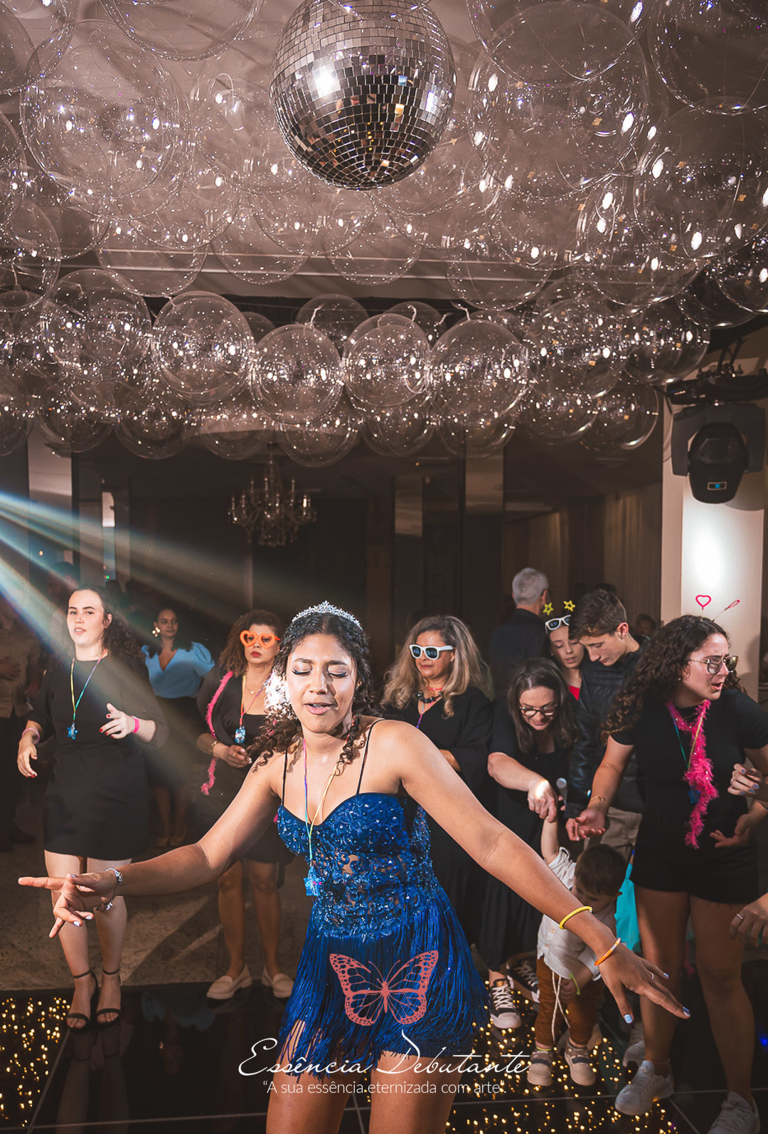 Vestida de azul royal e cercada de amor, Maria celebrou seus 15 anos em grande estilo.