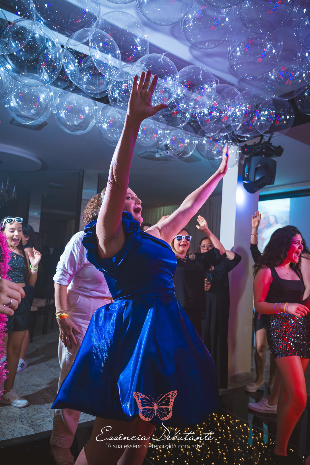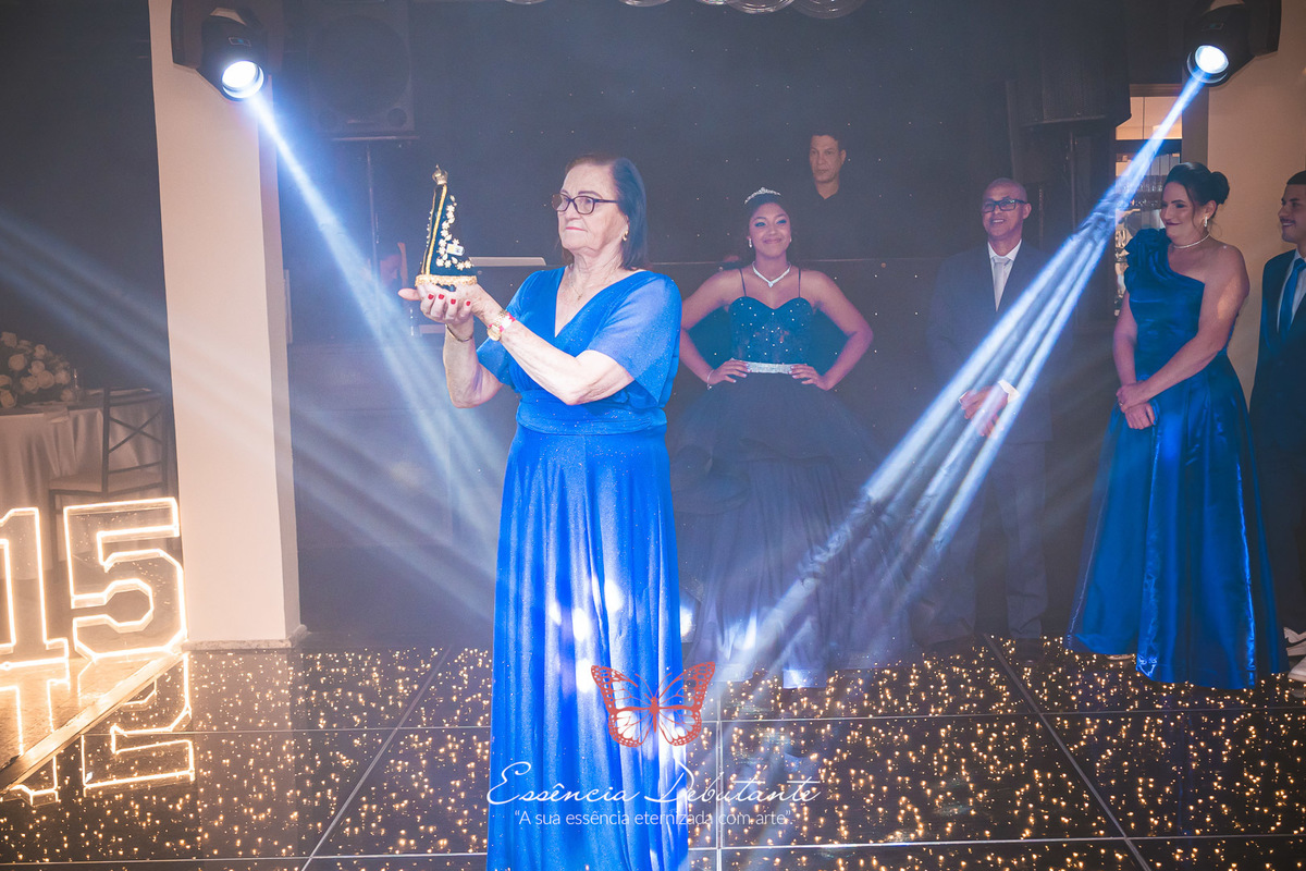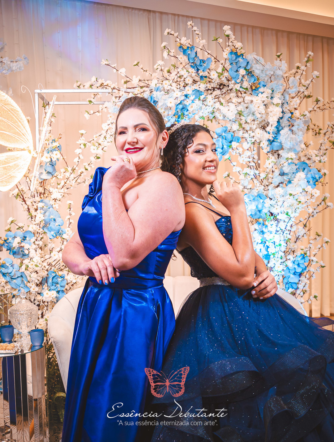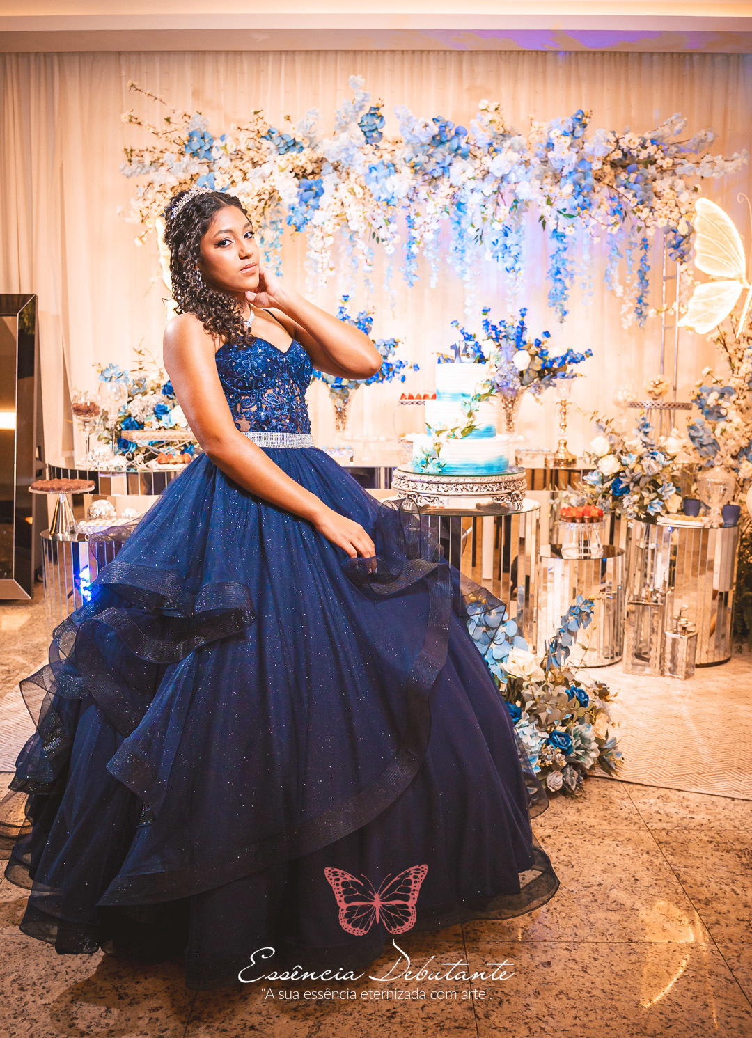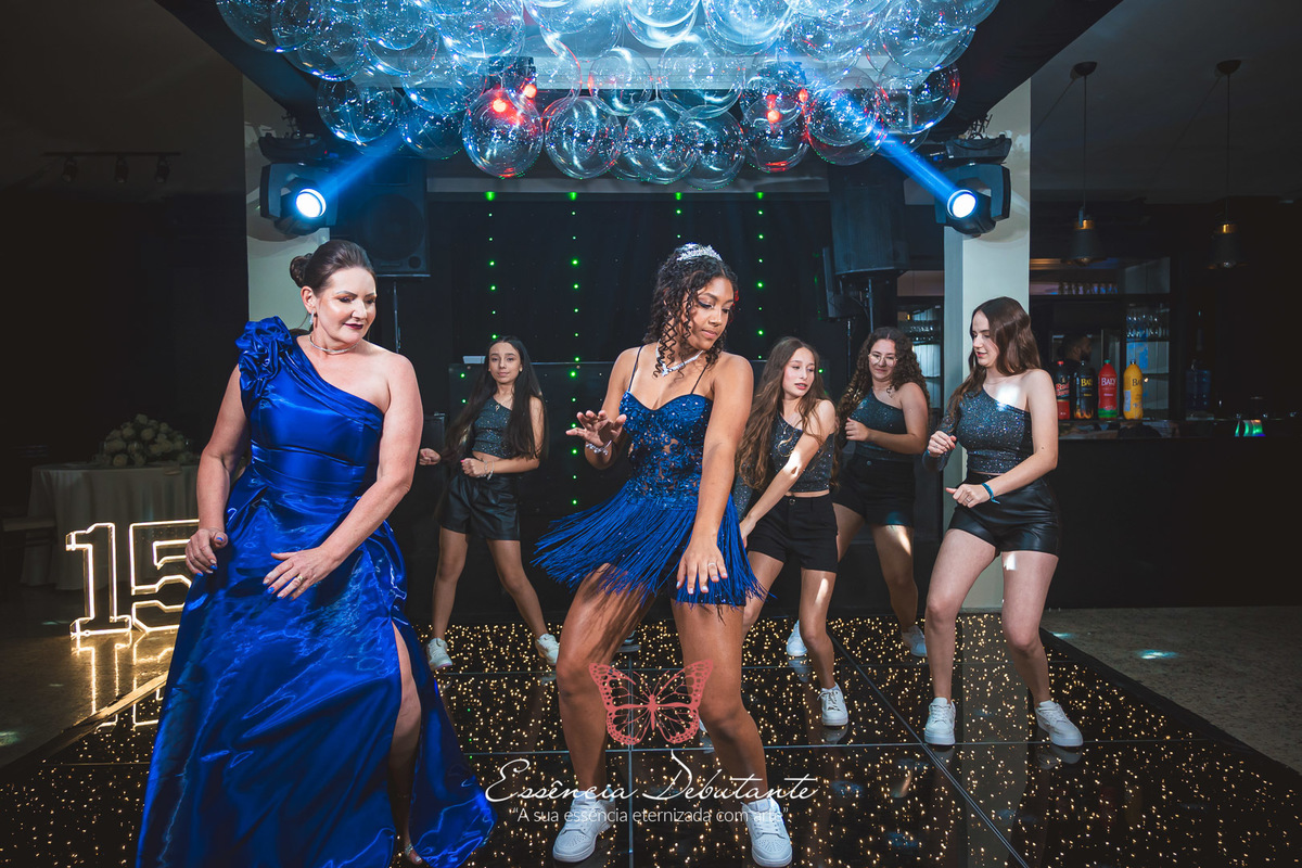 Vestida de azul royal e cercada de amor, Maria celebrou seus 15 anos em grande estilo.
