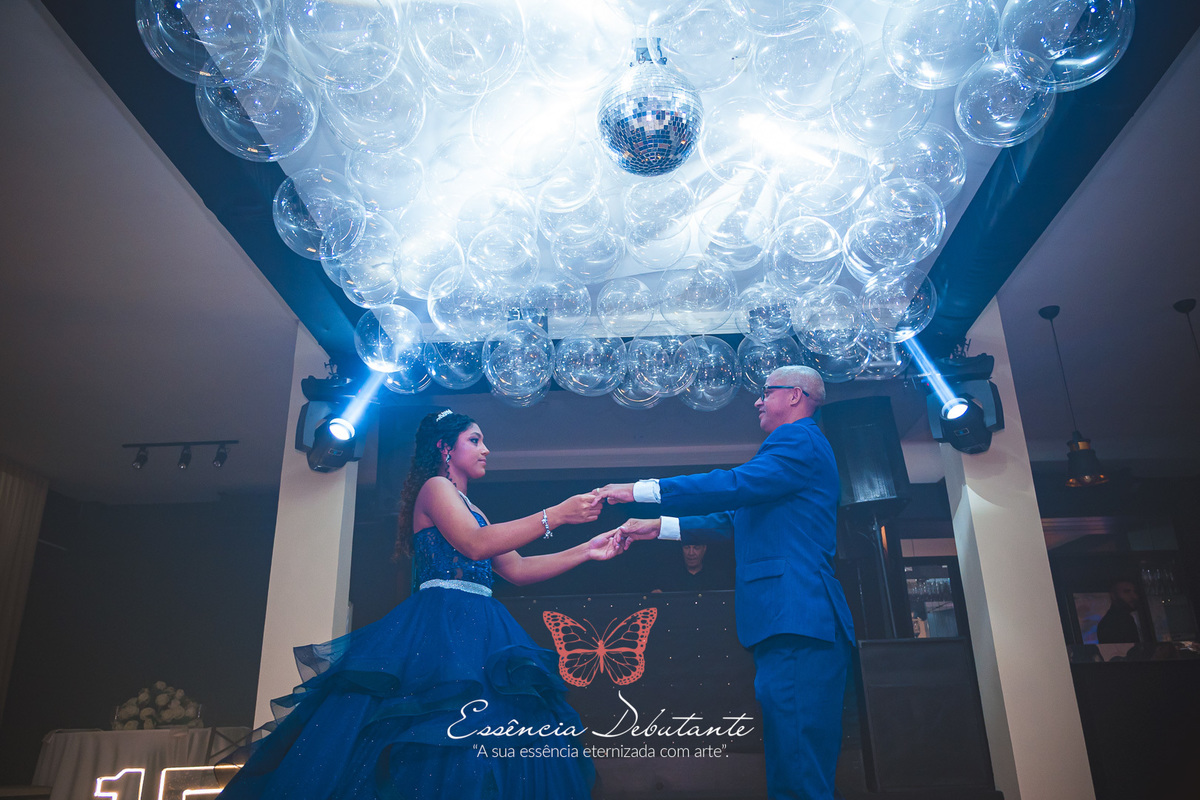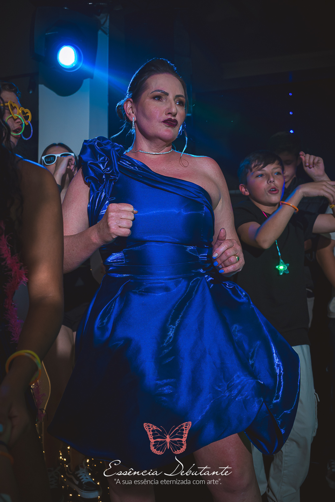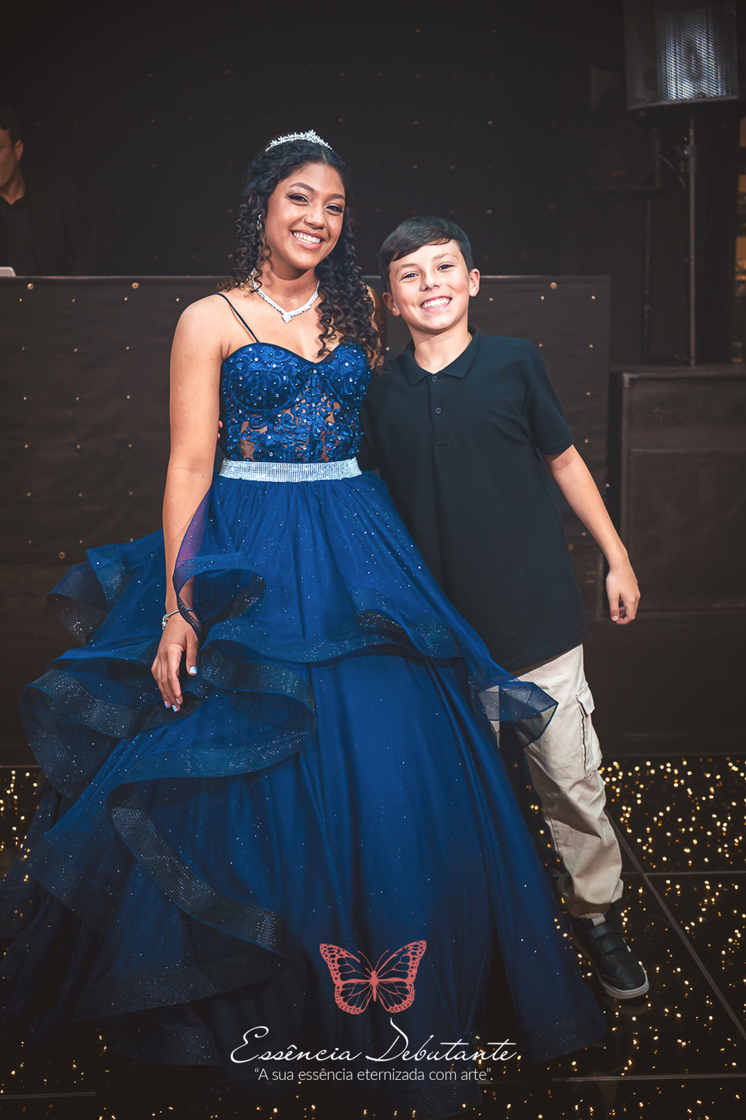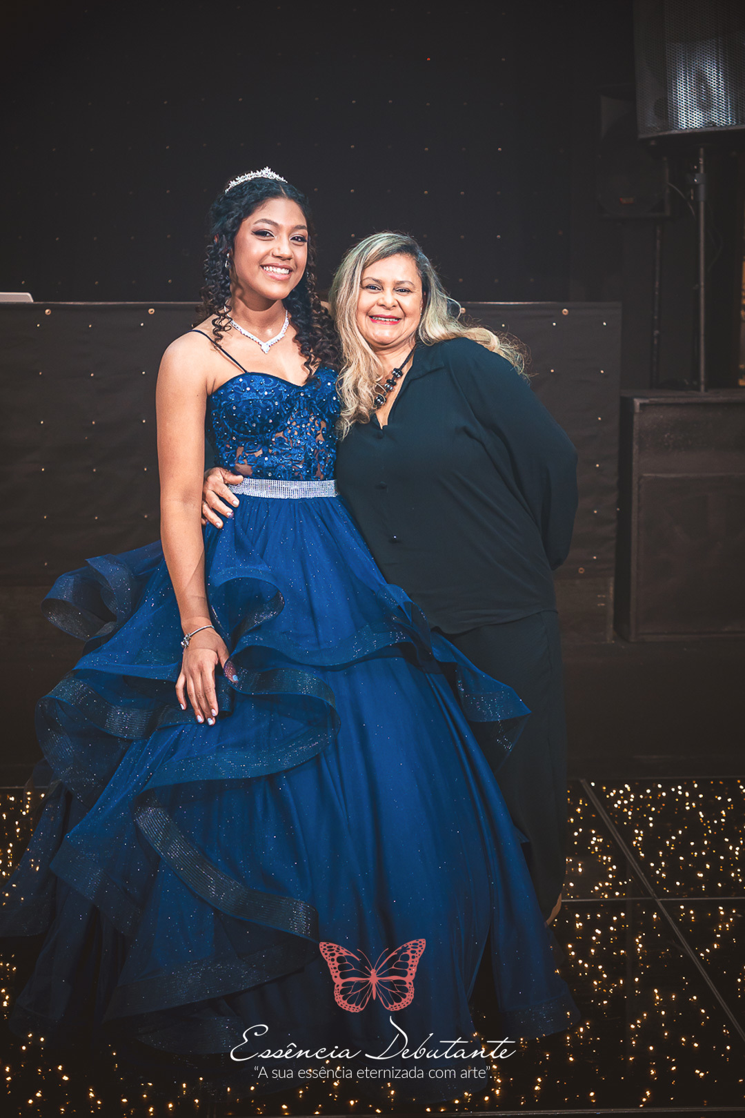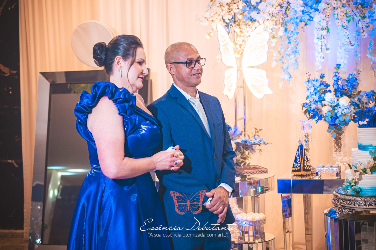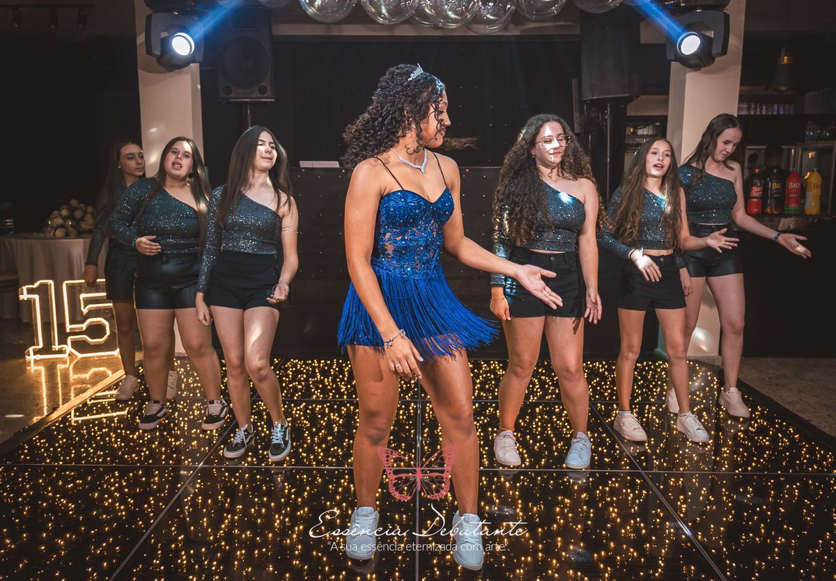 Vestida de azul royal e cercada de amor, Maria celebrou seus 15 anos em grande estilo.