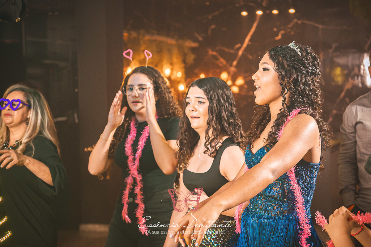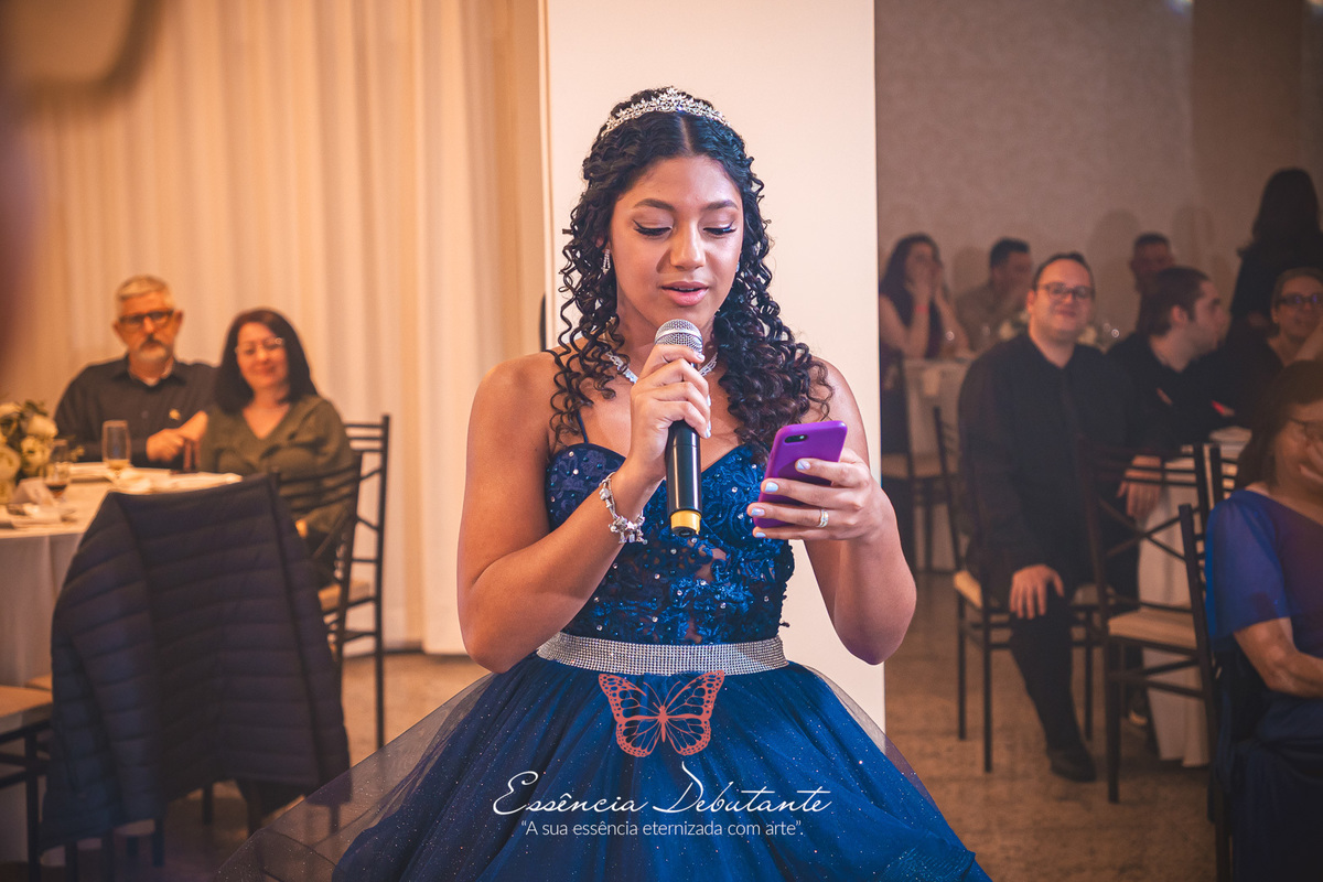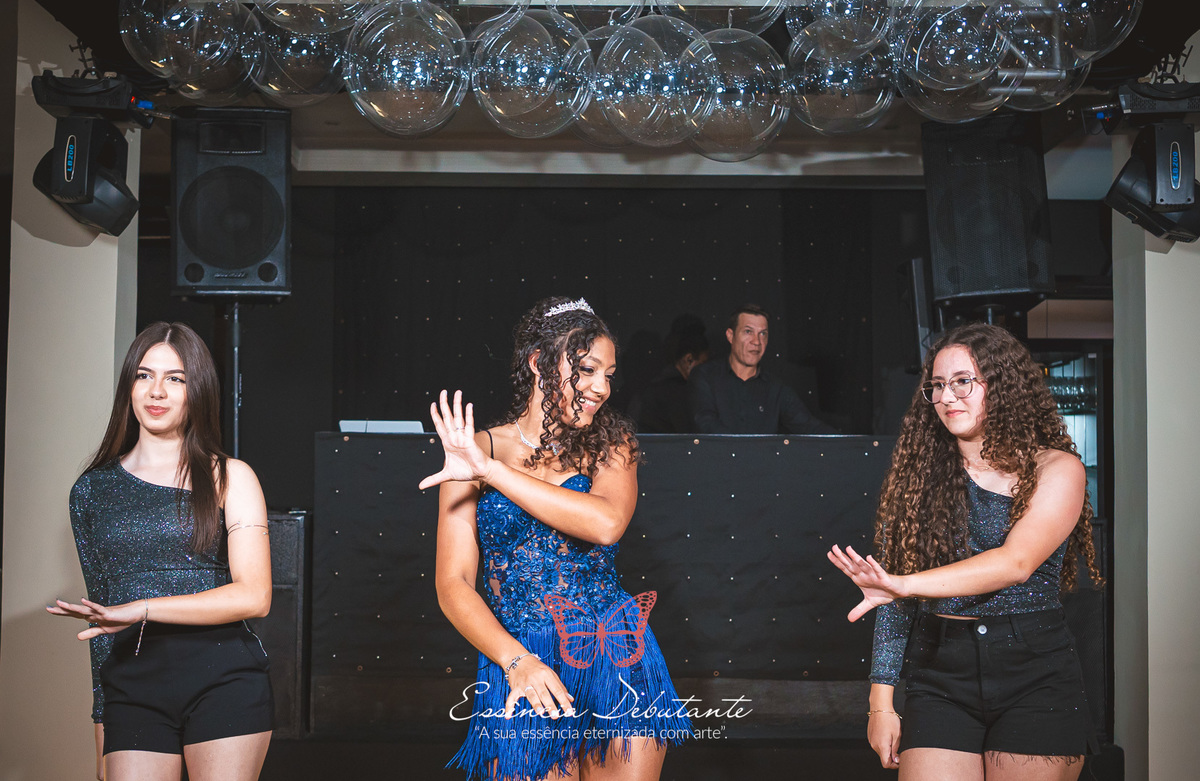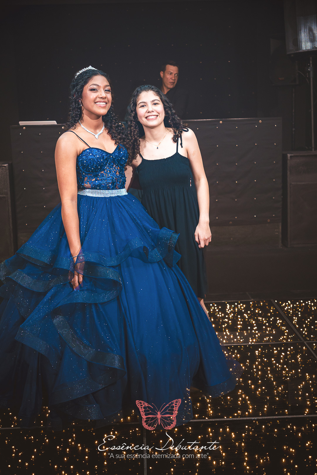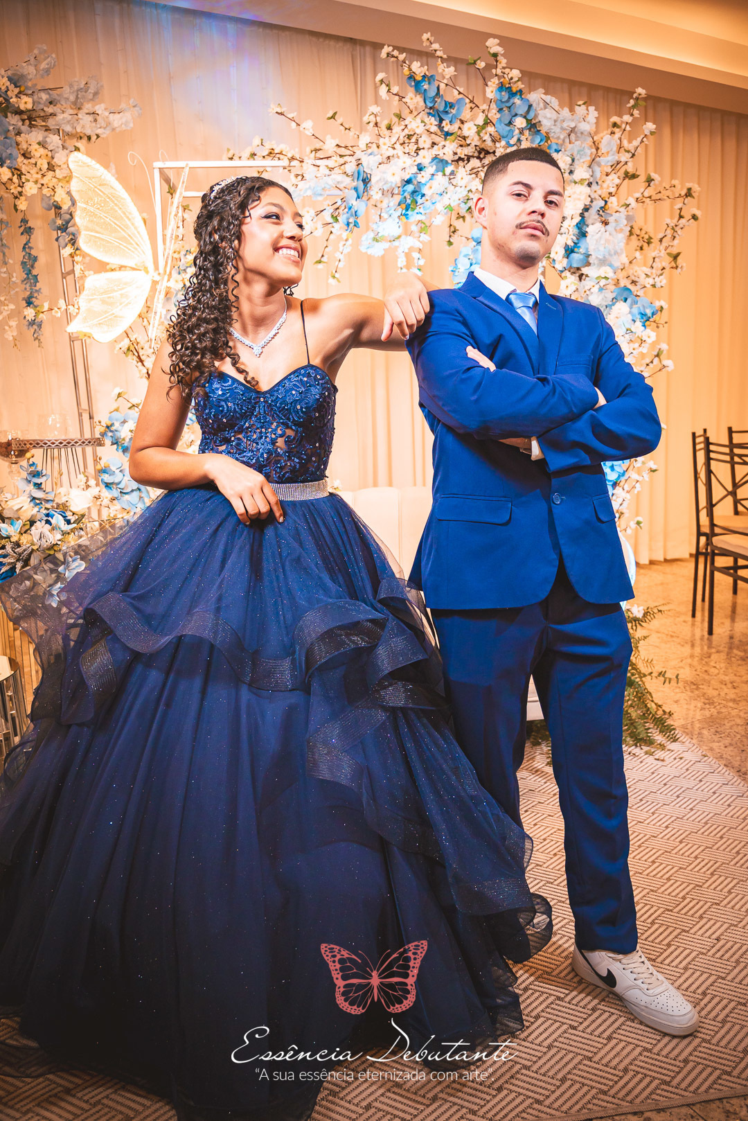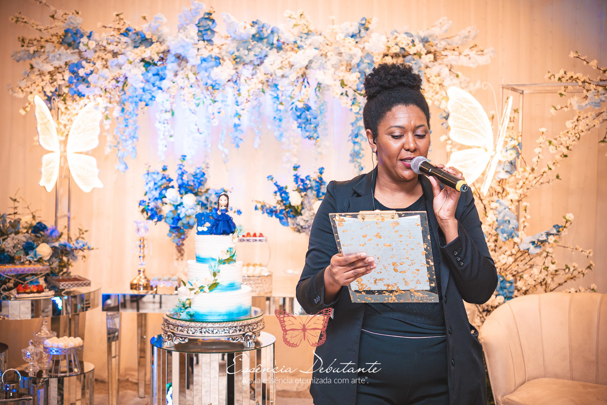 Vestida de azul royal e cercada de amor, Maria celebrou seus 15 anos em grande estilo.