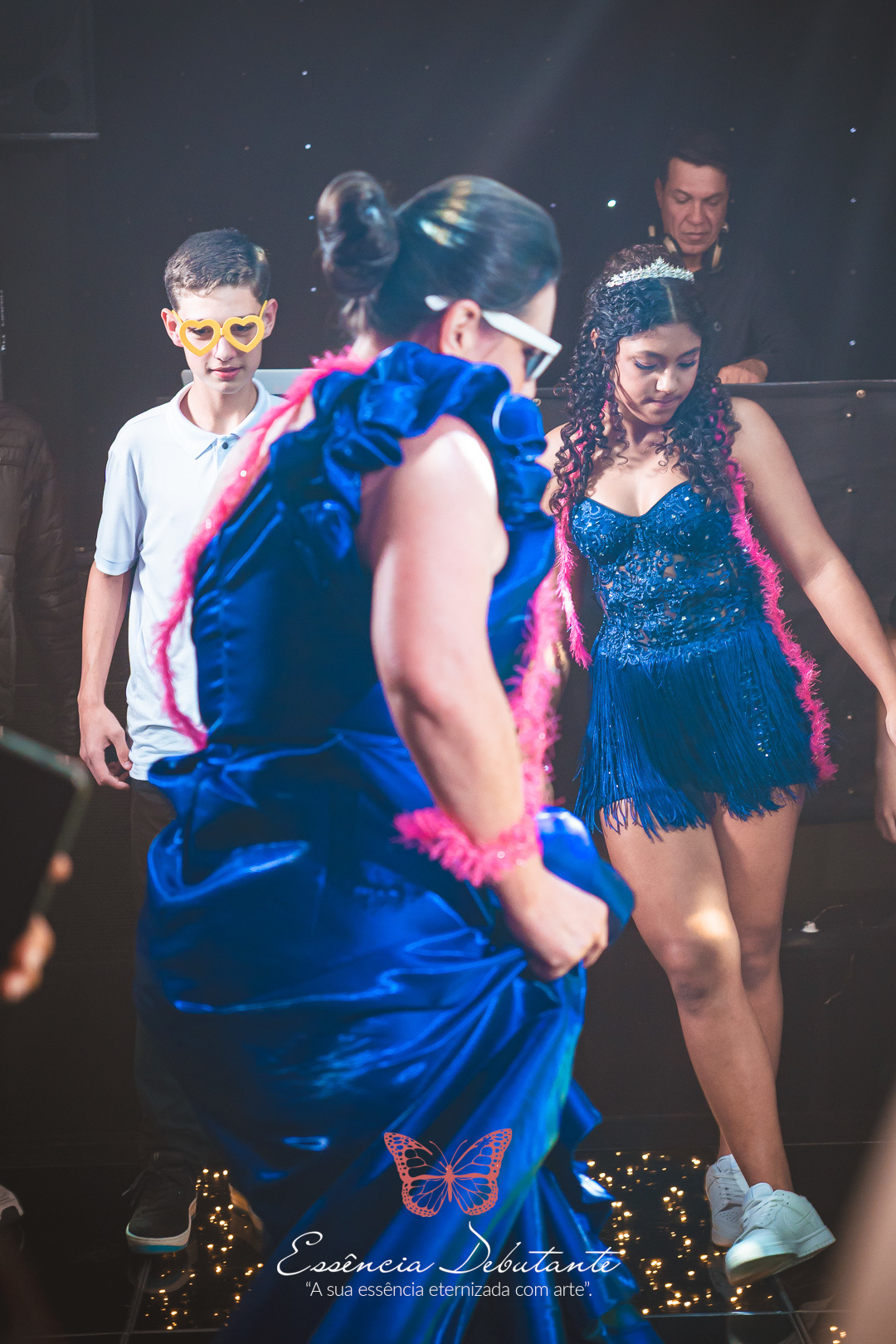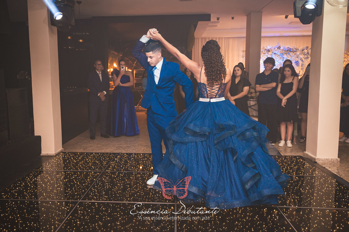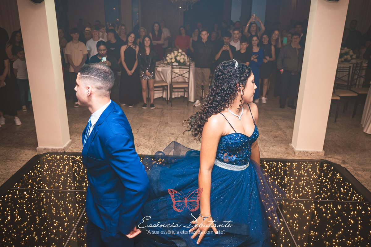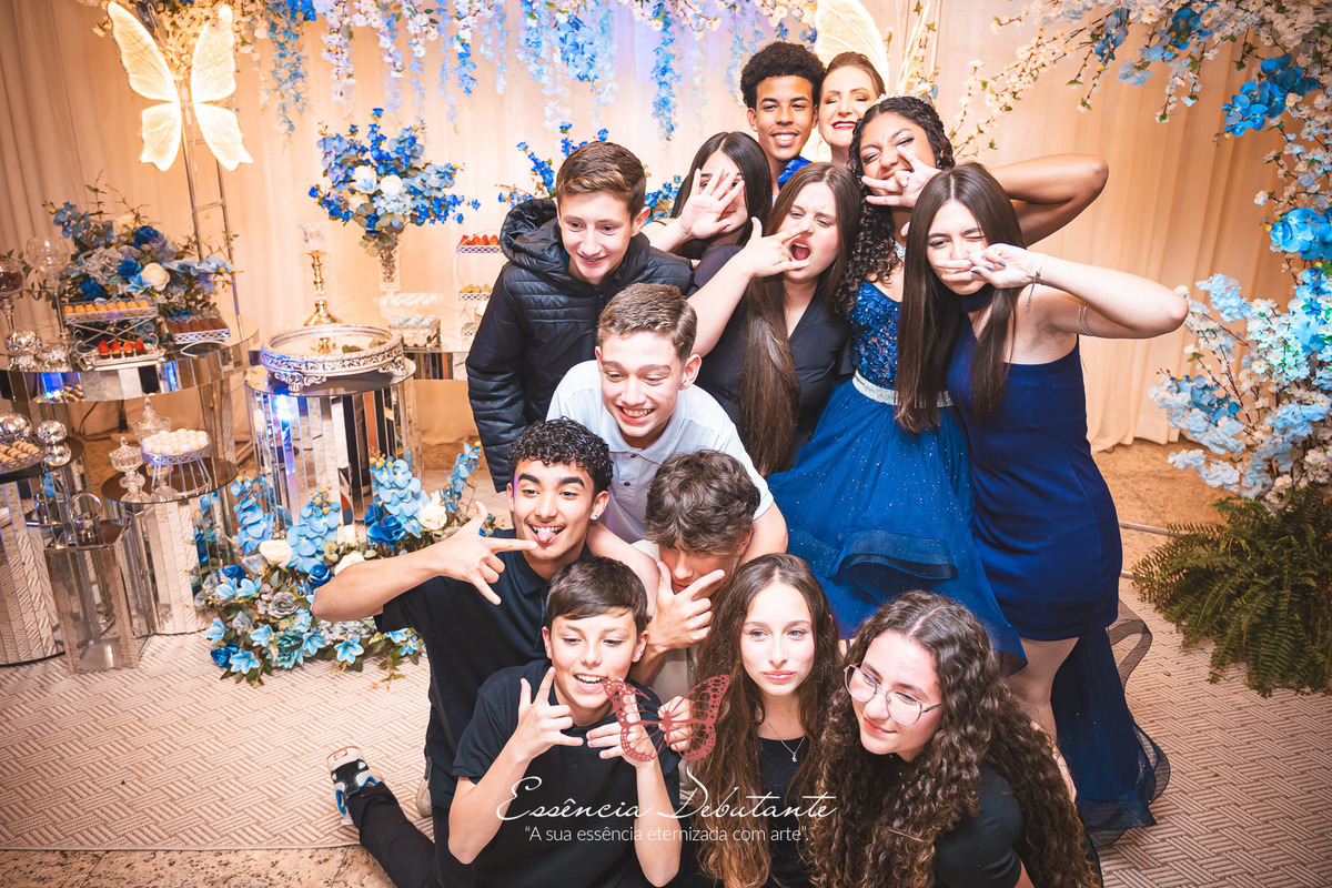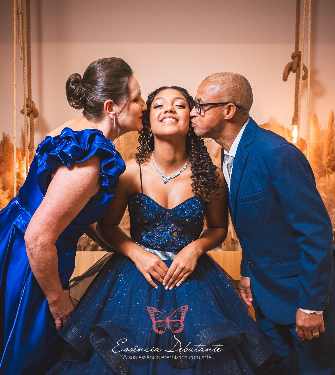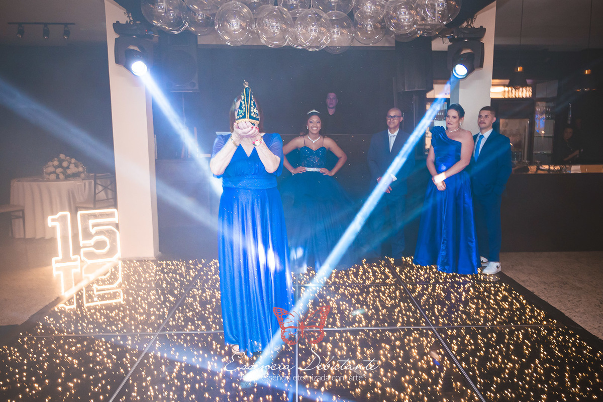Vestida de azul royal e cercada de amor, Maria celebrou seus 15 anos em grande estilo.