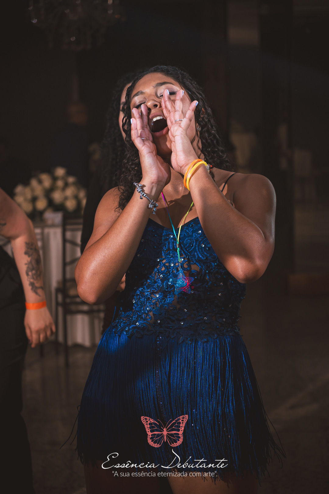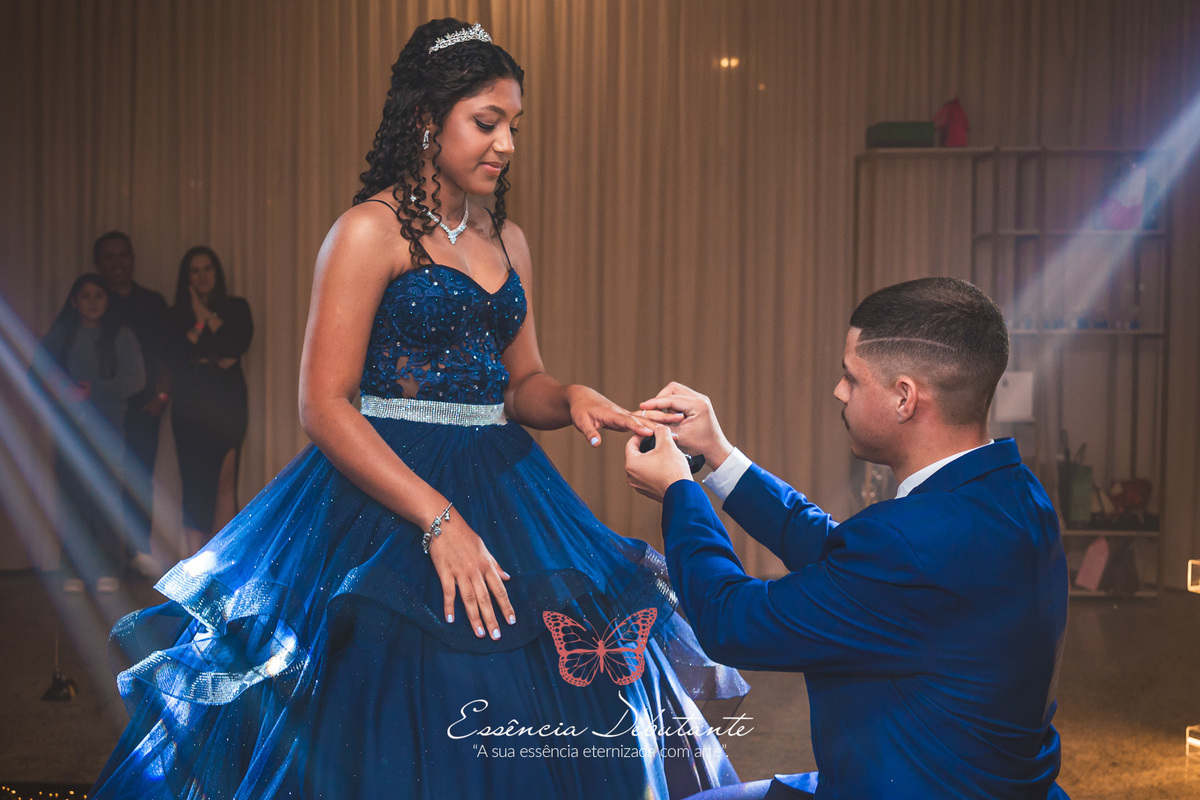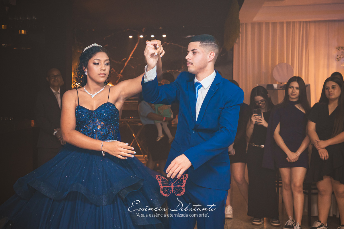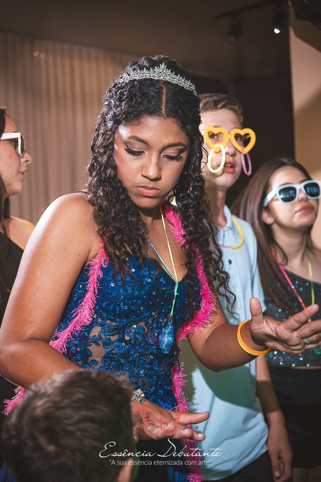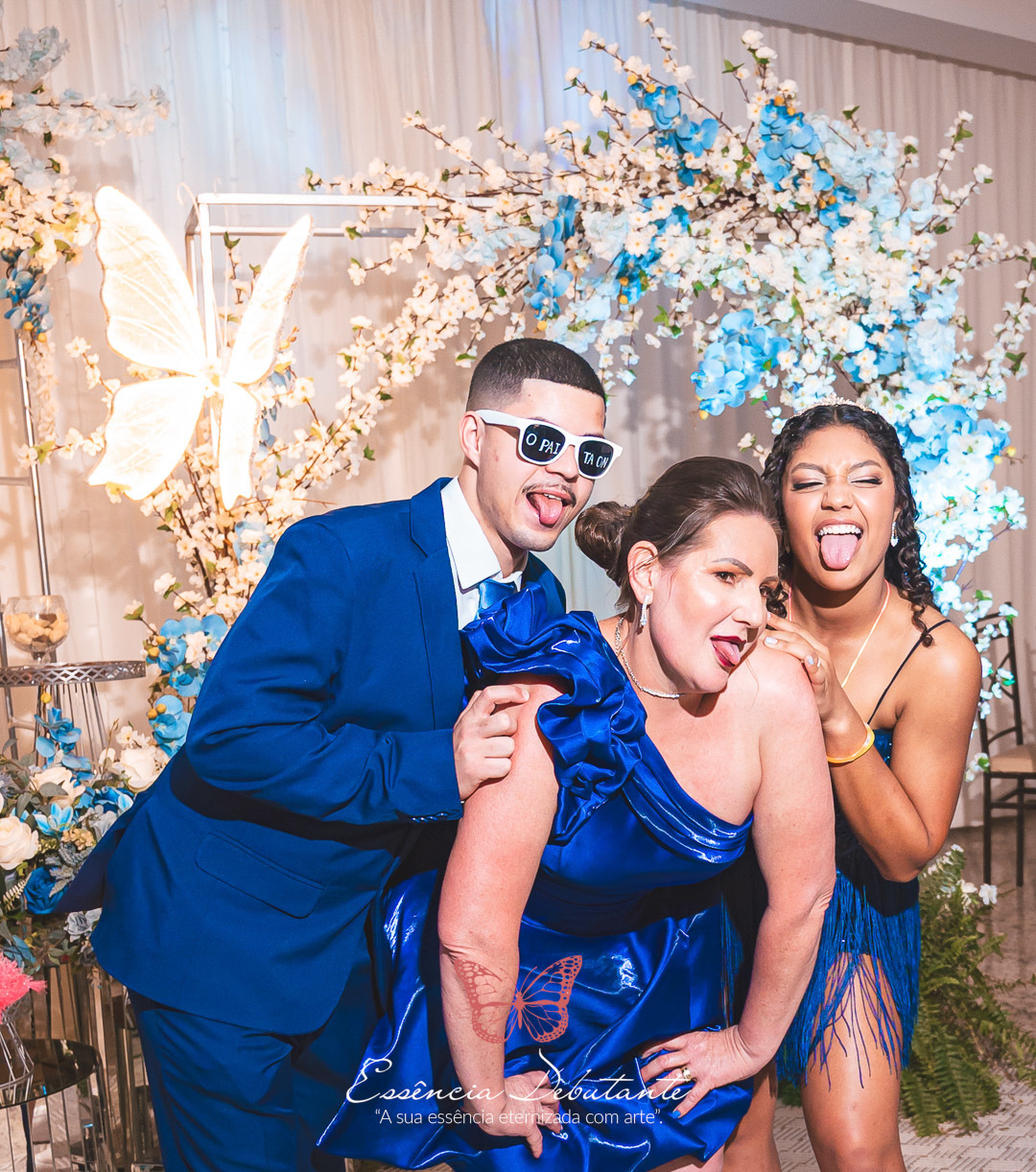 Vestida de azul royal e cercada de amor, Maria celebrou seus 15 anos em grande estilo.