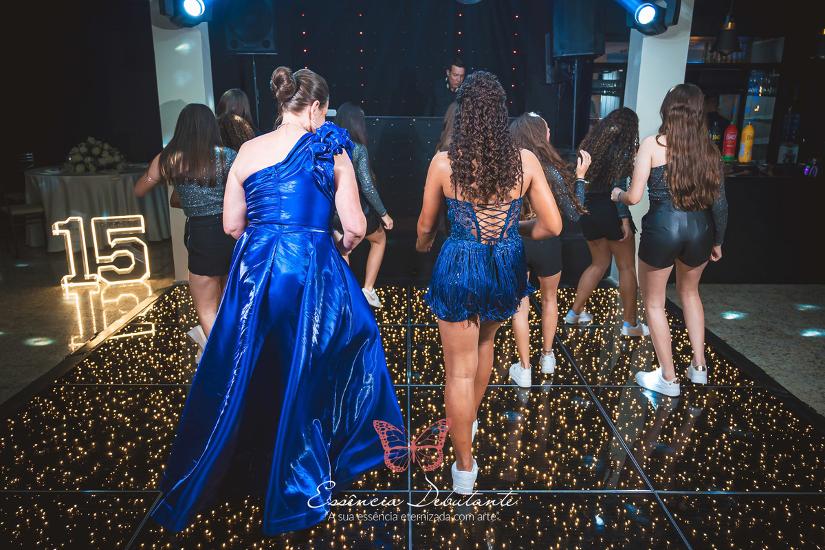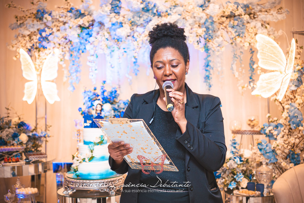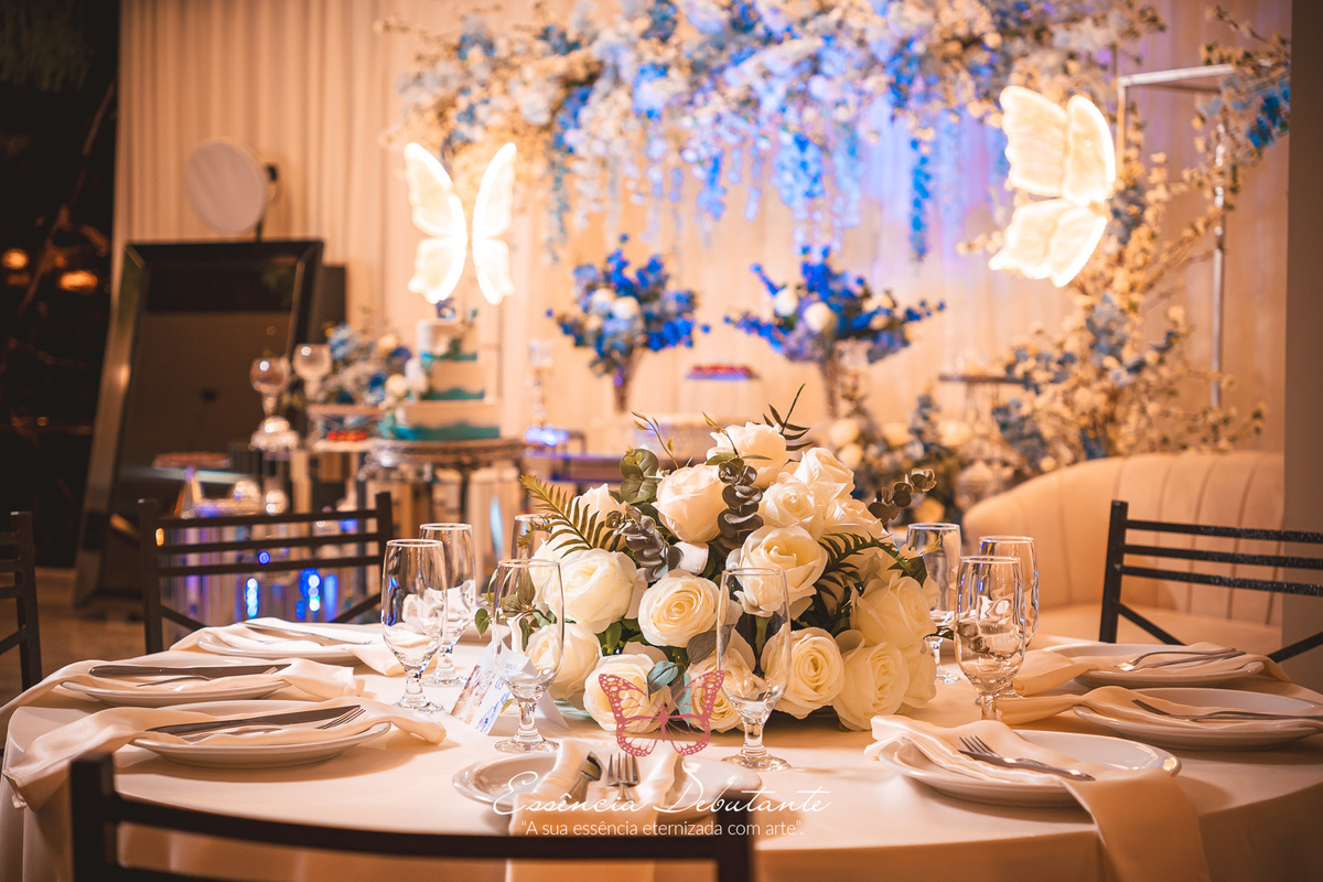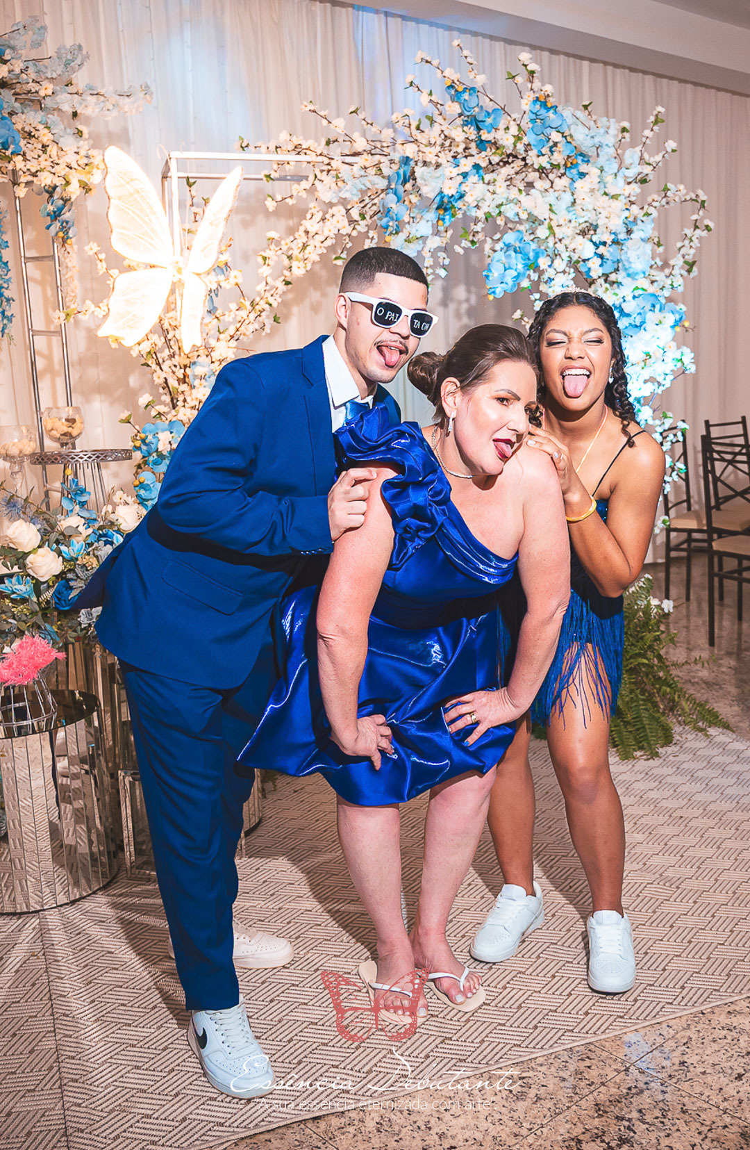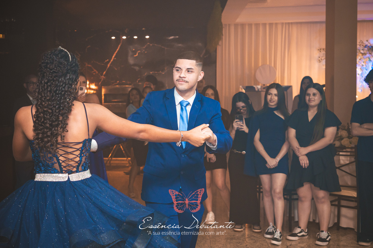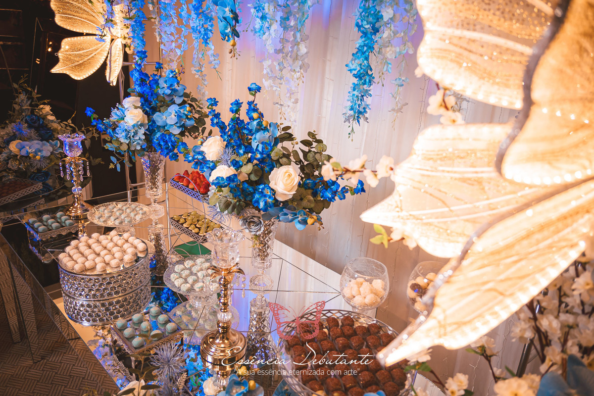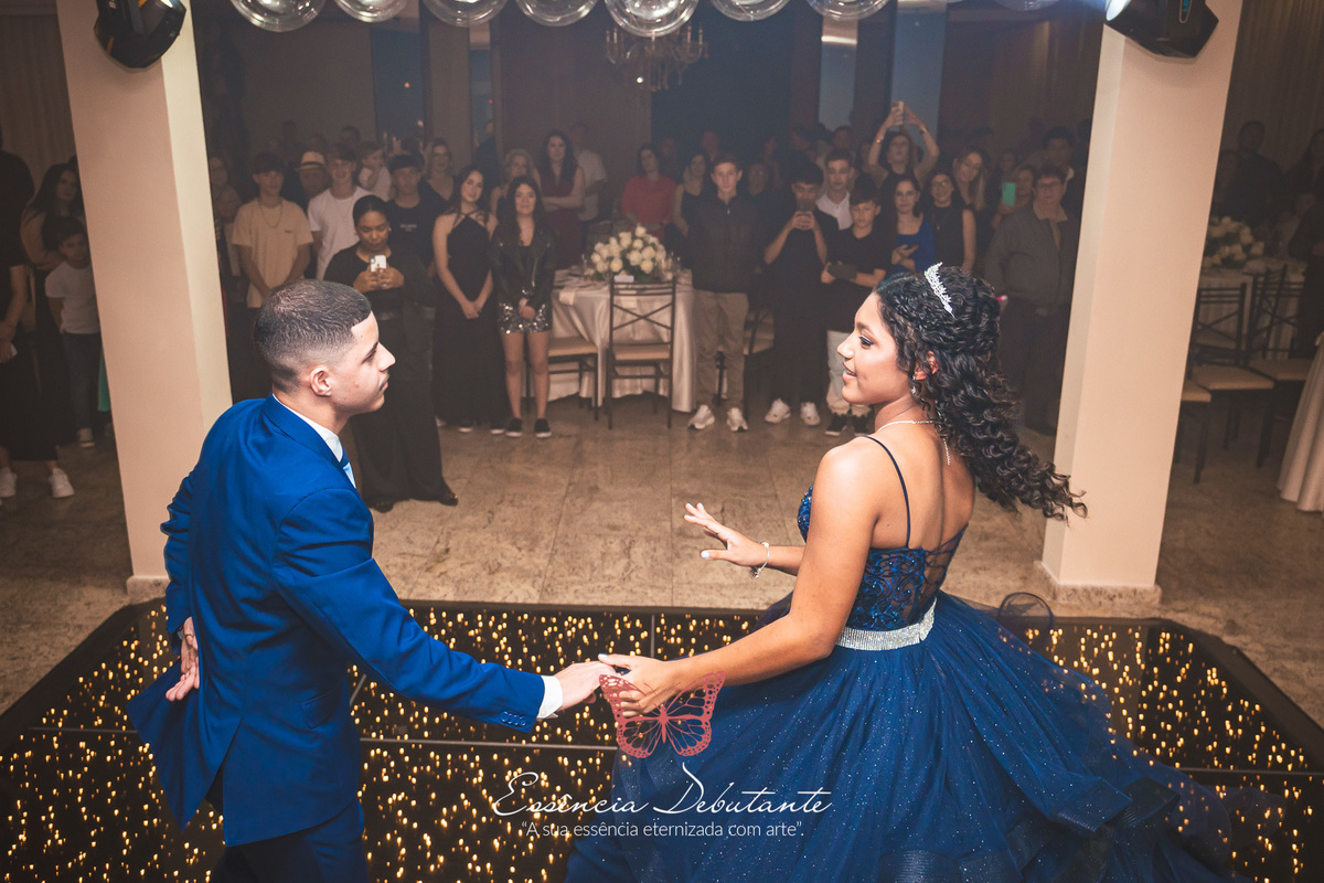 Vestida de azul royal e cercada de amor, Maria celebrou seus 15 anos em grande estilo.