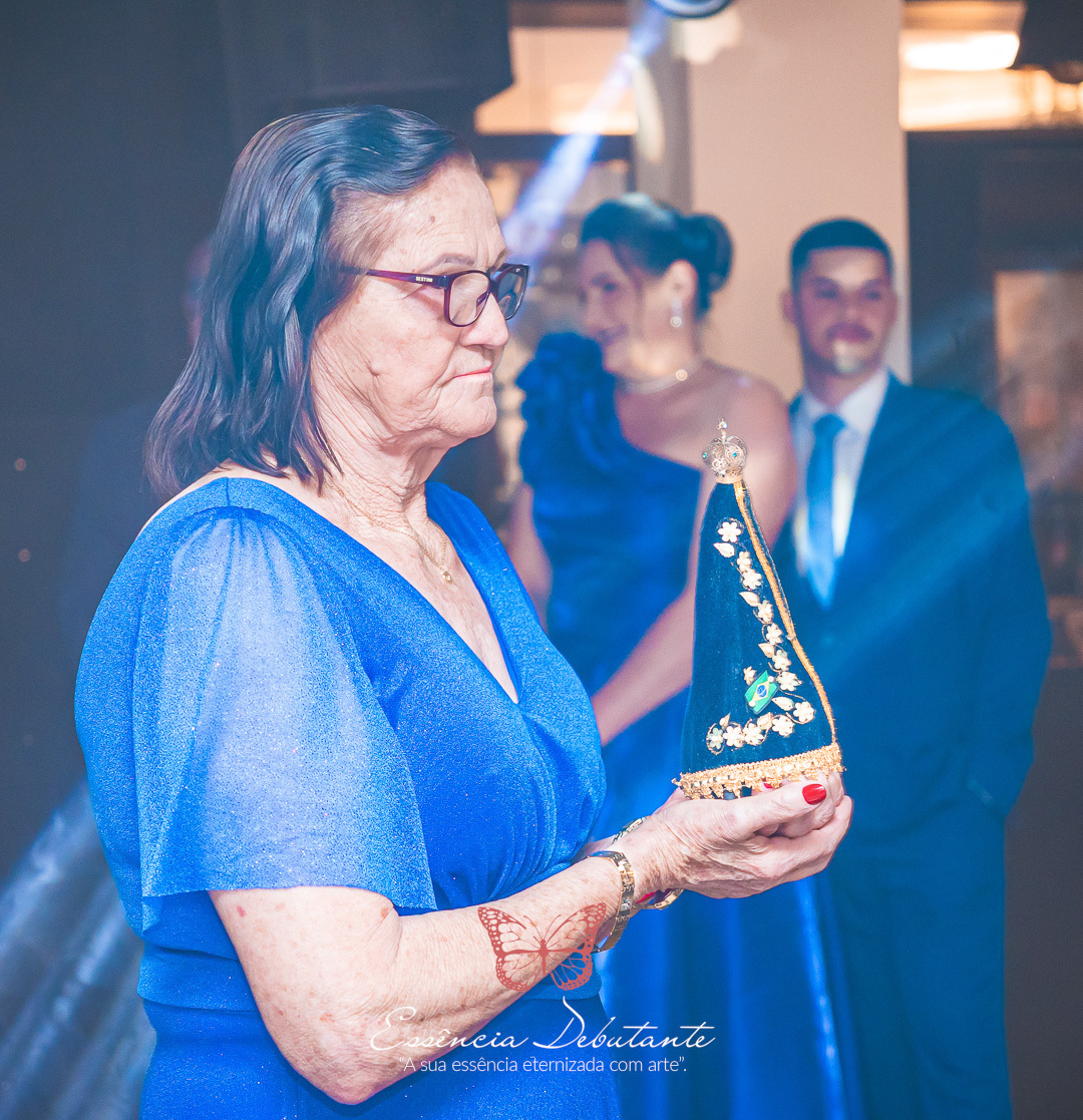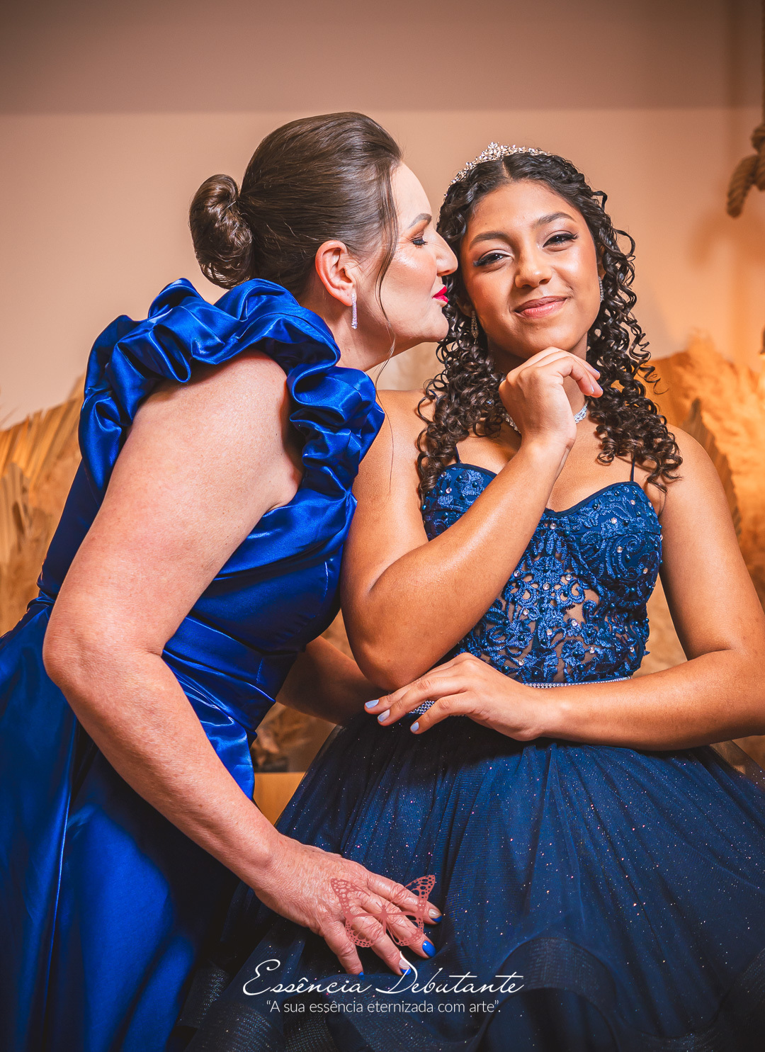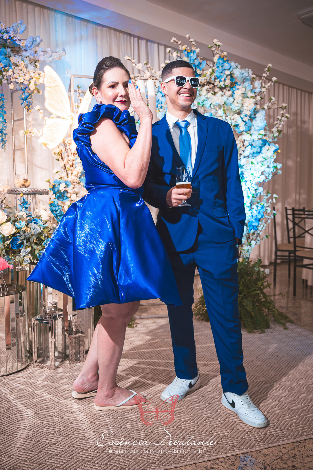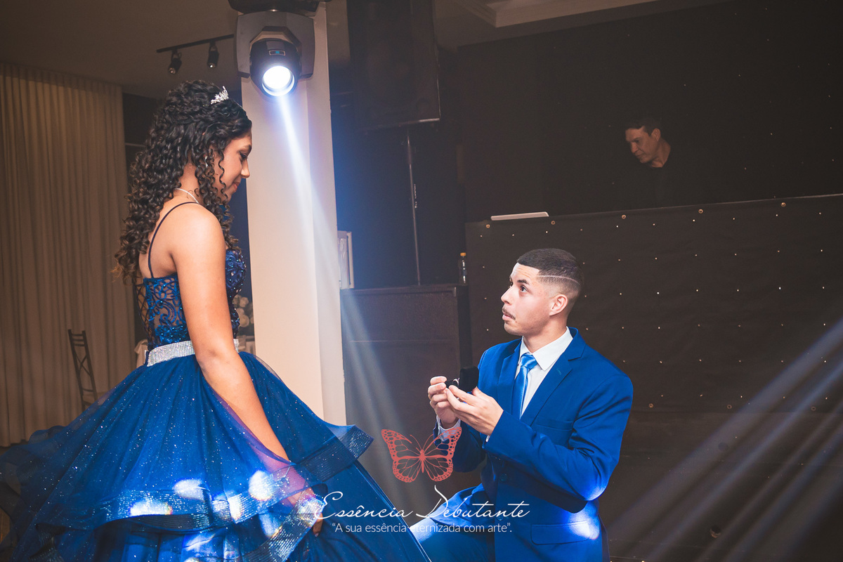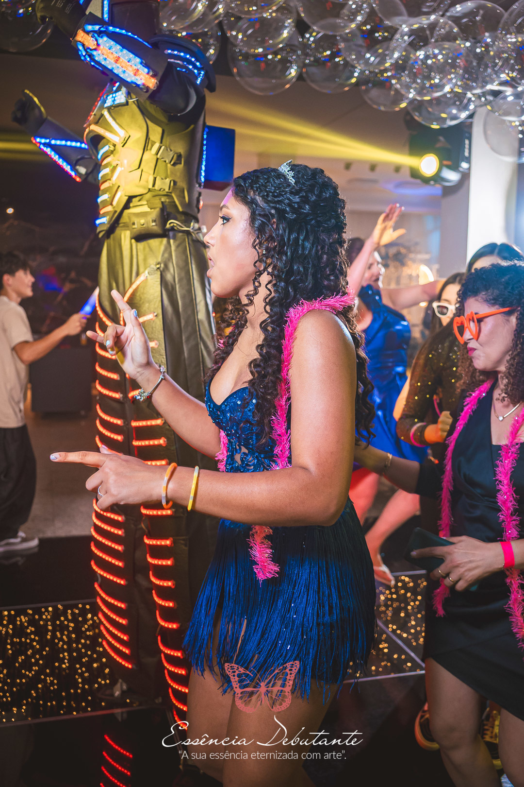 Vestida de azul royal e cercada de amor, Maria celebrou seus 15 anos em grande estilo.