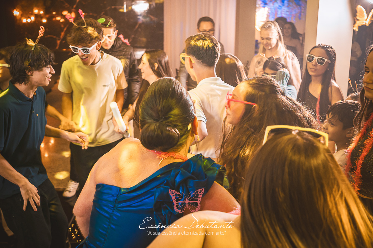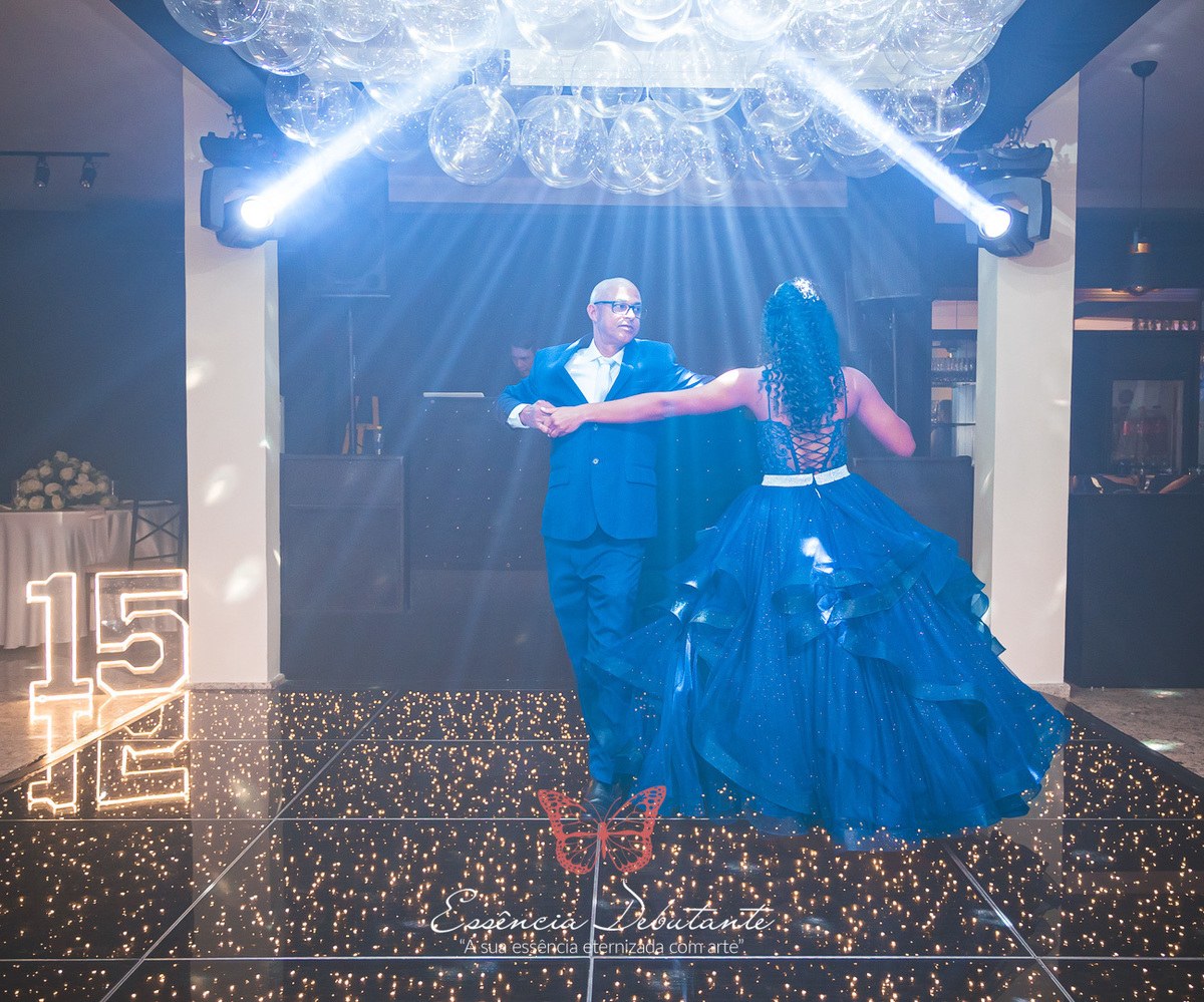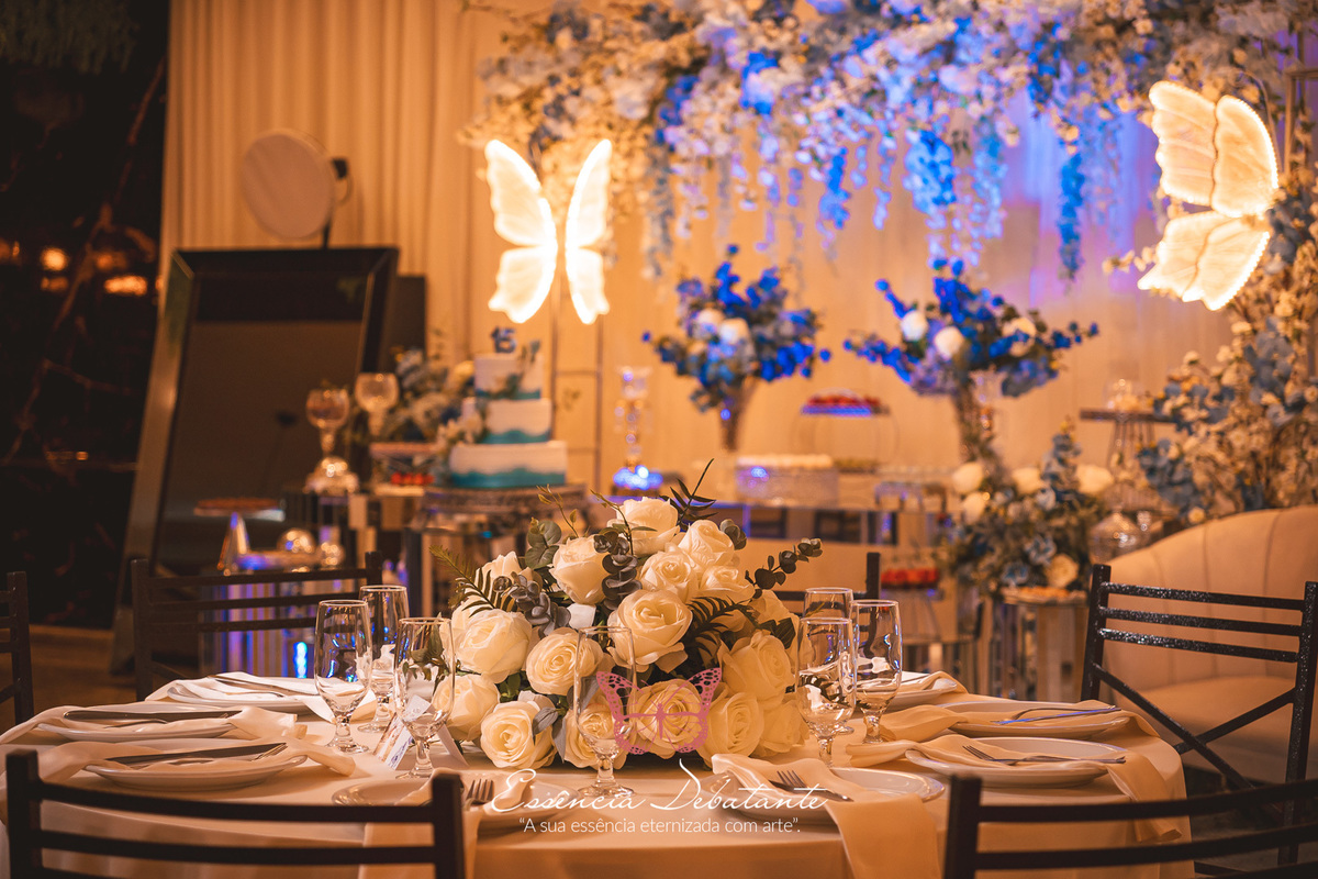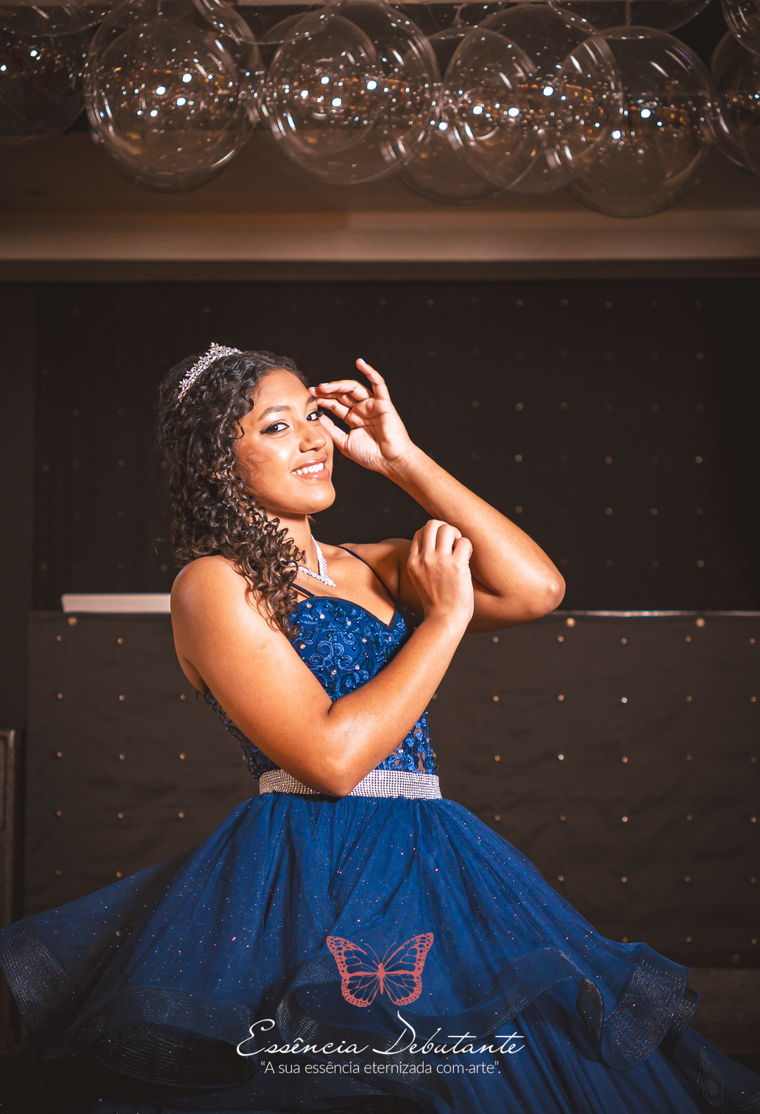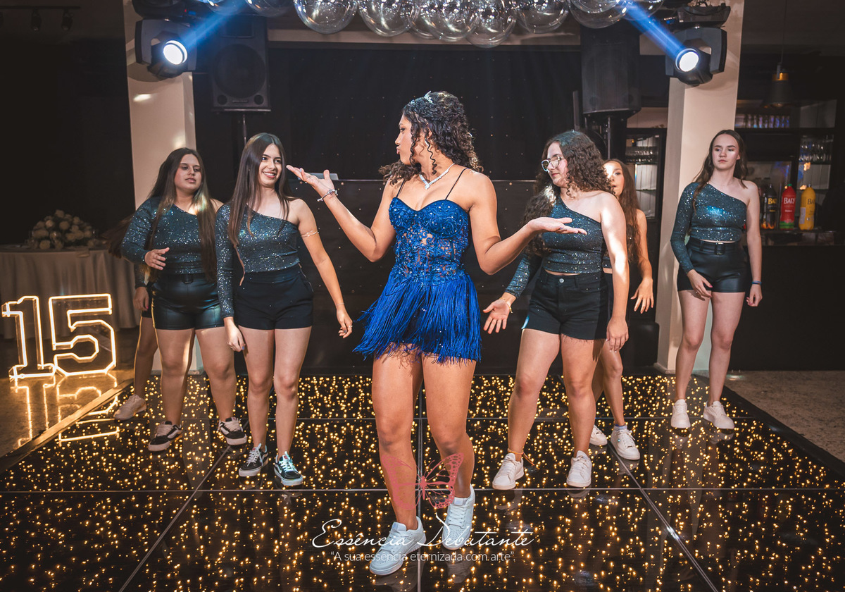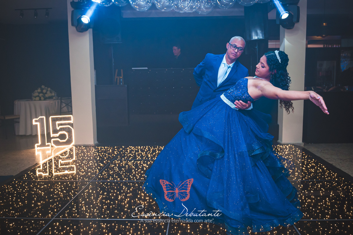 Vestida de azul royal e cercada de amor, Maria celebrou seus 15 anos em grande estilo.