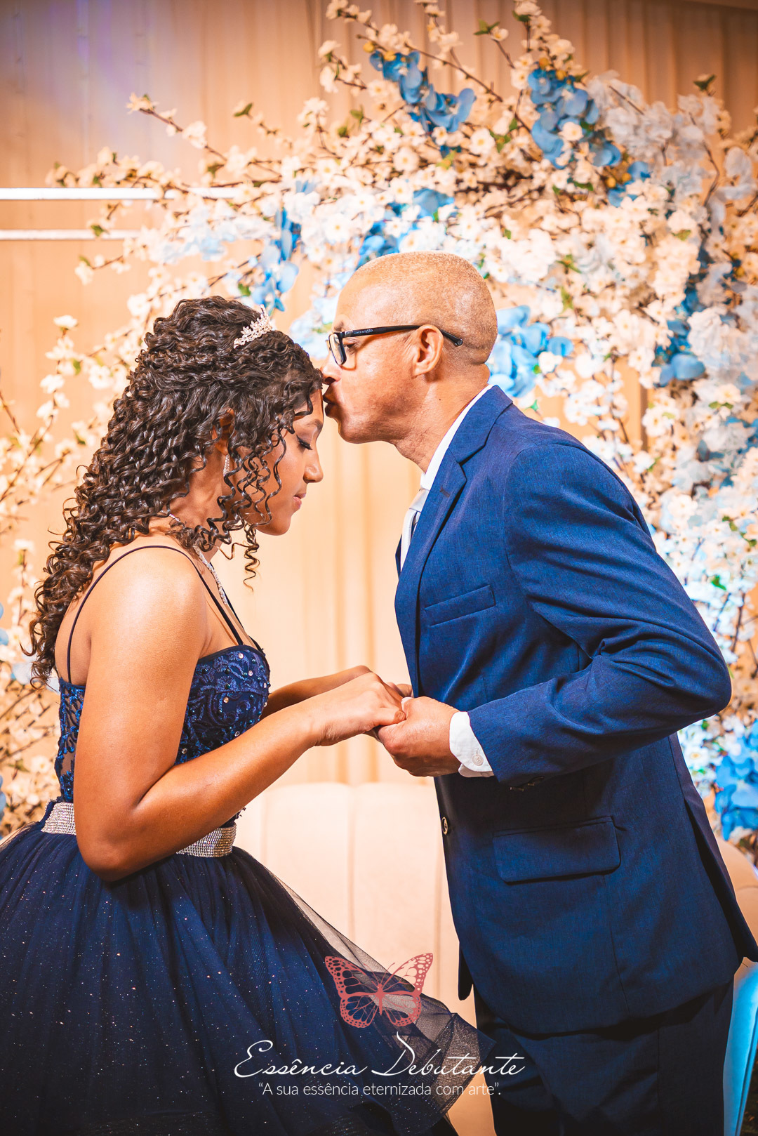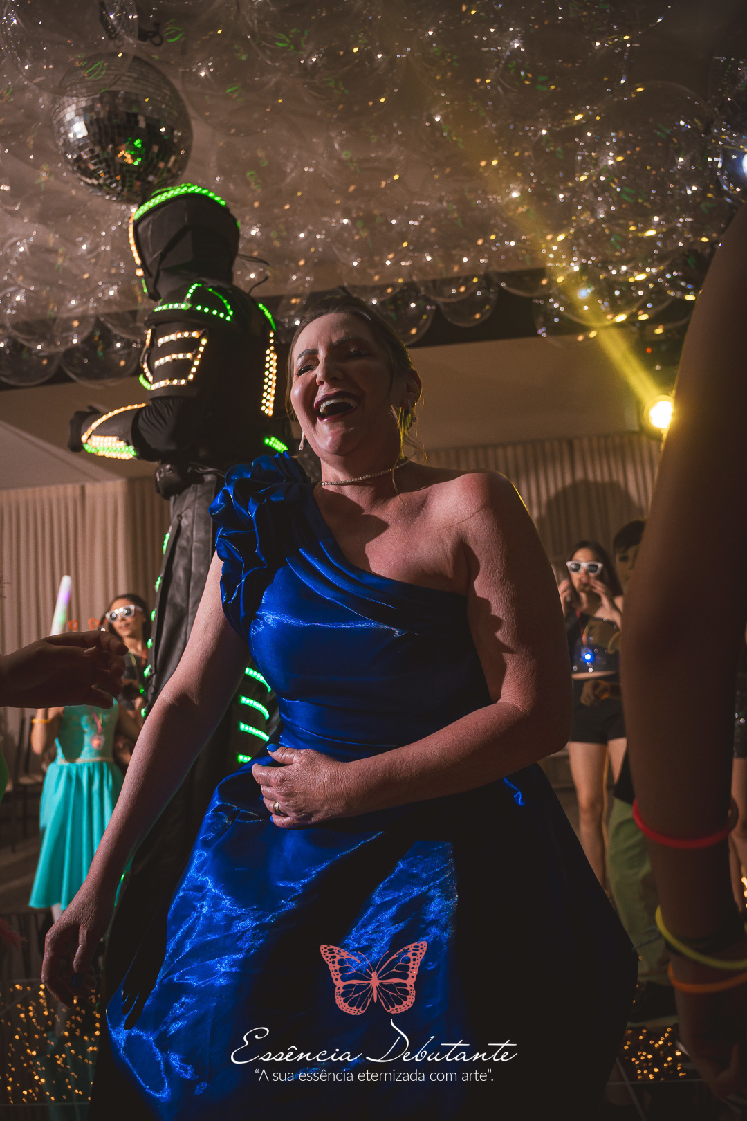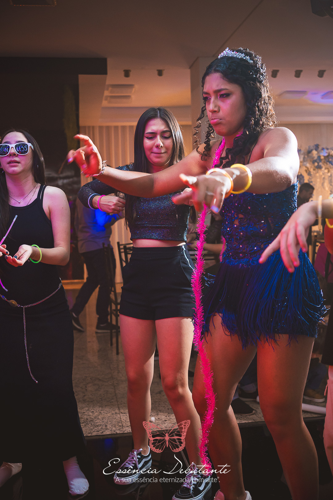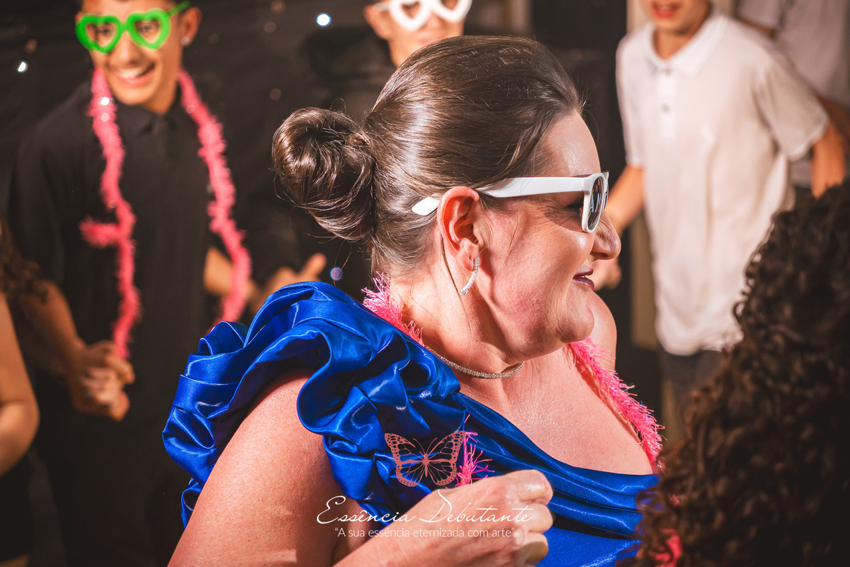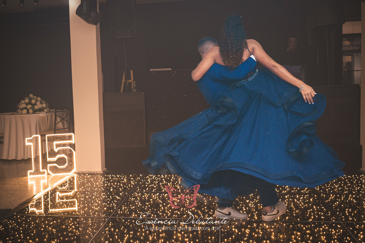 Vestida de azul royal e cercada de amor, Maria celebrou seus 15 anos em grande estilo.