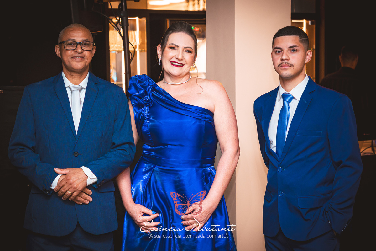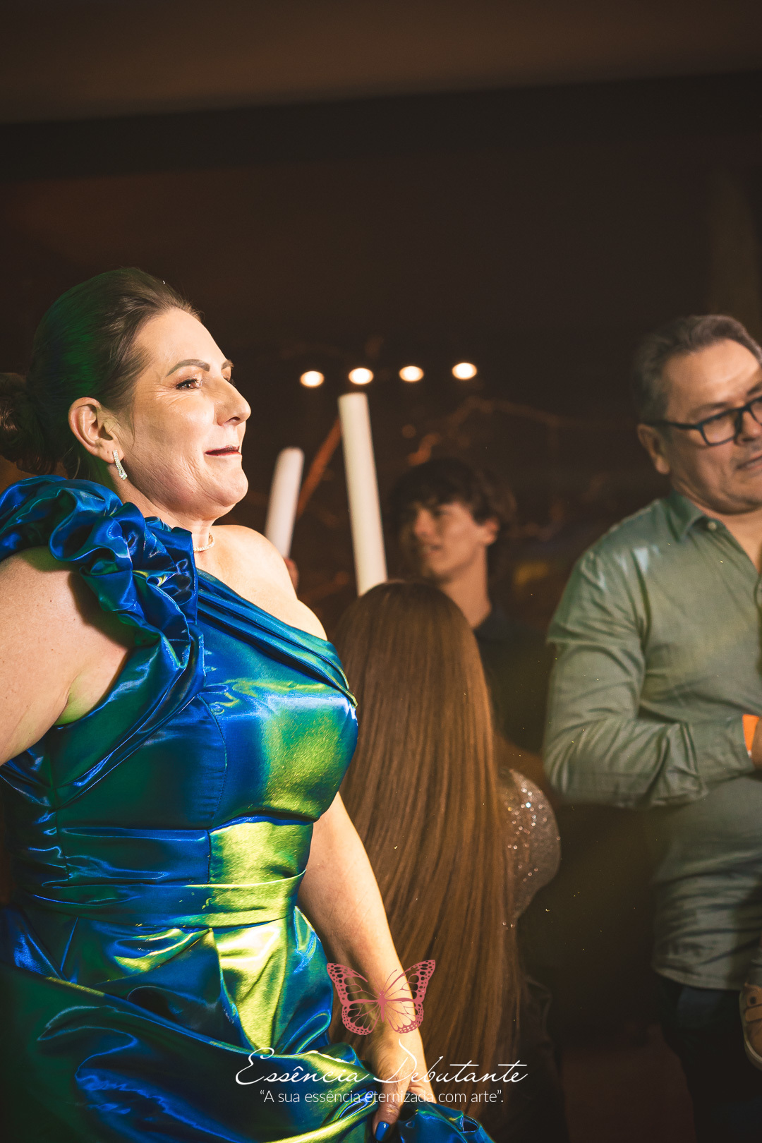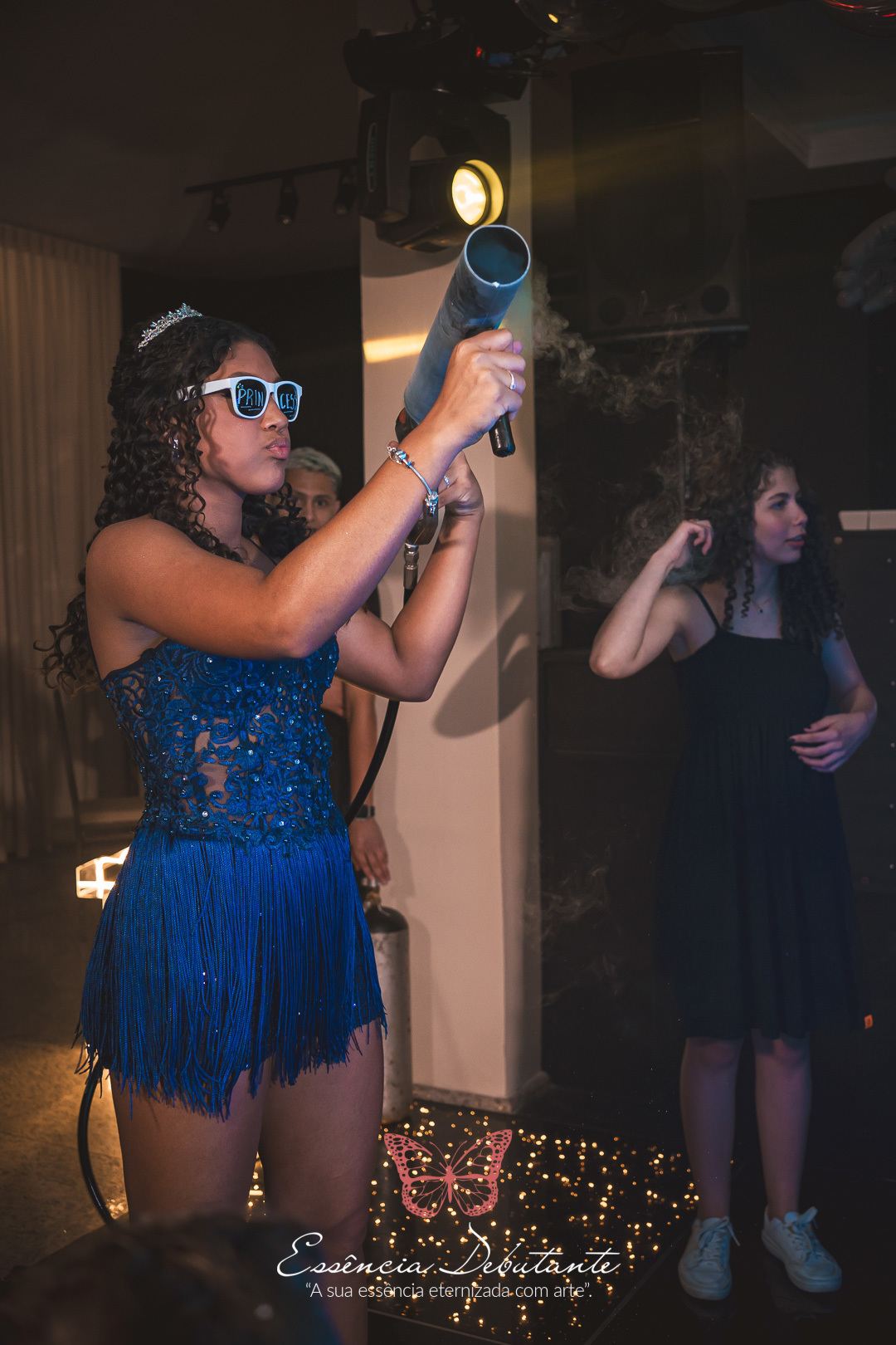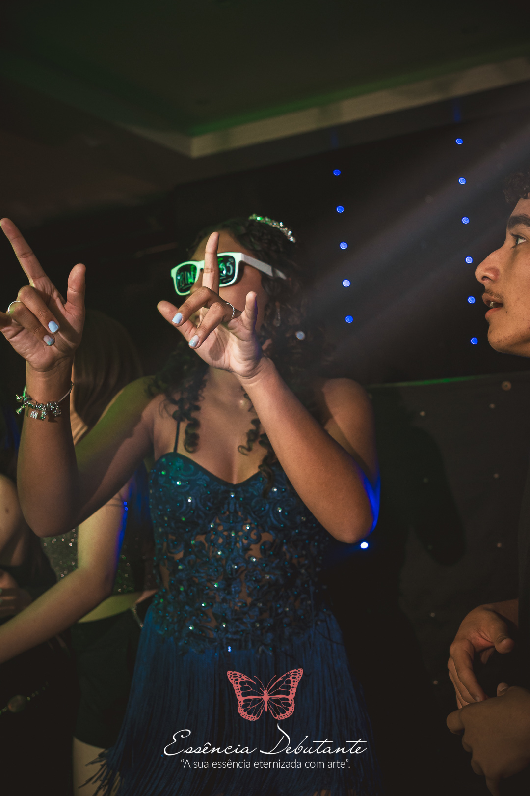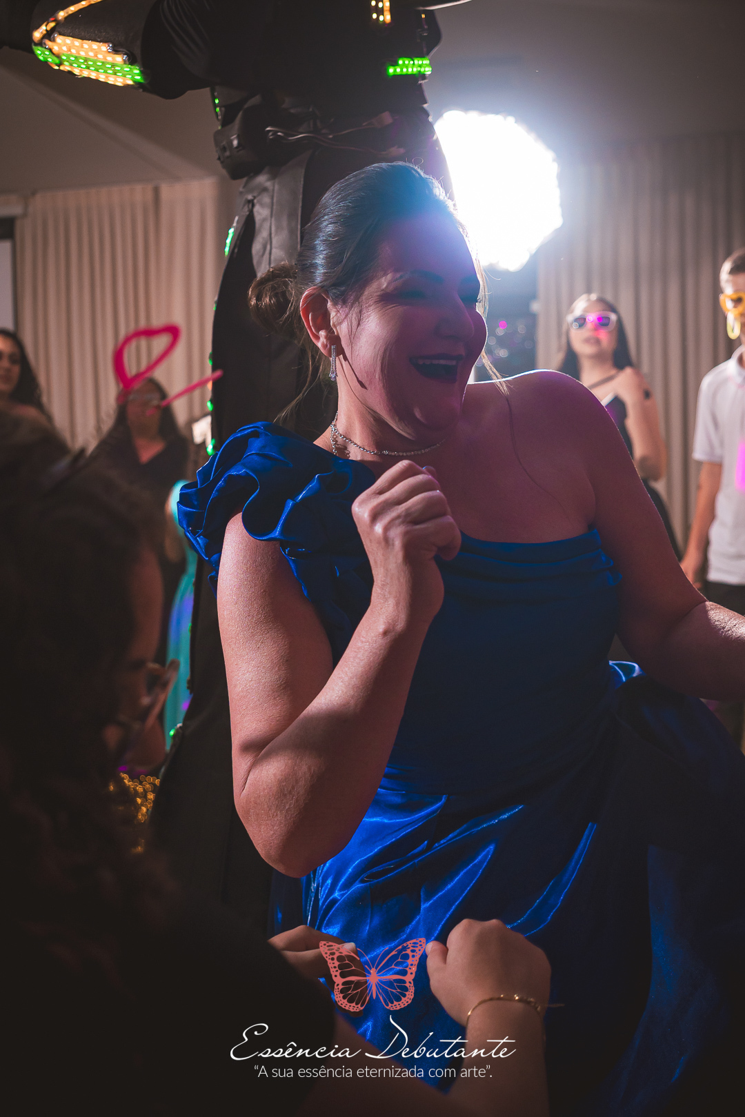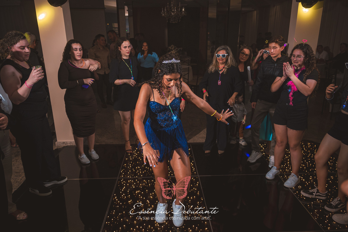 Vestida de azul royal e cercada de amor, Maria celebrou seus 15 anos em grande estilo.