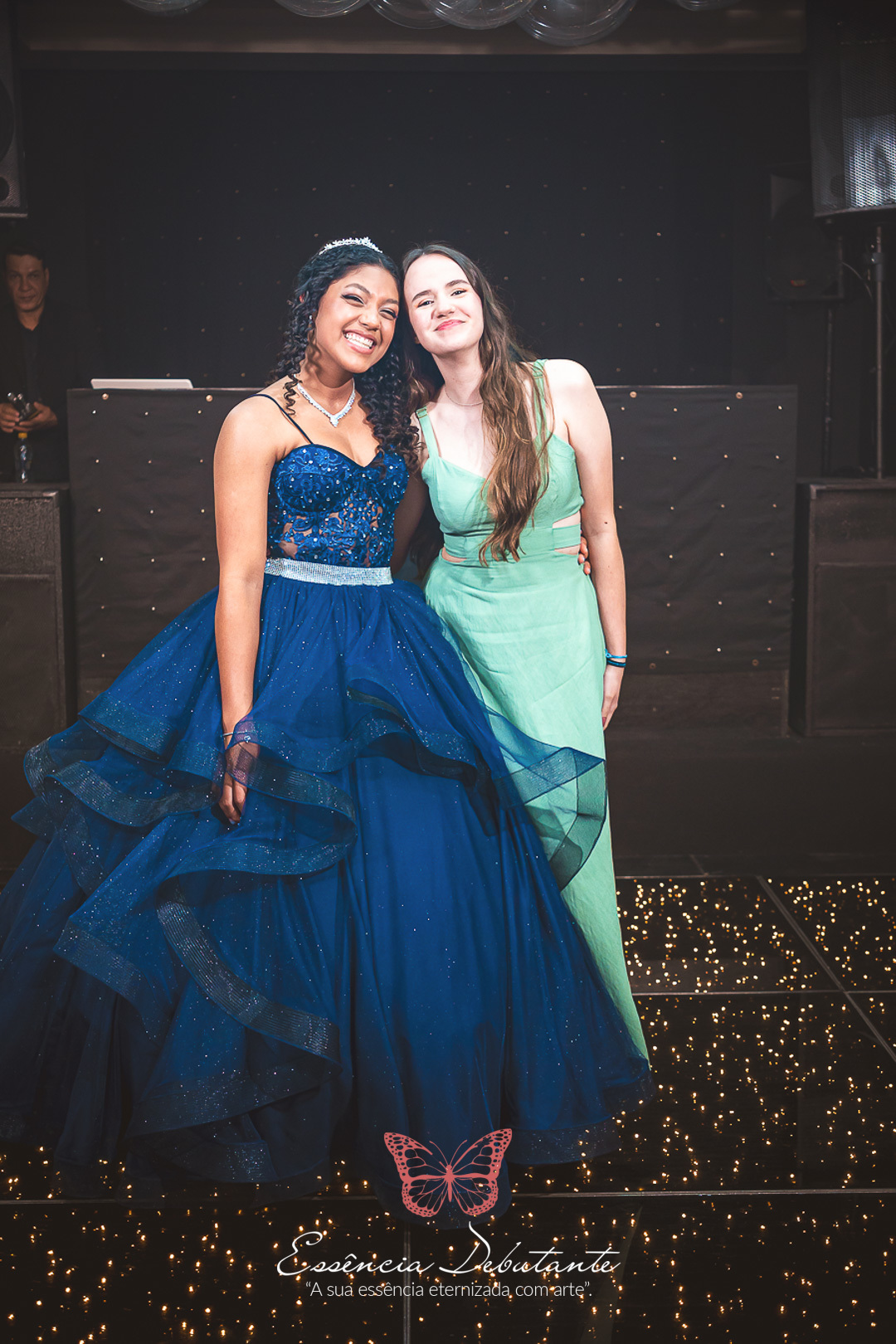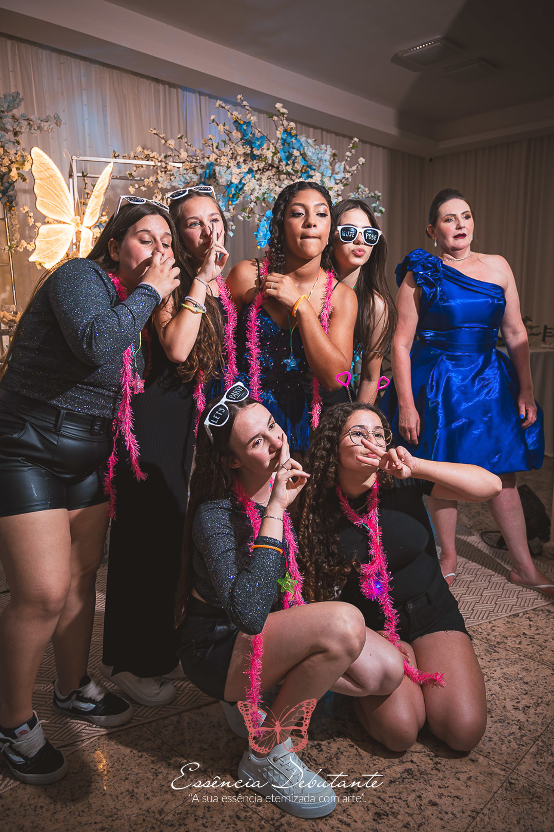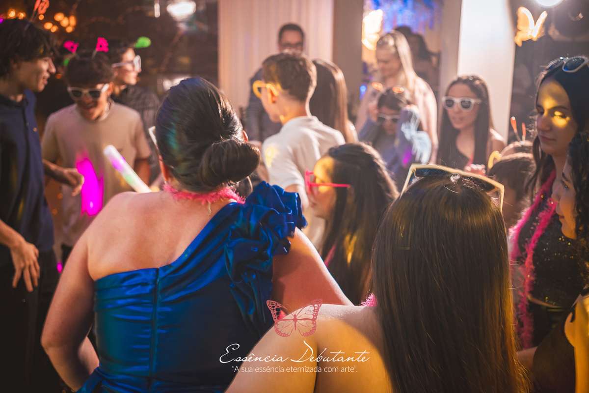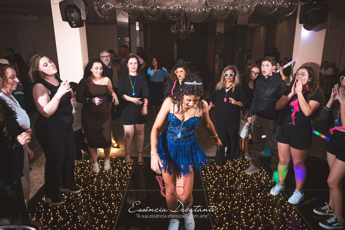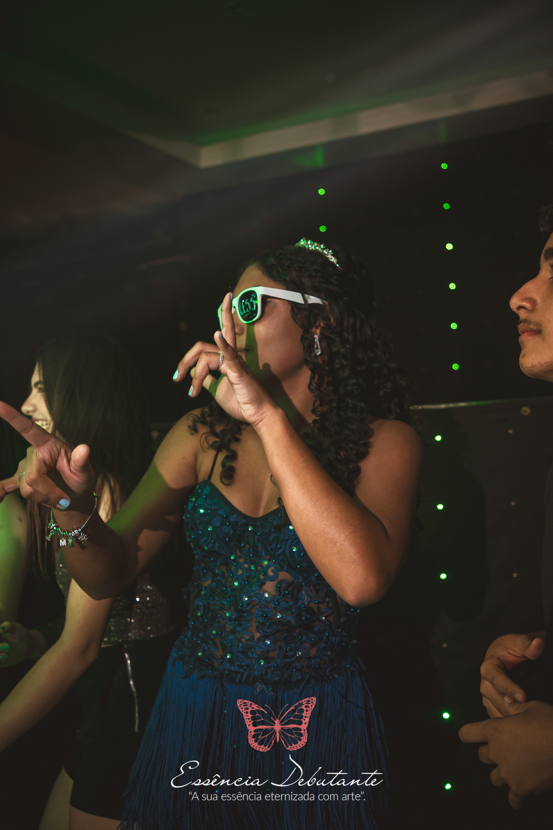 Vestida de azul royal e cercada de amor, Maria celebrou seus 15 anos em grande estilo.