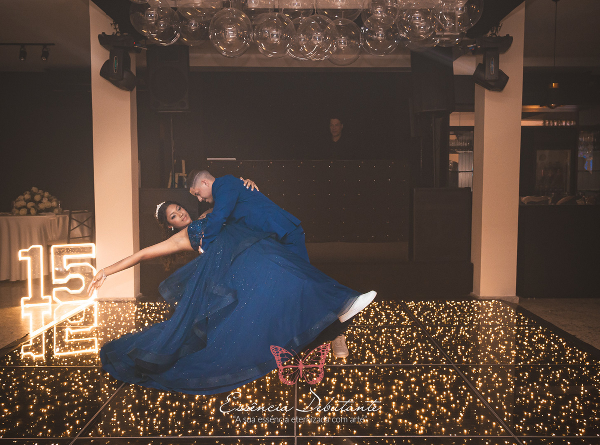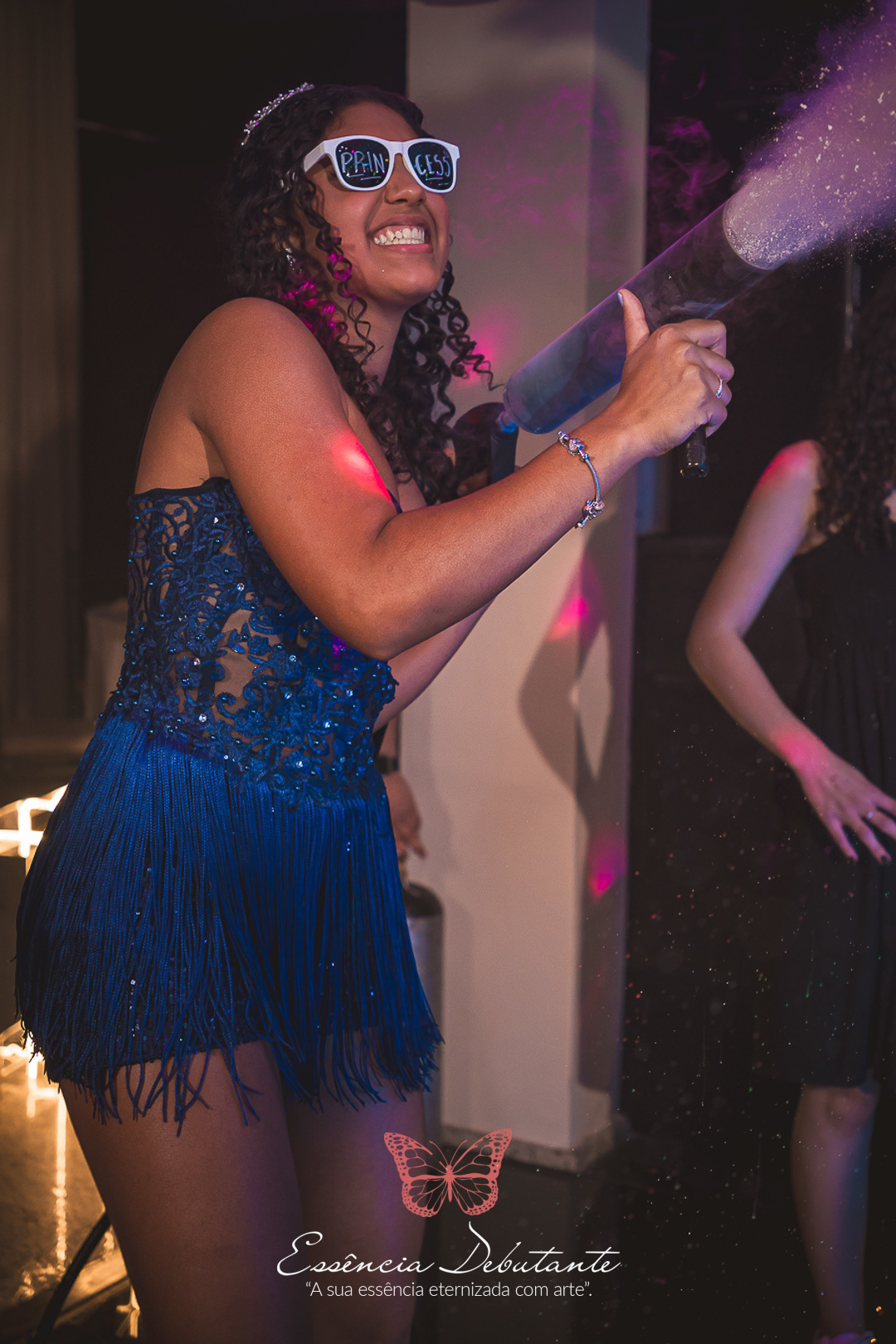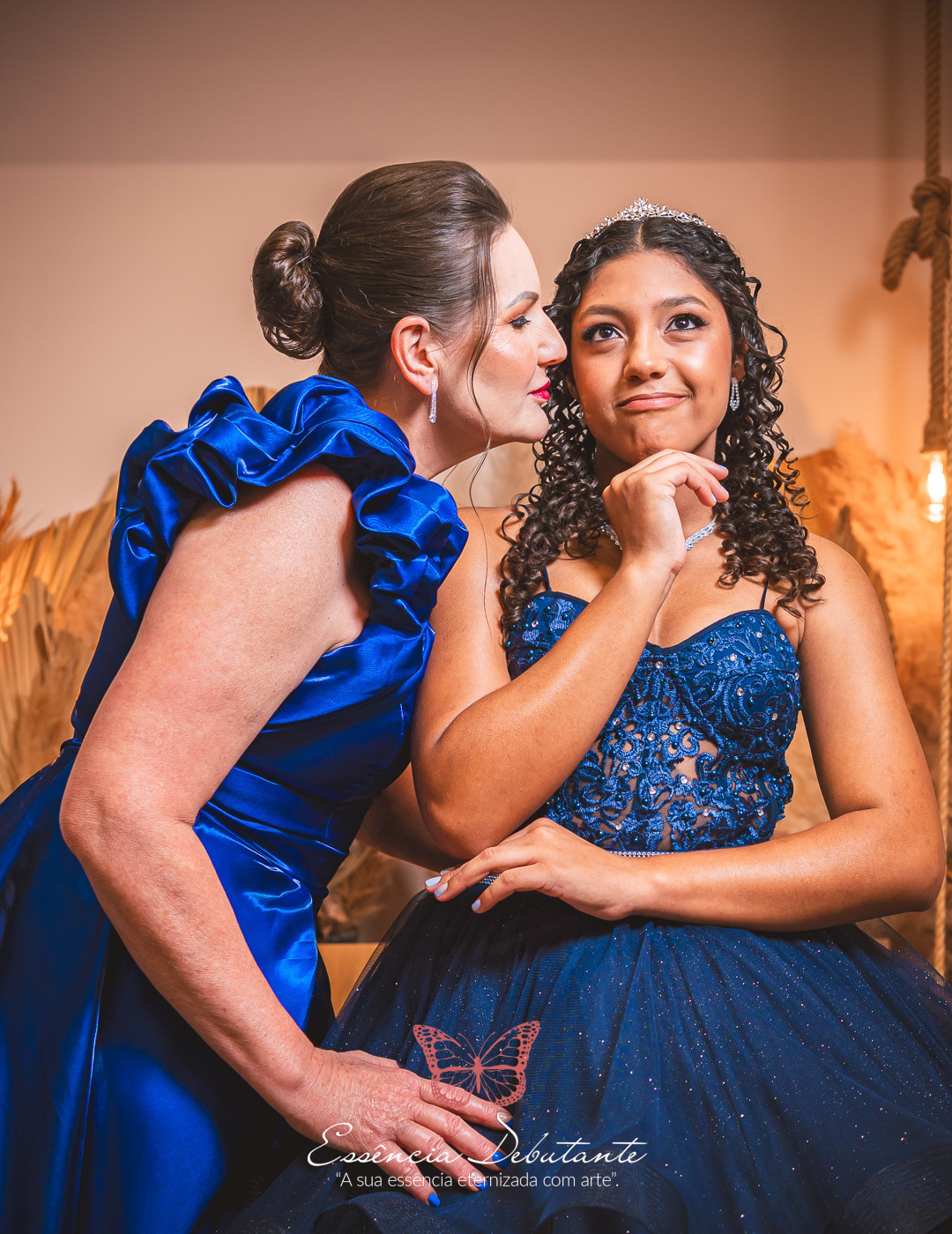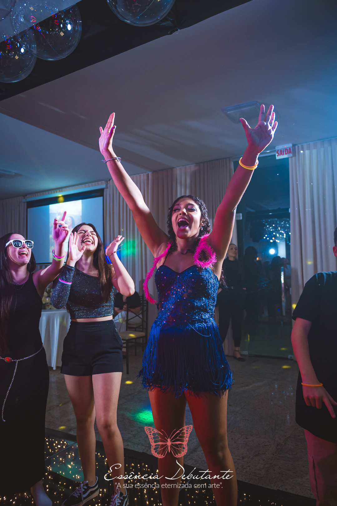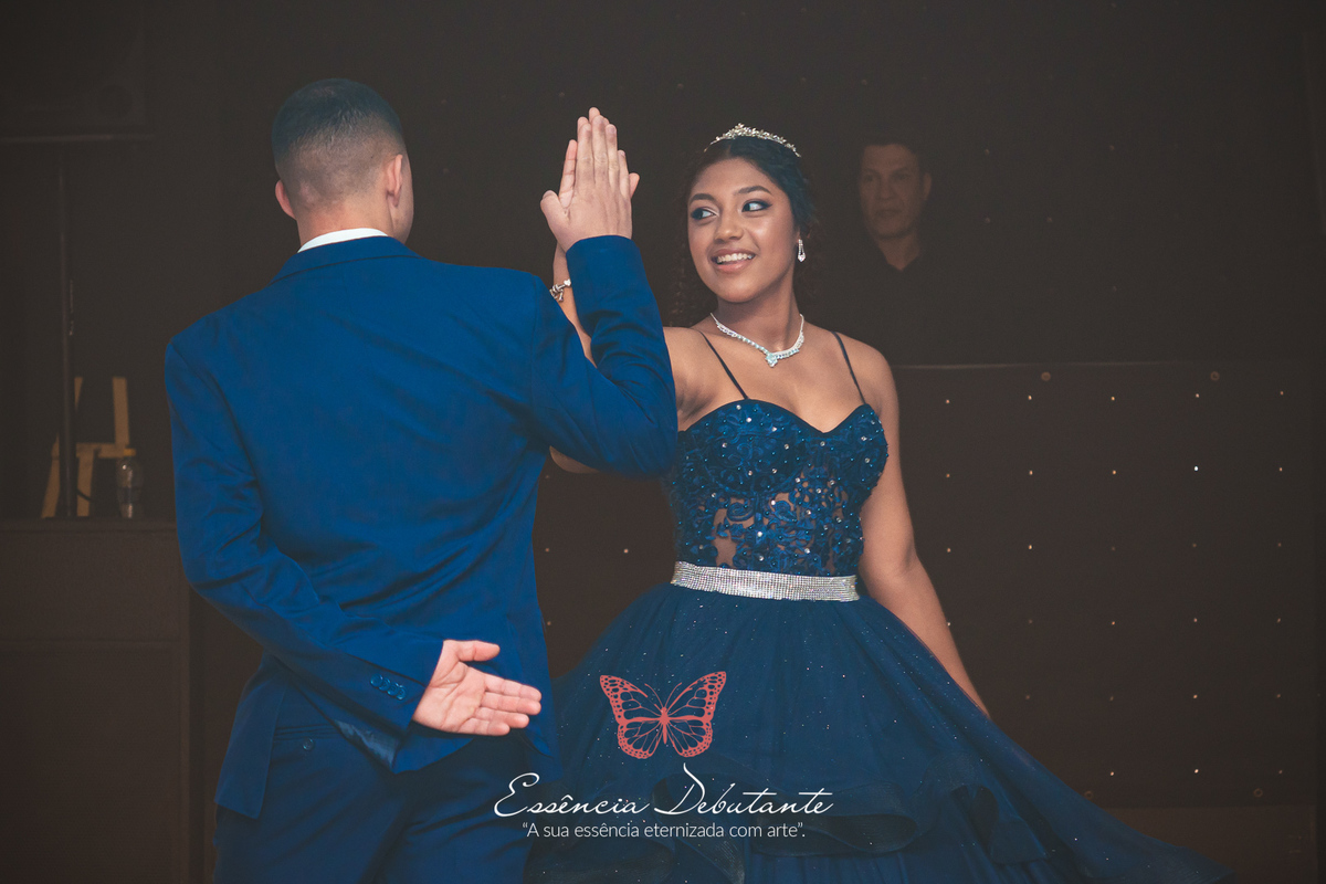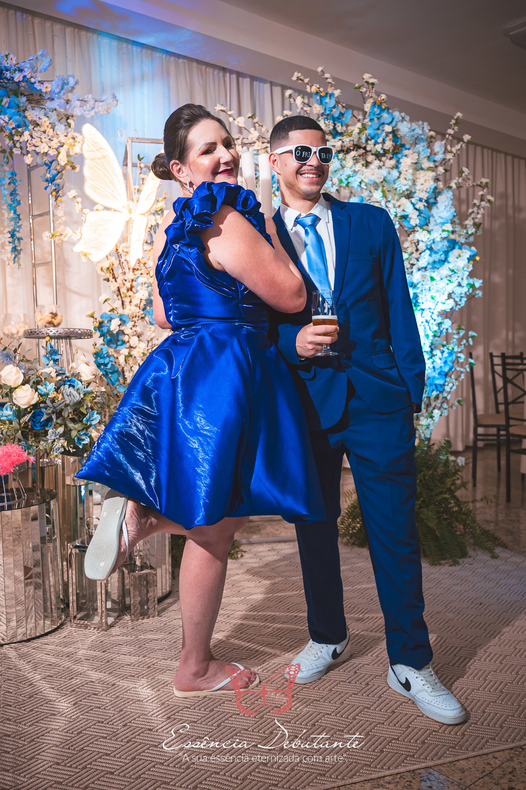 Vestida de azul royal e cercada de amor, Maria celebrou seus 15 anos em grande estilo.