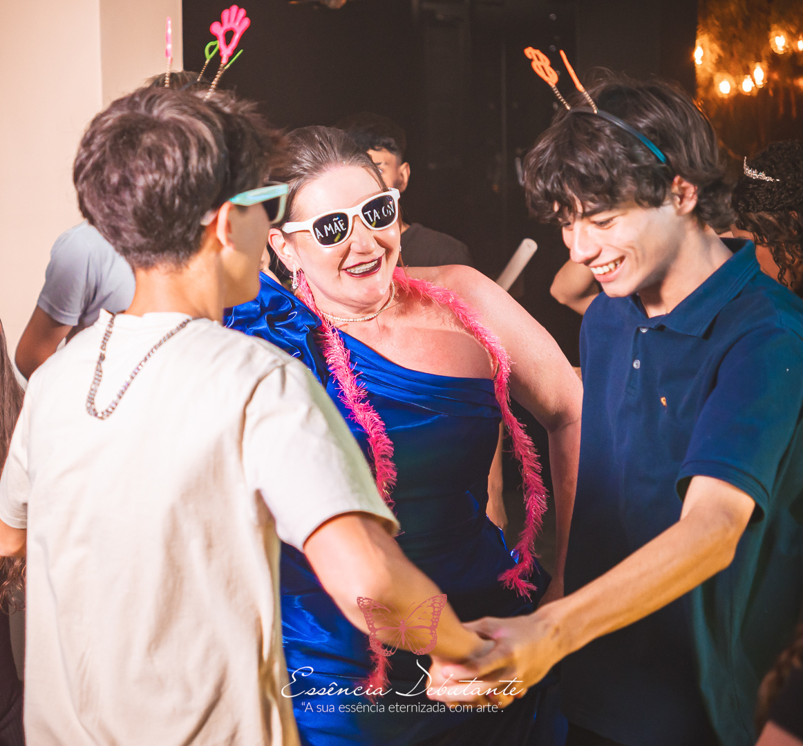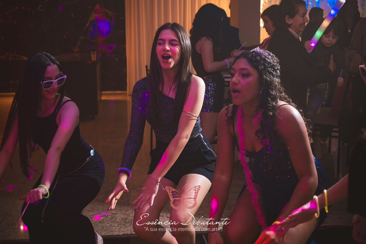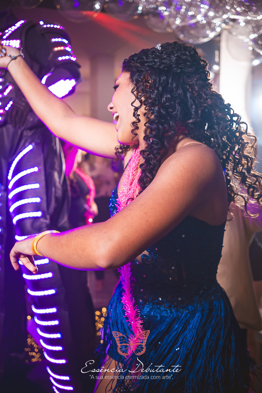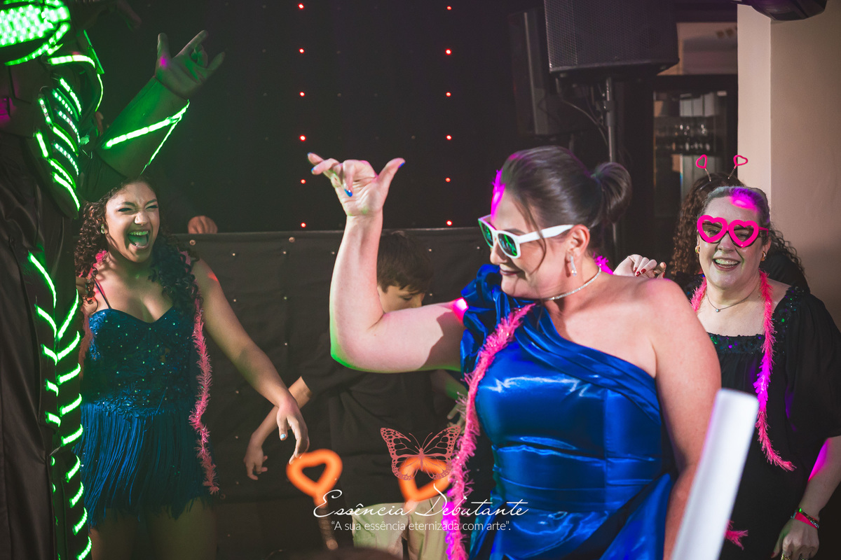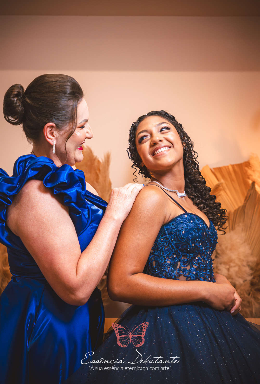 Vestida de azul royal e cercada de amor, Maria celebrou seus 15 anos em grande estilo.