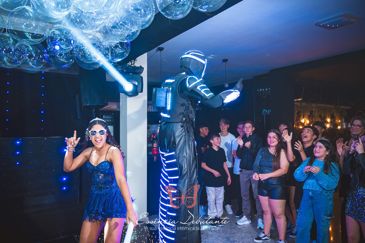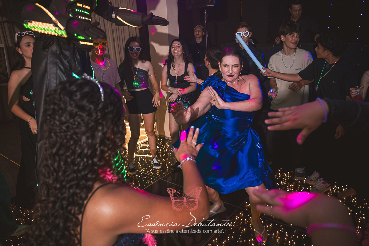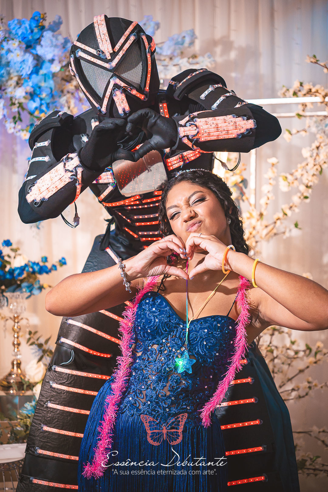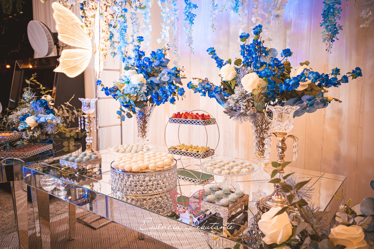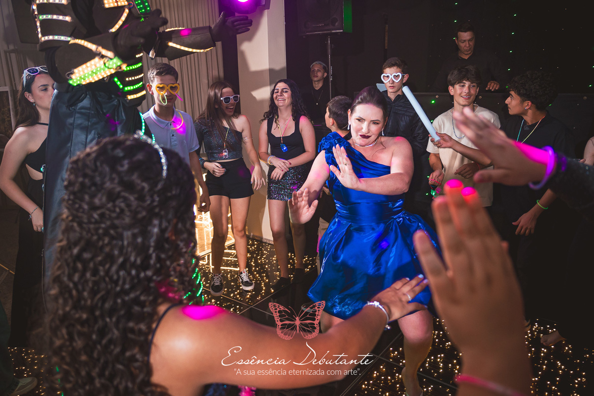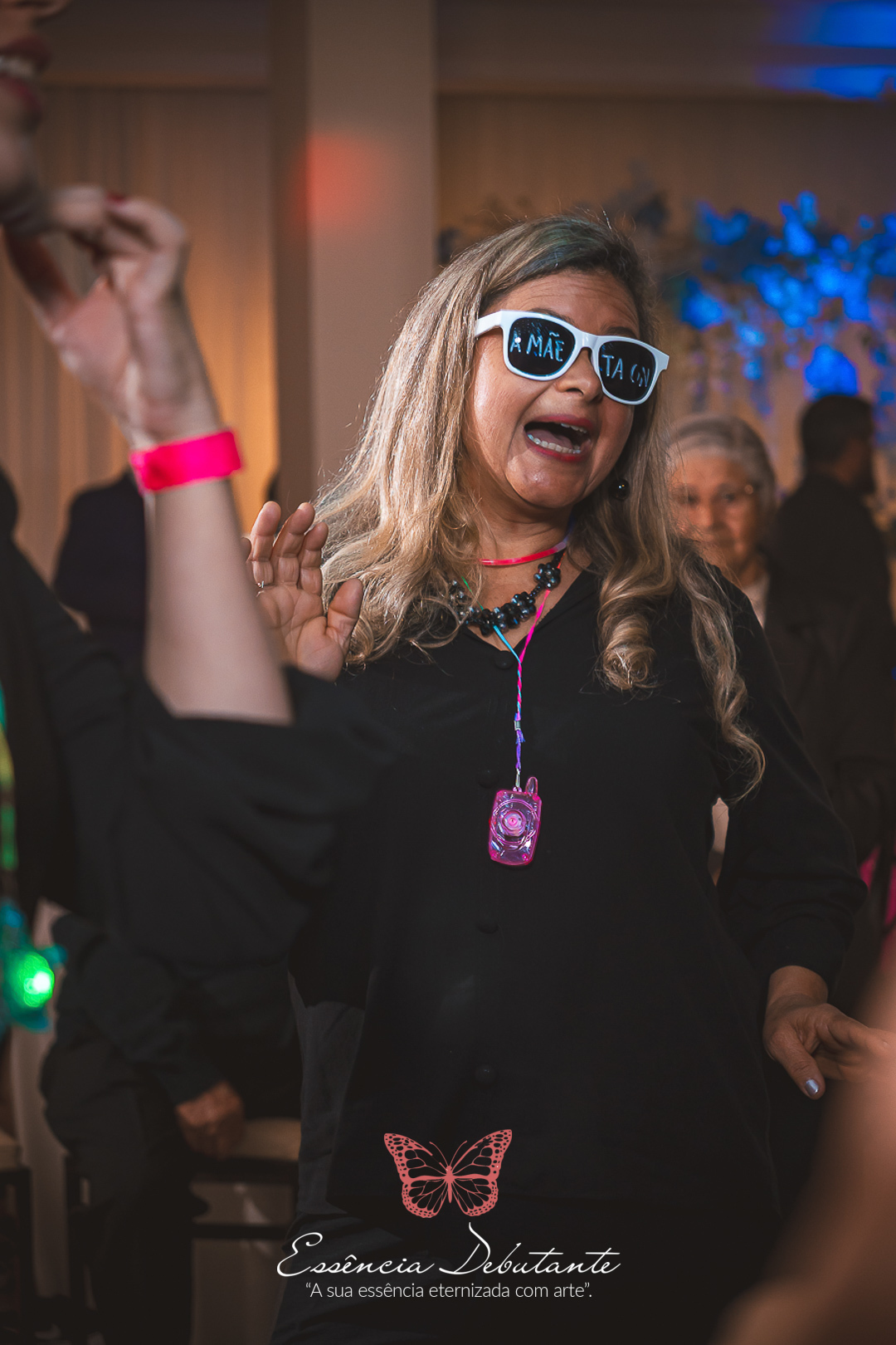 Vestida de azul royal e cercada de amor, Maria celebrou seus 15 anos em grande estilo.