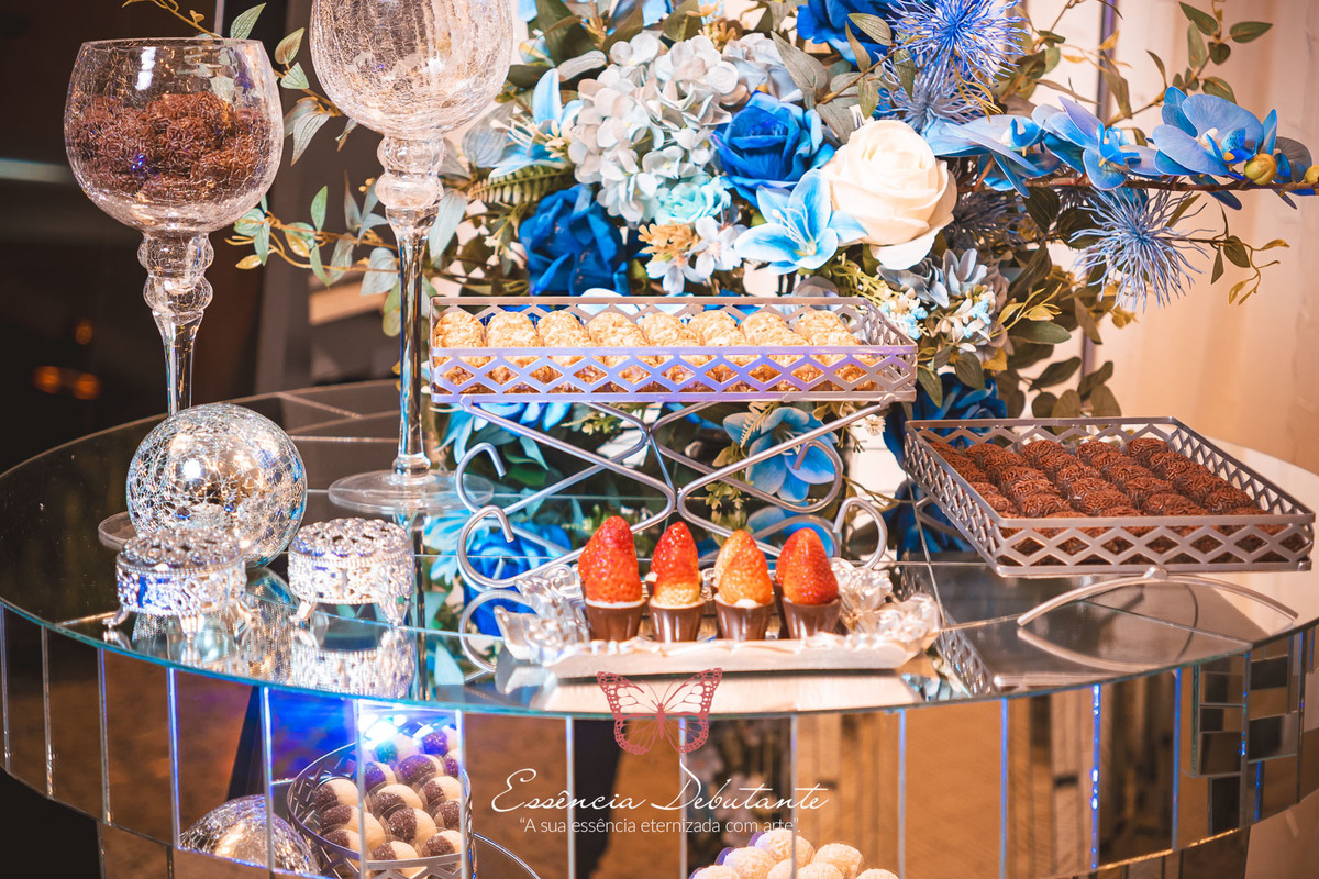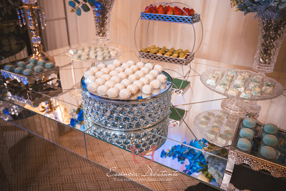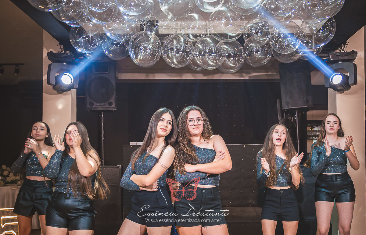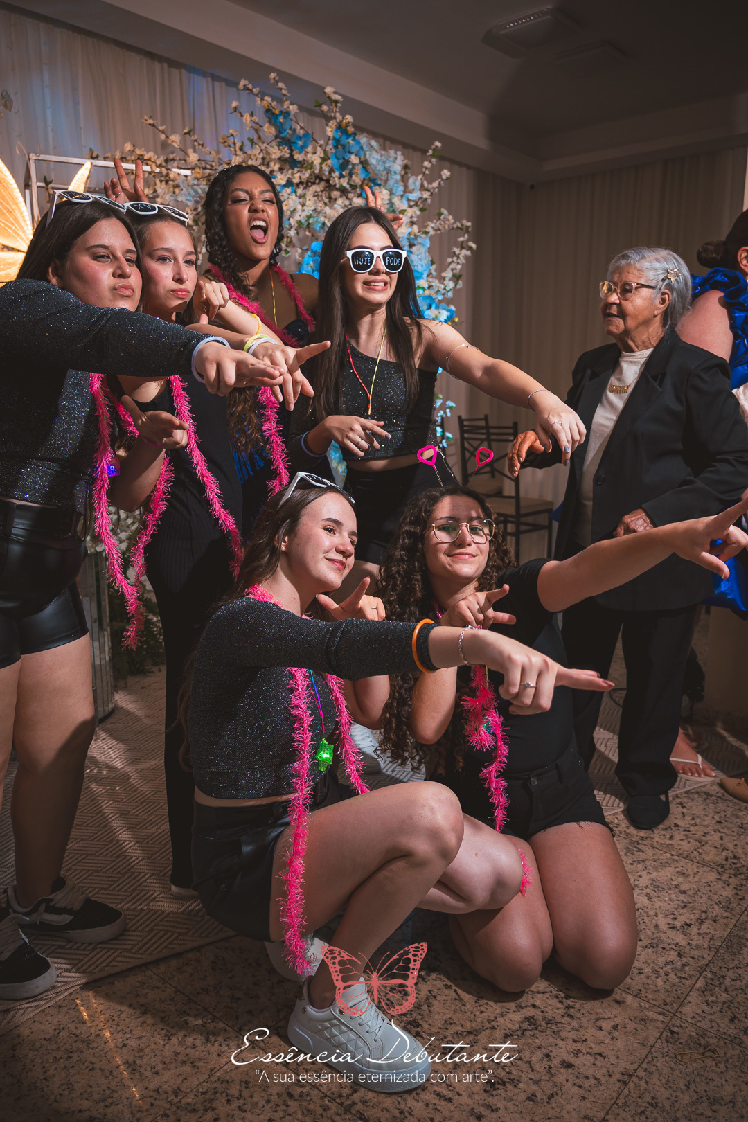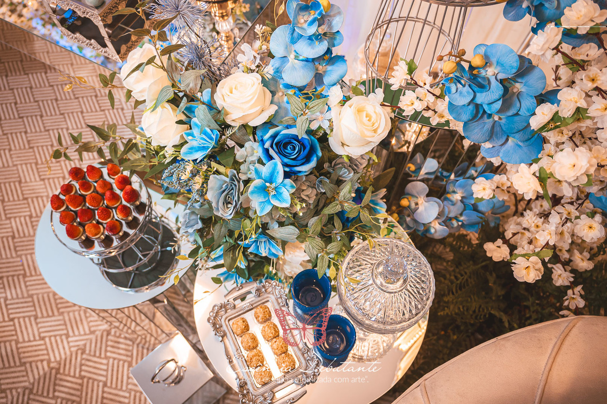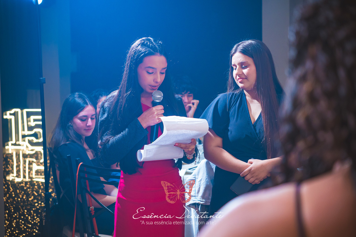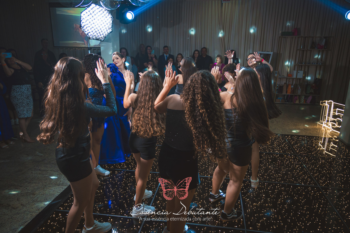 Vestida de azul royal e cercada de amor, Maria celebrou seus 15 anos em grande estilo.