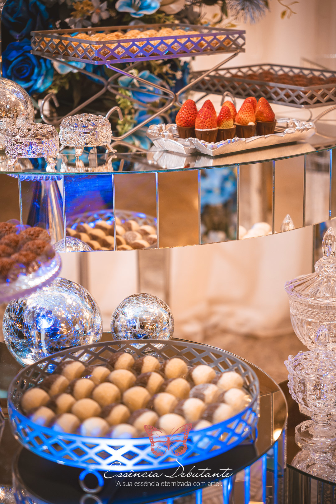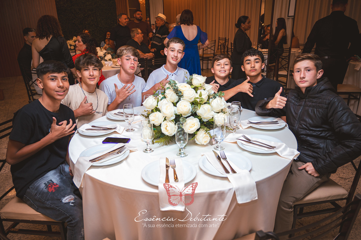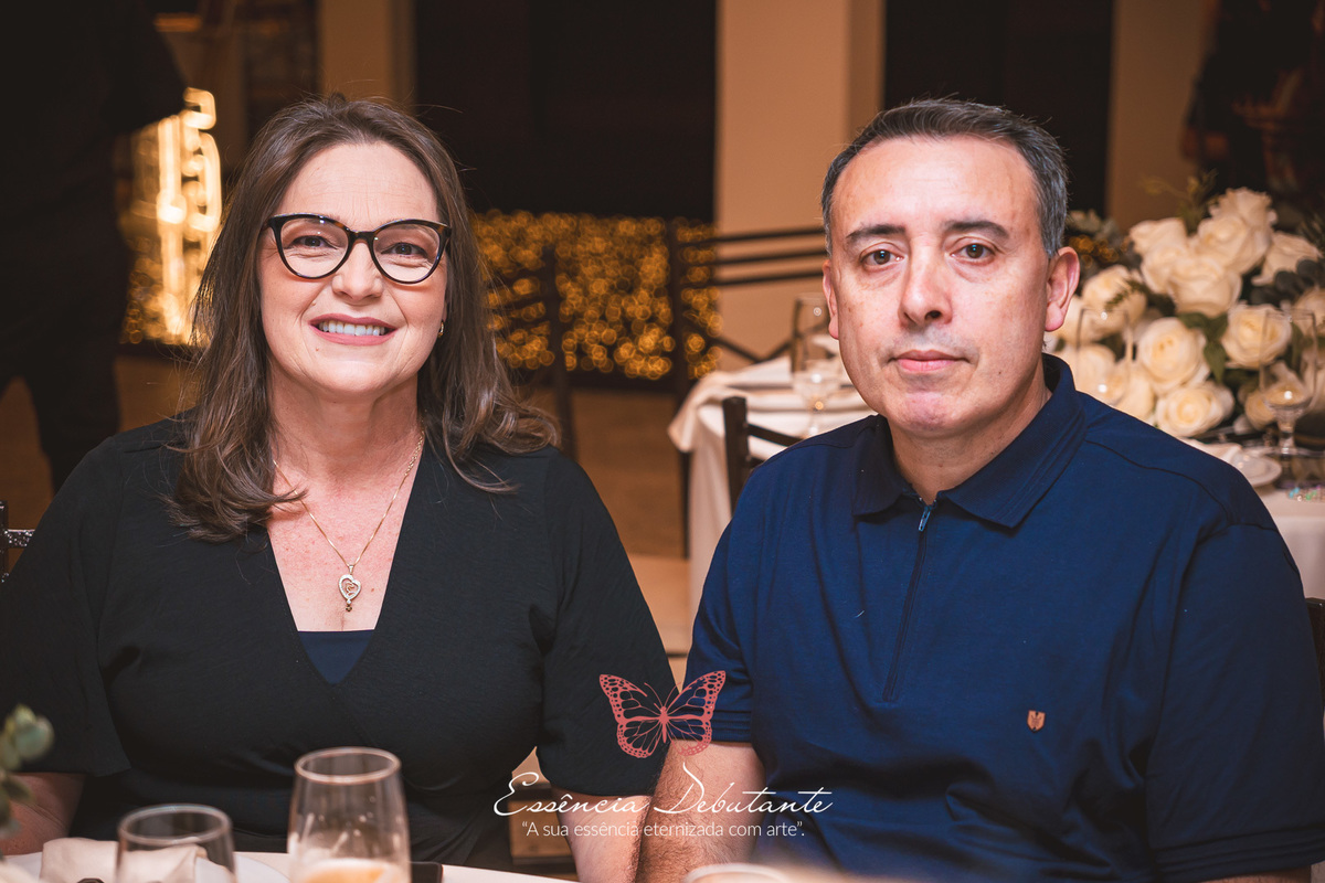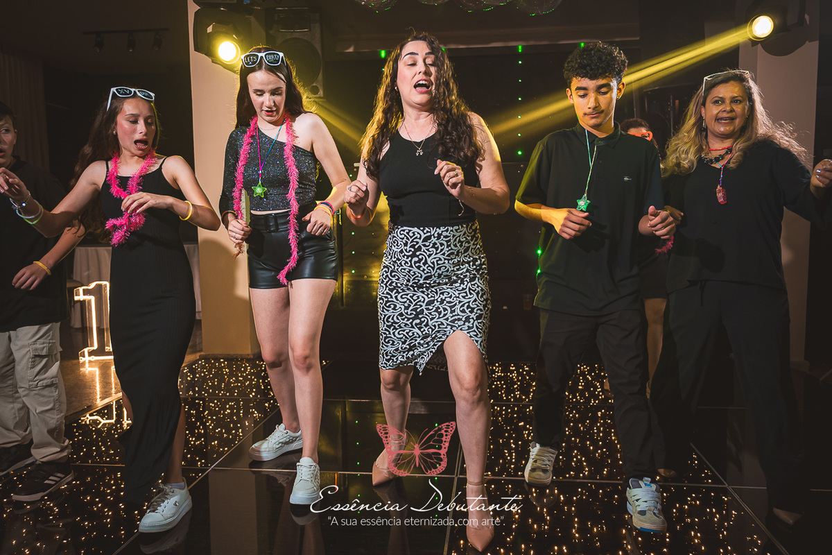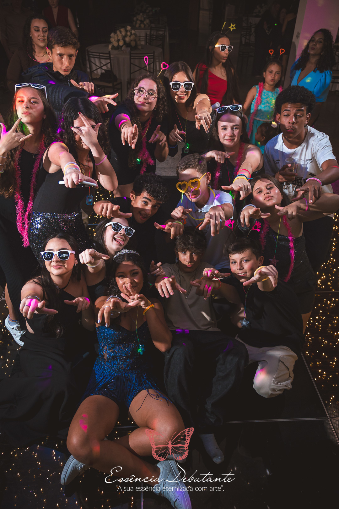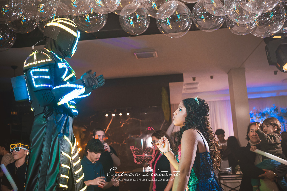Vestida de azul royal e cercada de amor, Maria celebrou seus 15 anos em grande estilo.