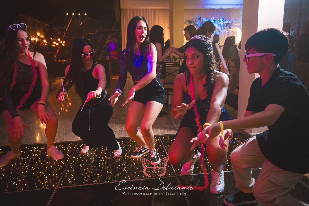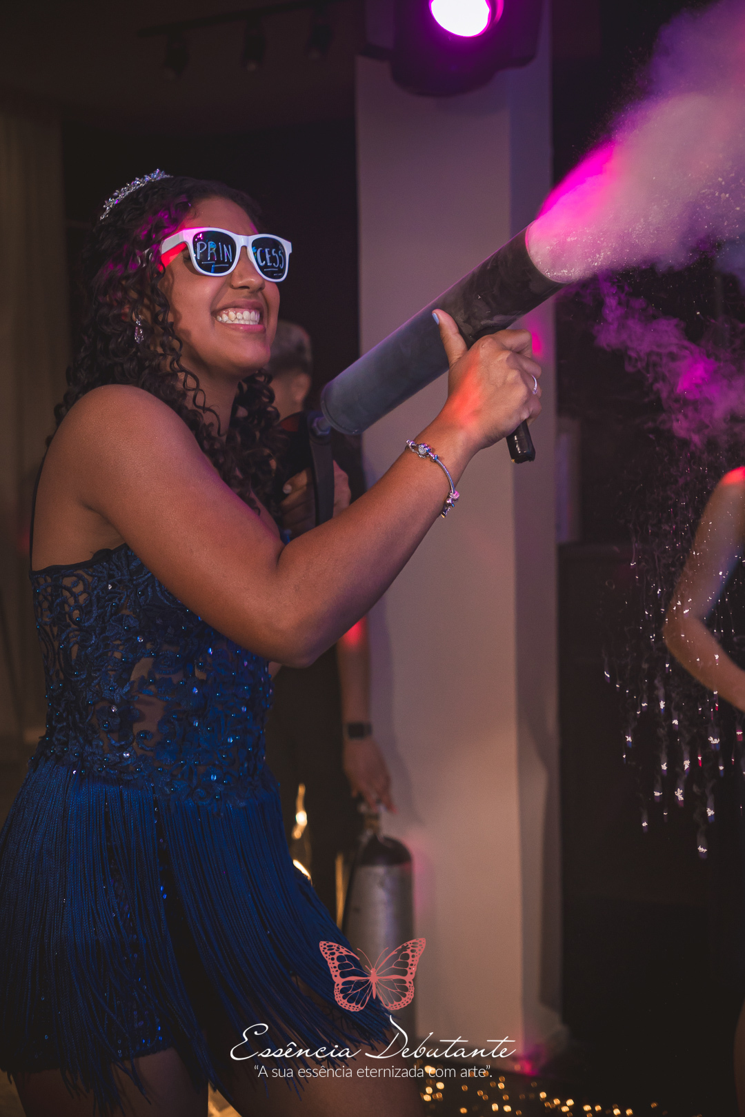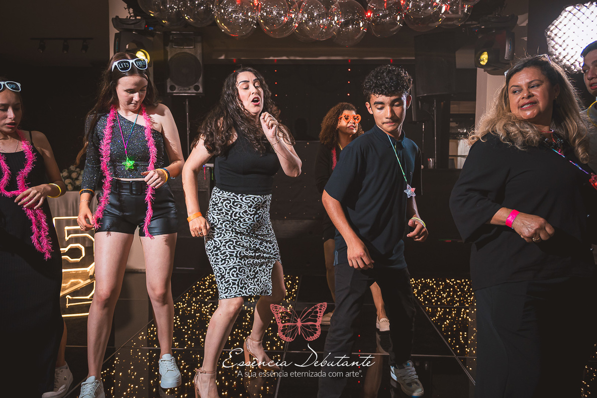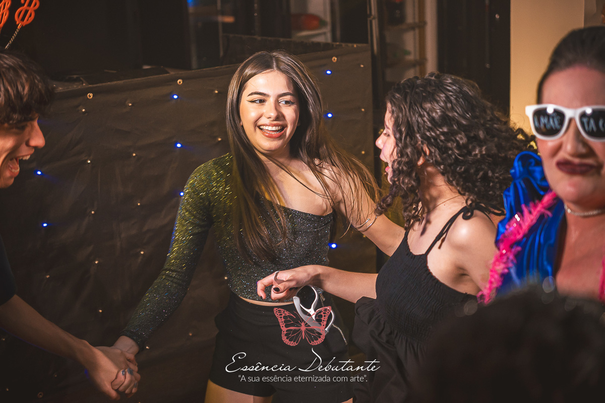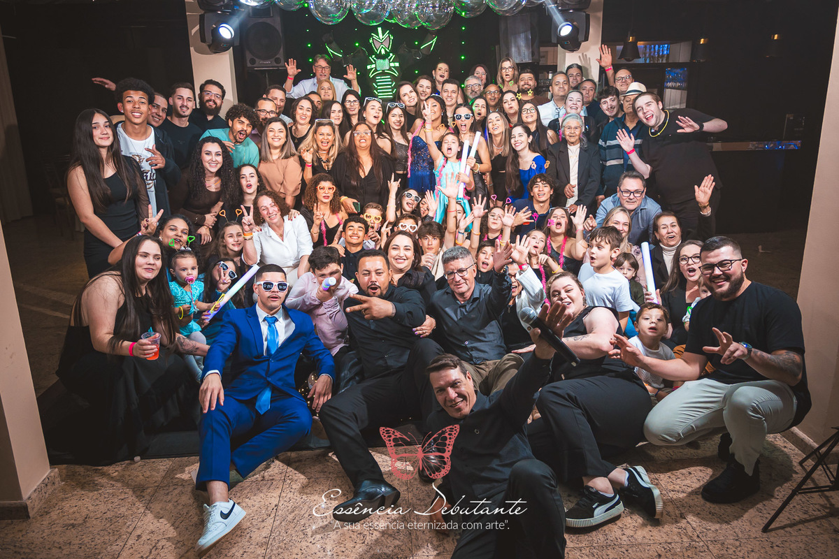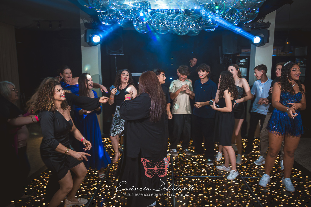 Vestida de azul royal e cercada de amor, Maria celebrou seus 15 anos em grande estilo.