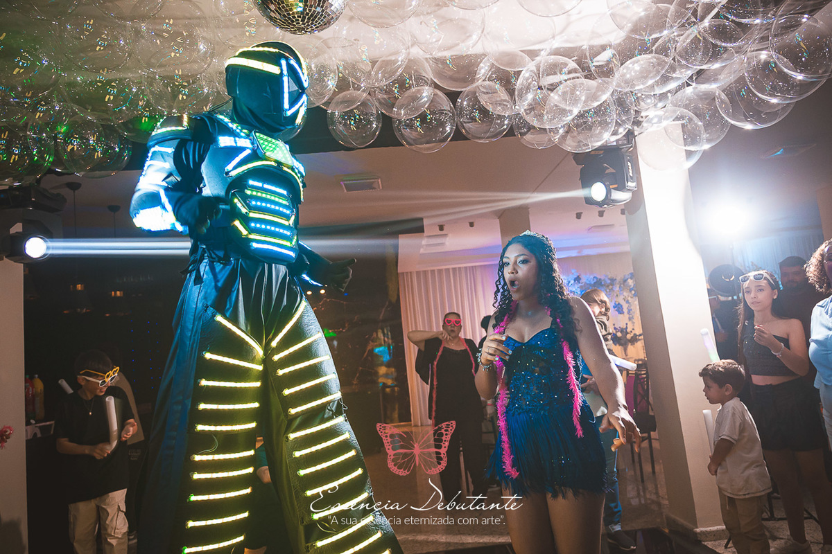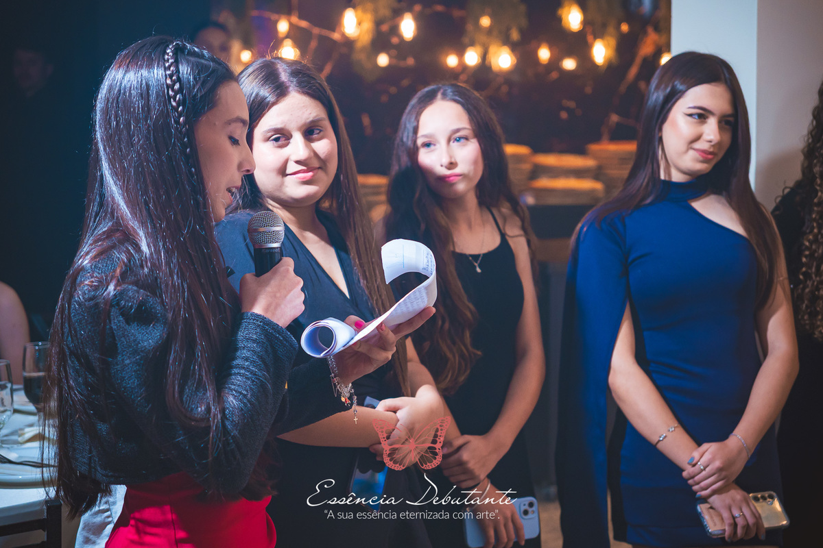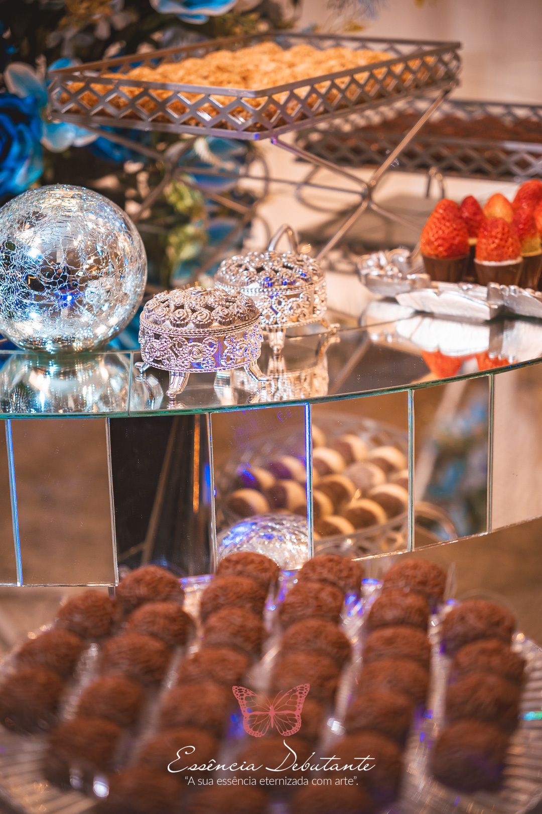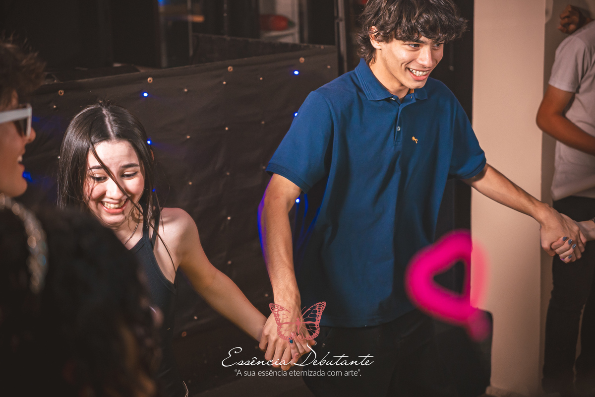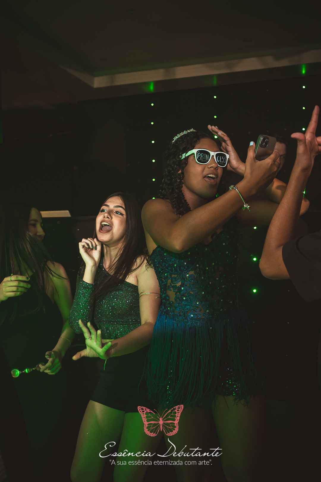 Vestida de azul royal e cercada de amor, Maria celebrou seus 15 anos em grande estilo.