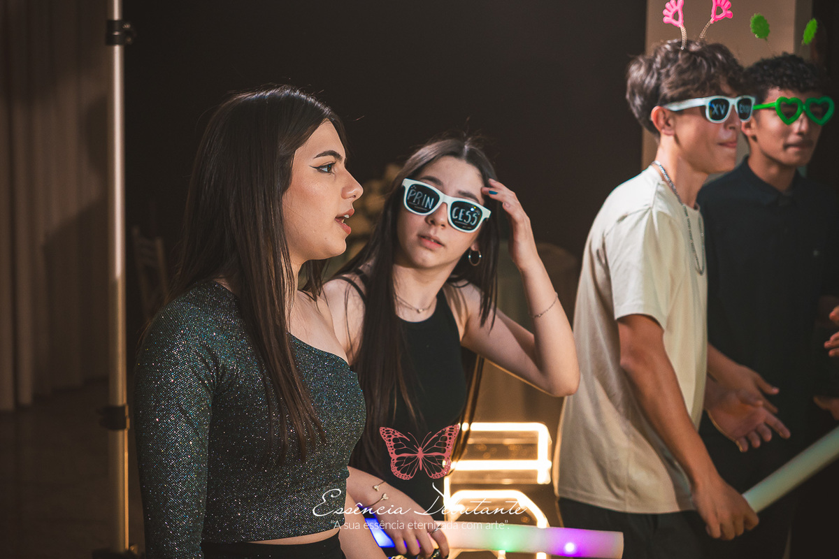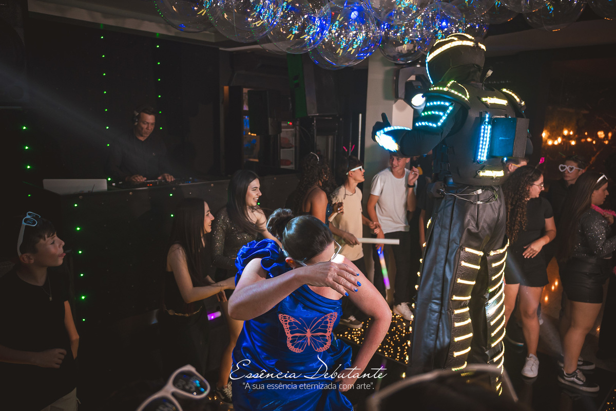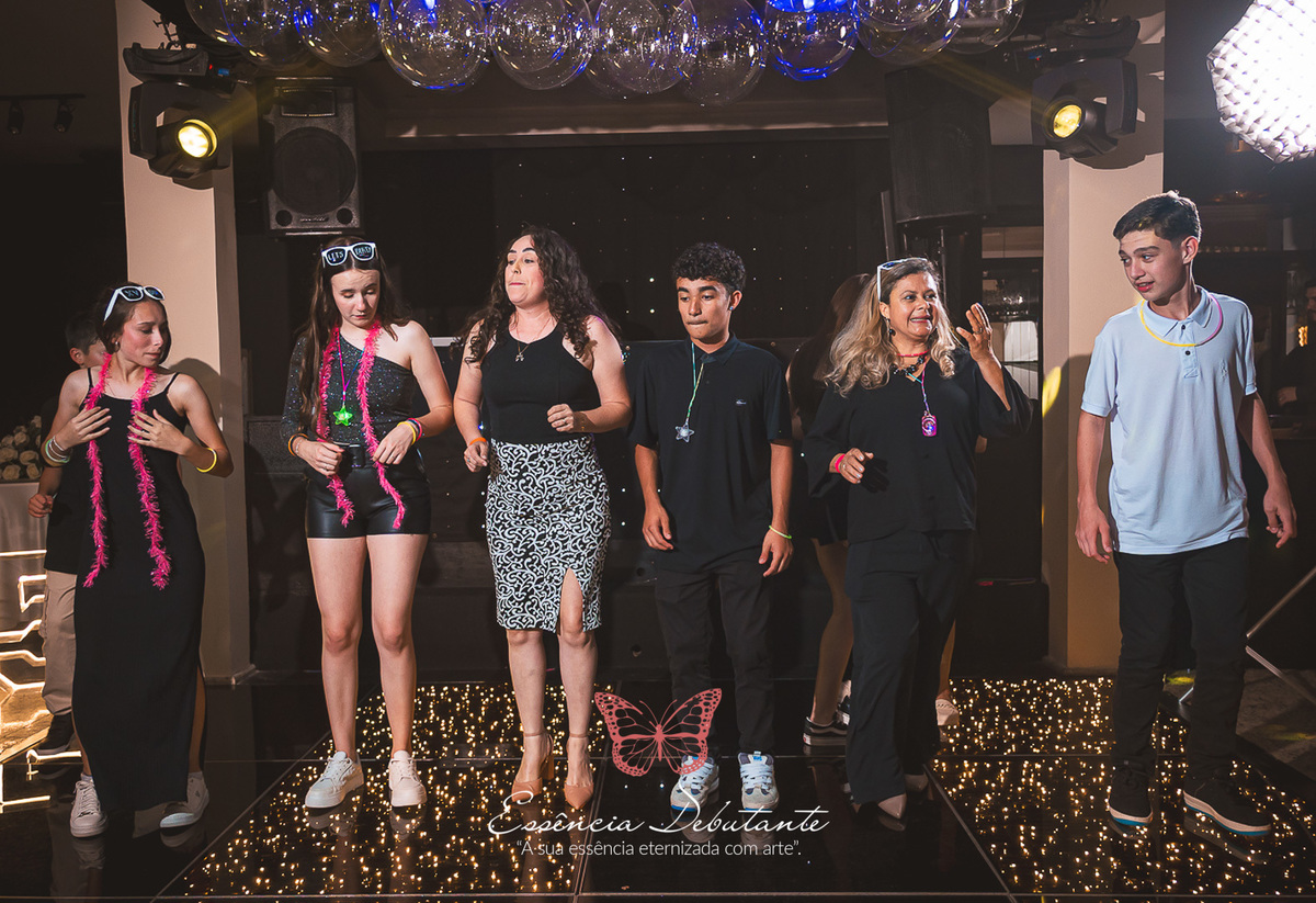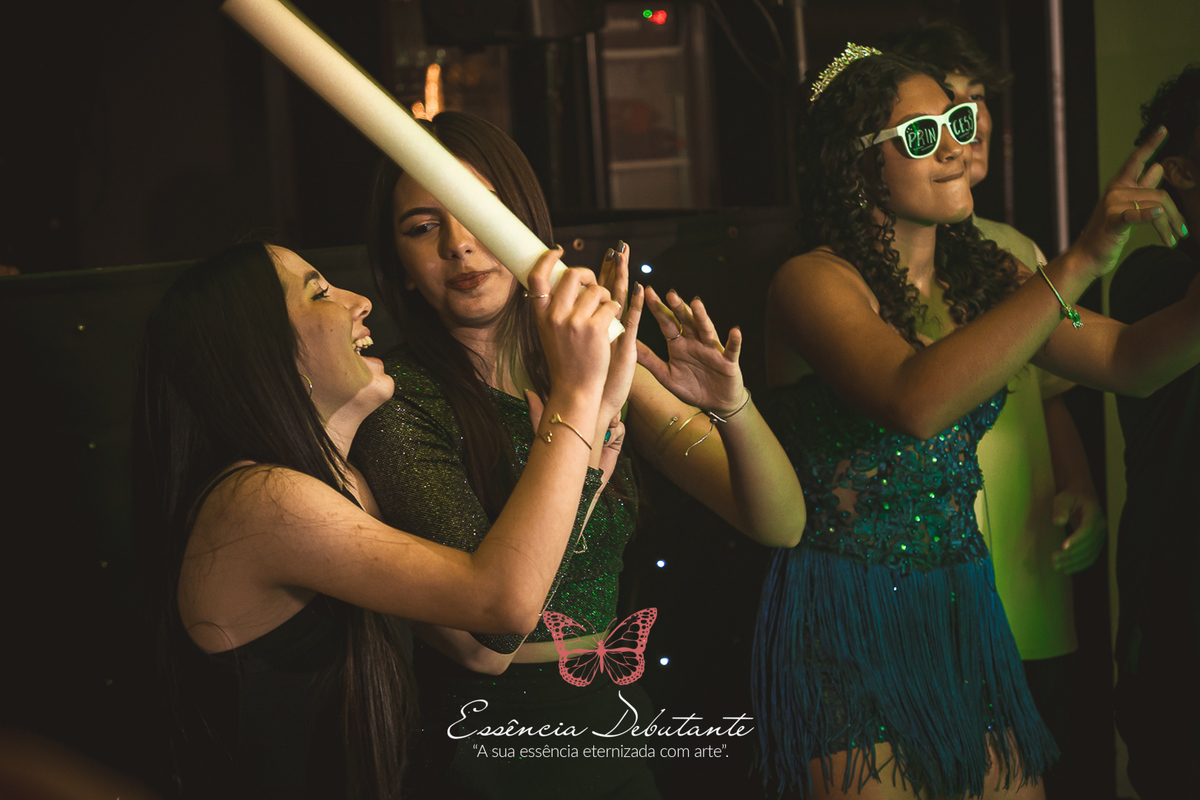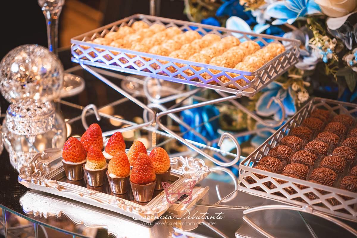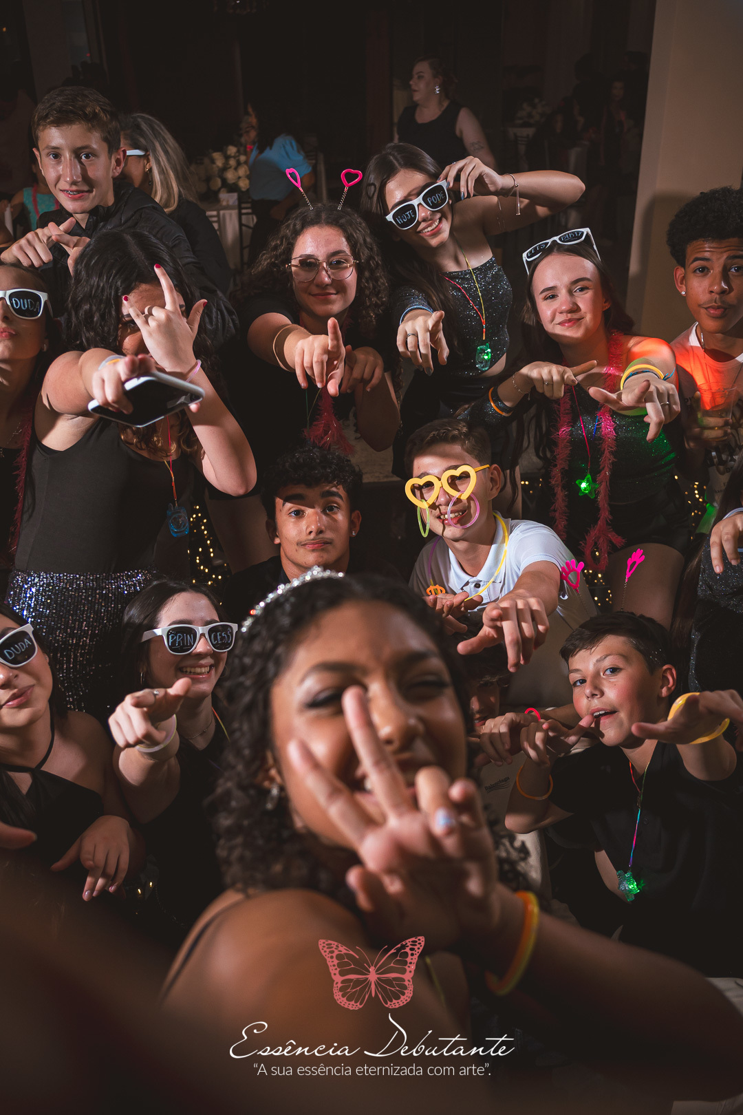 Vestida de azul royal e cercada de amor, Maria celebrou seus 15 anos em grande estilo.