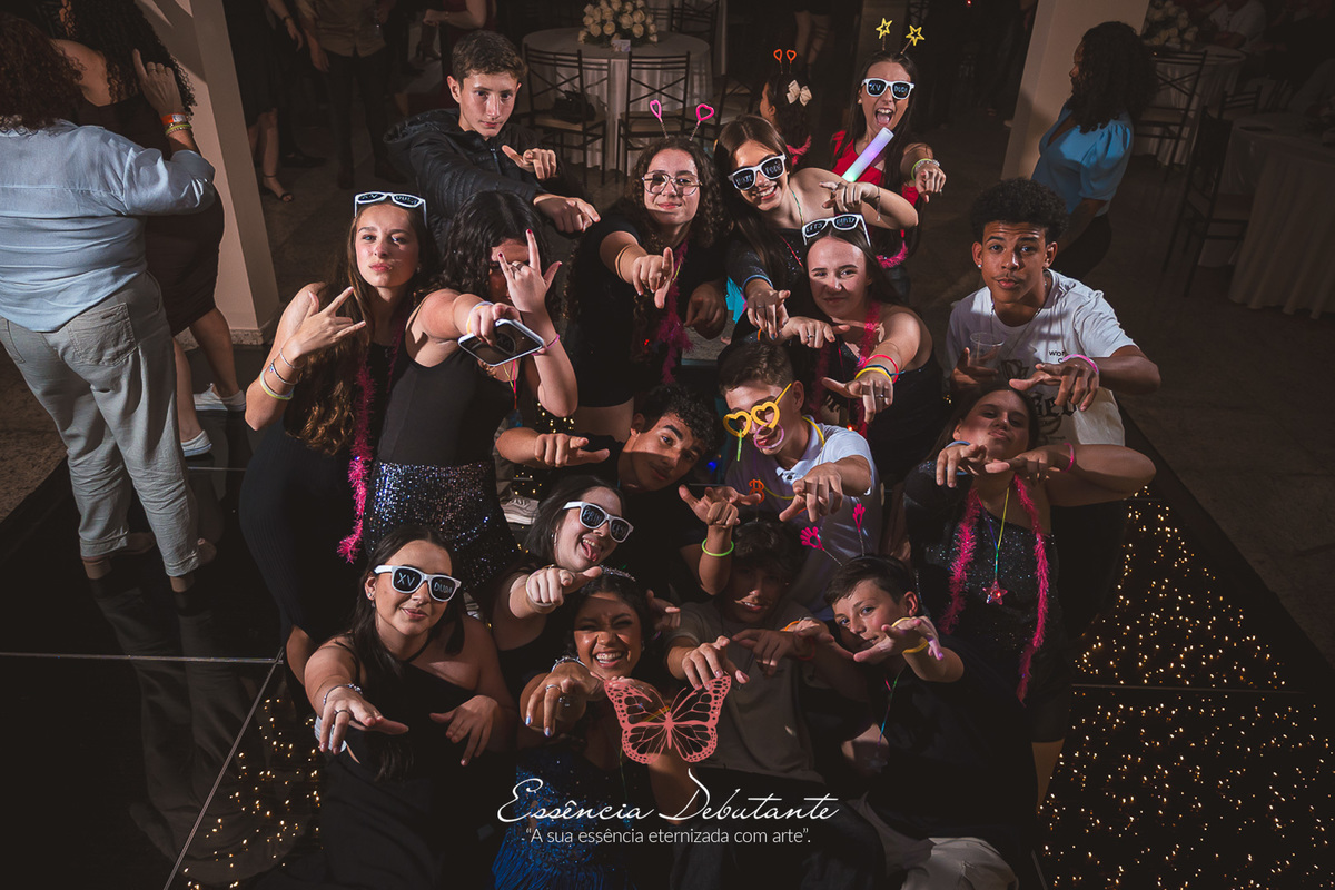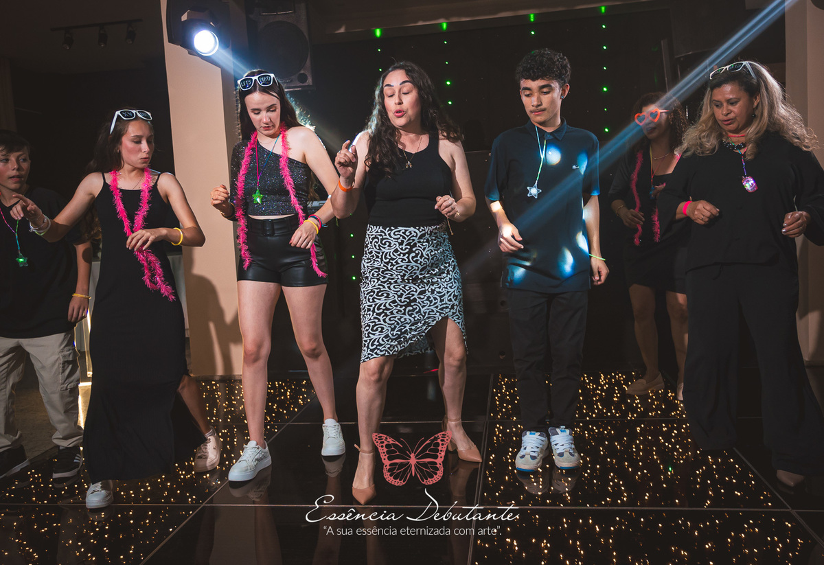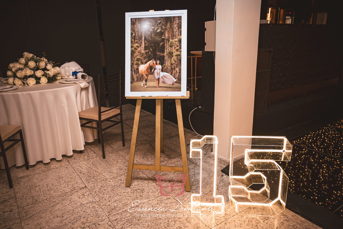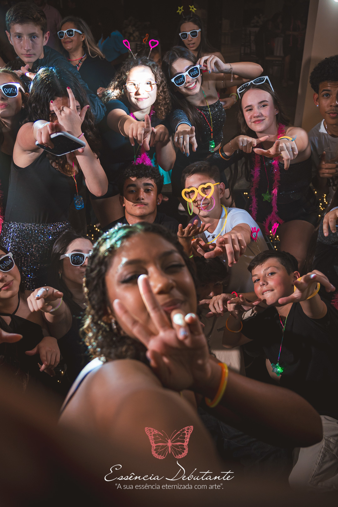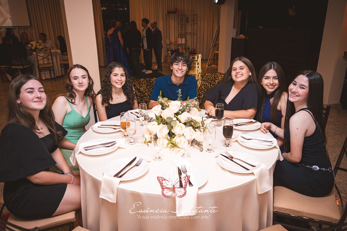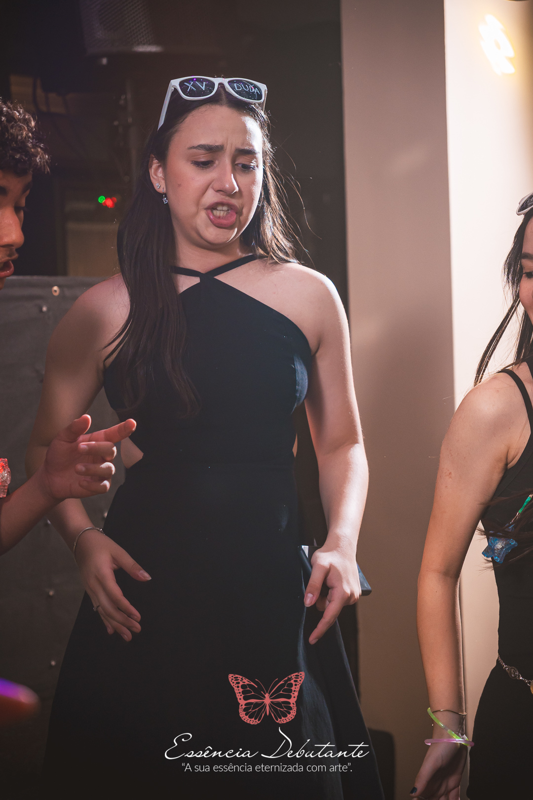 Vestida de azul royal e cercada de amor, Maria celebrou seus 15 anos em grande estilo.