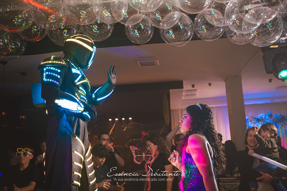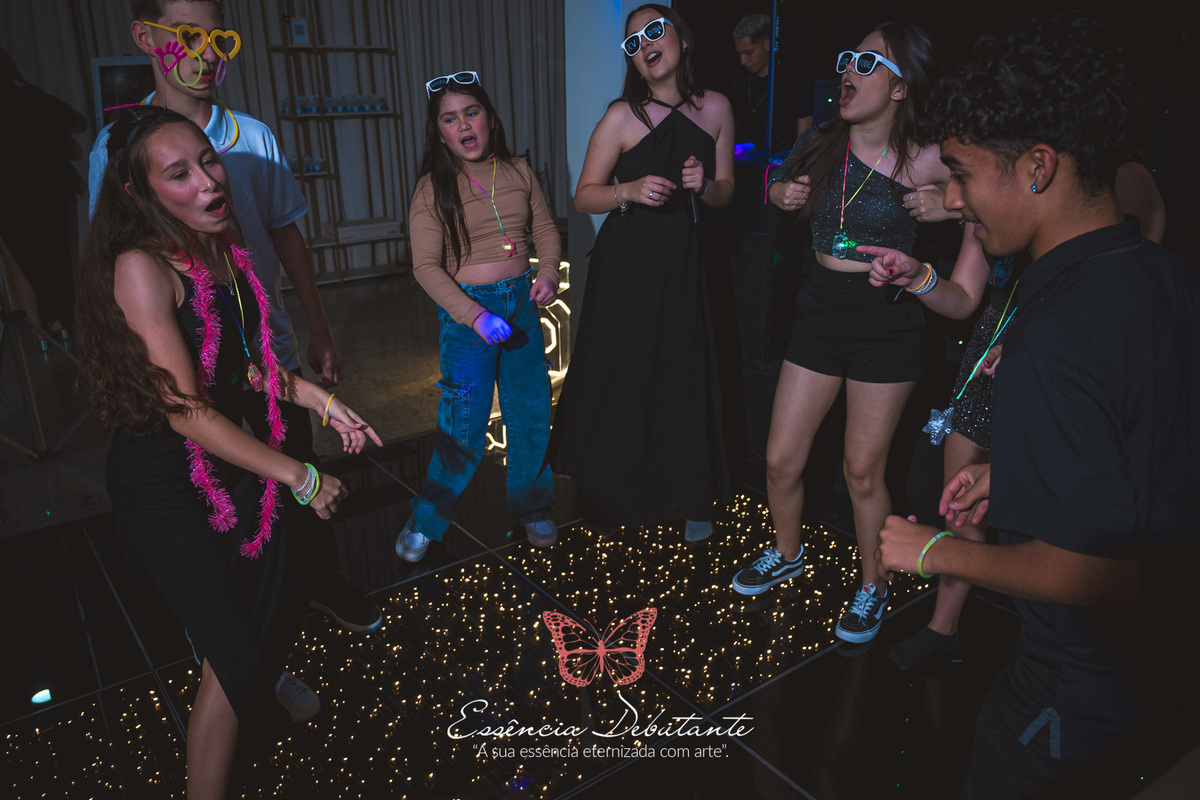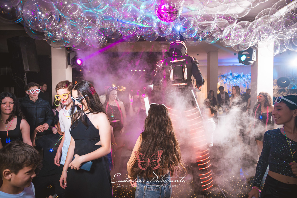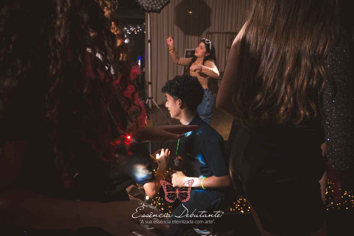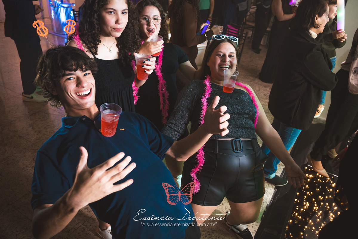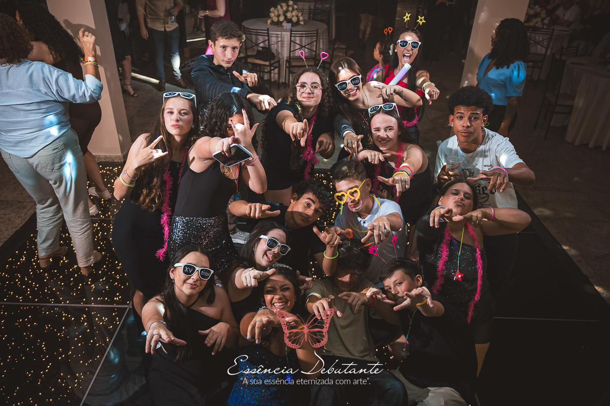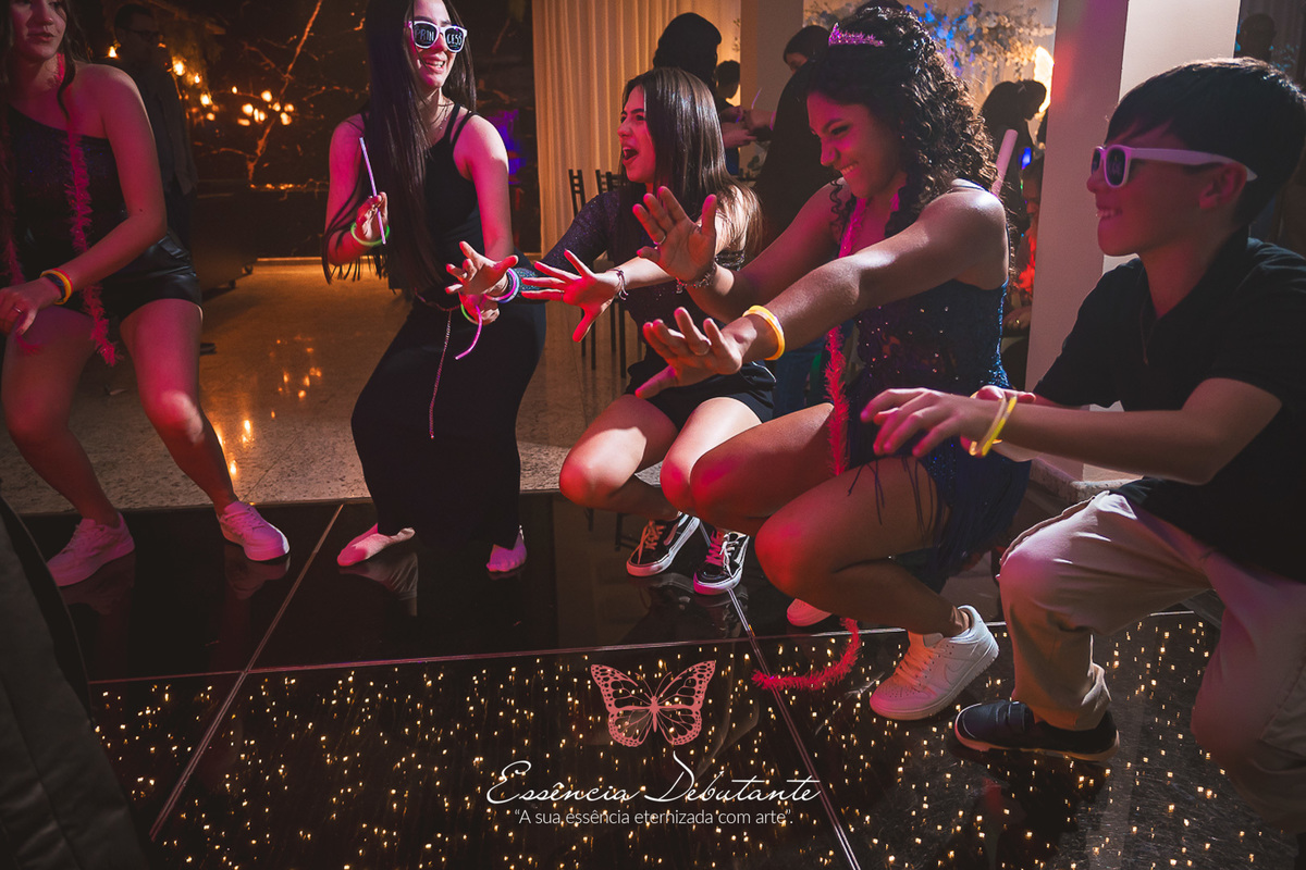 Vestida de azul royal e cercada de amor, Maria celebrou seus 15 anos em grande estilo.