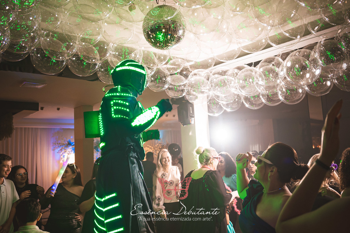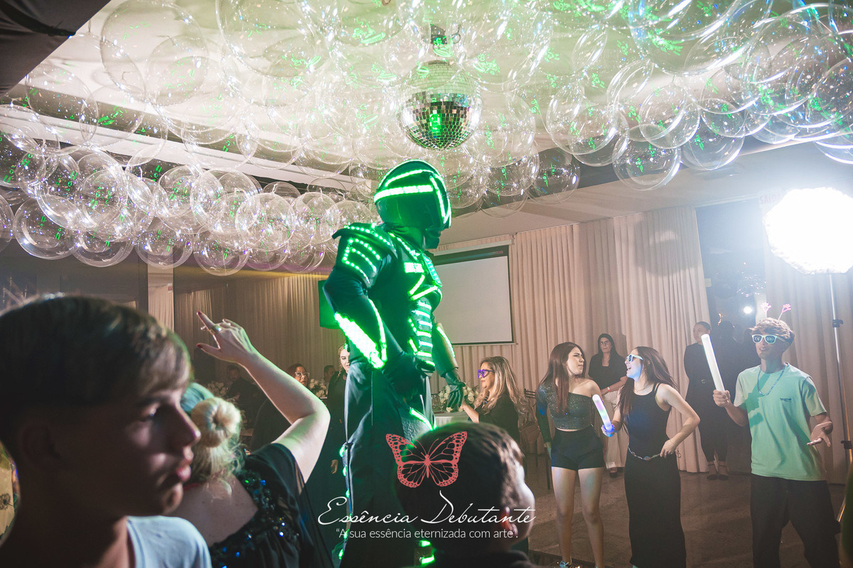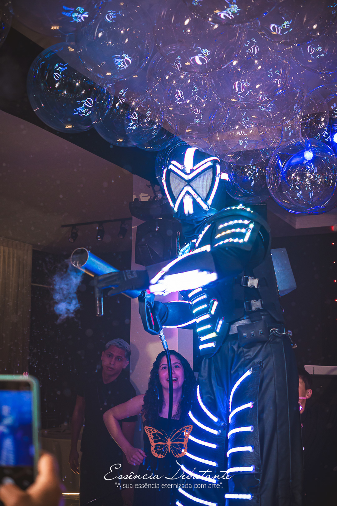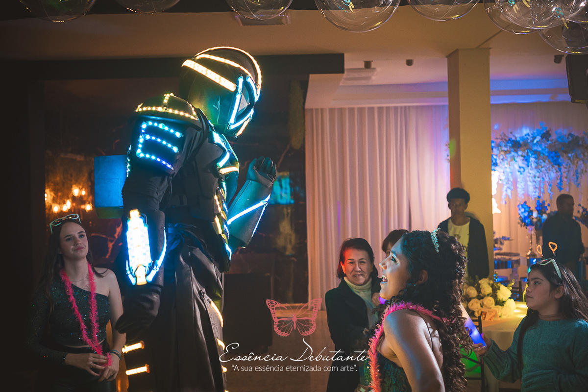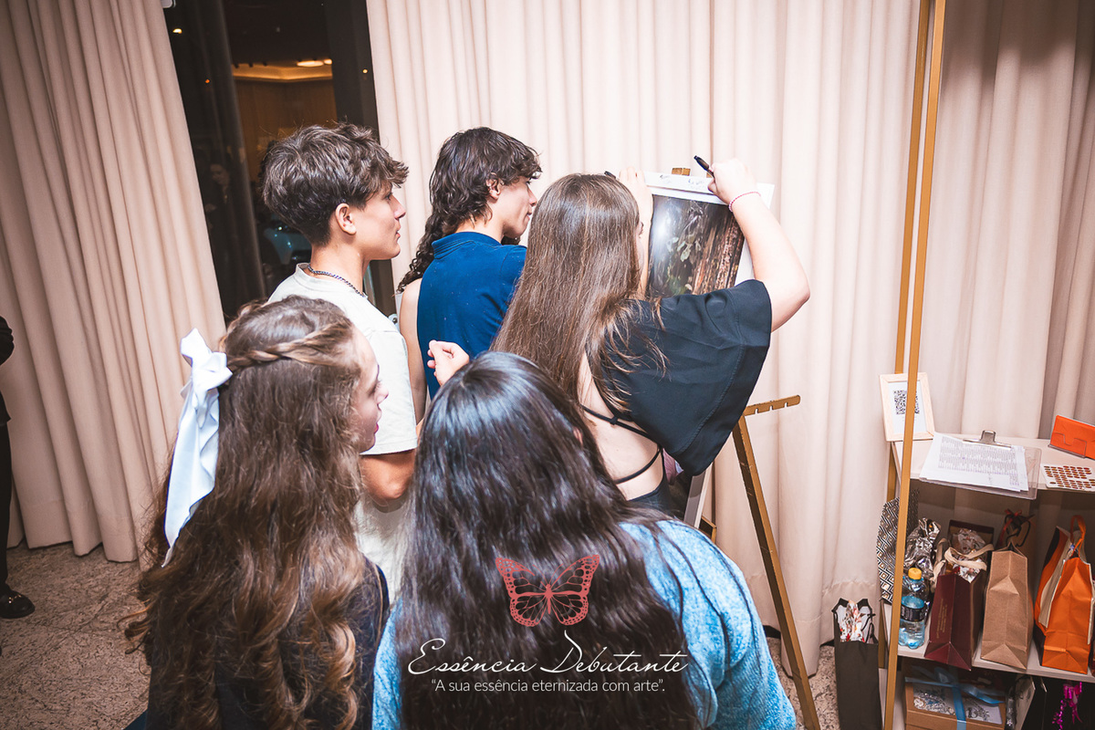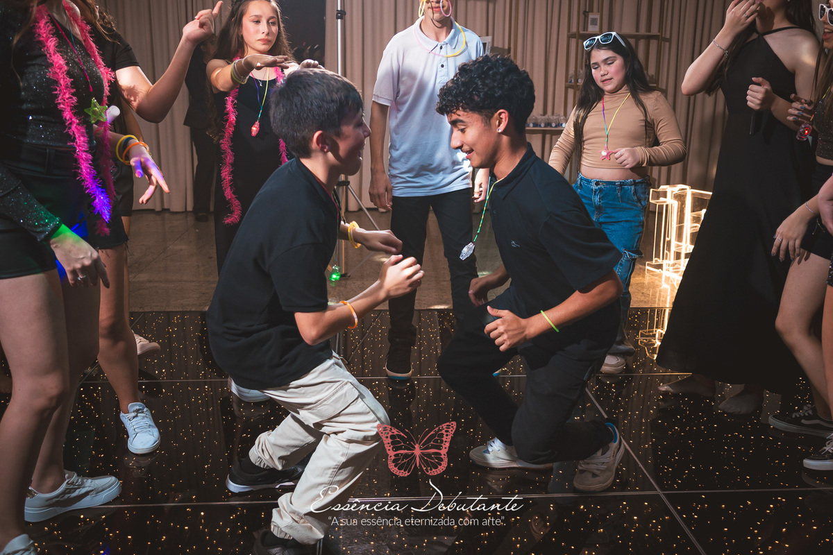 Vestida de azul royal e cercada de amor, Maria celebrou seus 15 anos em grande estilo.