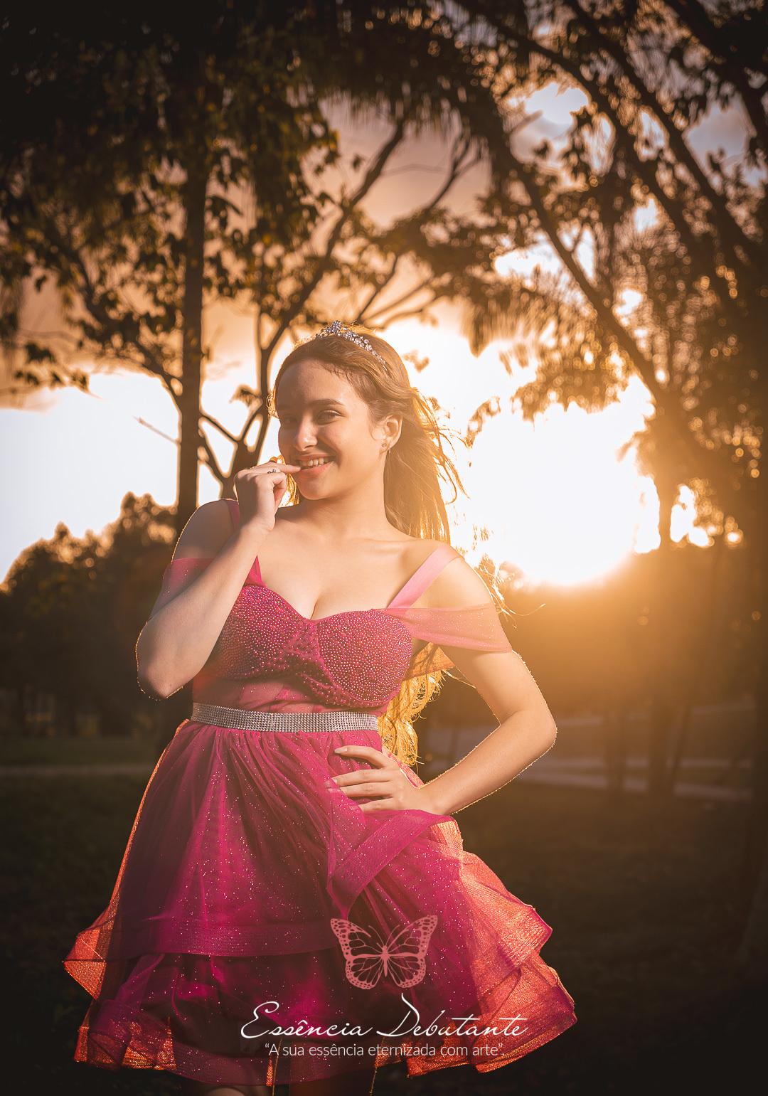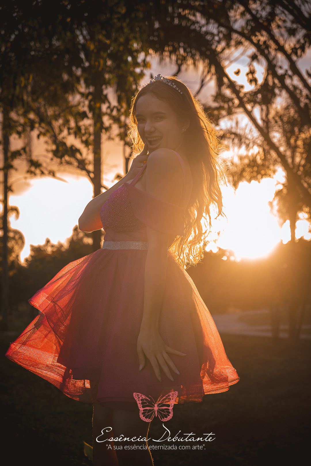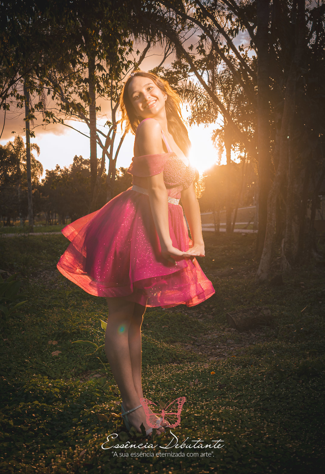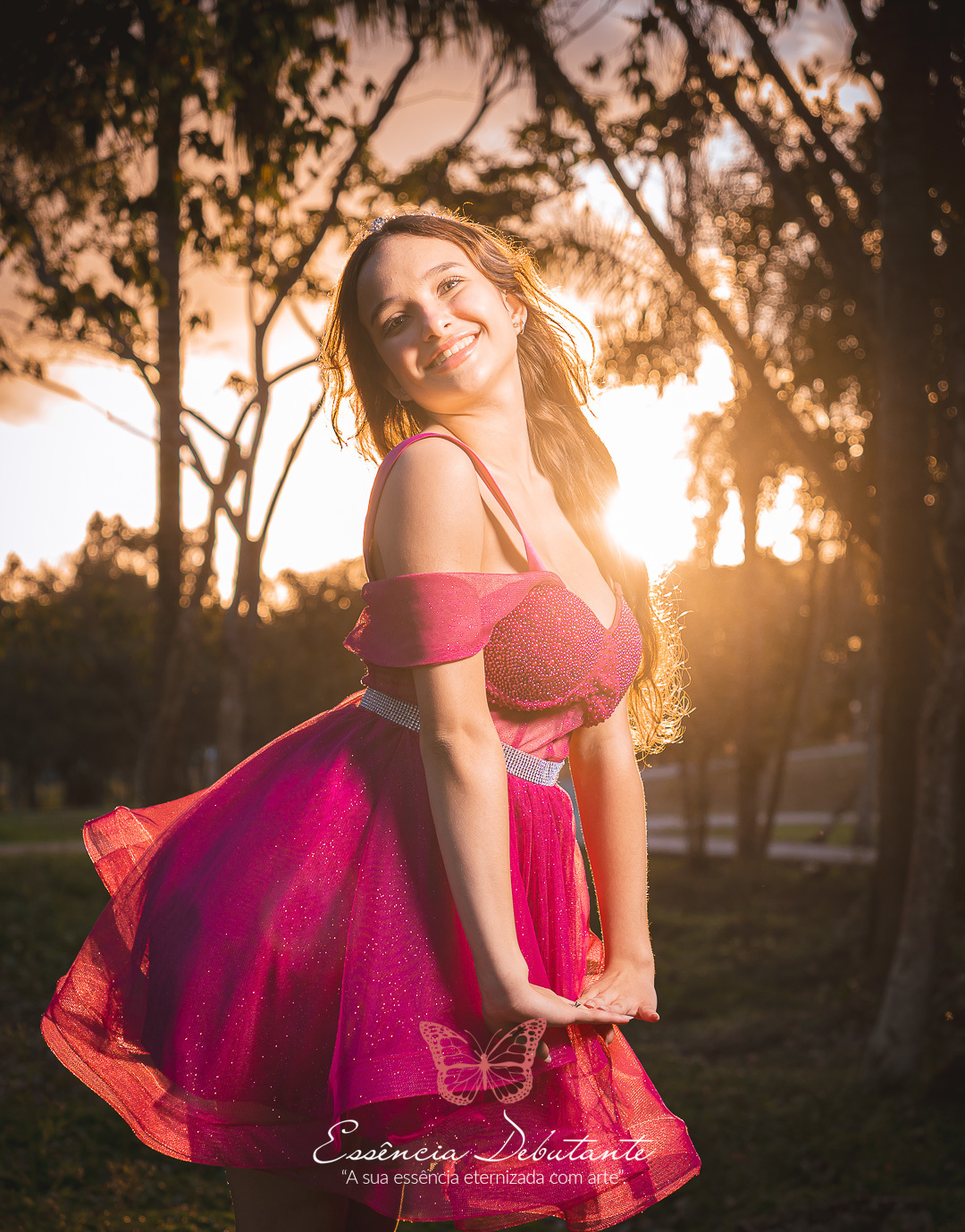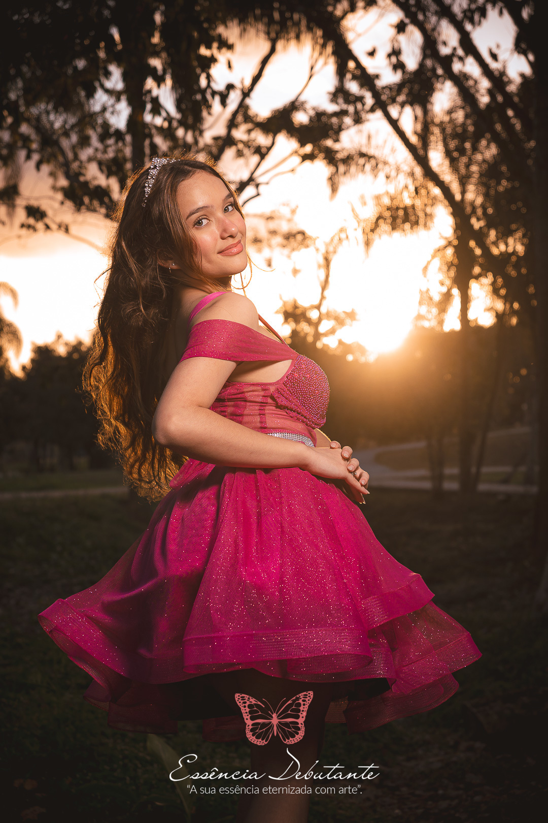 Entre o brilho do vestido e o dourado do entardecer, cada clique revela mais do que uma imagem — revela um sentimento.
