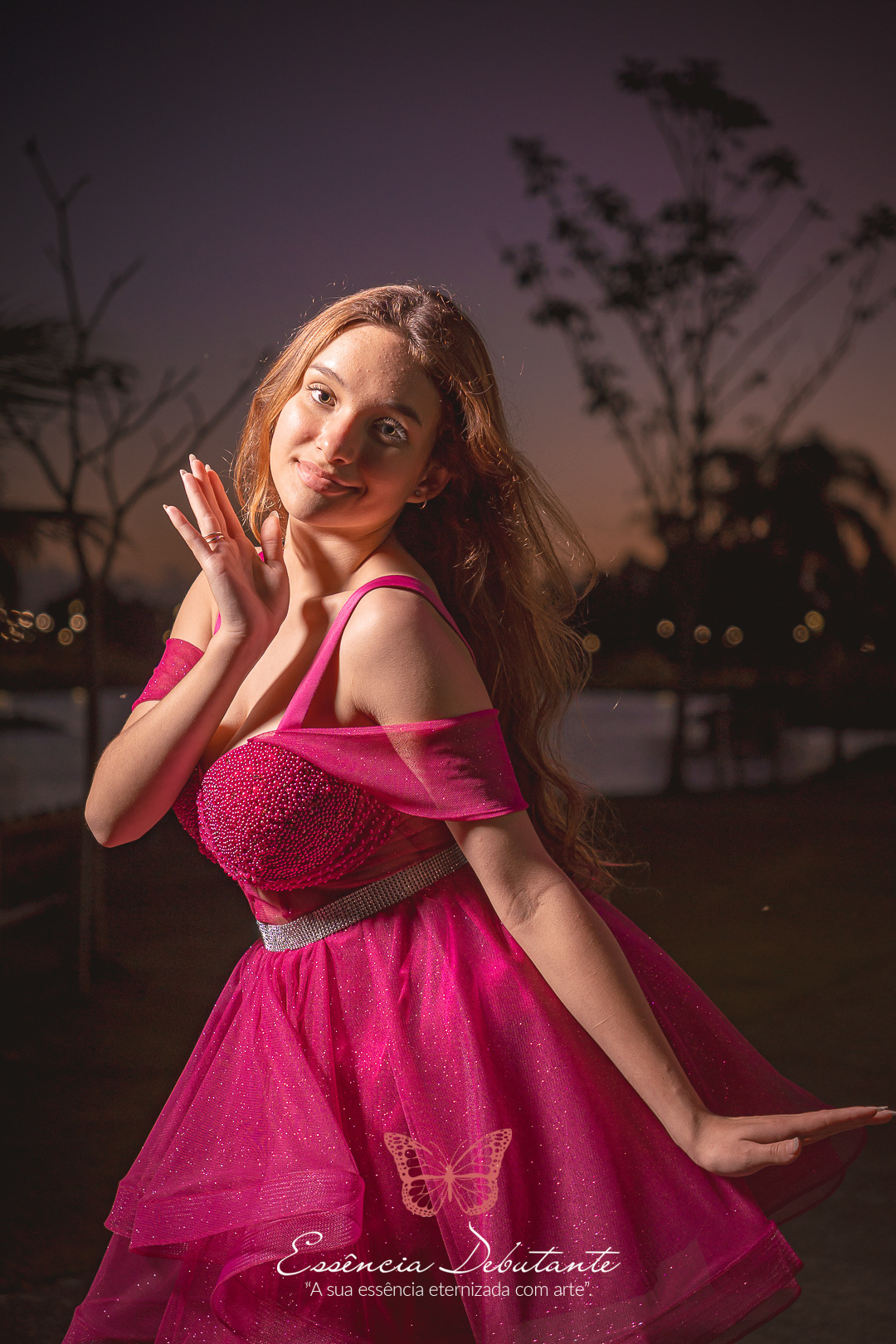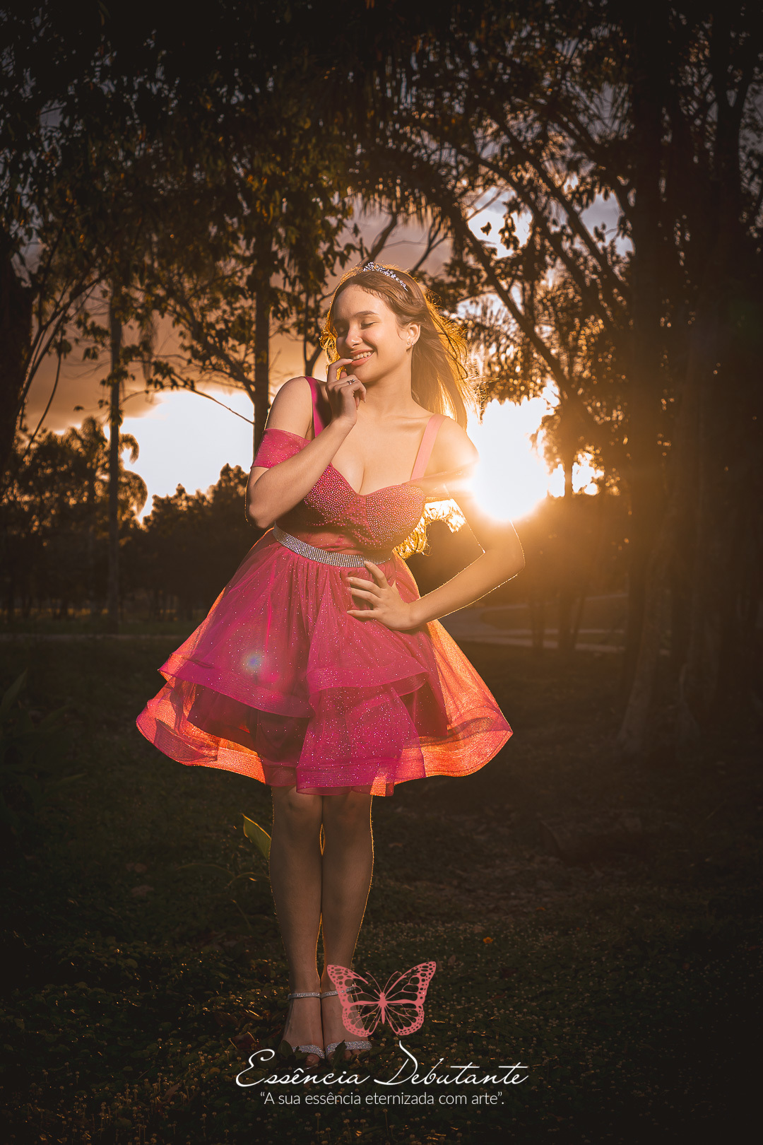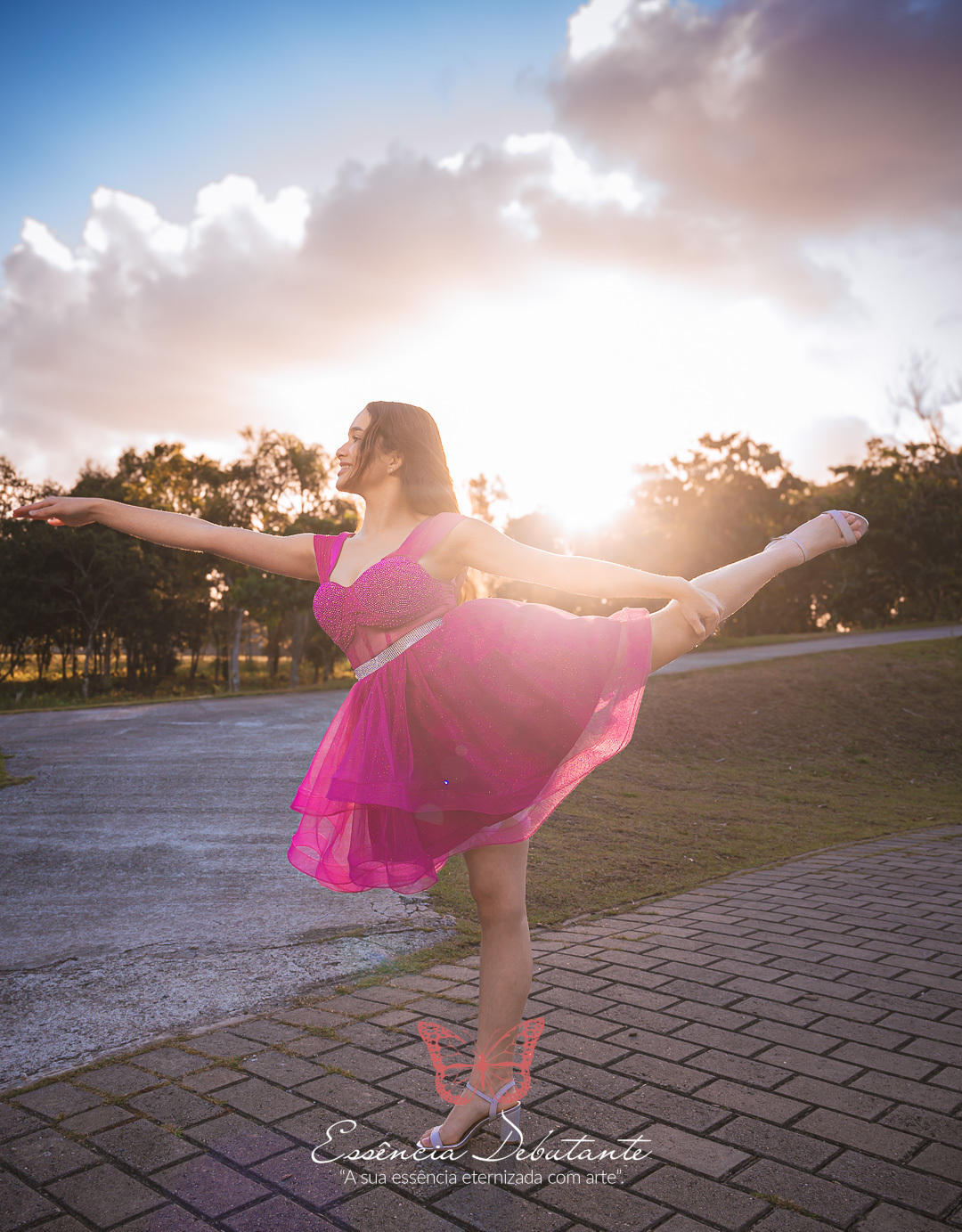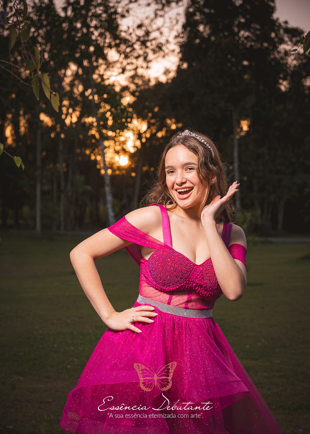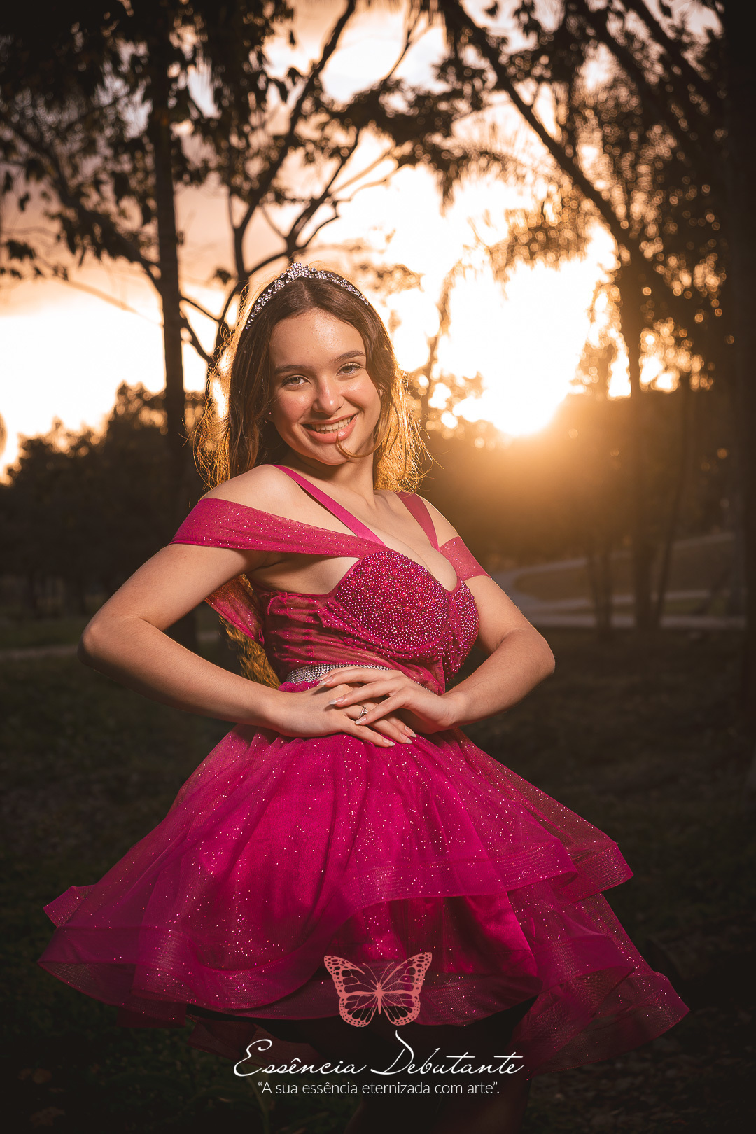 Entre o brilho do vestido e o dourado do entardecer, cada clique revela mais do que uma imagem — revela um sentimento.