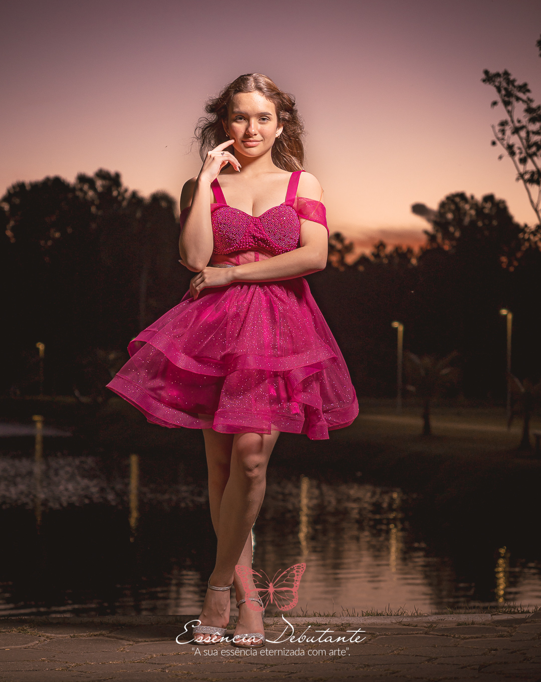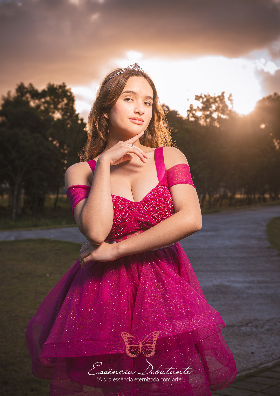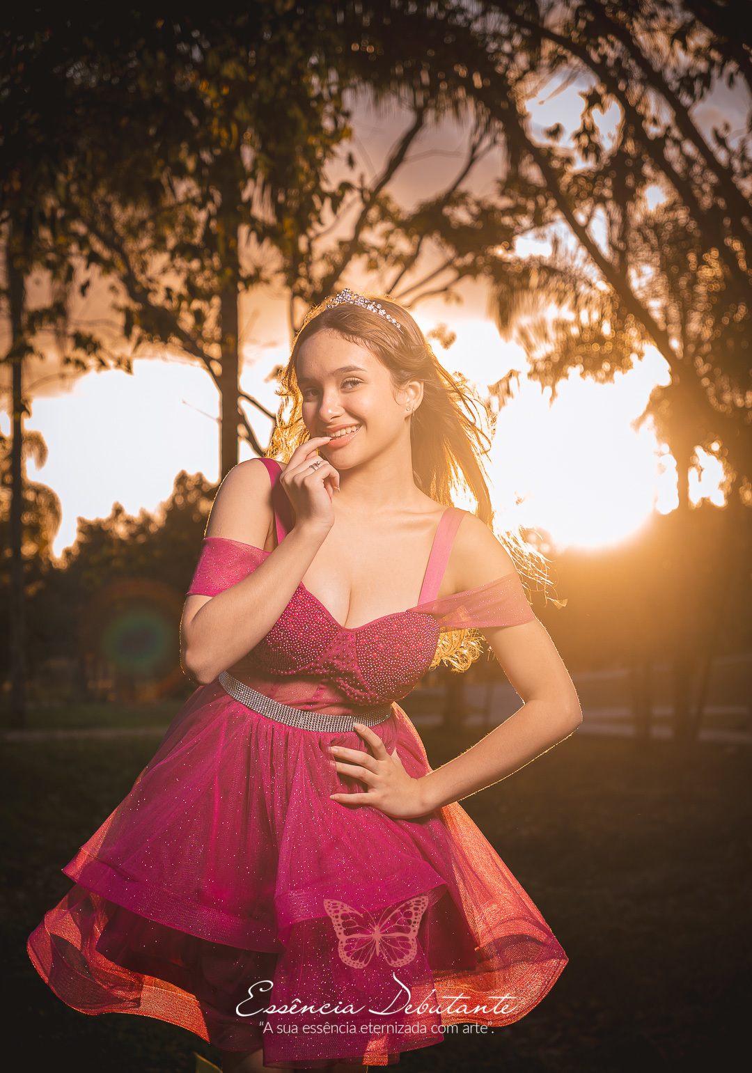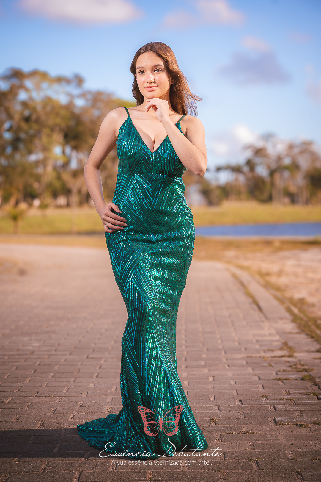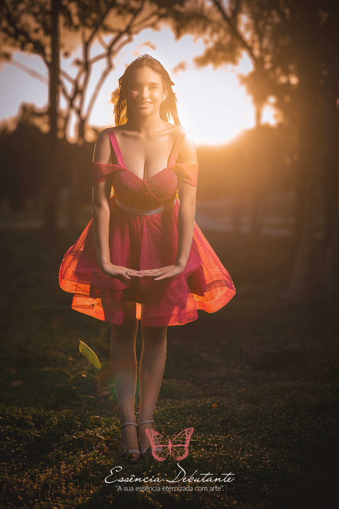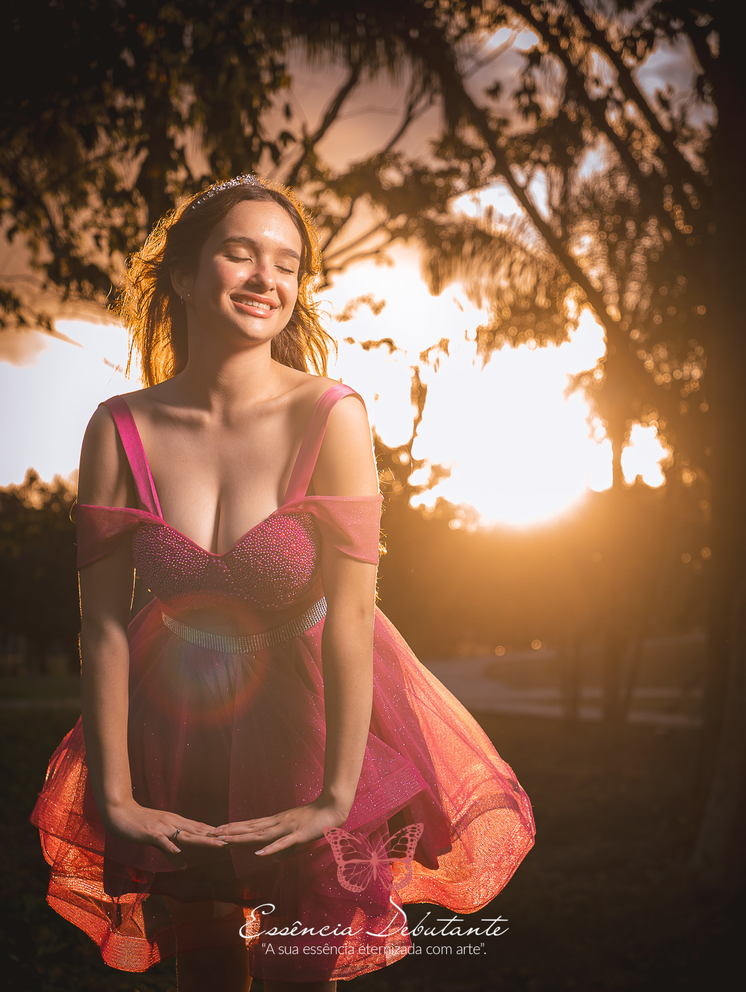 Entre o brilho do vestido e o dourado do entardecer, cada clique revela mais do que uma imagem — revela um sentimento.