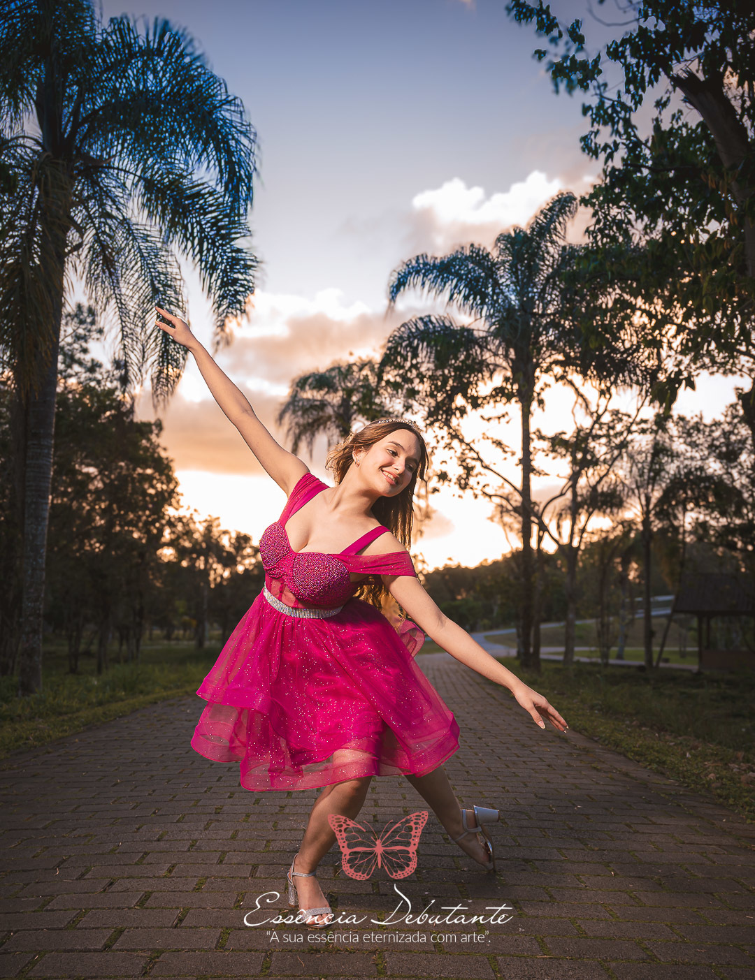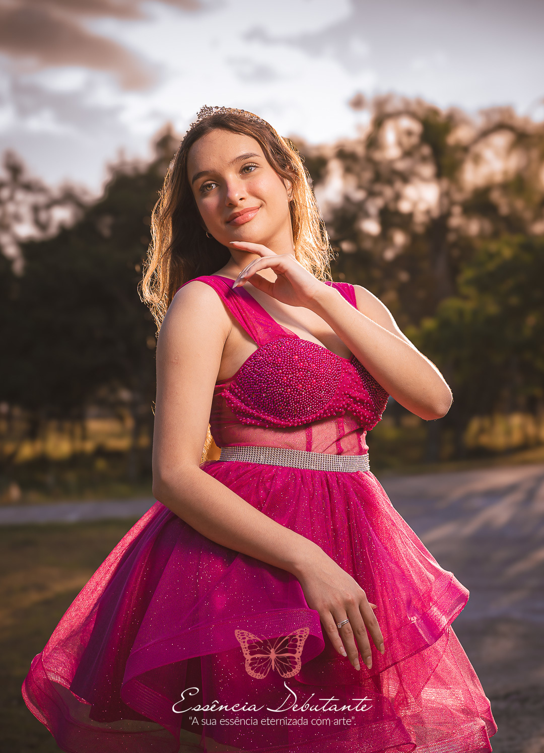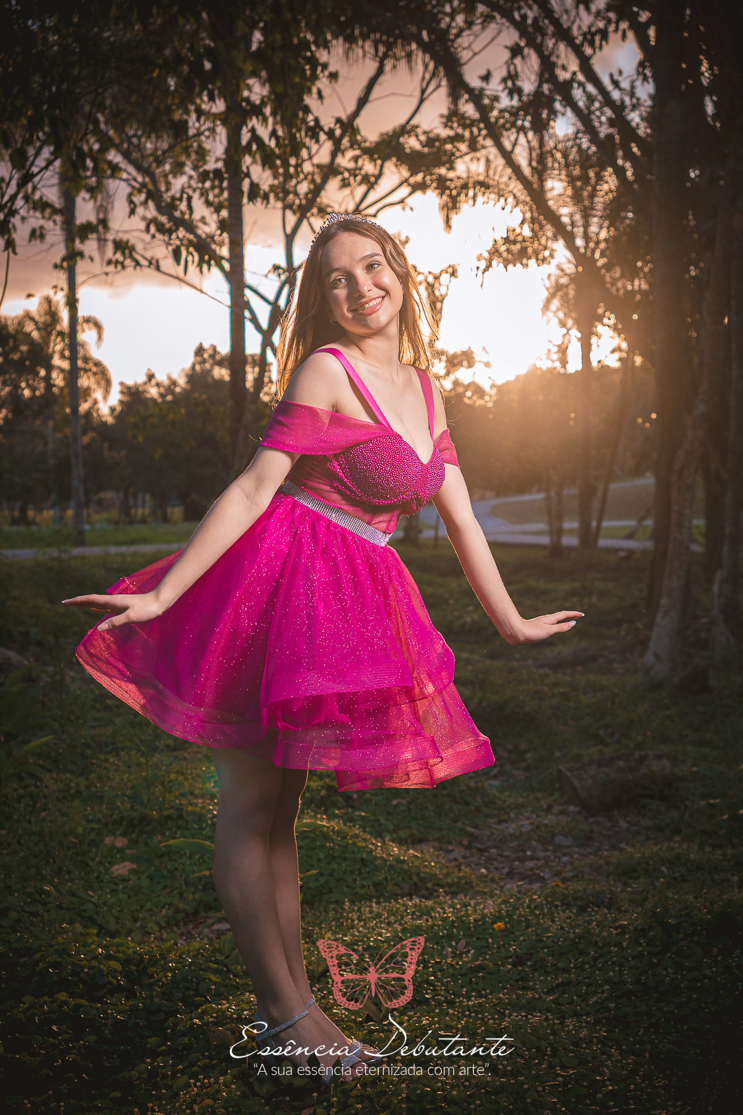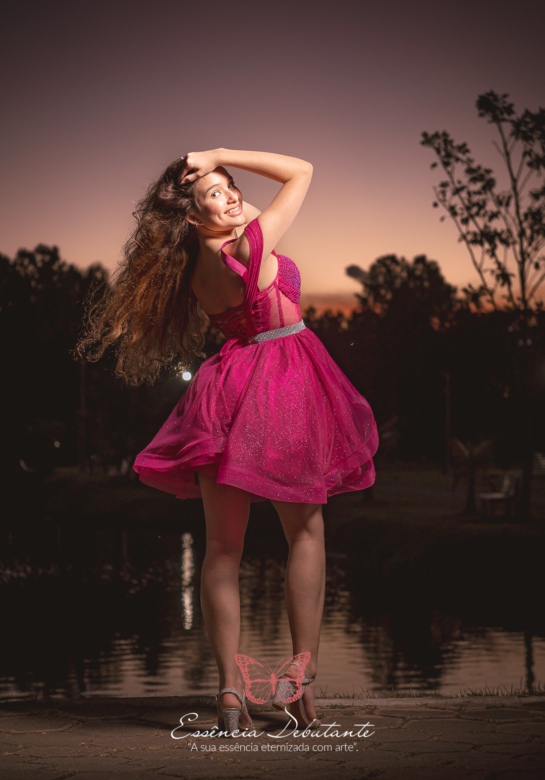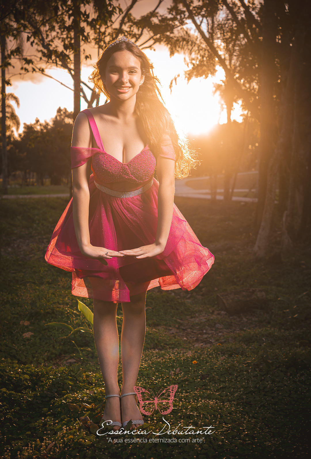 Entre o brilho do vestido e o dourado do entardecer, cada clique revela mais do que uma imagem — revela um sentimento.