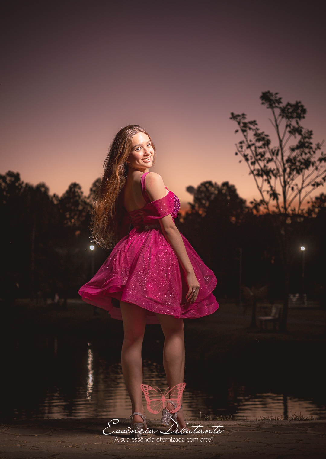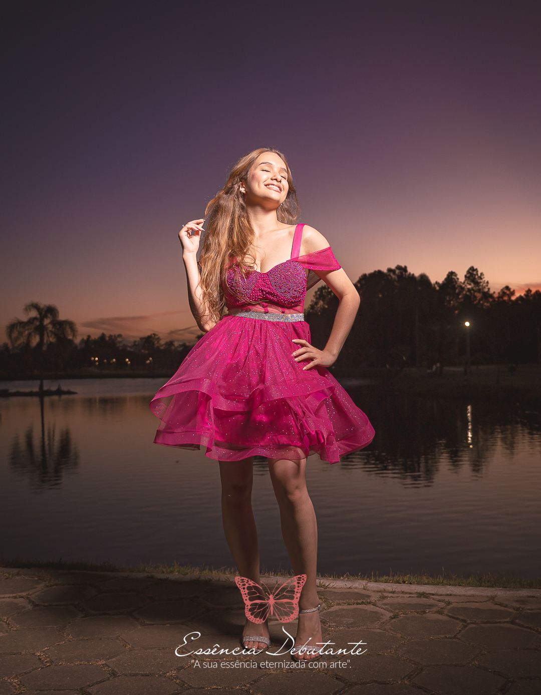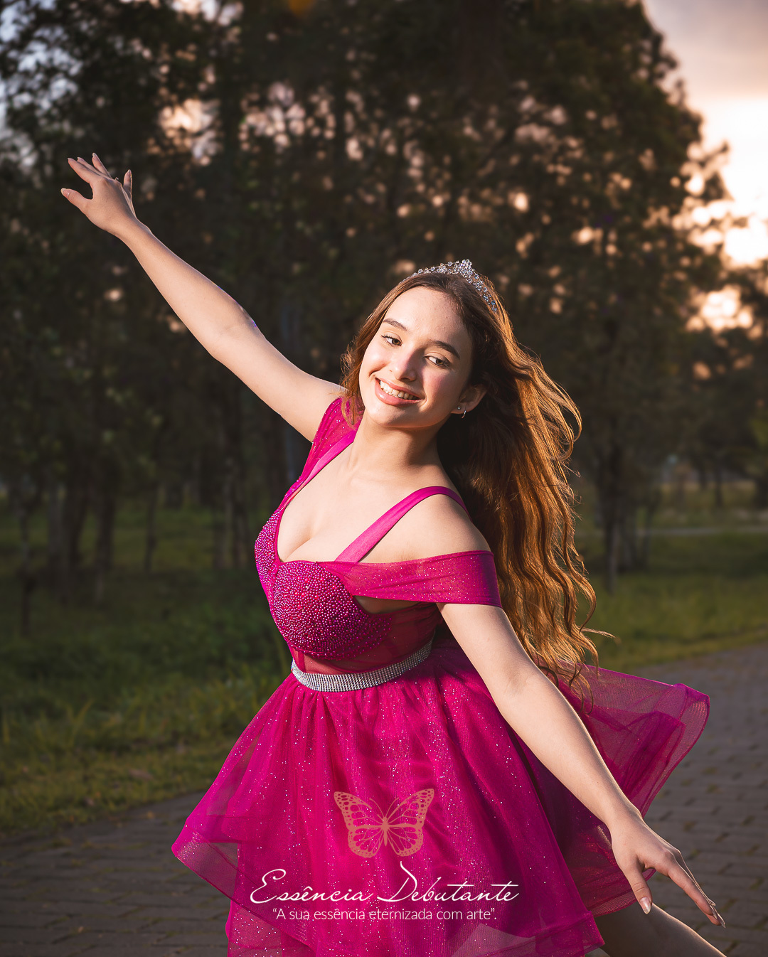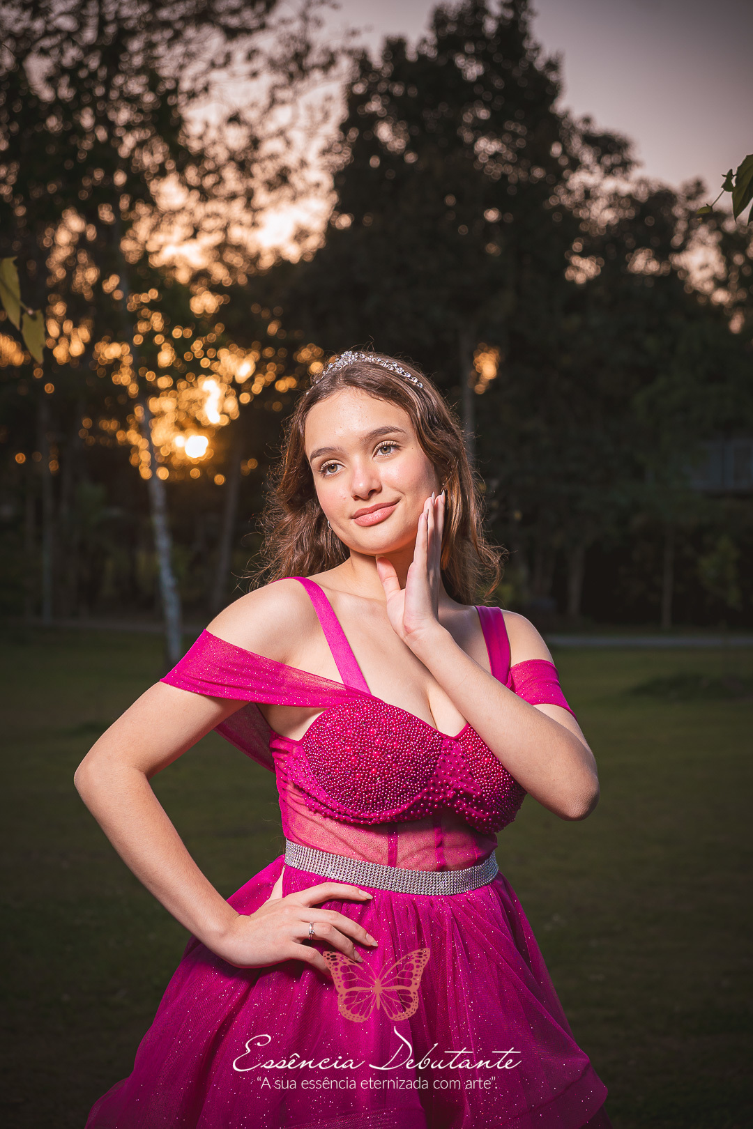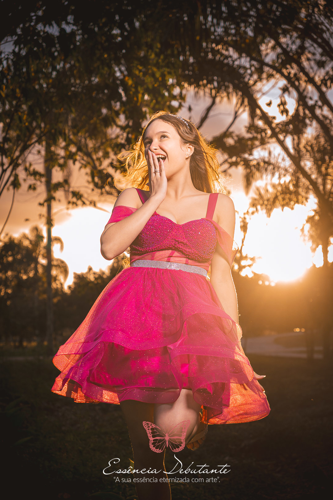 Entre o brilho do vestido e o dourado do entardecer, cada clique revela mais do que uma imagem — revela um sentimento.