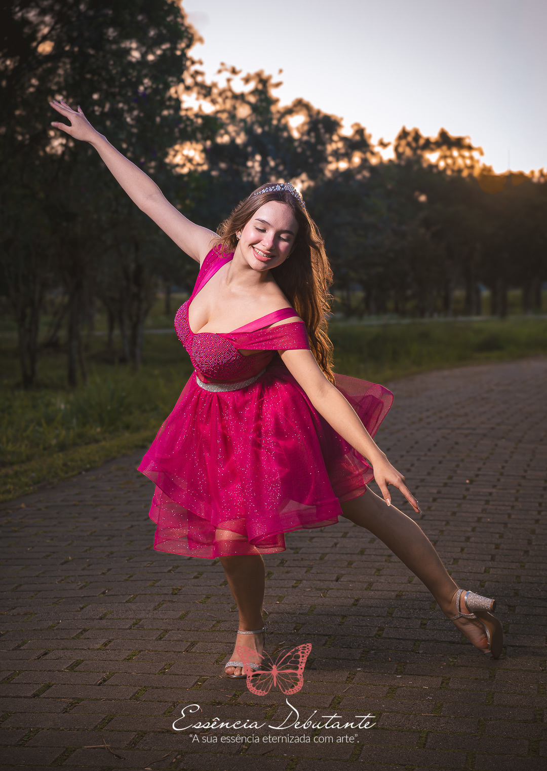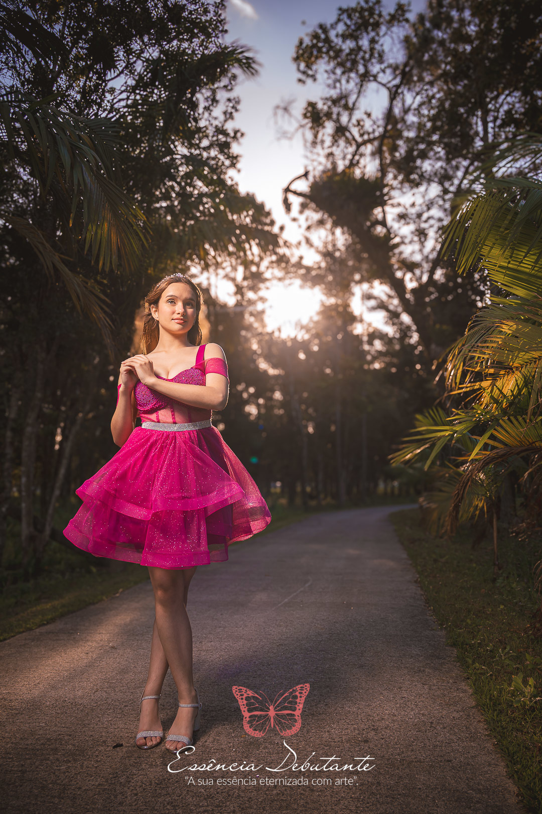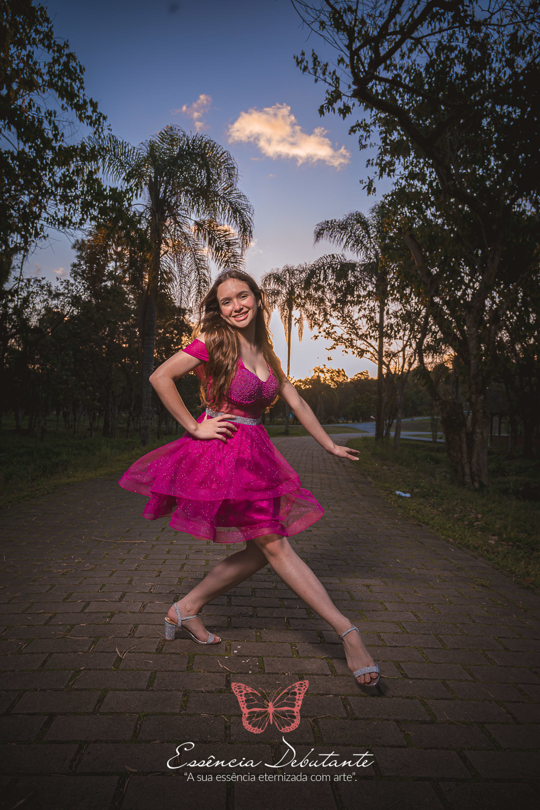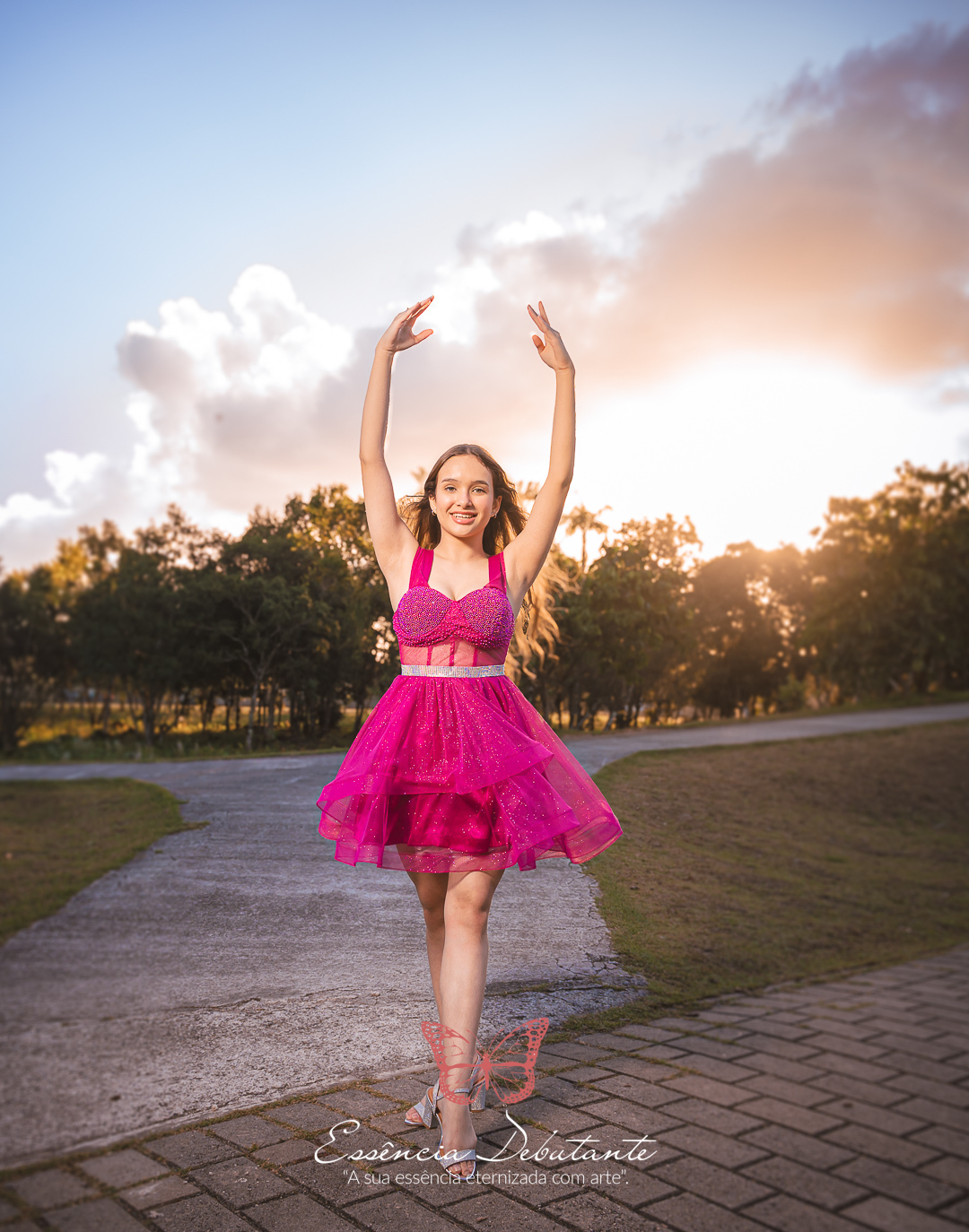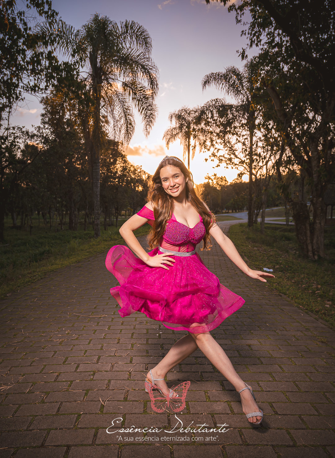 Entre o brilho do vestido e o dourado do entardecer, cada clique revela mais do que uma imagem — revela um sentimento.