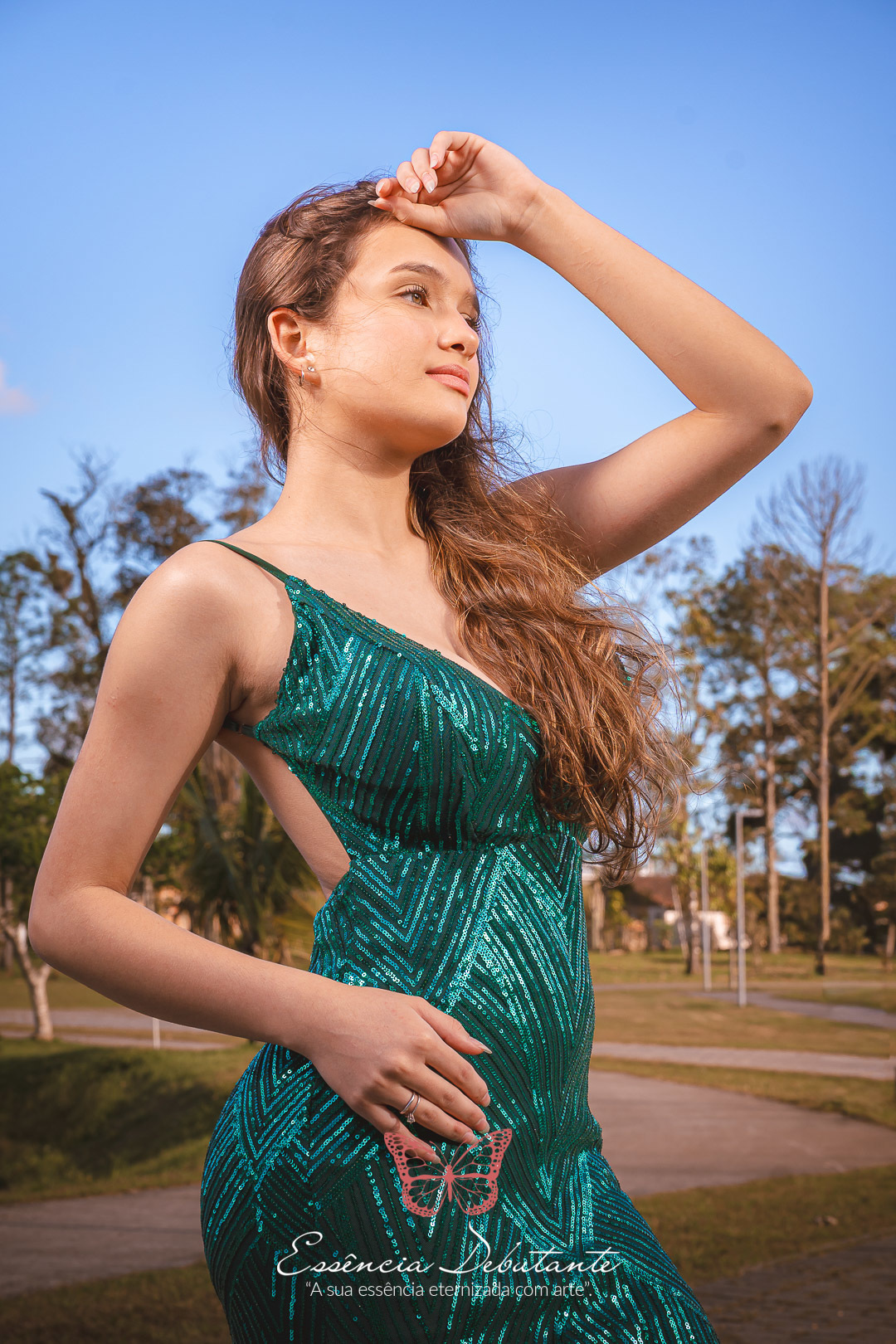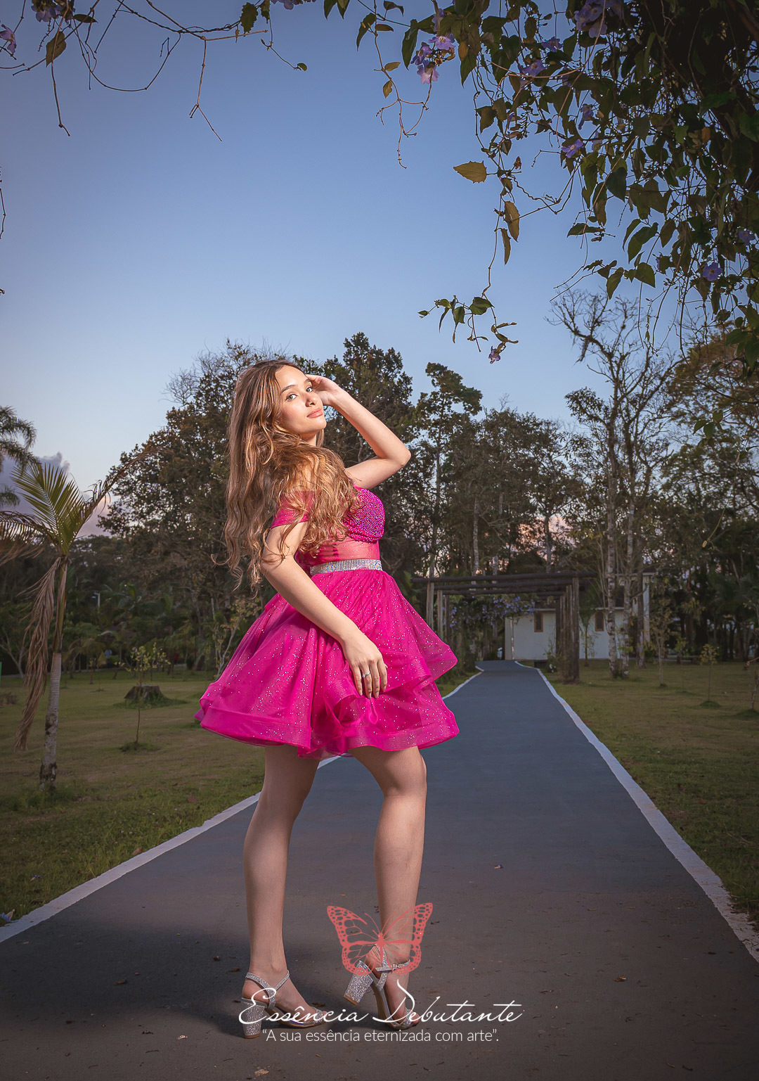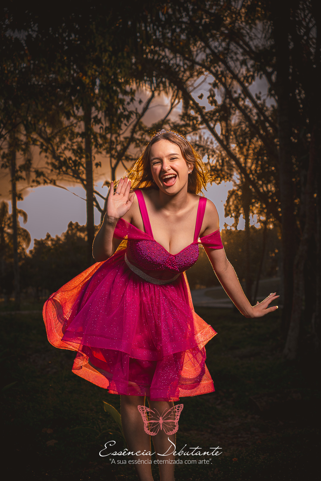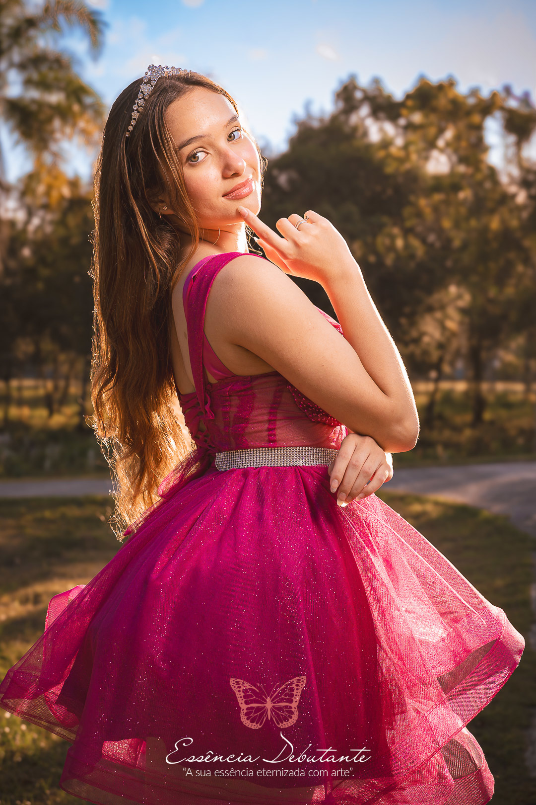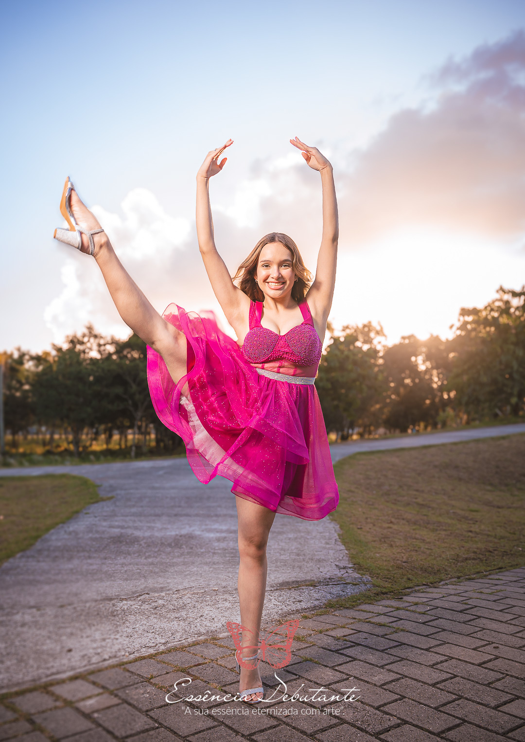 Entre o brilho do vestido e o dourado do entardecer, cada clique revela mais do que uma imagem — revela um sentimento.