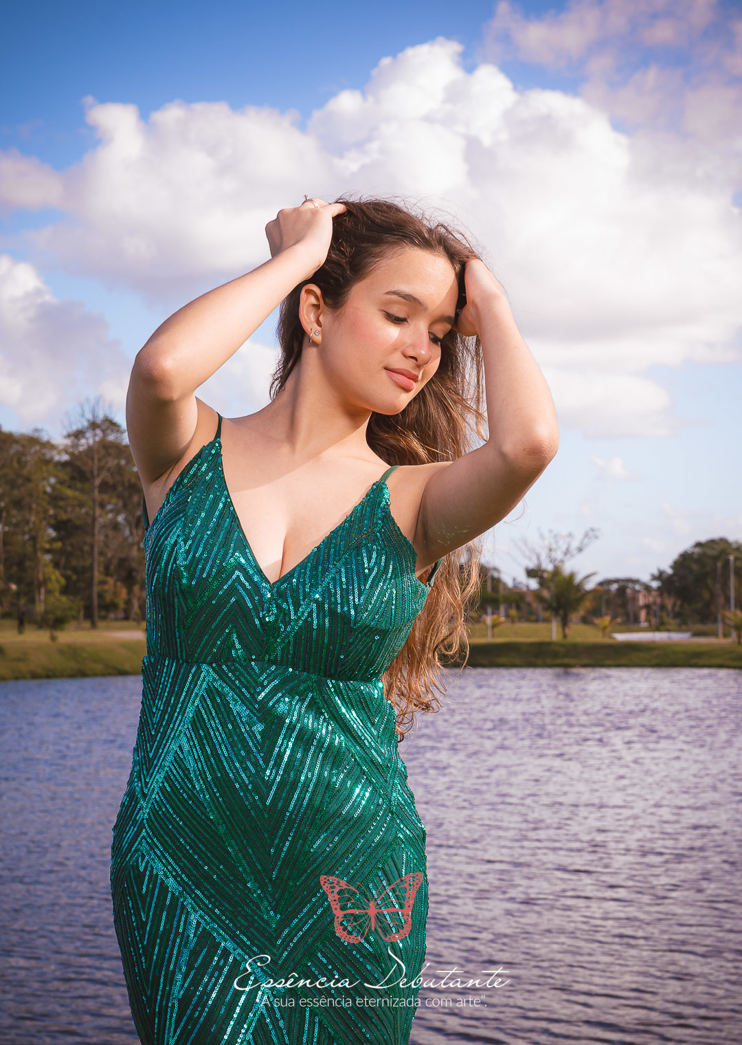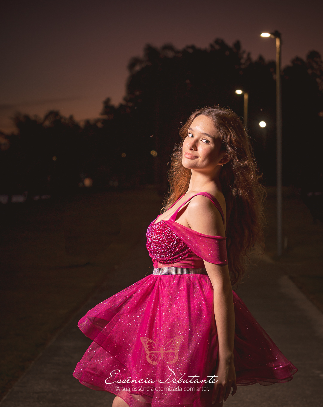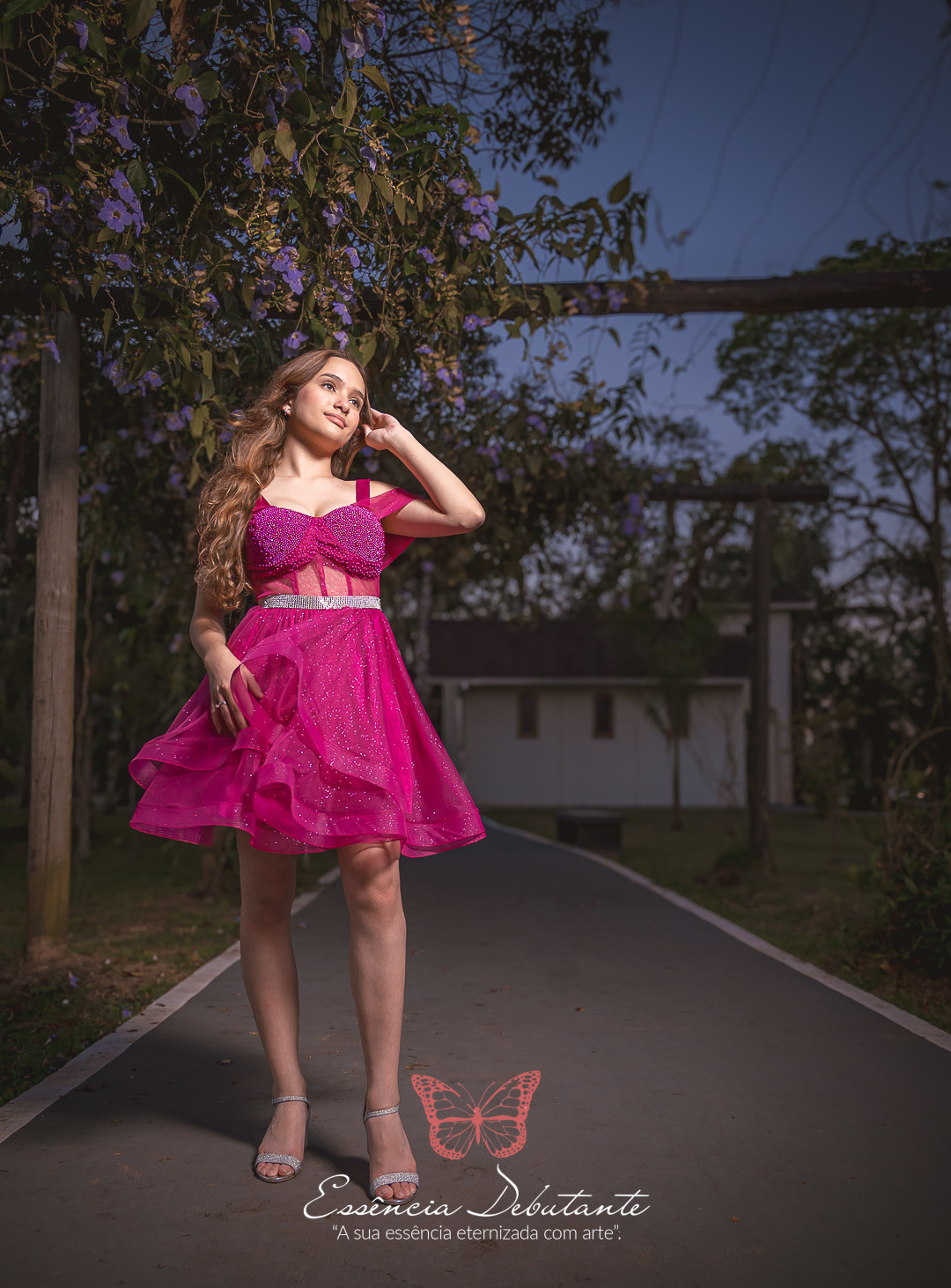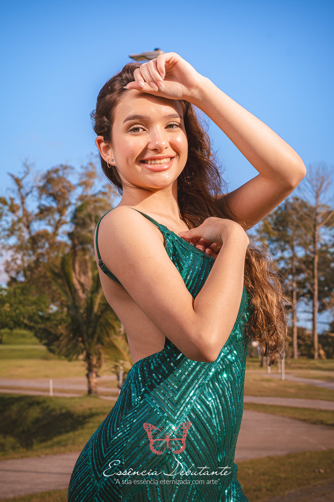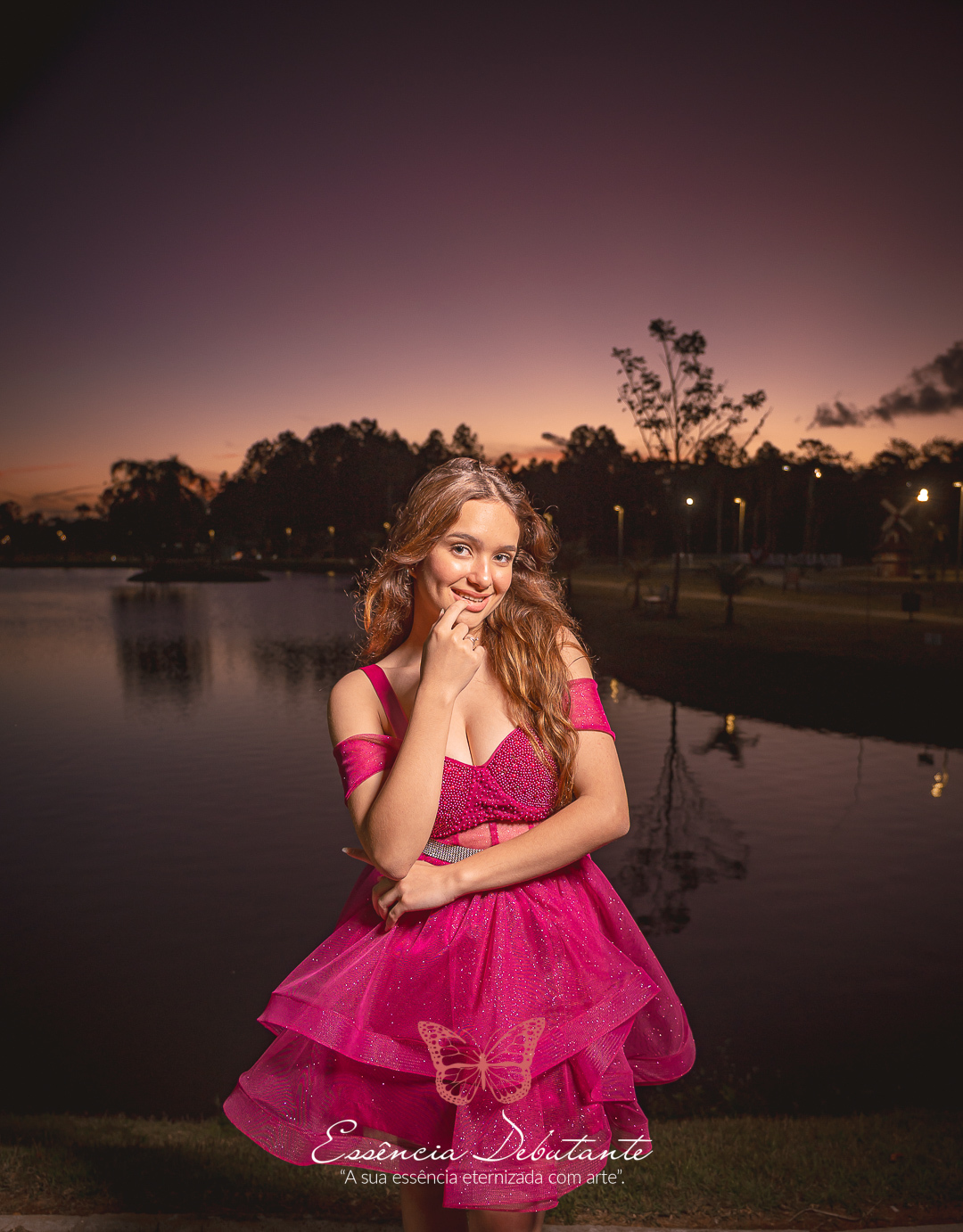 Entre o brilho do vestido e o dourado do entardecer, cada clique revela mais do que uma imagem — revela um sentimento.